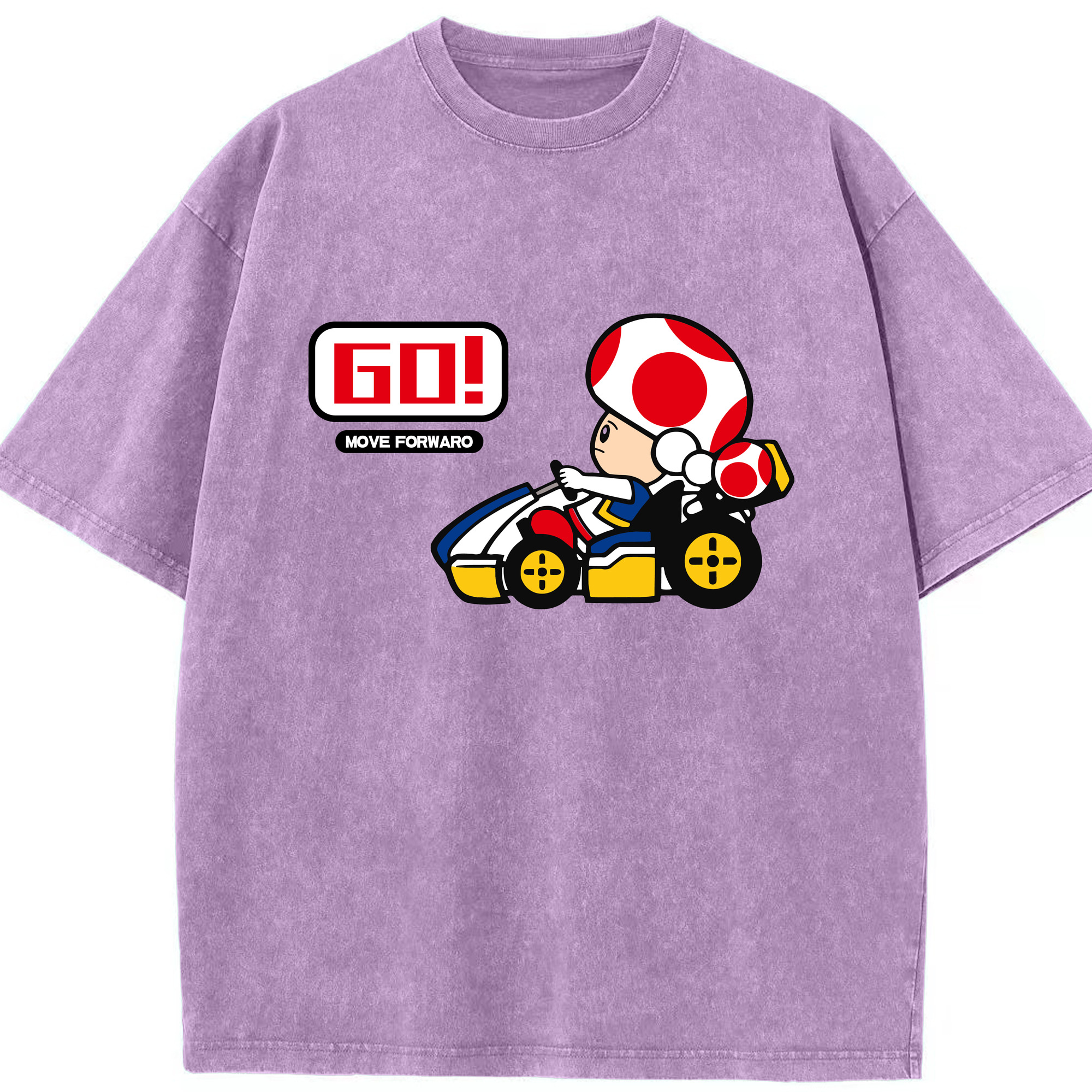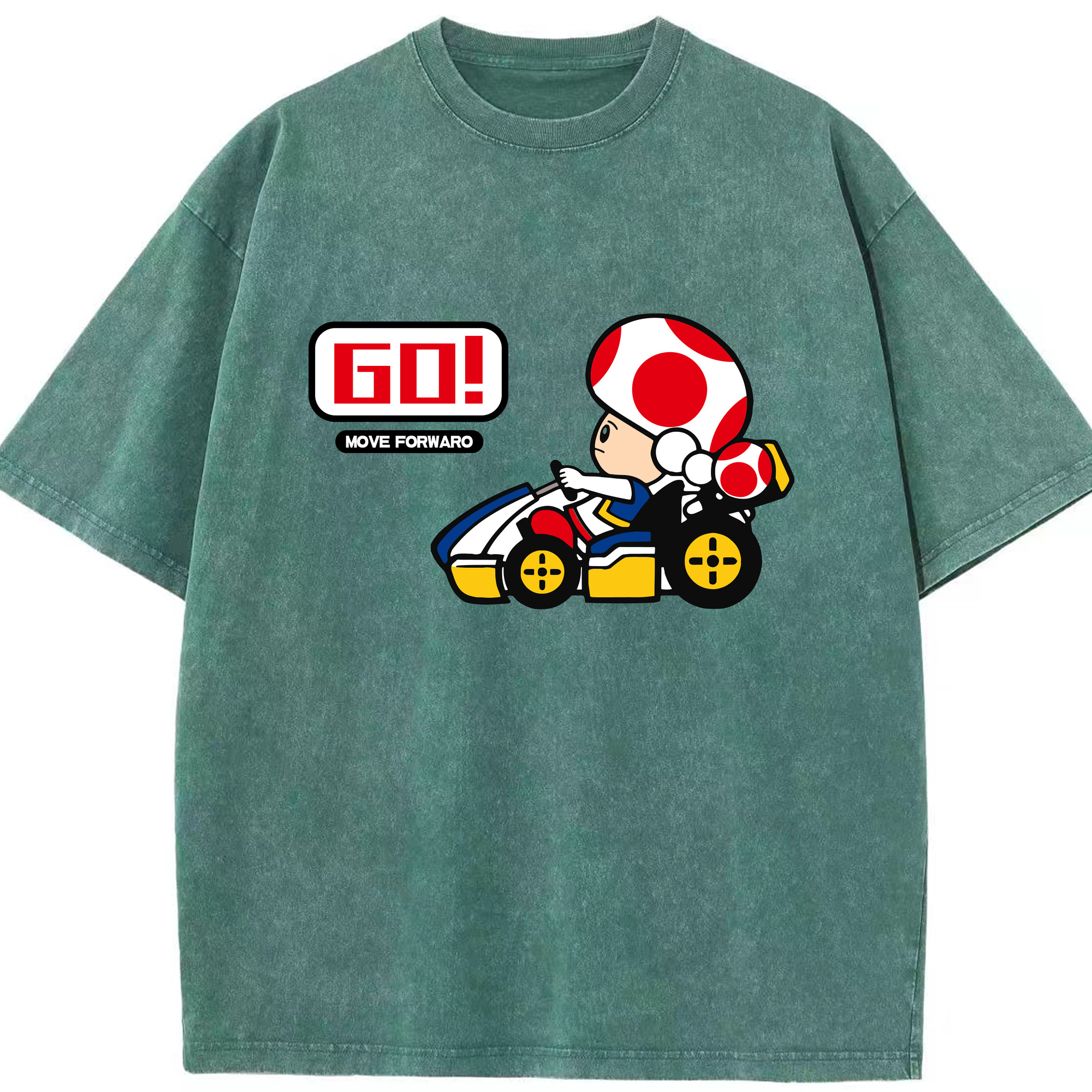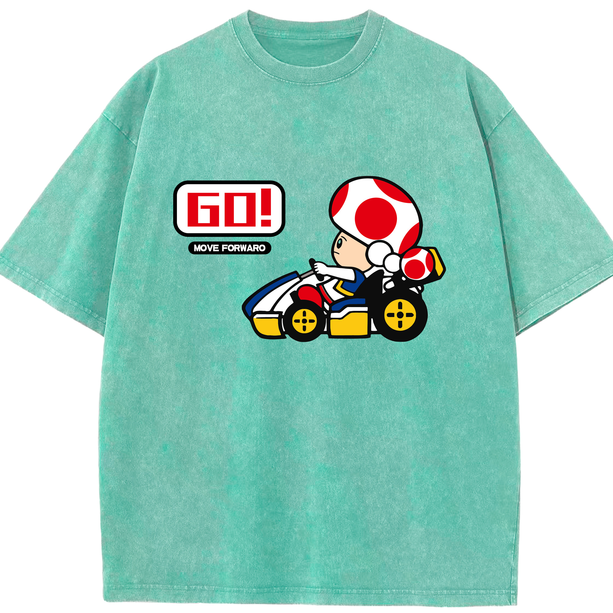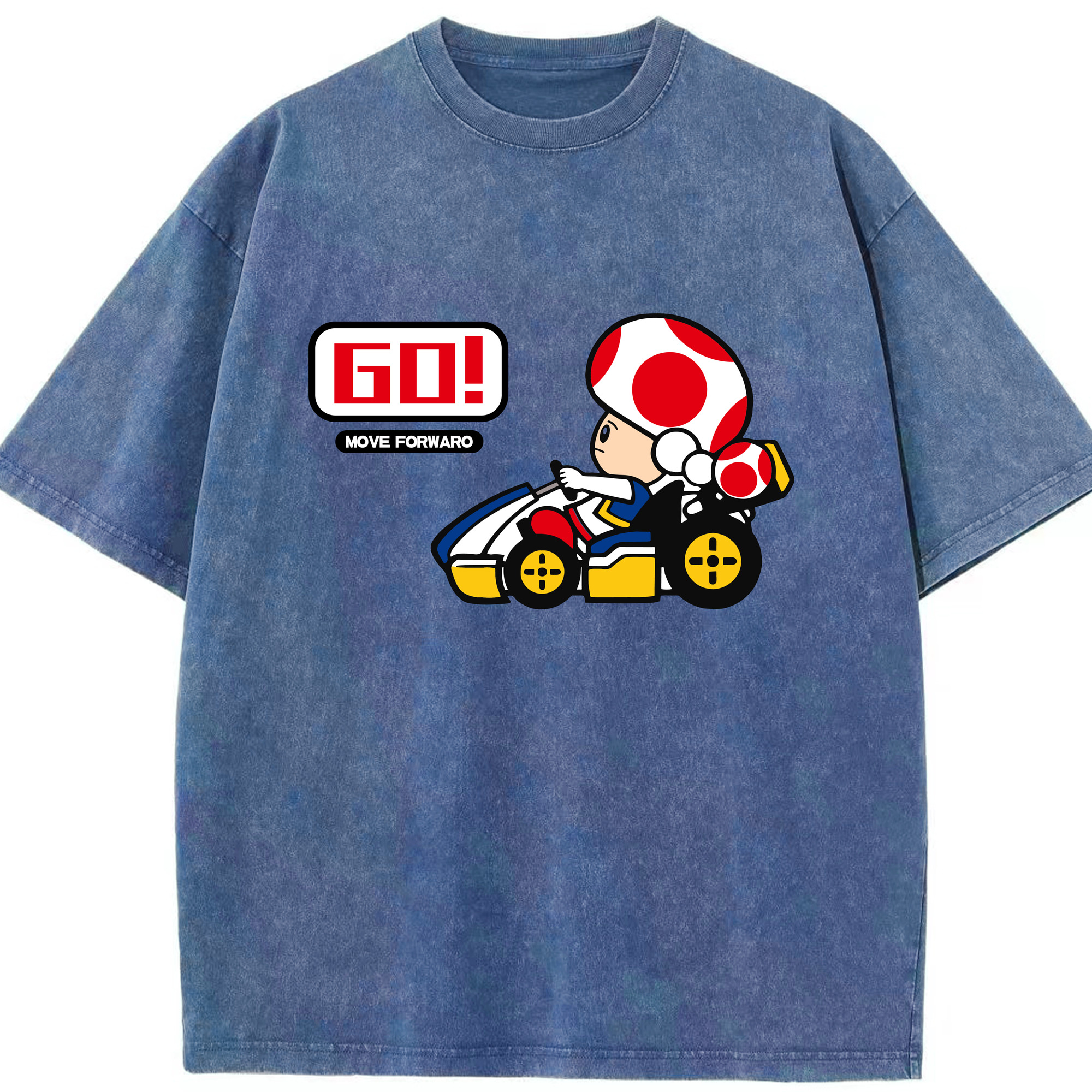 Super mario kart red toad t shirt - Washed Vintage Look 230g Cotton Oversized T-Shirt With Front Heat Transfer Print – Soft, Lightweight, Stylish Fit – Comfortable Casual Wear For Sports & Everyday Use