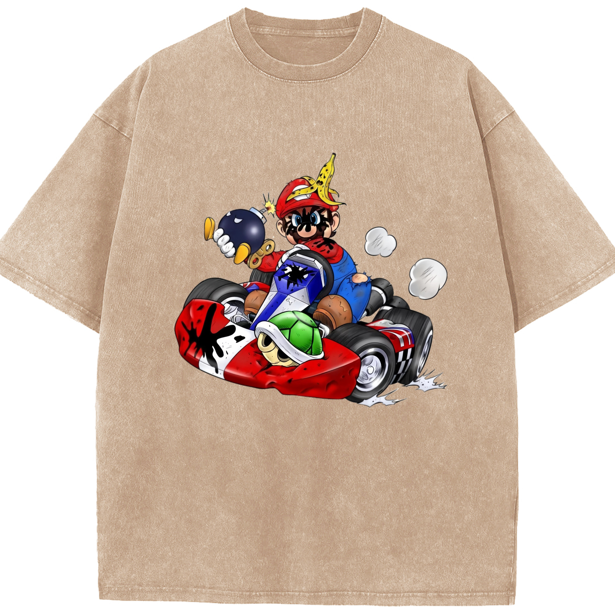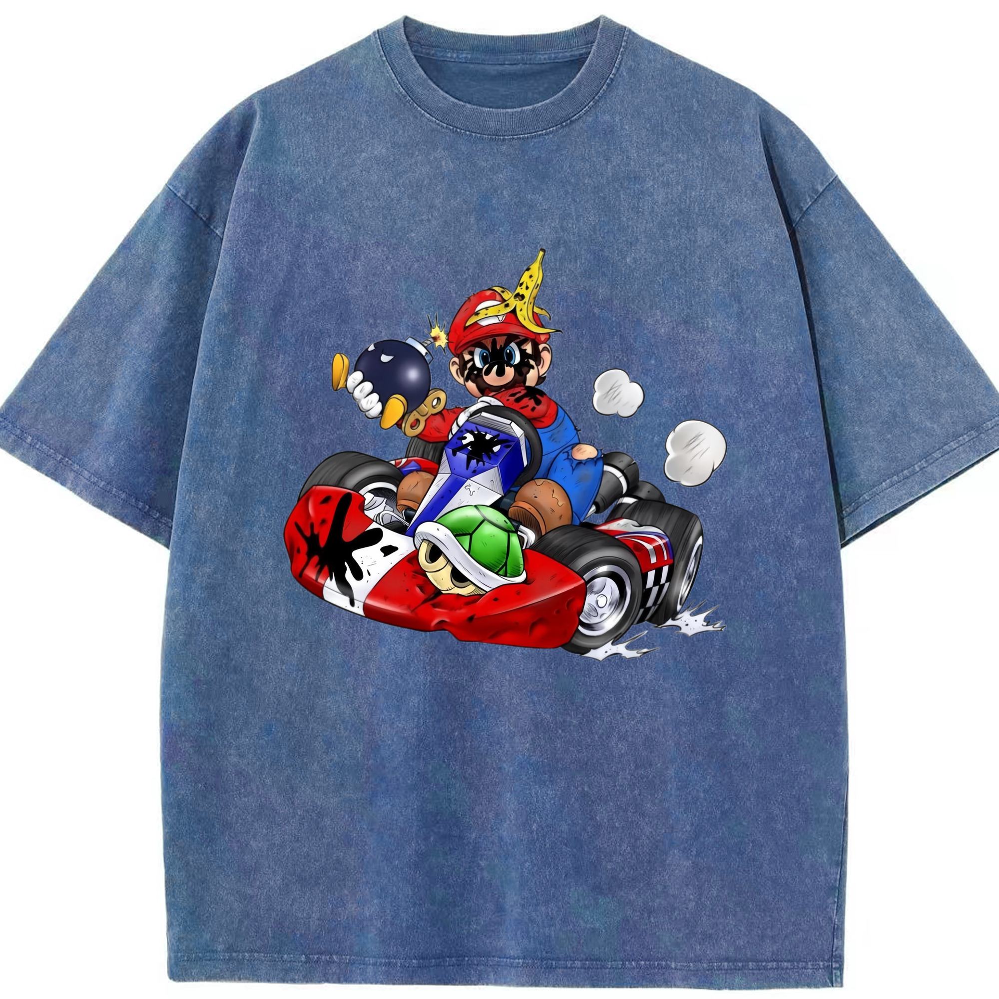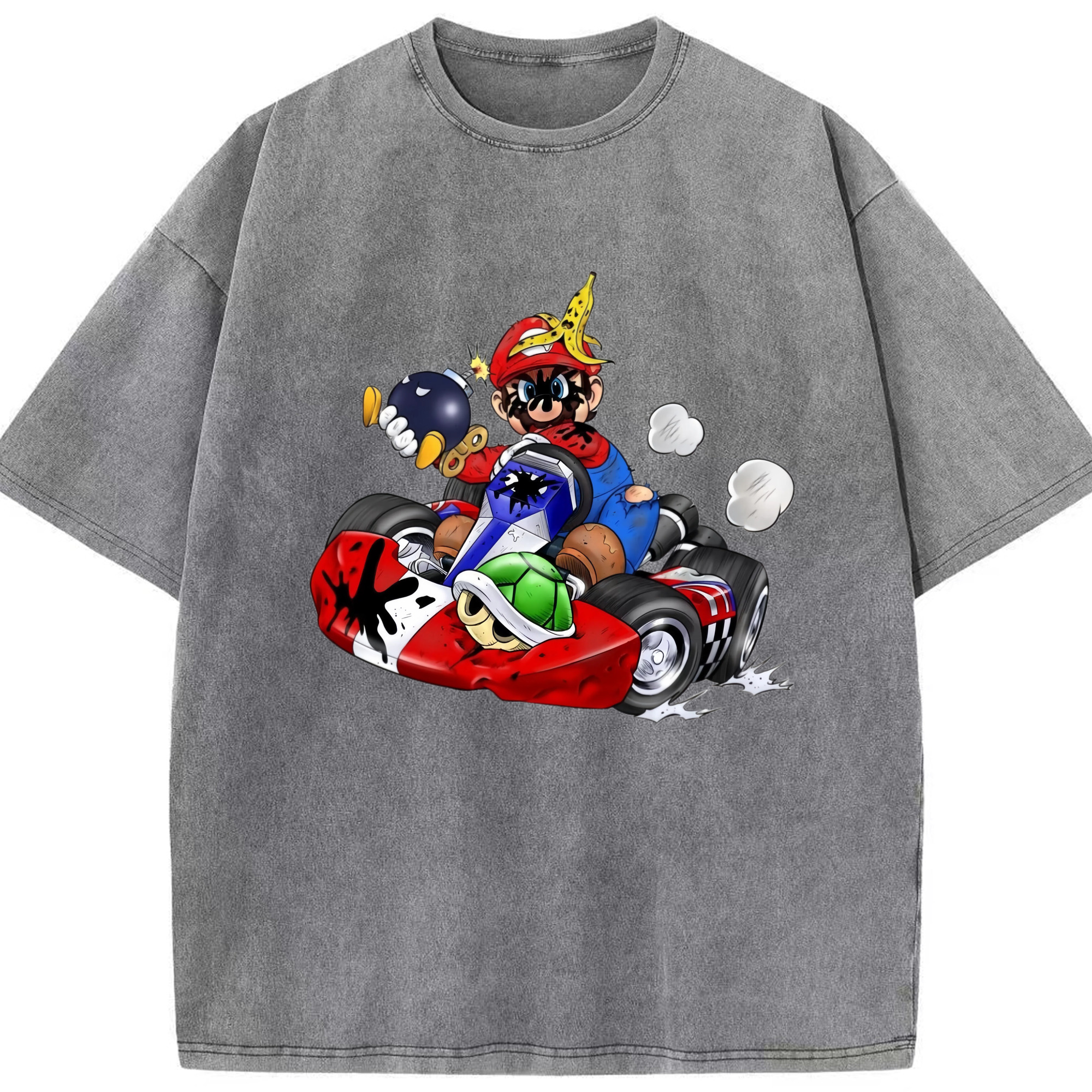 Super Mario kart T-shirt - Washed Vintage Look 230g Cotton Oversized T-Shirt With Front Heat Transfer Print – Soft, Lightweight, Stylish Fit – Comfortable Casual Wear For Sports & Everyday Use