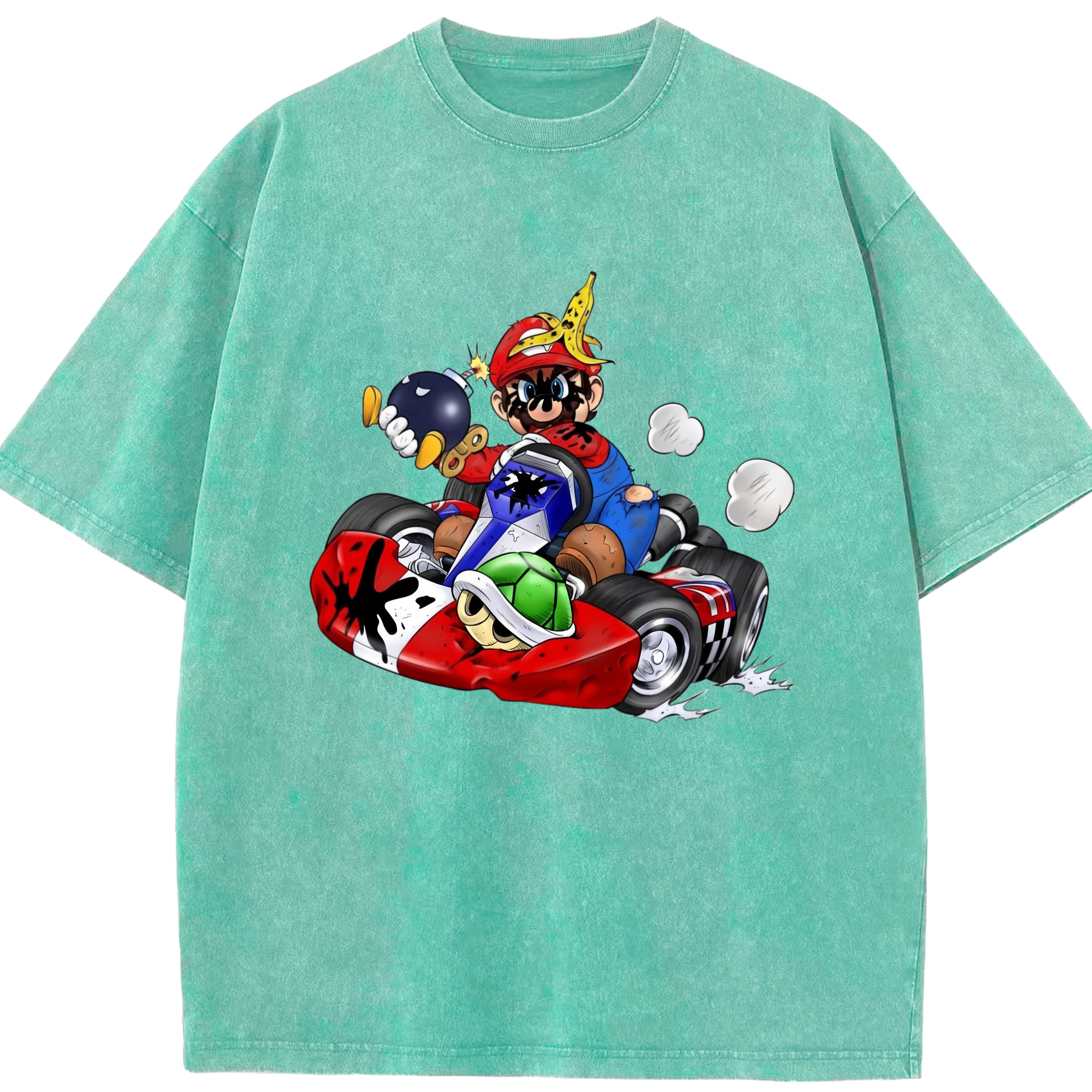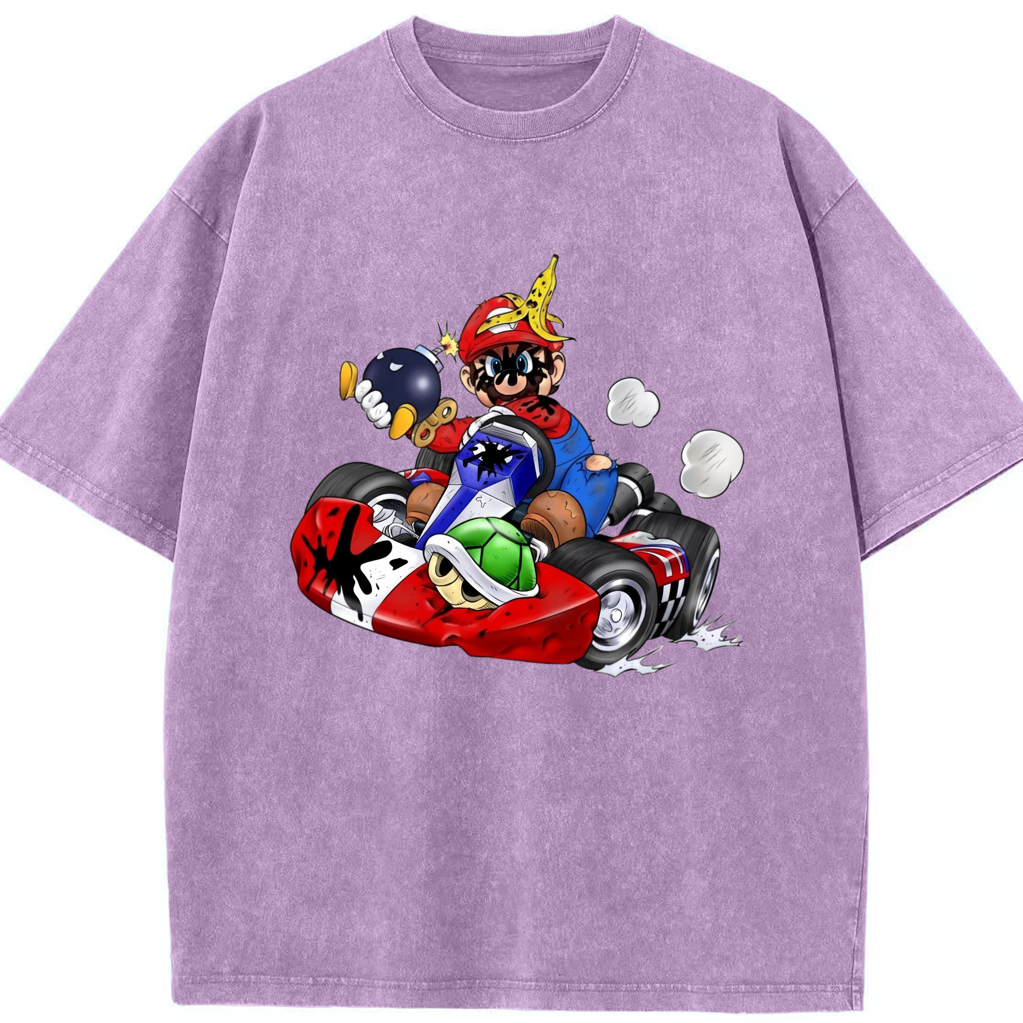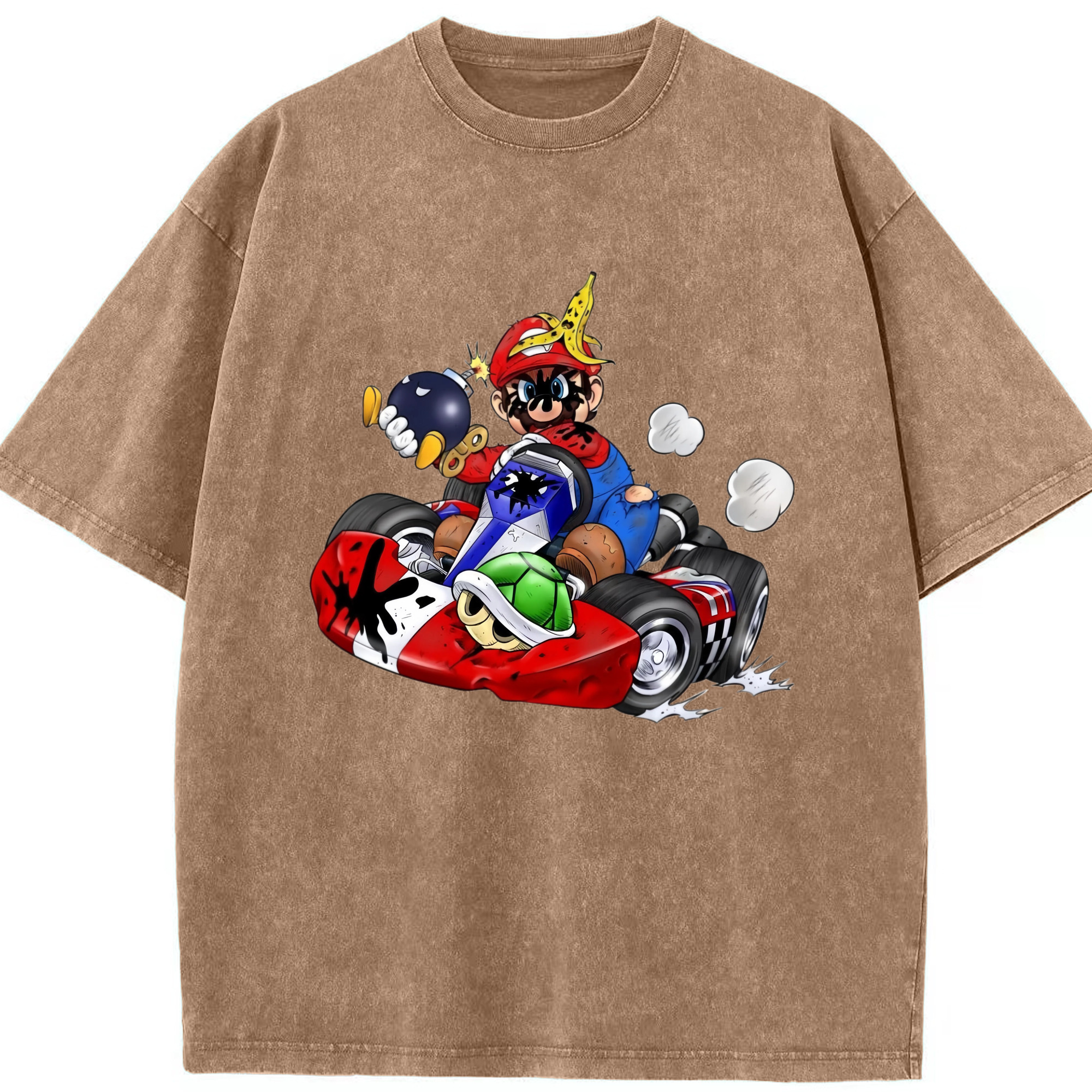 Super Mario kart T-shirt - Washed Vintage Look 230g Cotton Oversized T-Shirt With Front Heat Transfer Print – Soft, Lightweight, Stylish Fit – Comfortable Casual Wear For Sports & Everyday Use