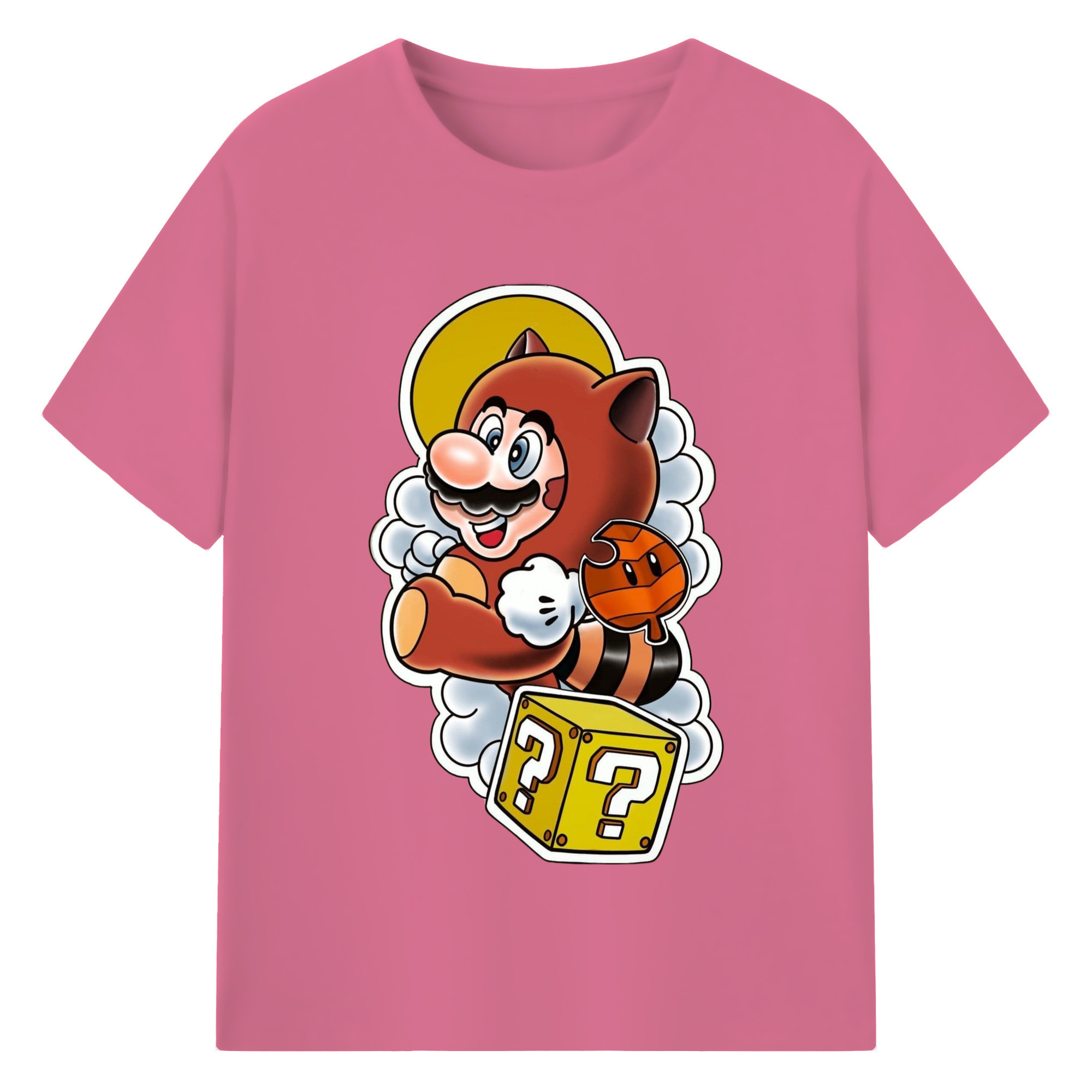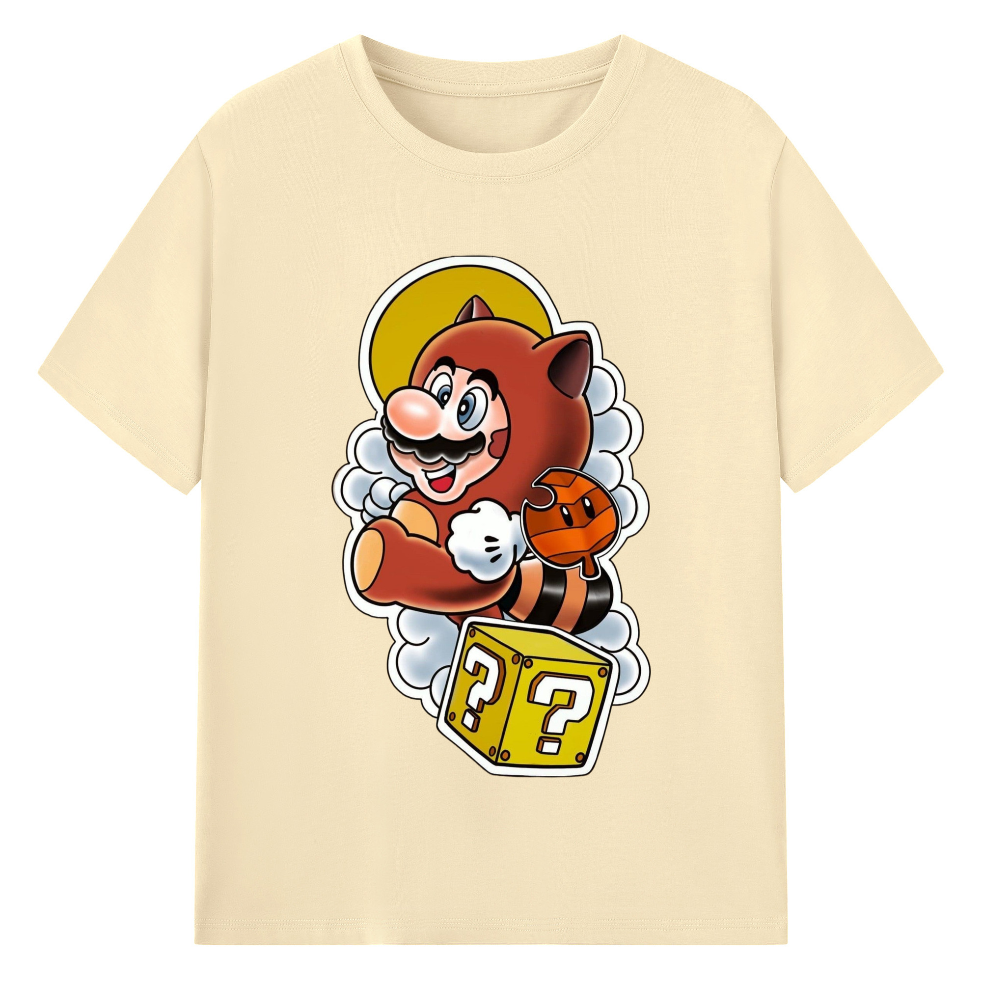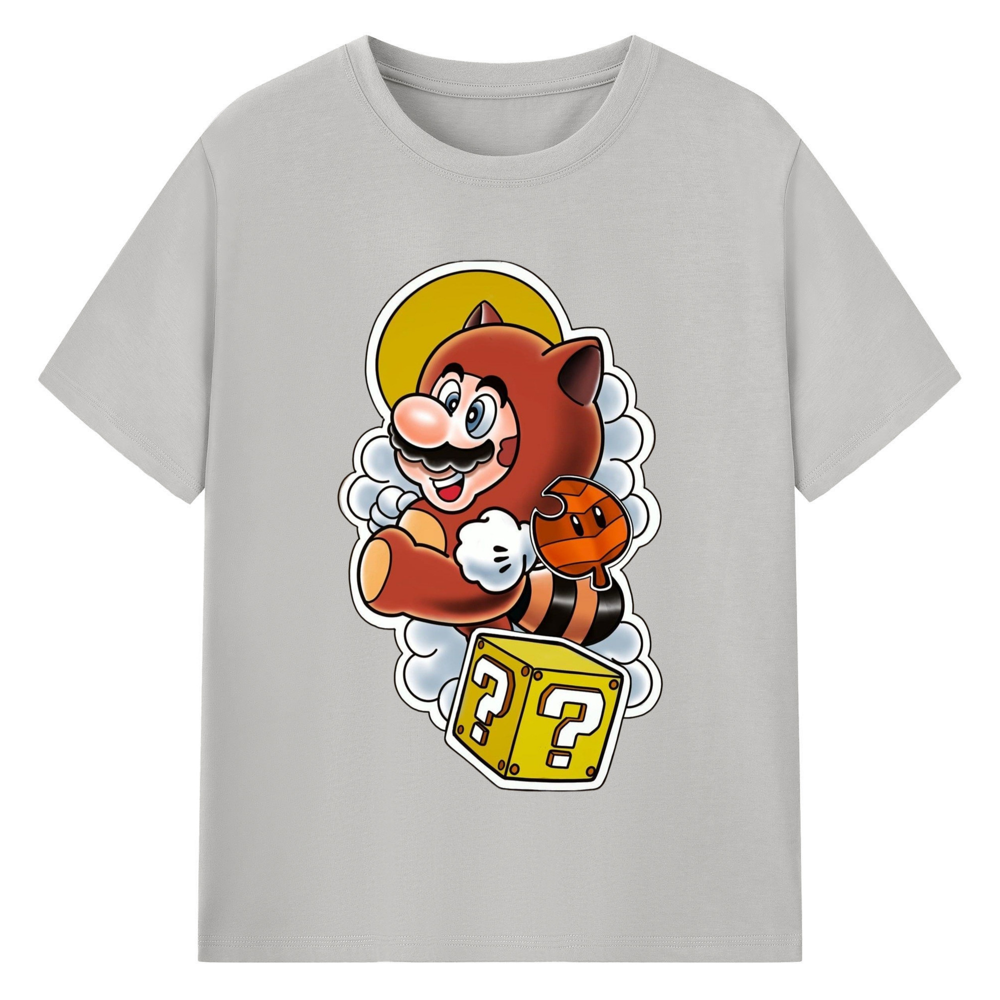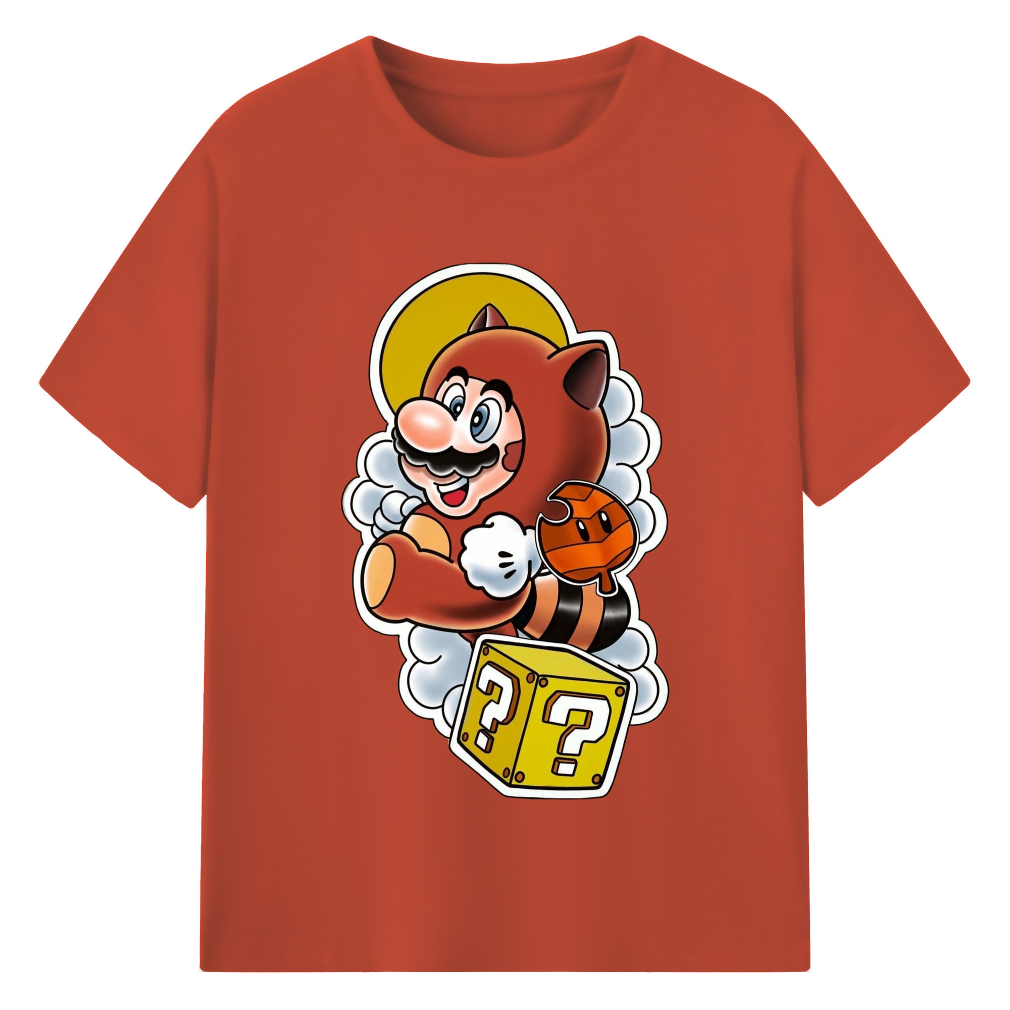 Super Mario raccoon T-shirt - 180g Cotton T-Shirt With Front Heat Transfer Print – Soft, Lightweight, Fitted Design – Comfortable Casual Wear For Sports & Everyday Use