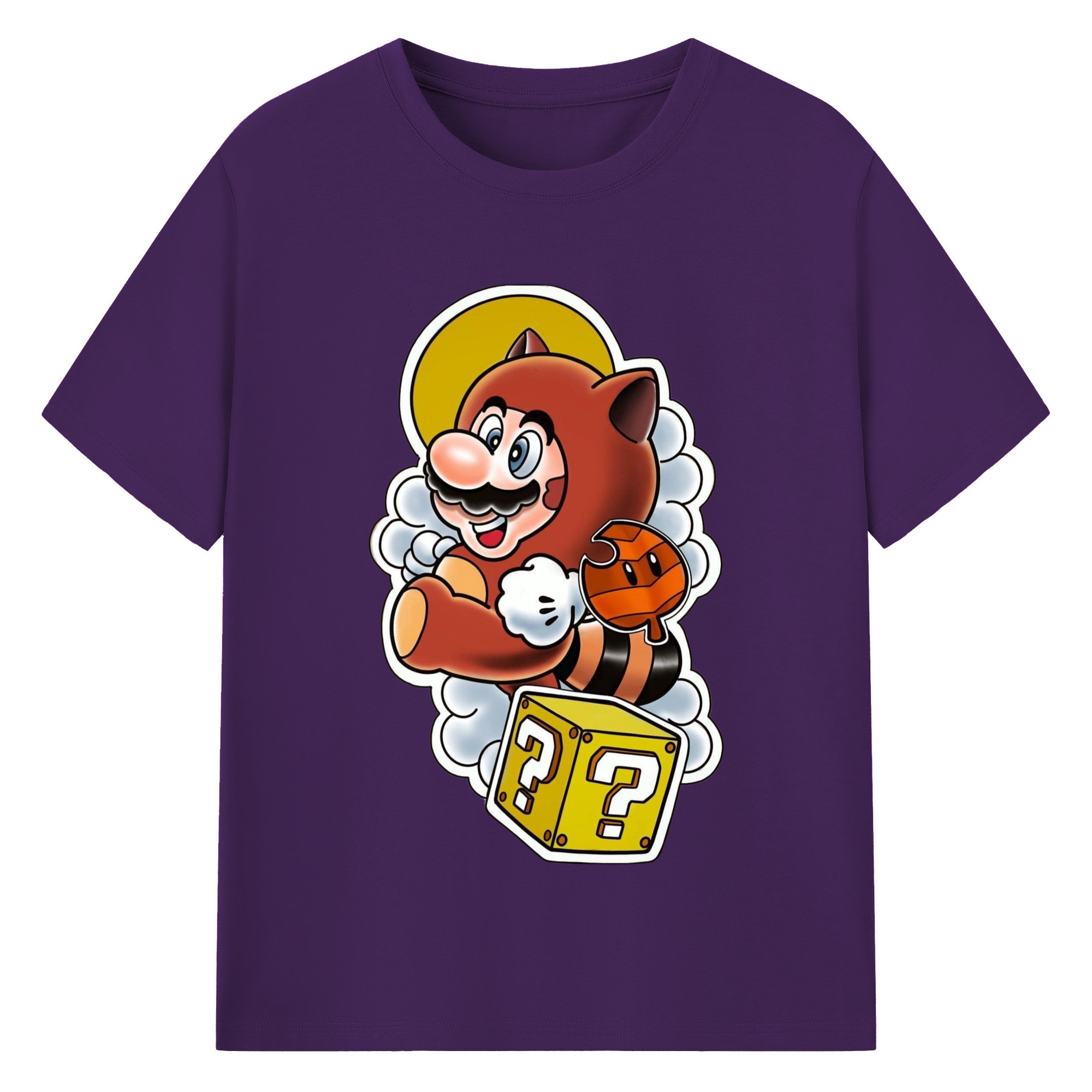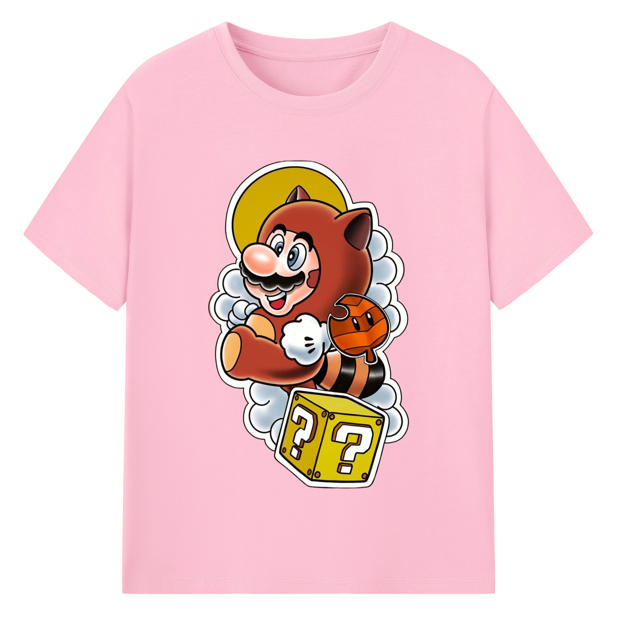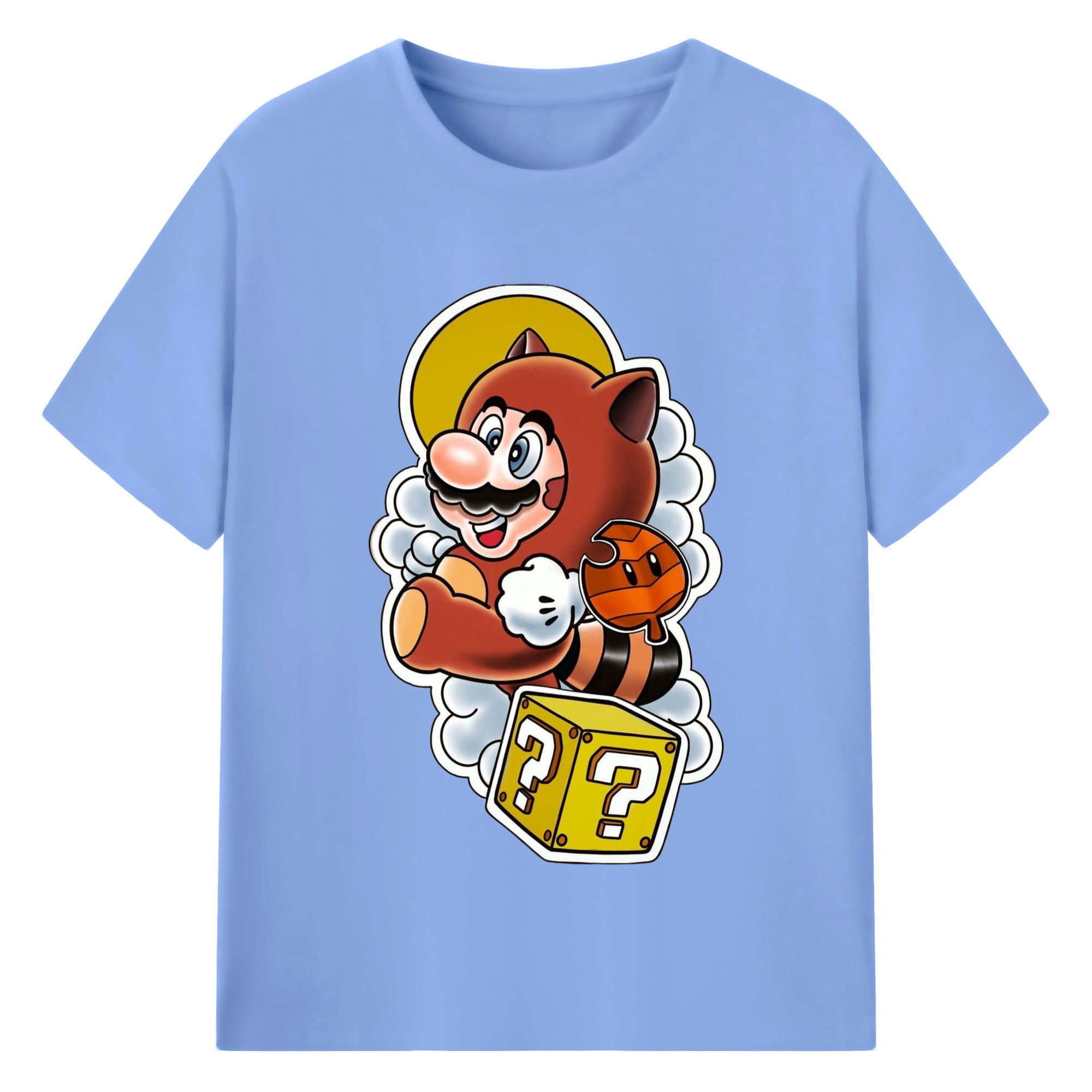 Super Mario raccoon T-shirt - 180g Cotton T-Shirt With Front Heat Transfer Print – Soft, Lightweight, Fitted Design – Comfortable Casual Wear For Sports & Everyday Use