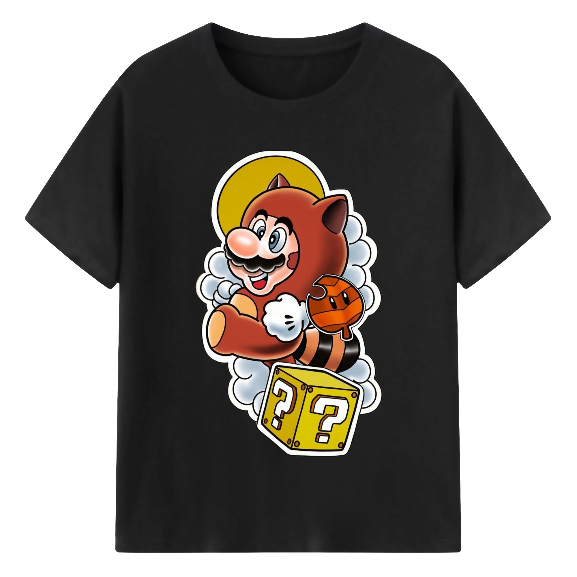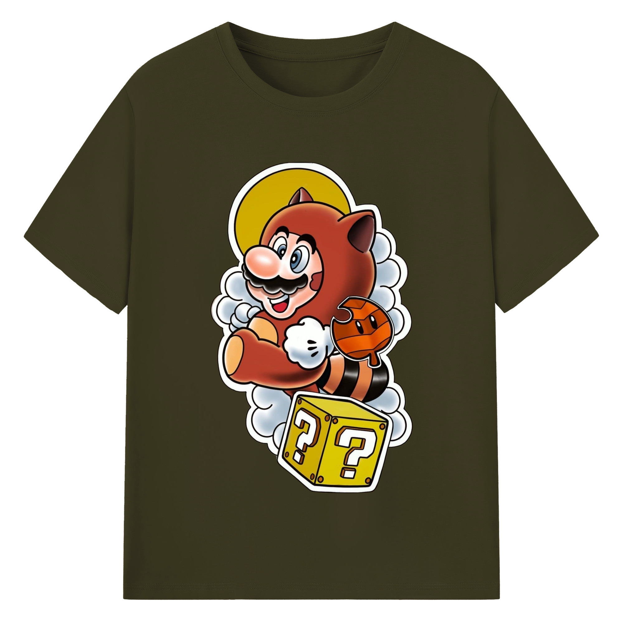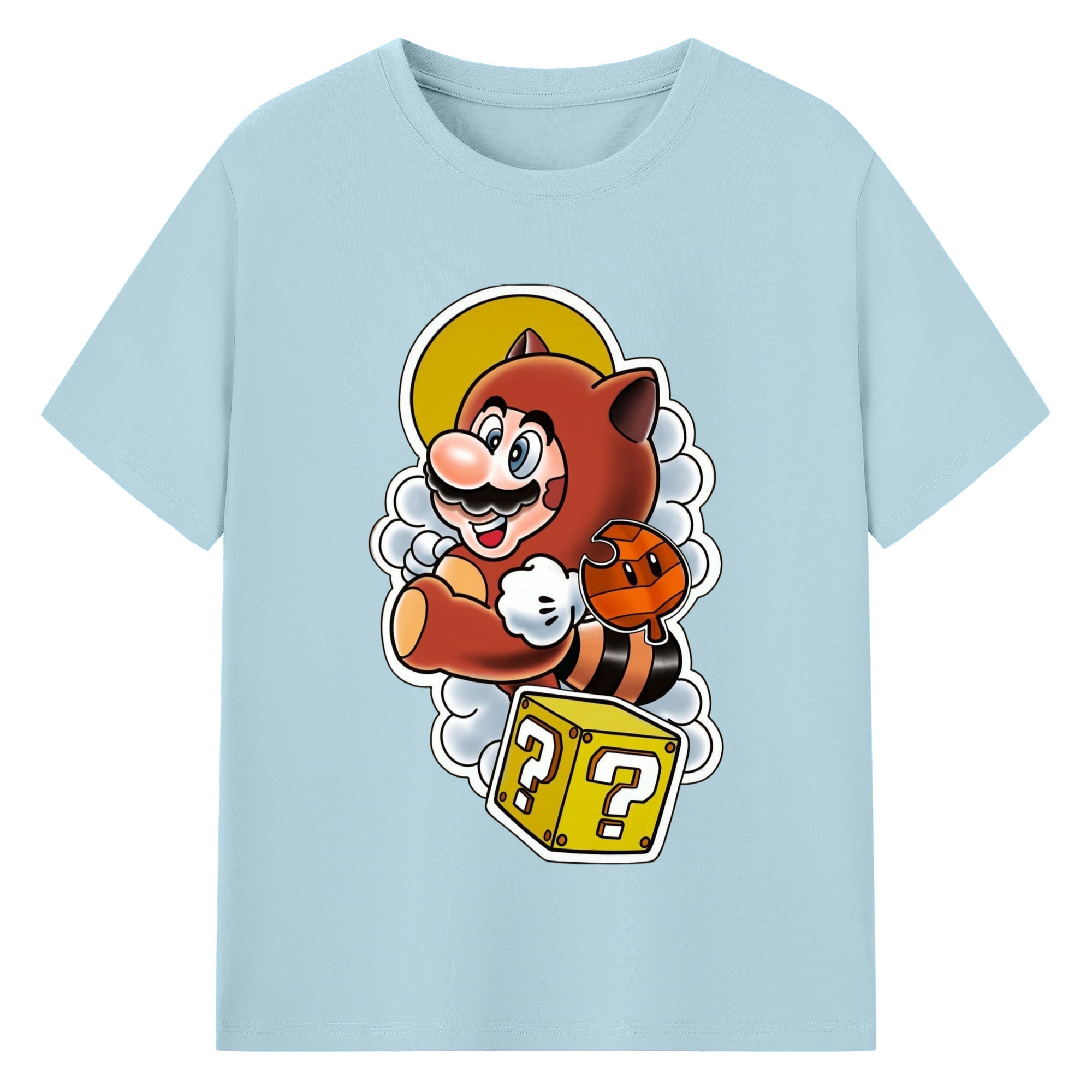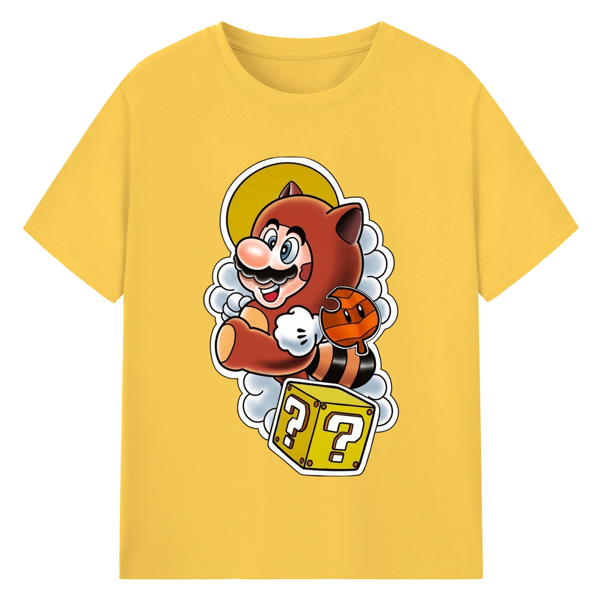 Super Mario raccoon T-shirt - 180g Cotton T-Shirt With Front Heat Transfer Print – Soft, Lightweight, Fitted Design – Comfortable Casual Wear For Sports & Everyday Use