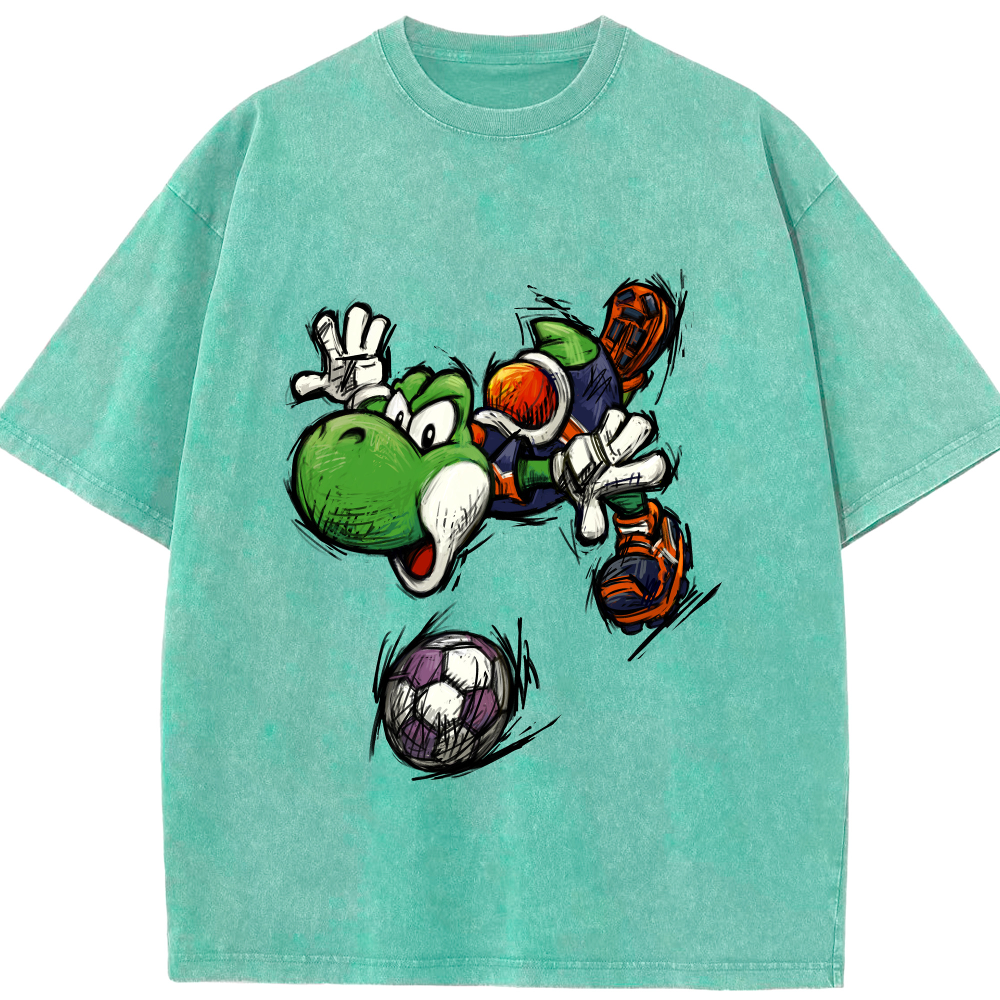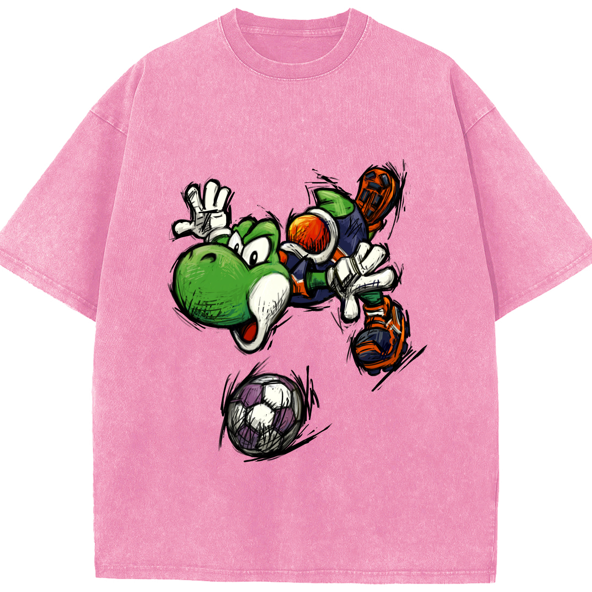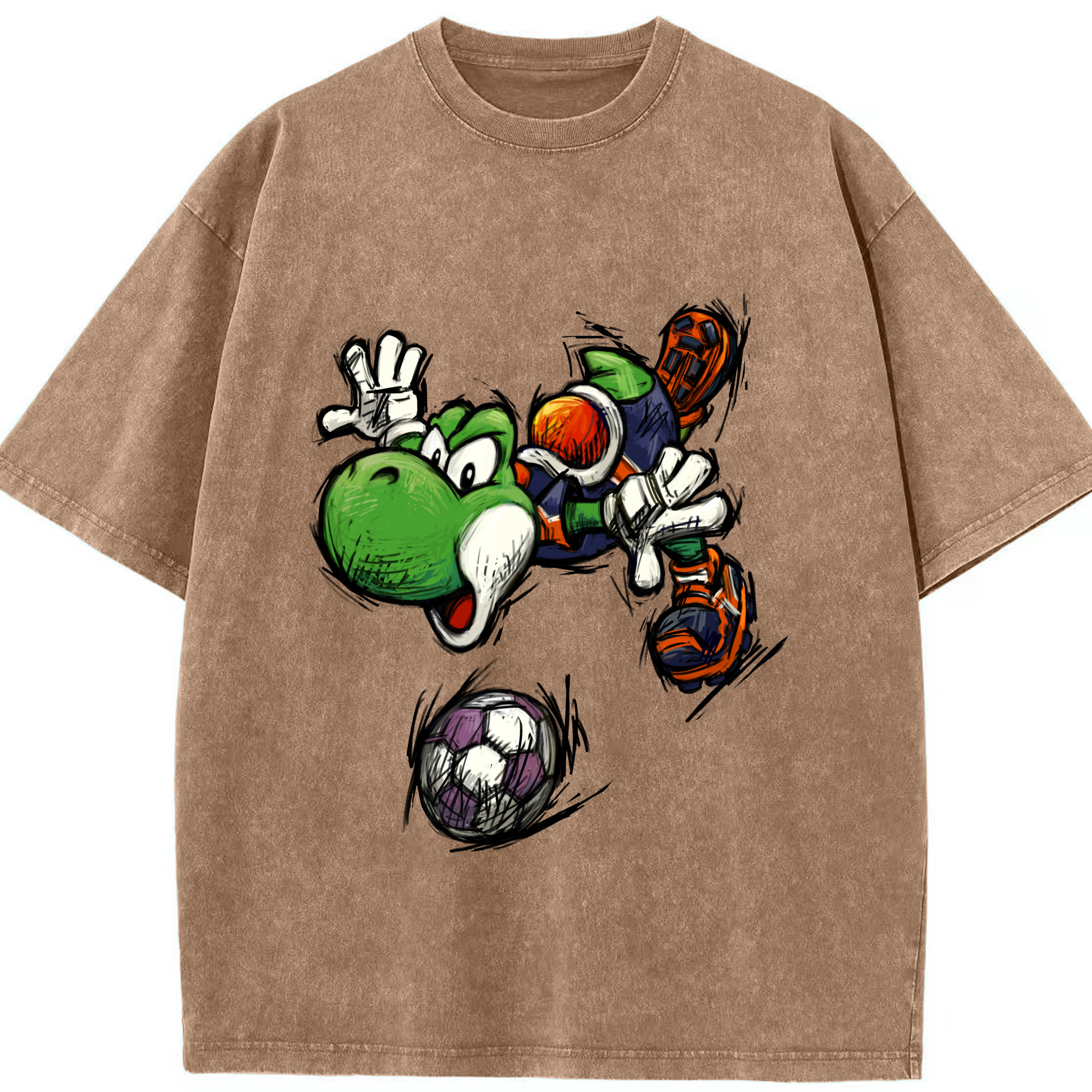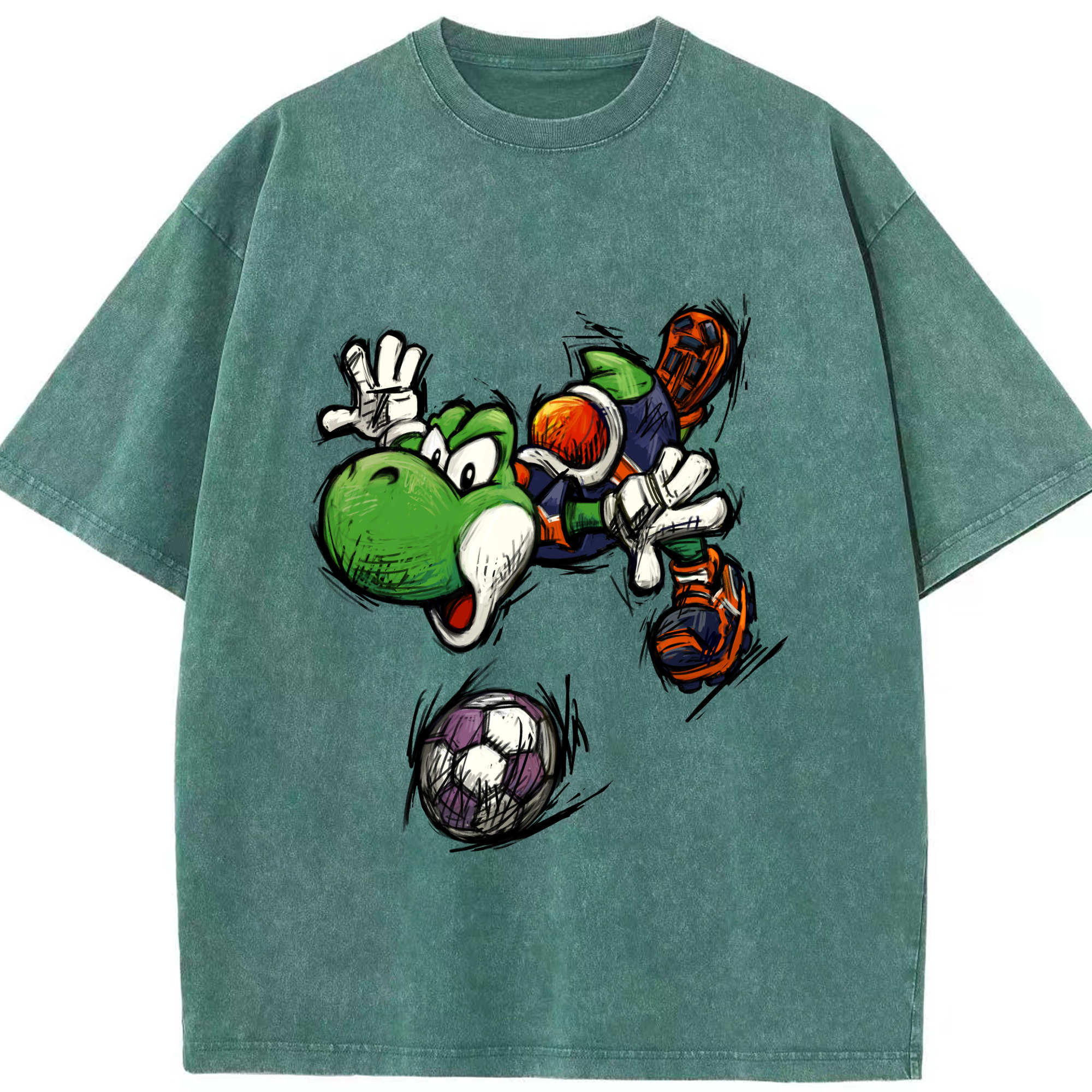 Super Mario Yoshi 'shoot' Painted style Tee - Washed Vintage Look 230g Cotton Oversized T-Shirt With Front Heat Transfer Print – Soft, Lightweight, Stylish Fit – Comfortable Casual Wear For Sports & Everyday Use