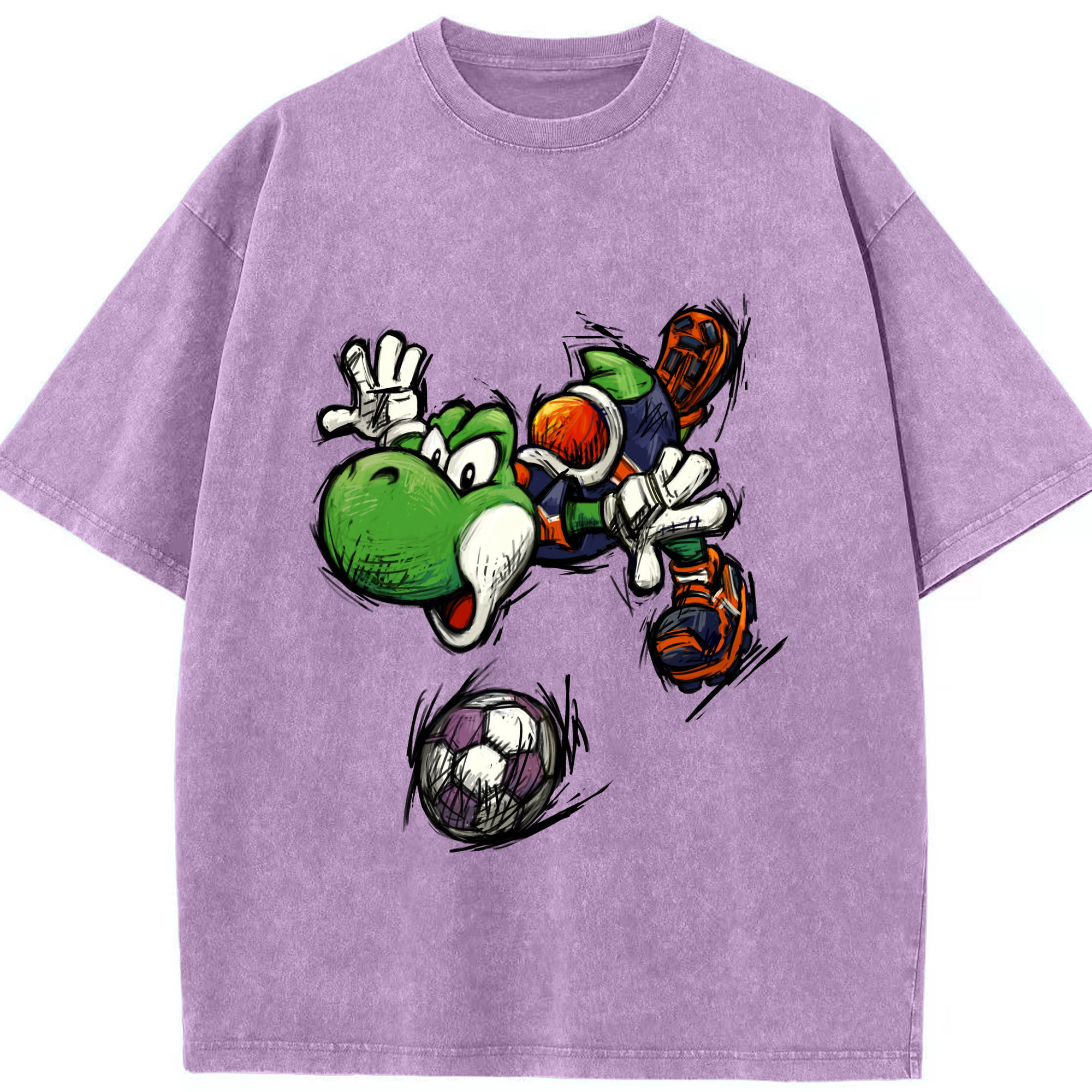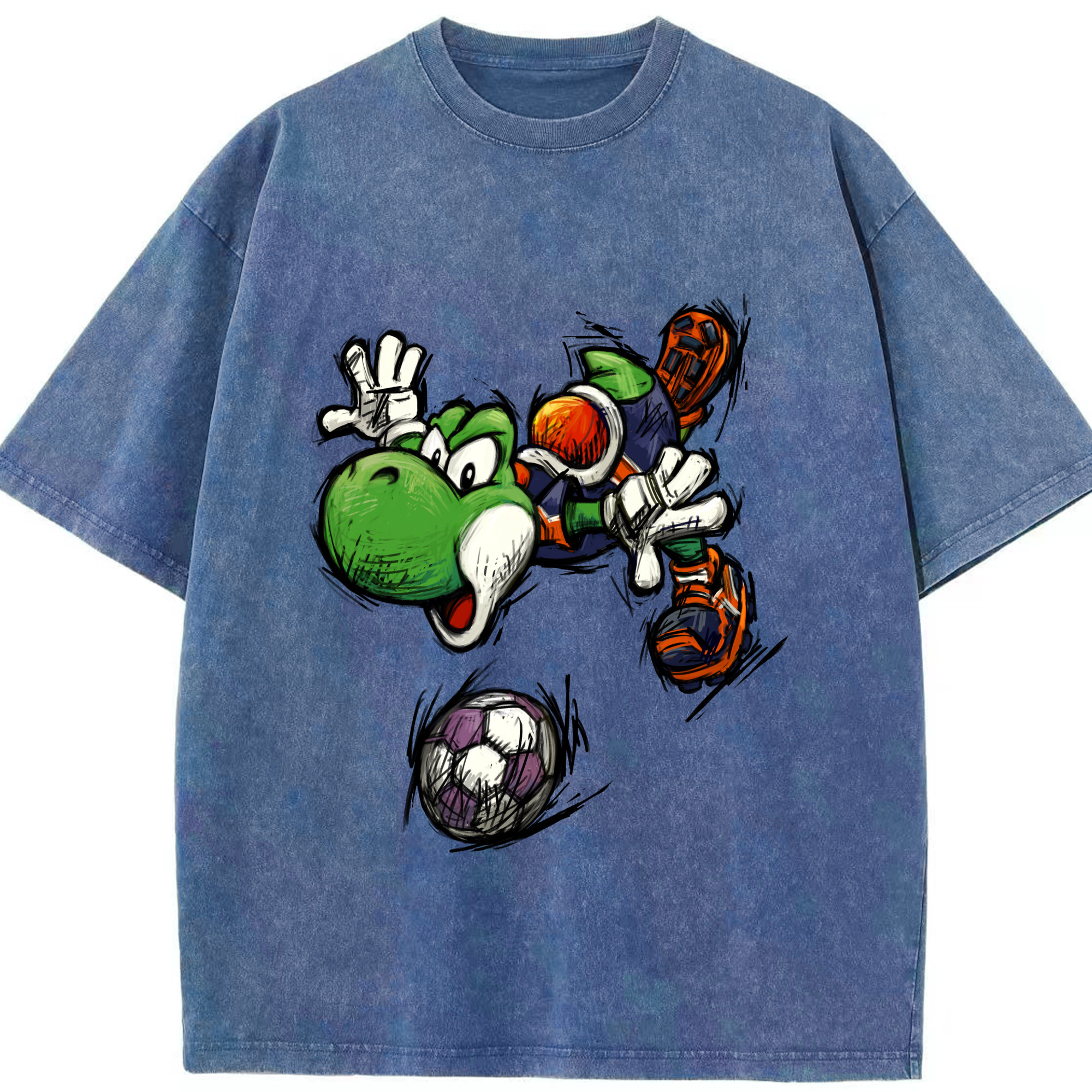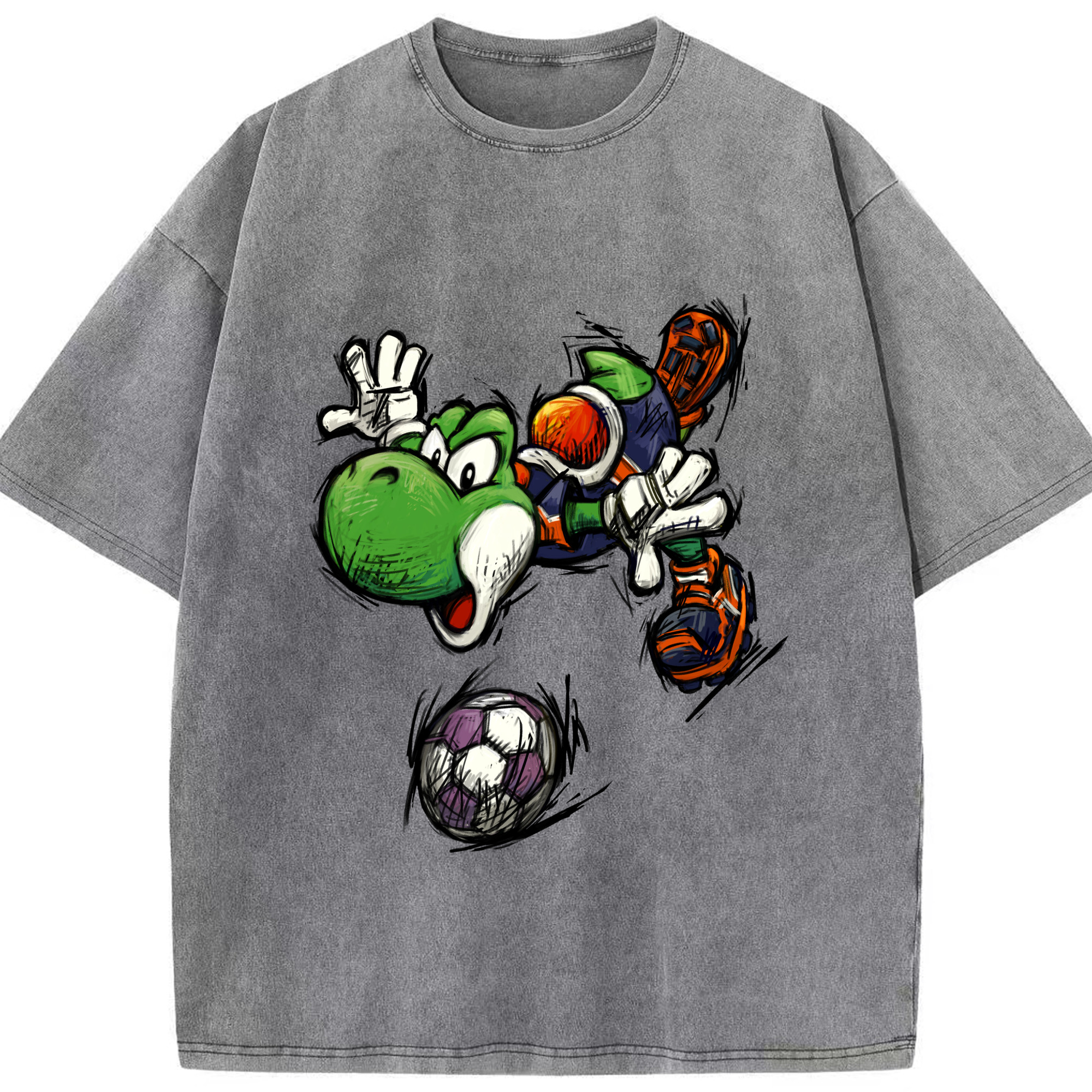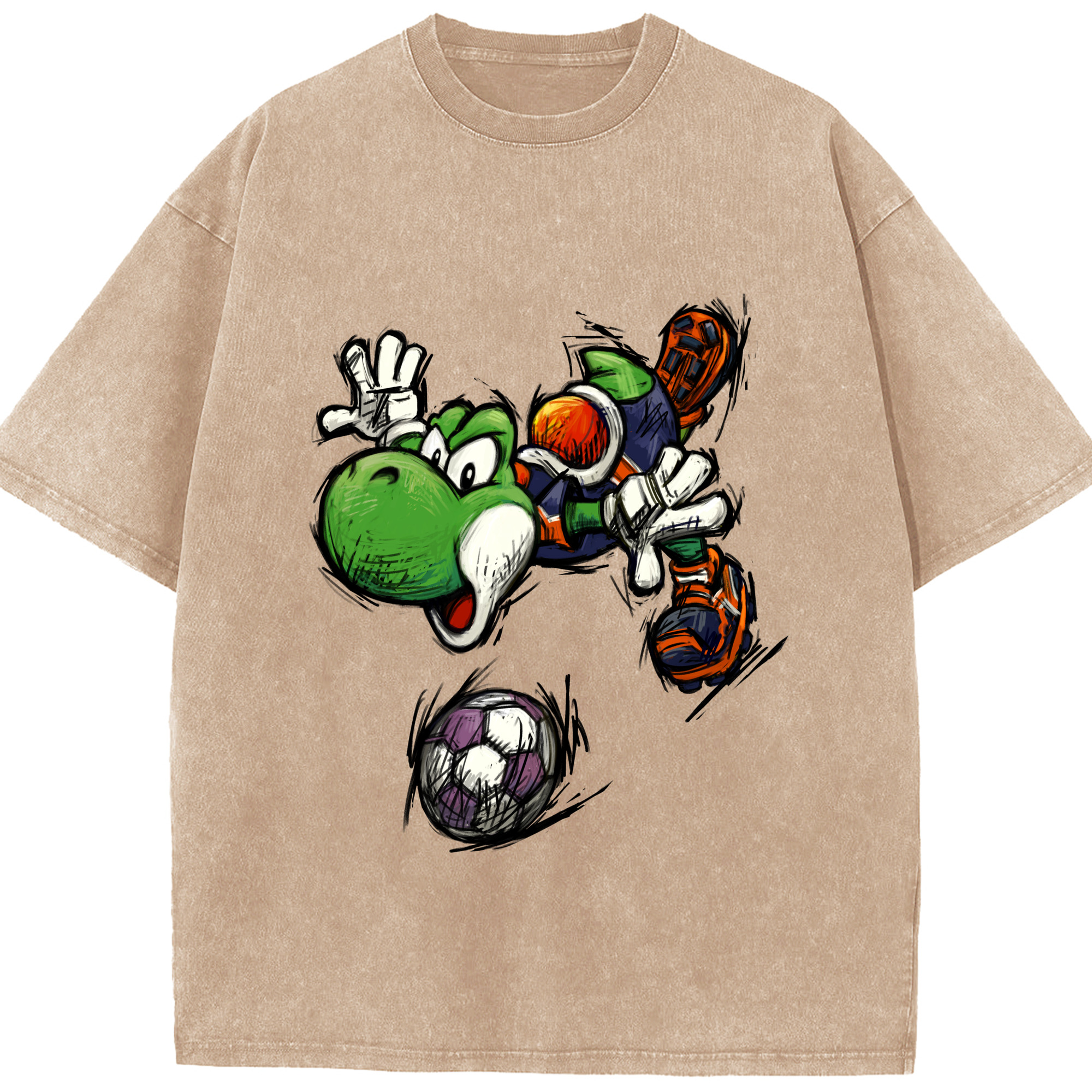 Super Mario Yoshi 'shoot' Painted style Tee - Washed Vintage Look 230g Cotton Oversized T-Shirt With Front Heat Transfer Print – Soft, Lightweight, Stylish Fit – Comfortable Casual Wear For Sports & Everyday Use