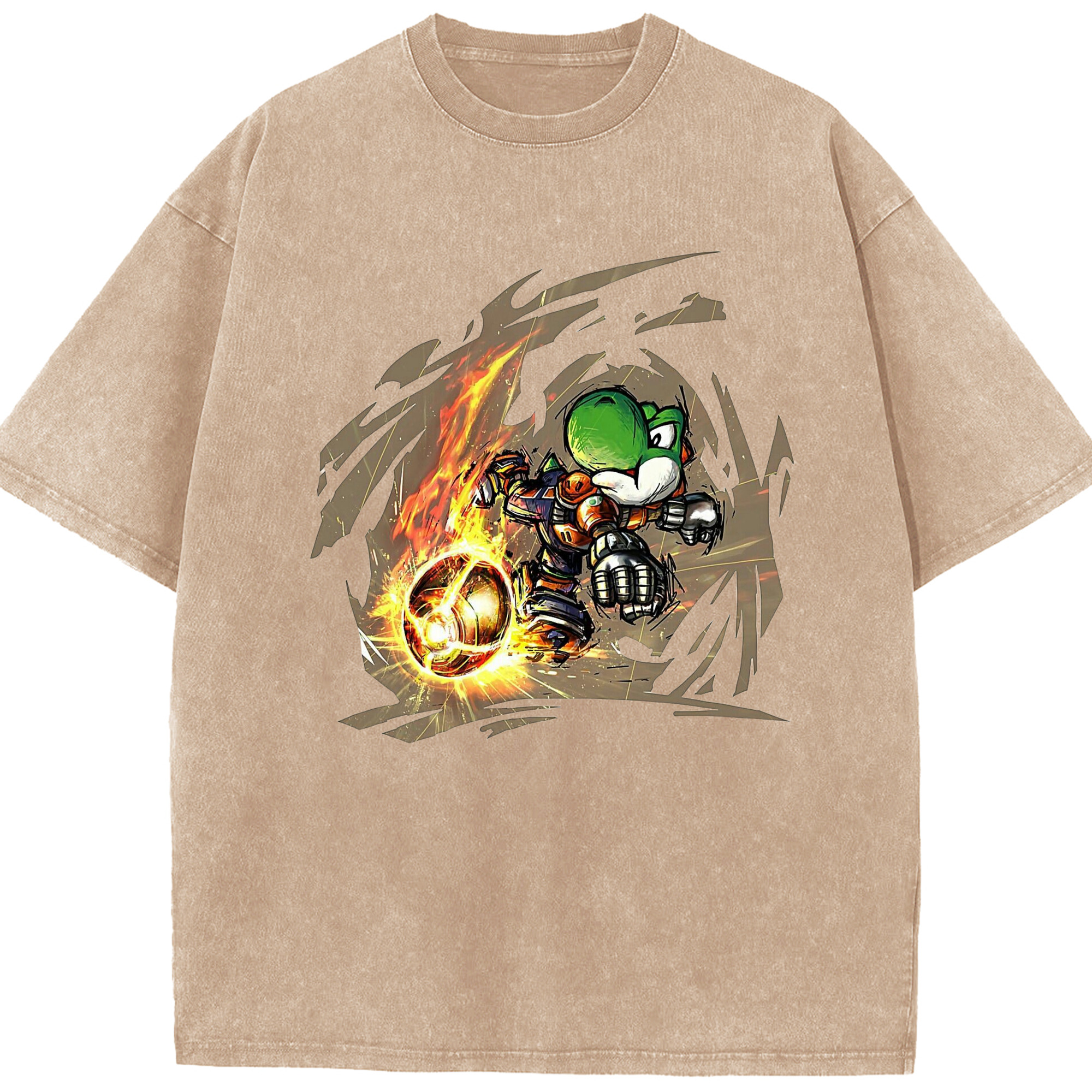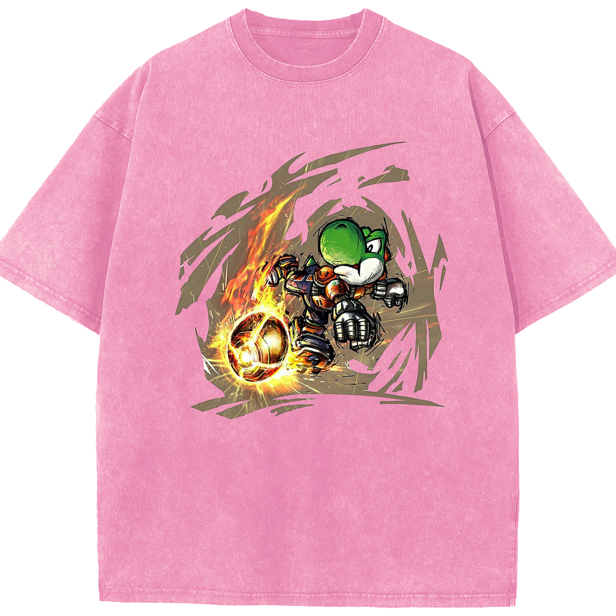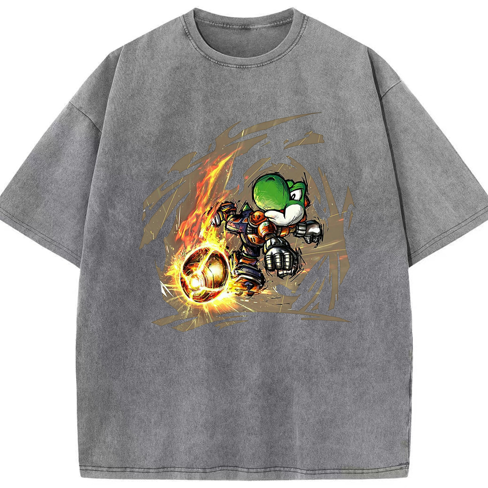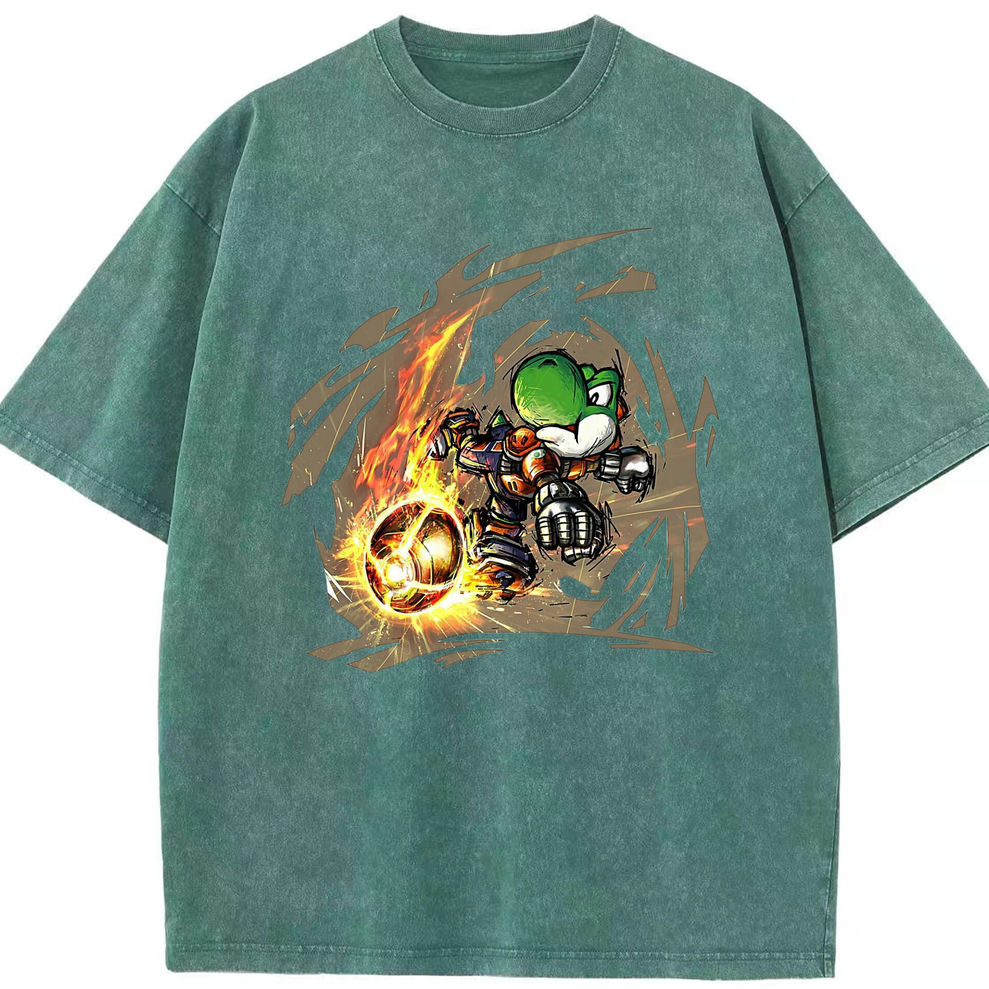 Super Mario Yoshi 'shoot' Painted style T-shirt - Washed Vintage Look 230g Cotton Oversized T-Shirt With Front Heat Transfer Print – Soft, Lightweight, Stylish Fit – Comfortable Casual Wear For Sports & Everyday Use