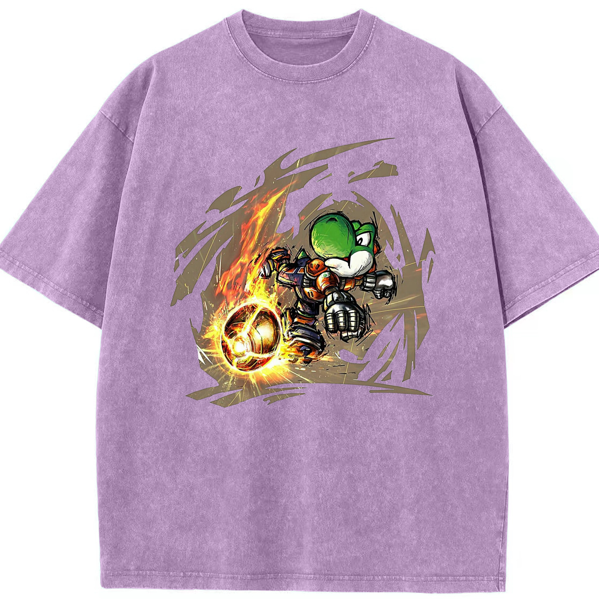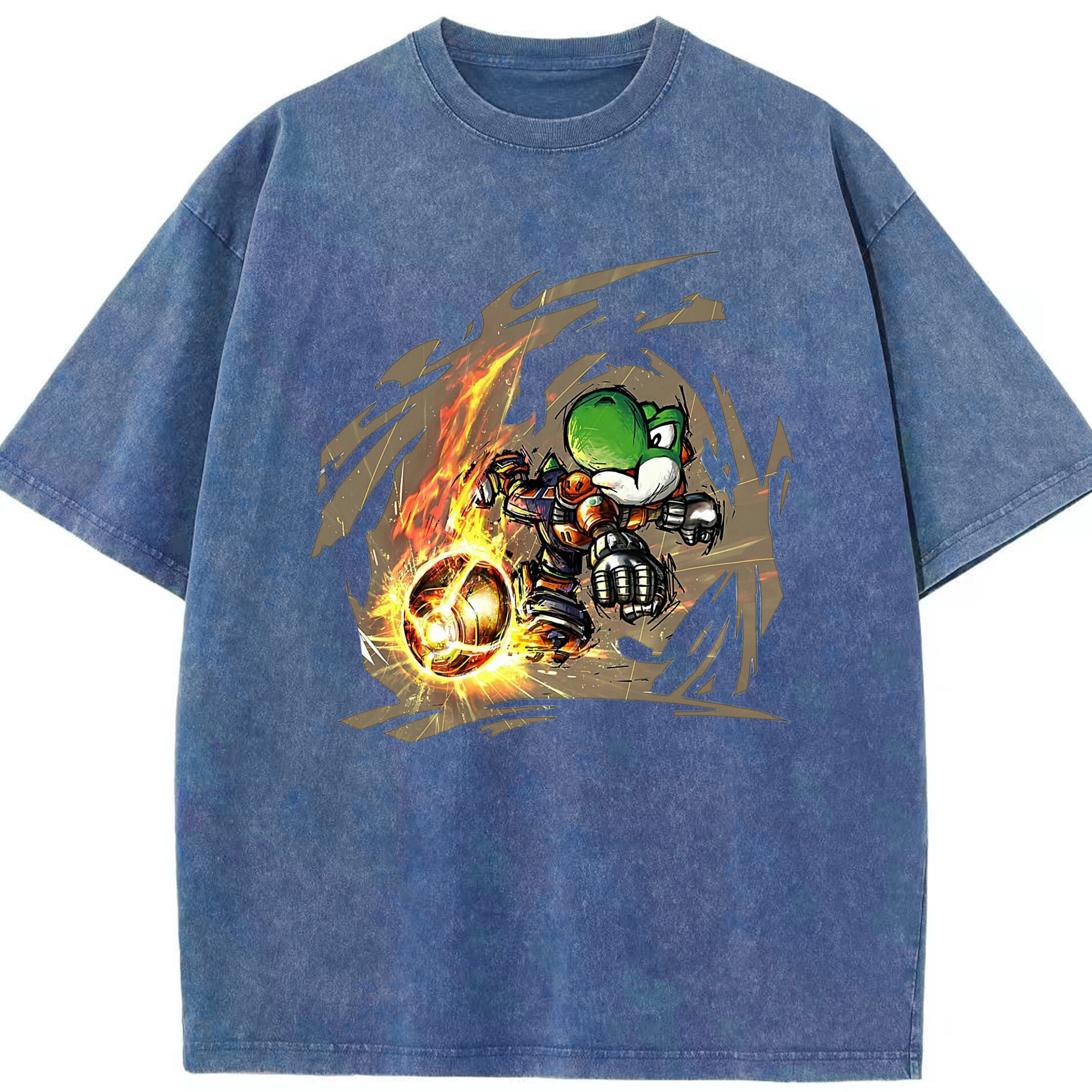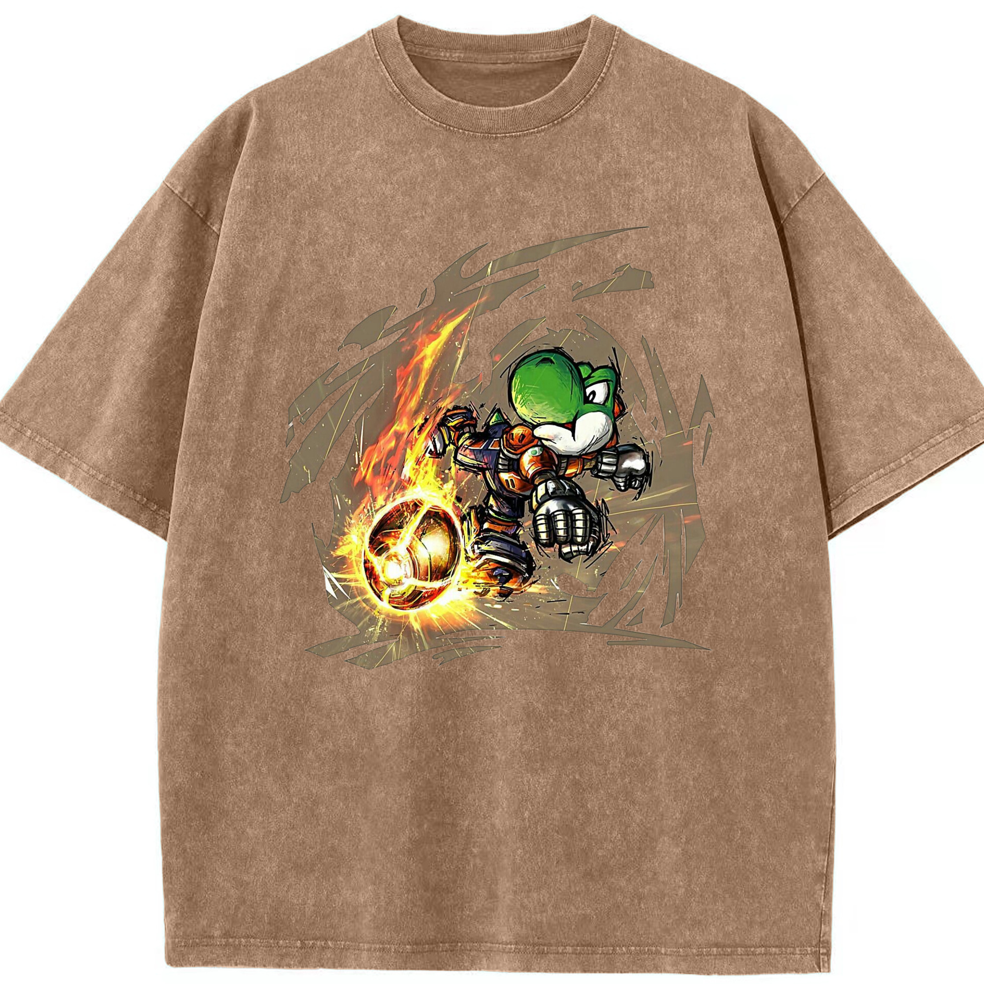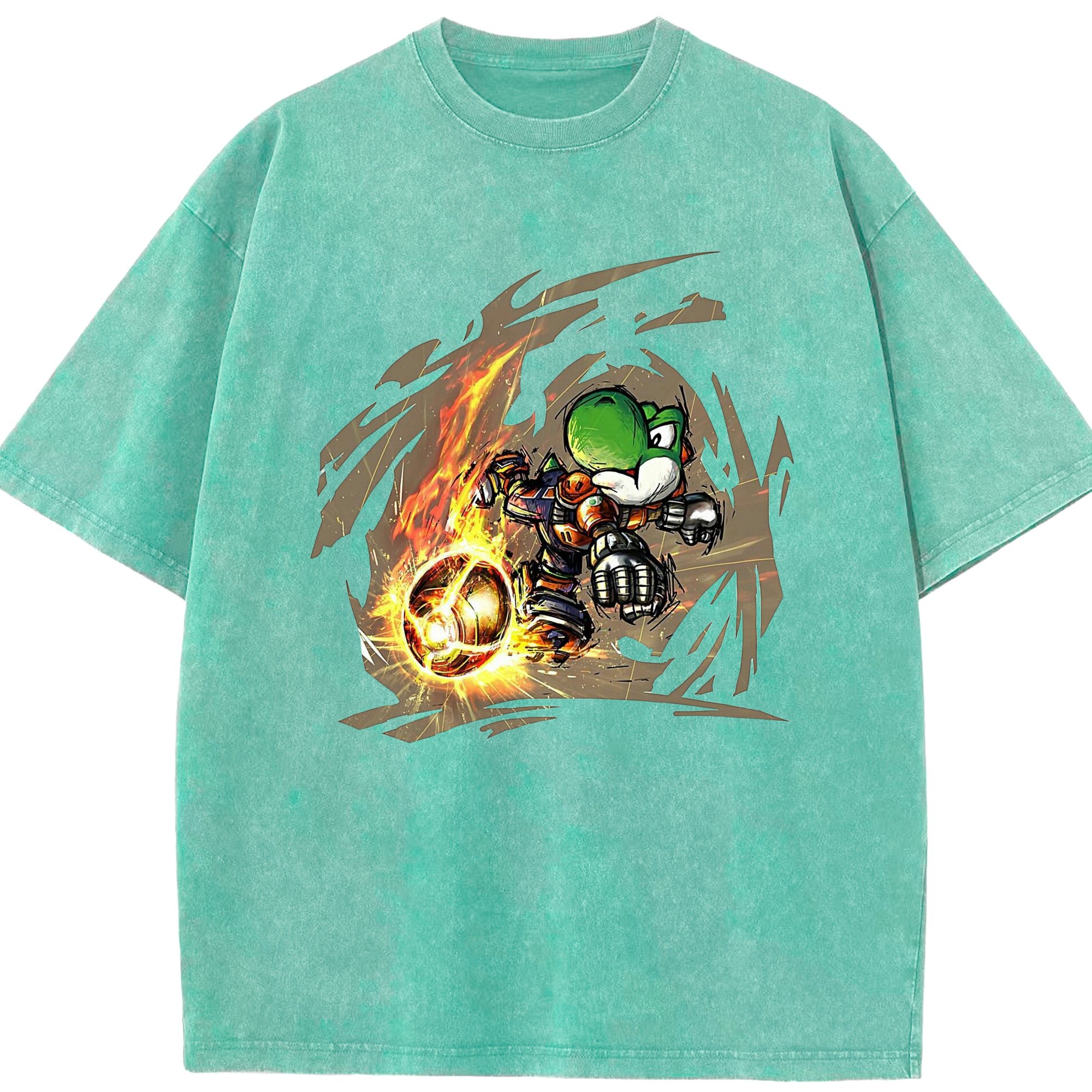 Super Mario Yoshi 'shoot' Painted style T-shirt - Washed Vintage Look 230g Cotton Oversized T-Shirt With Front Heat Transfer Print – Soft, Lightweight, Stylish Fit – Comfortable Casual Wear For Sports & Everyday Use