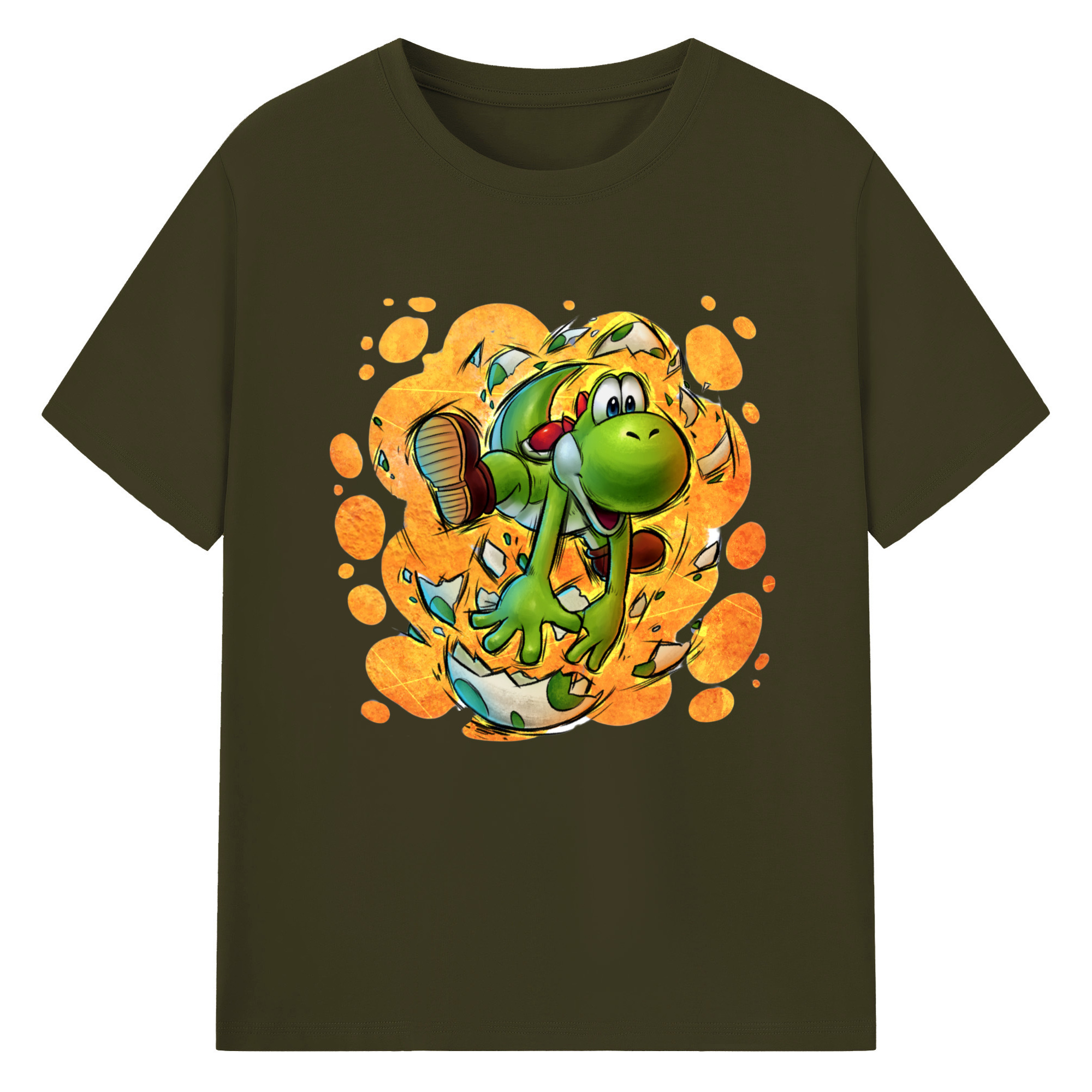 Super Mario Yoshi Painted style Tee - 180g Cotton T-Shirt With Front Heat Transfer Print – Soft, Lightweight, Fitted Design – Comfortable Casual Wear For Sports & Everyday Use
