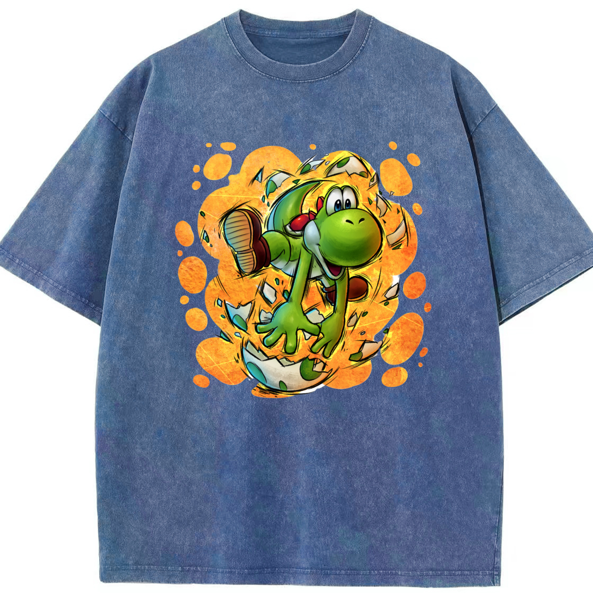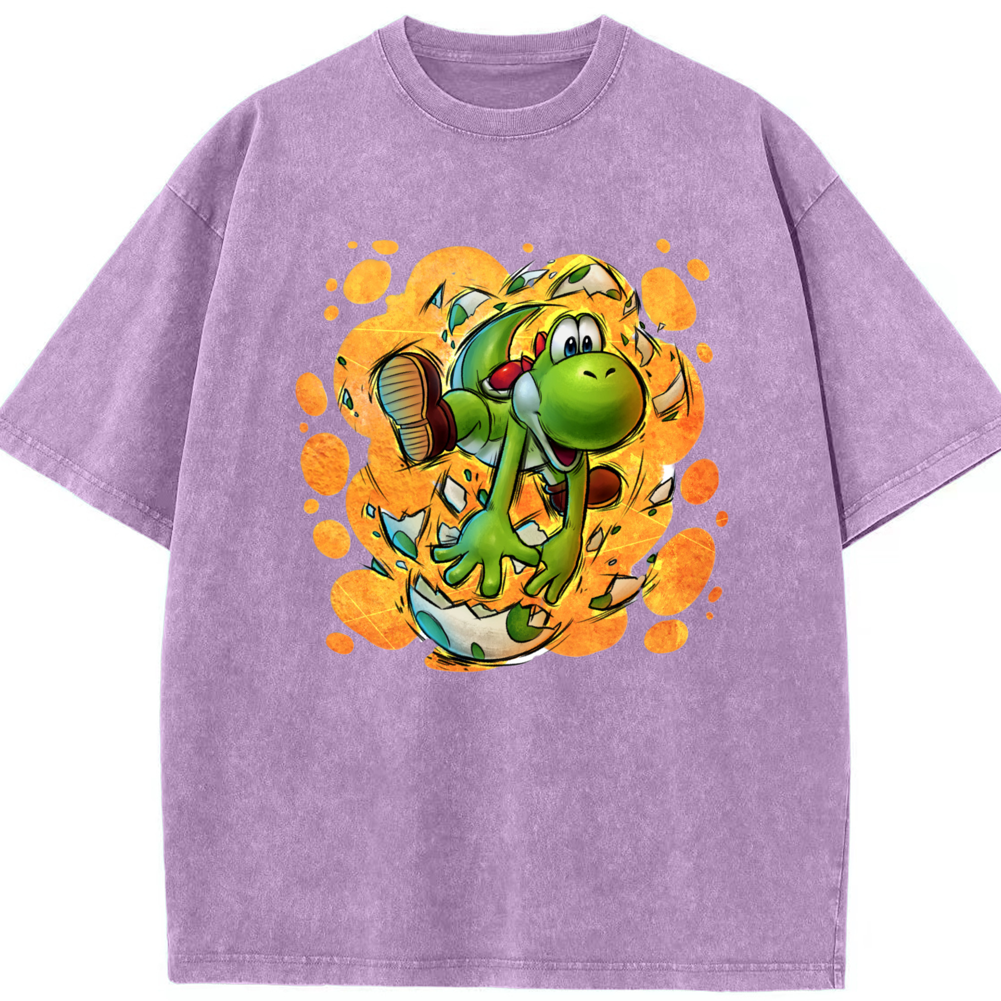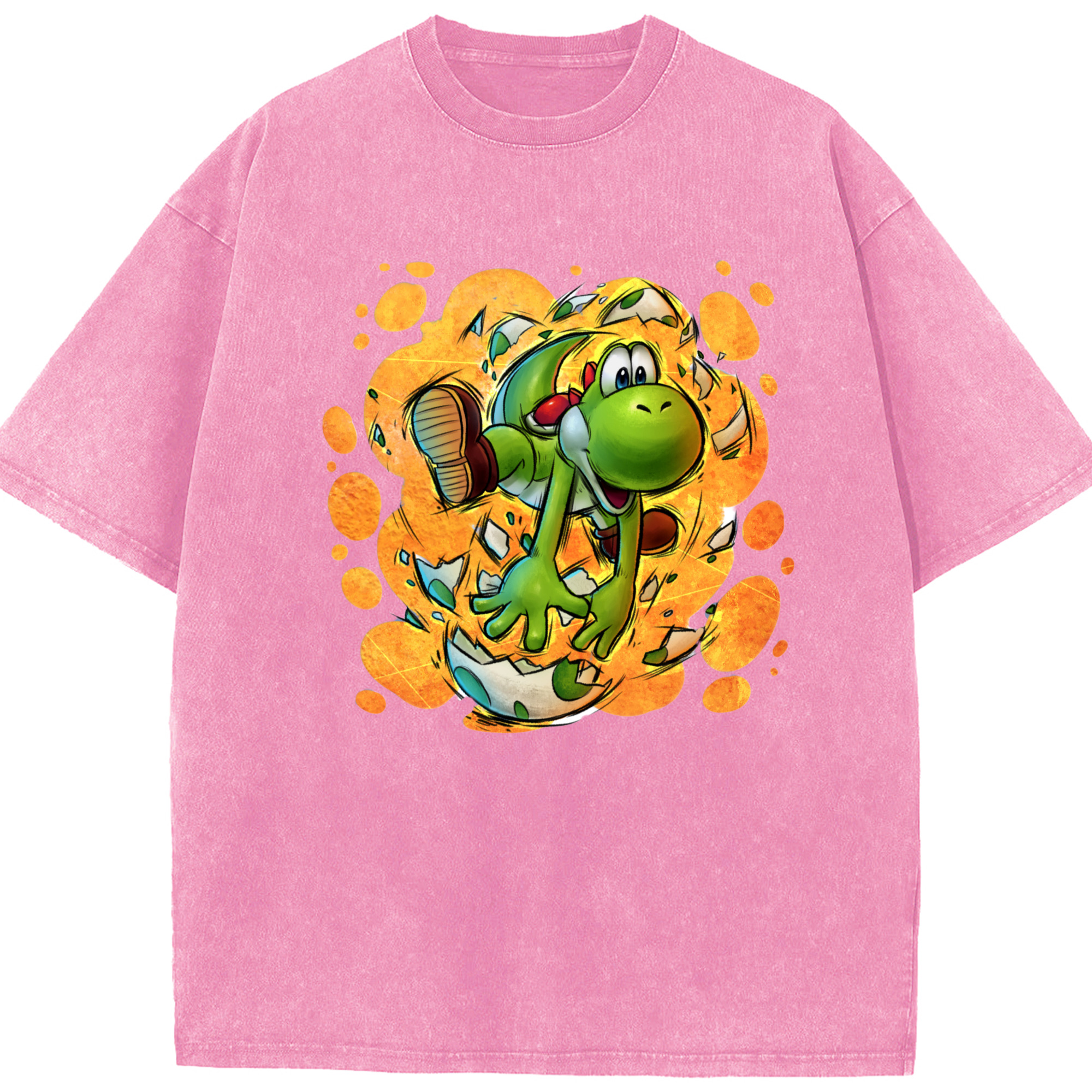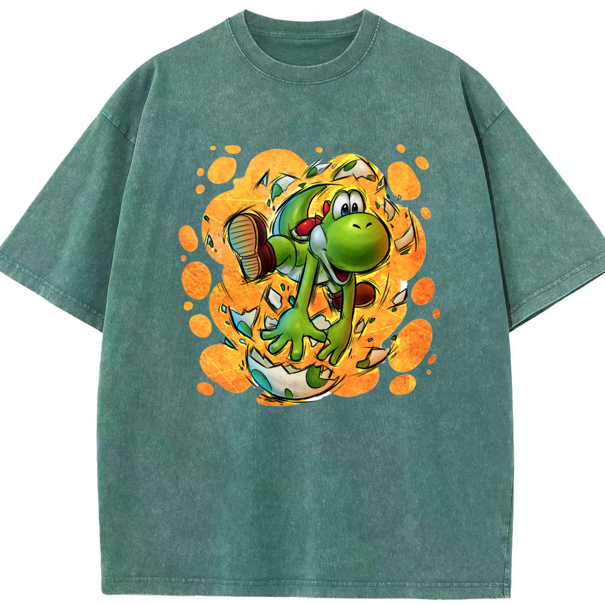 Super Mario Yoshi Painted style Tee - Washed Vintage Look 230g Cotton Oversized T-Shirt With Front Heat Transfer Print – Soft, Lightweight, Stylish Fit – Comfortable Casual Wear For Sports & Everyday Use