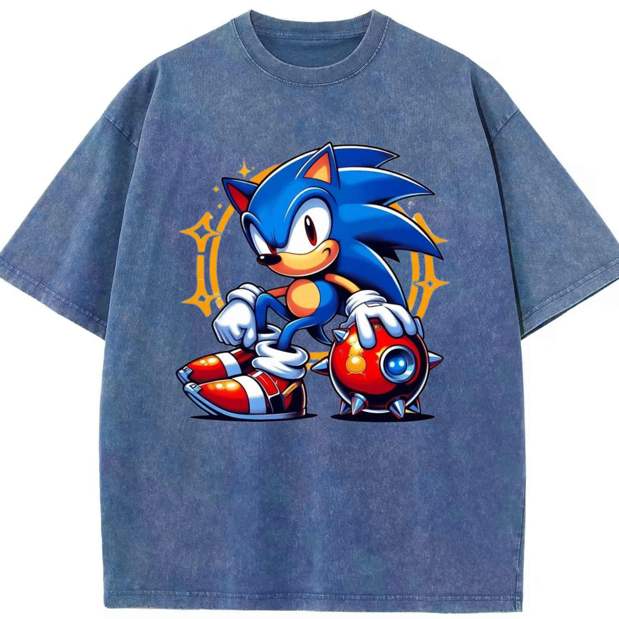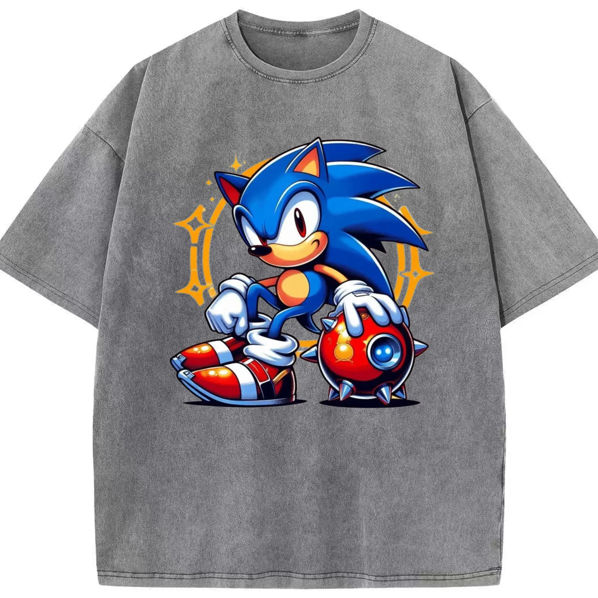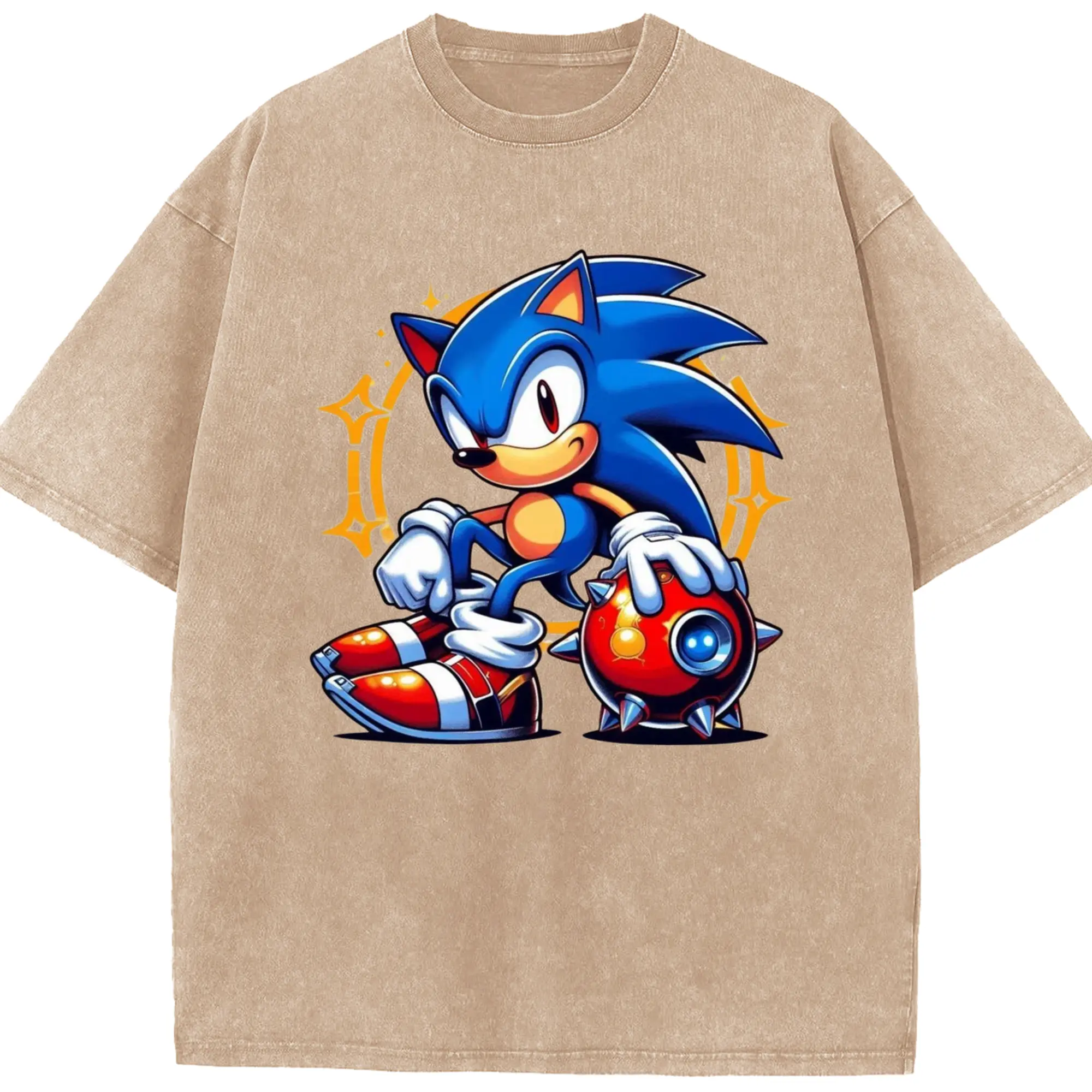 Super Sonic art t-shirt - Washed Vintage Look 230g Cotton Oversized T-Shirt With Front Heat Transfer Print – Soft, Lightweight, Stylish Fit – Comfortable Casual Wear For Sports & Everyday Use