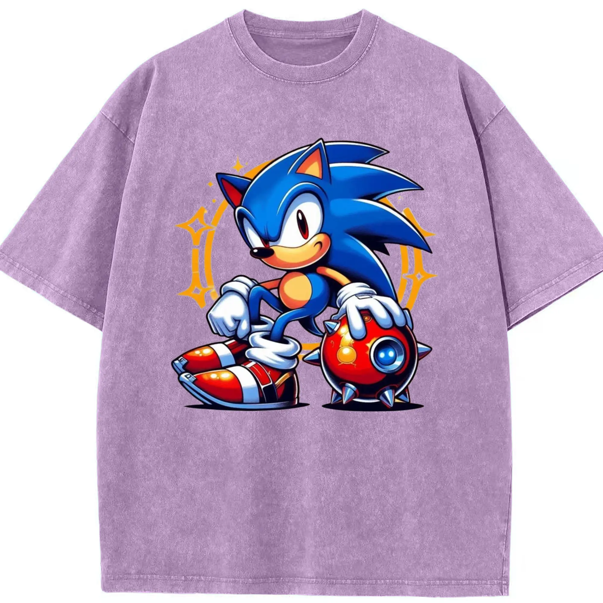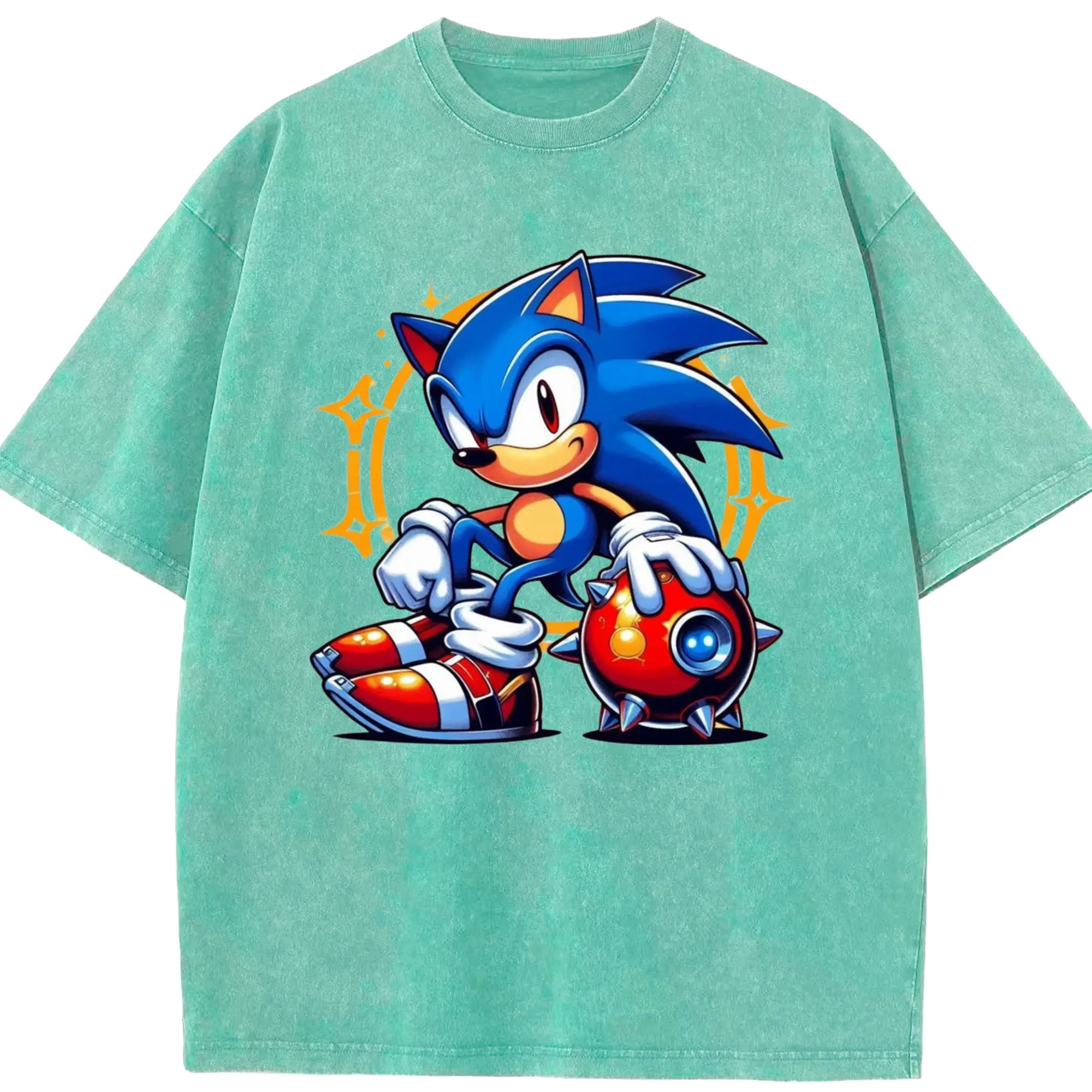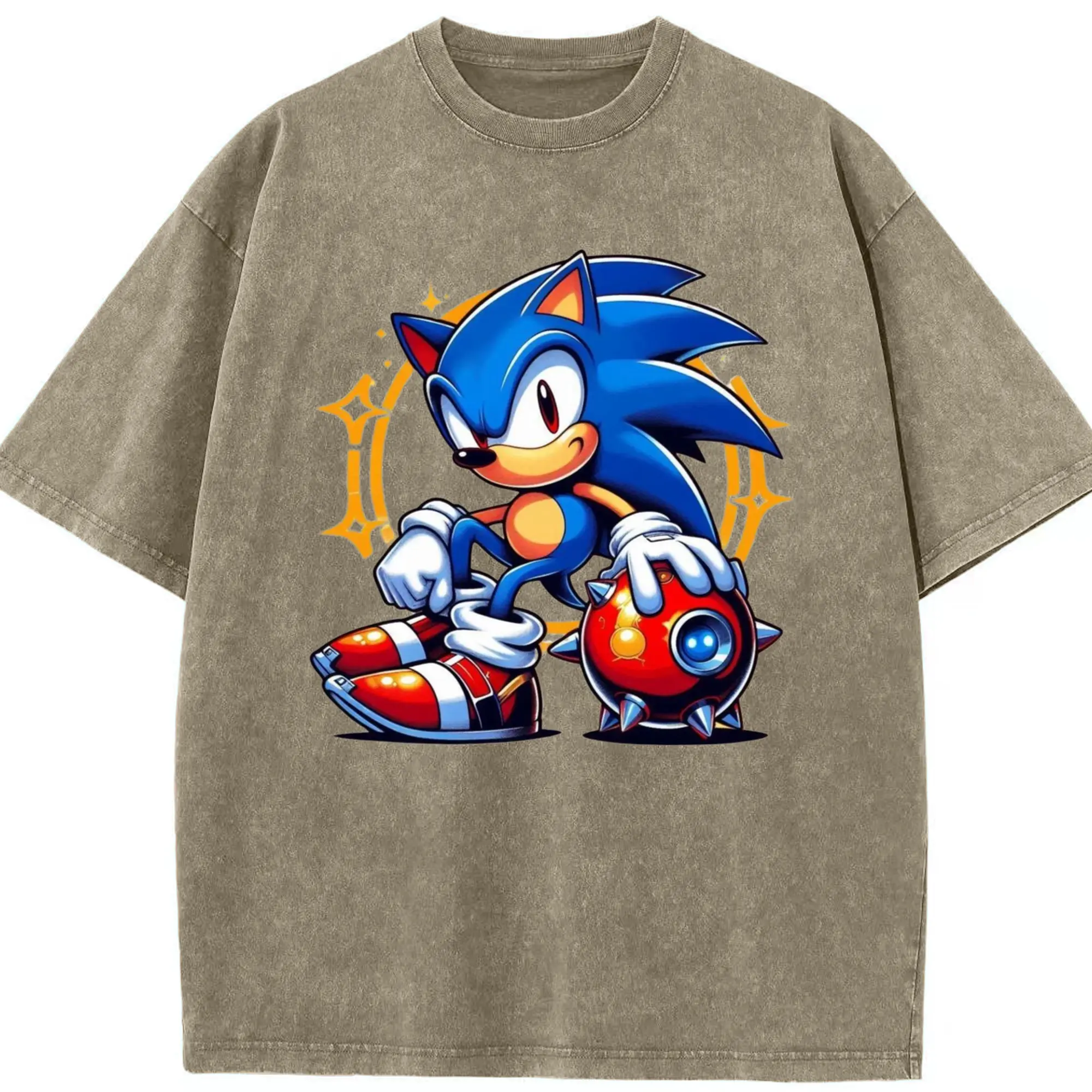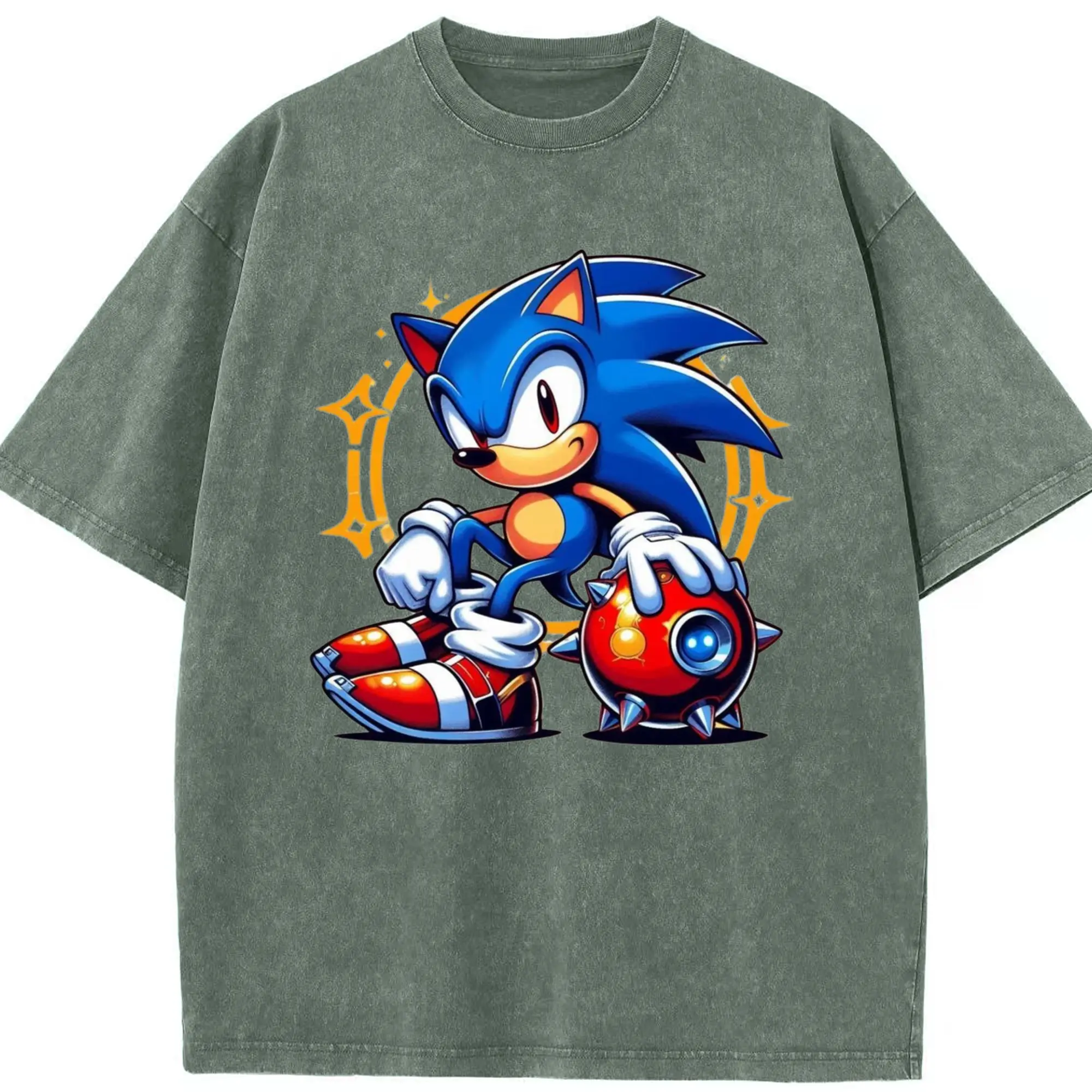 Super Sonic art t-shirt - Washed Vintage Look 230g Cotton Oversized T-Shirt With Front Heat Transfer Print – Soft, Lightweight, Stylish Fit – Comfortable Casual Wear For Sports & Everyday Use