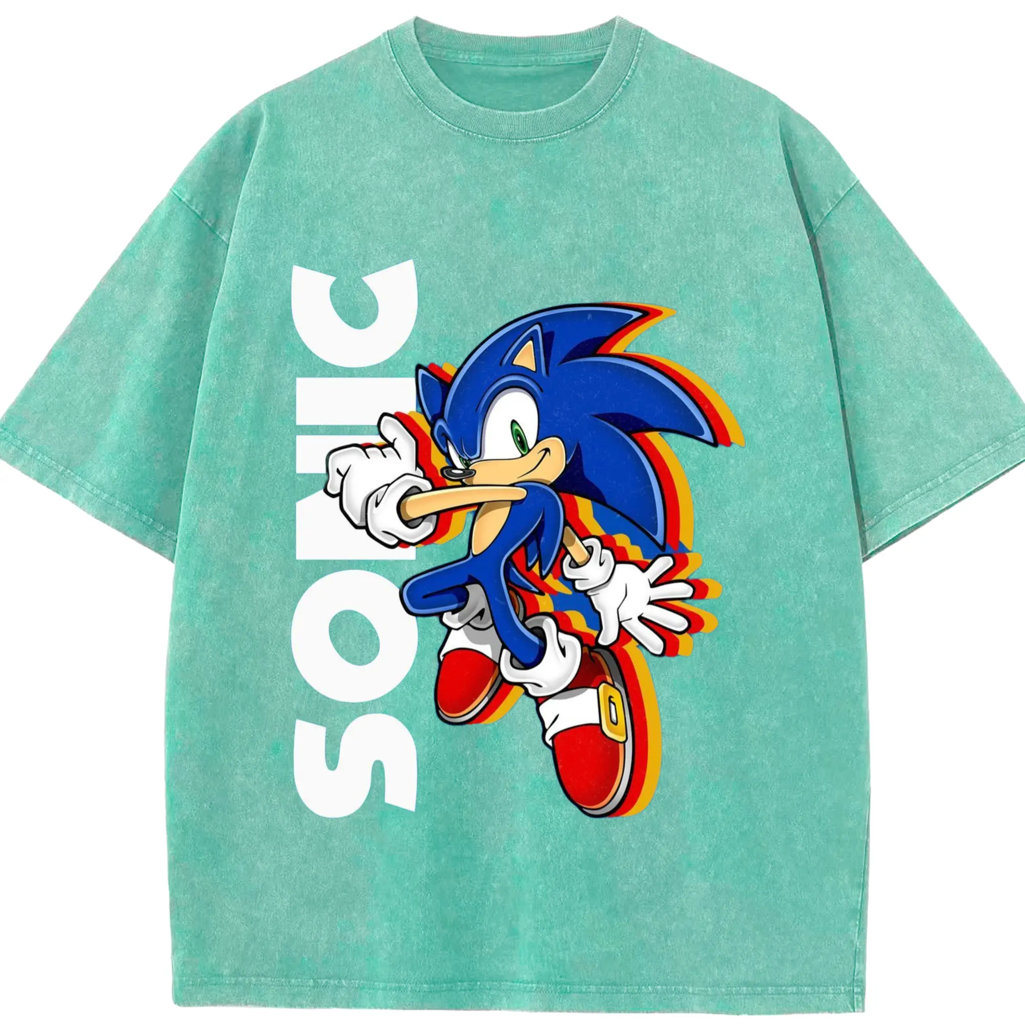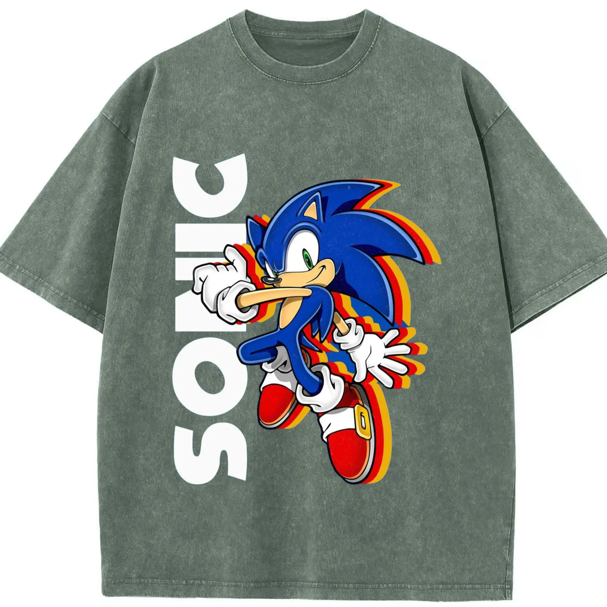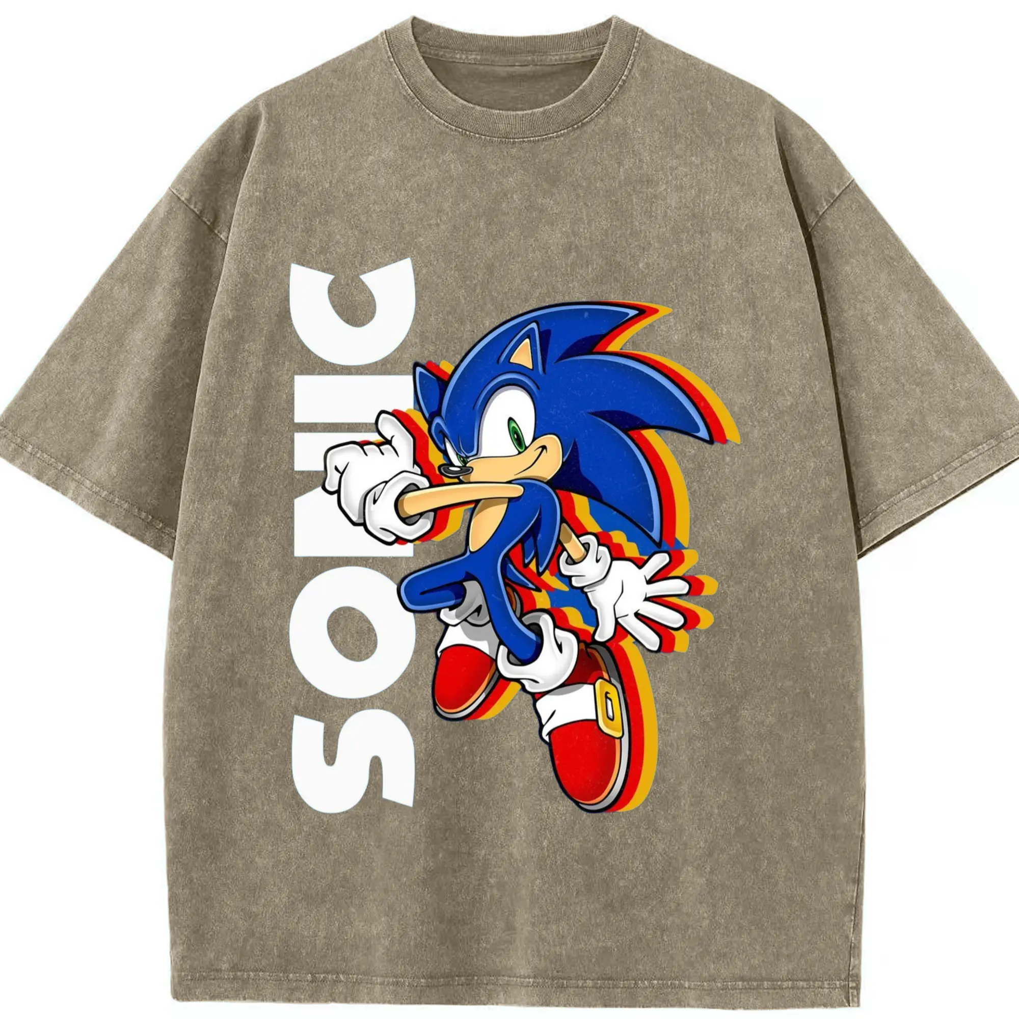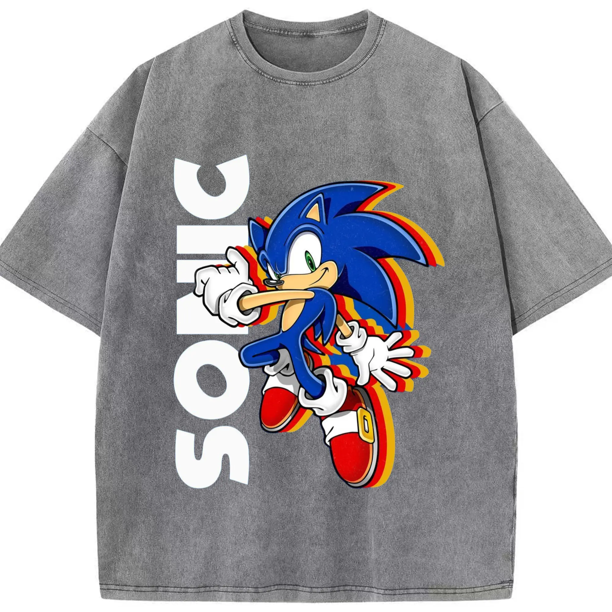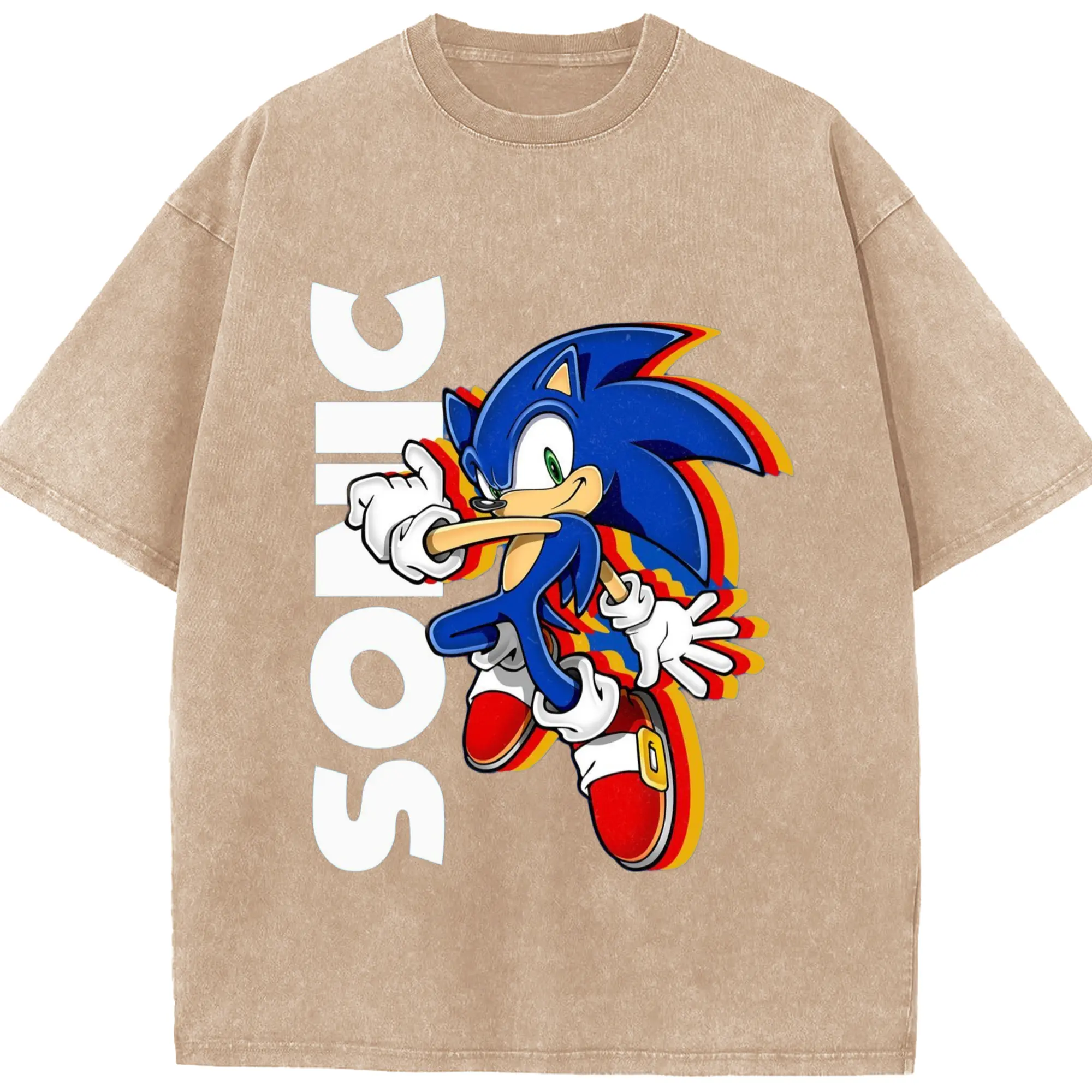 Super Sonic classic shirt - Washed Vintage Look 230g Cotton Oversized T-Shirt With Front Heat Transfer Print – Soft, Lightweight, Stylish Fit – Comfortable Casual Wear For Sports & Everyday Use
