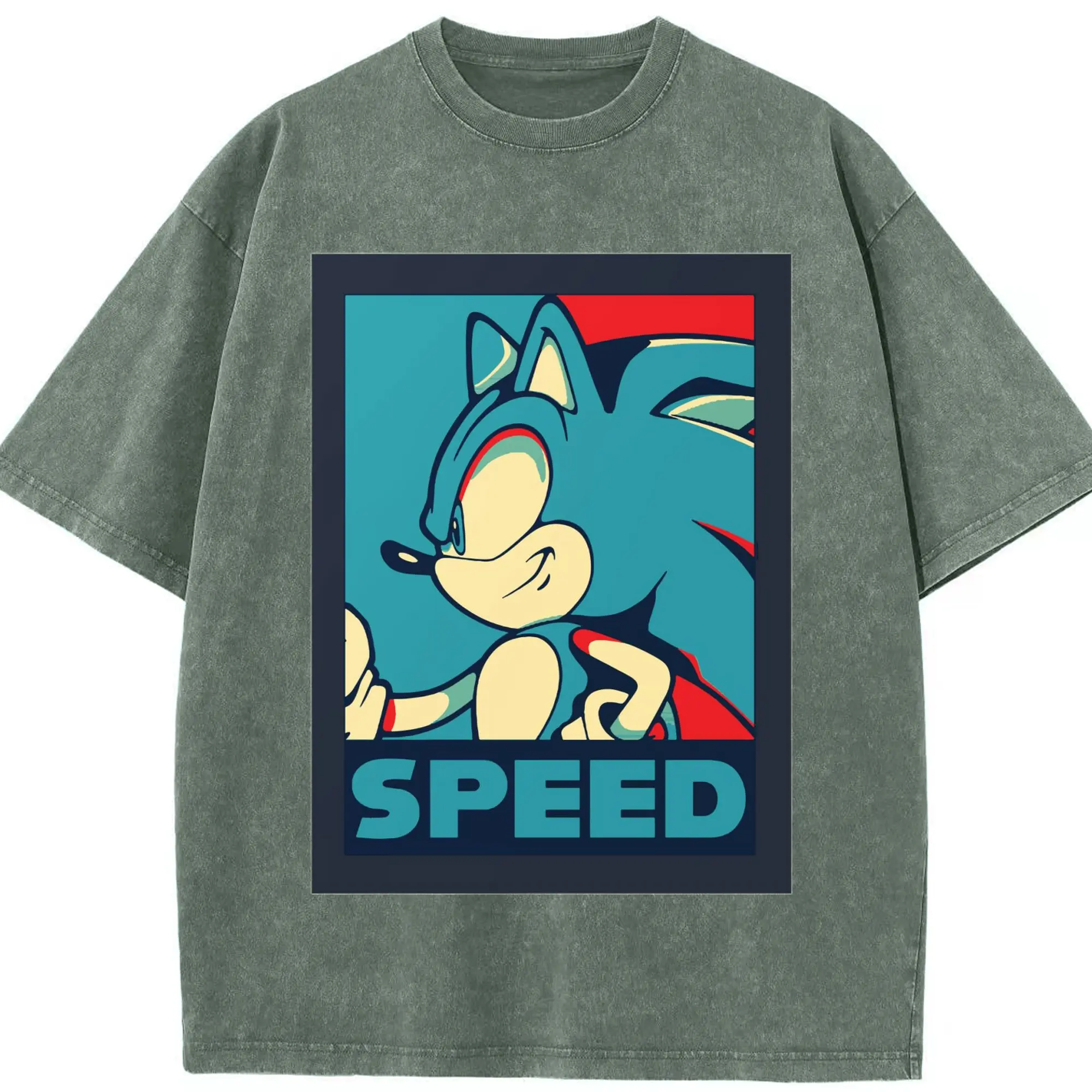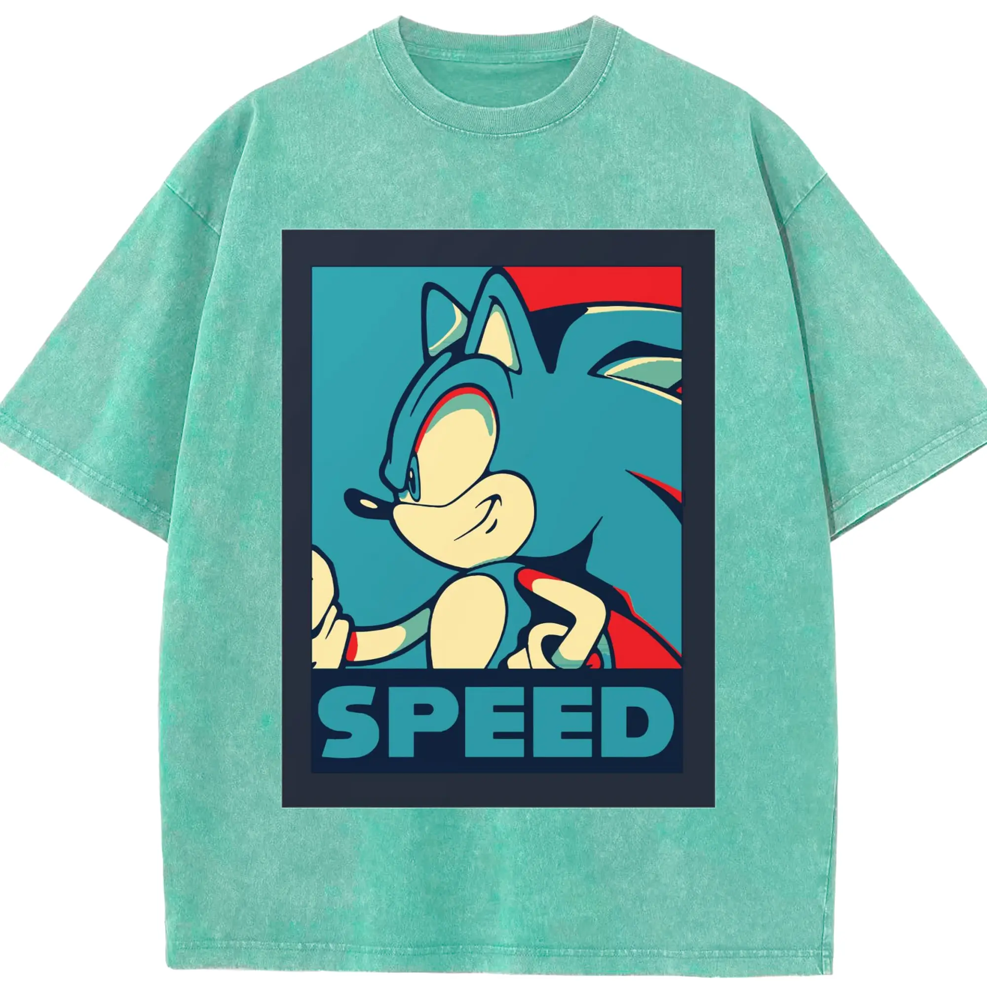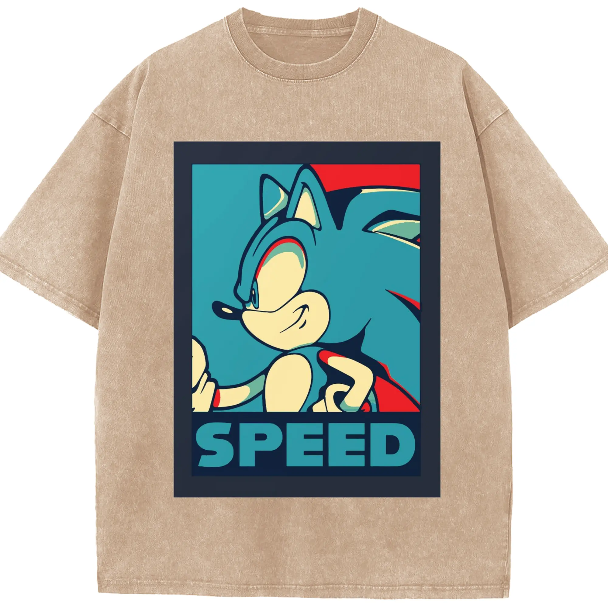 Super Sonic classic t-shirt - Washed Vintage Look 230g Cotton Oversized T-Shirt With Front Heat Transfer Print – Soft, Lightweight, Stylish Fit – Comfortable Casual Wear For Sports & Everyday Use