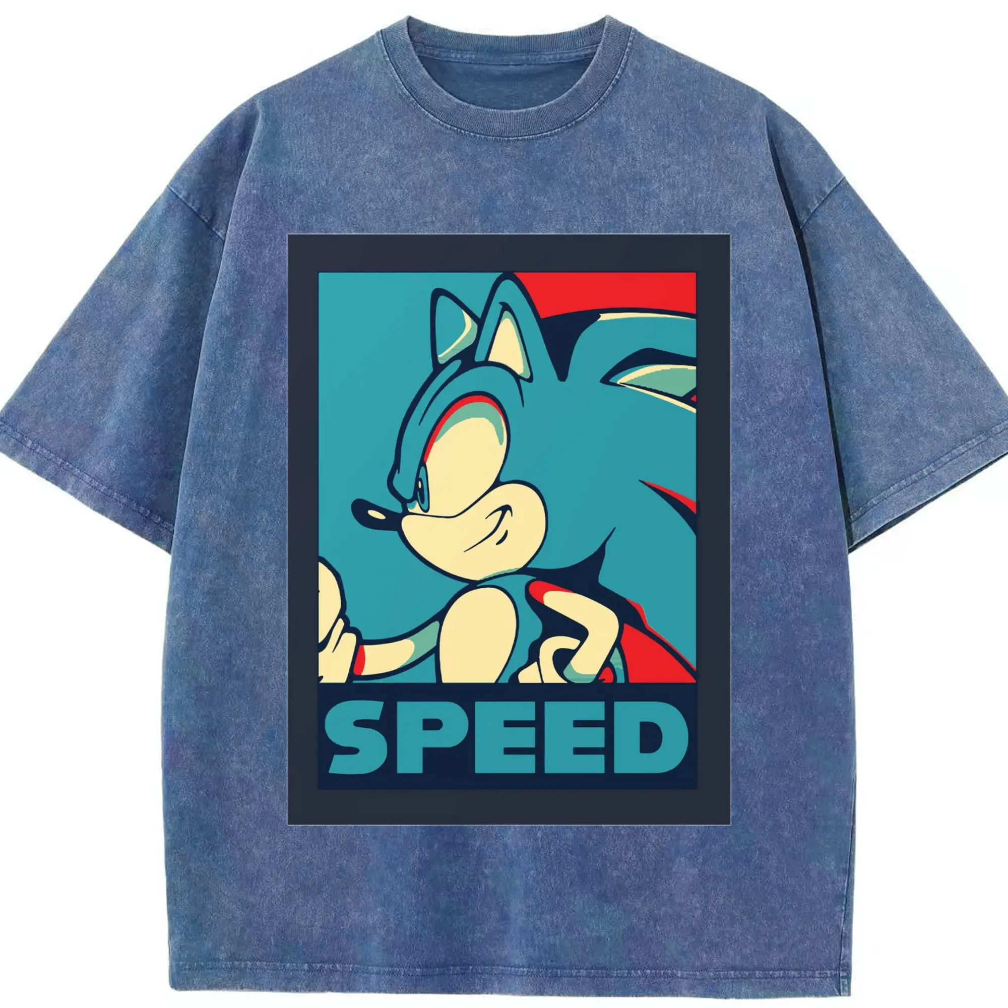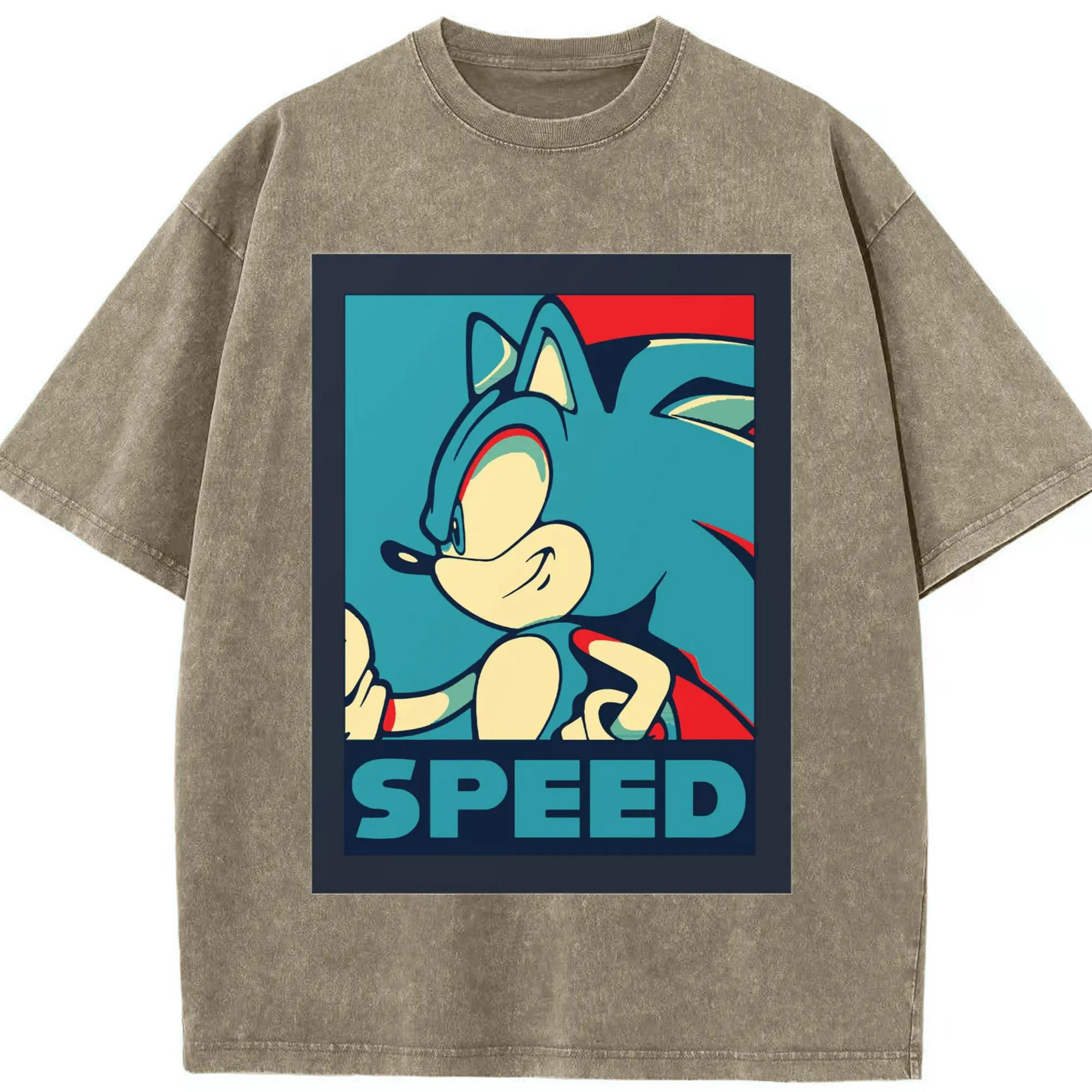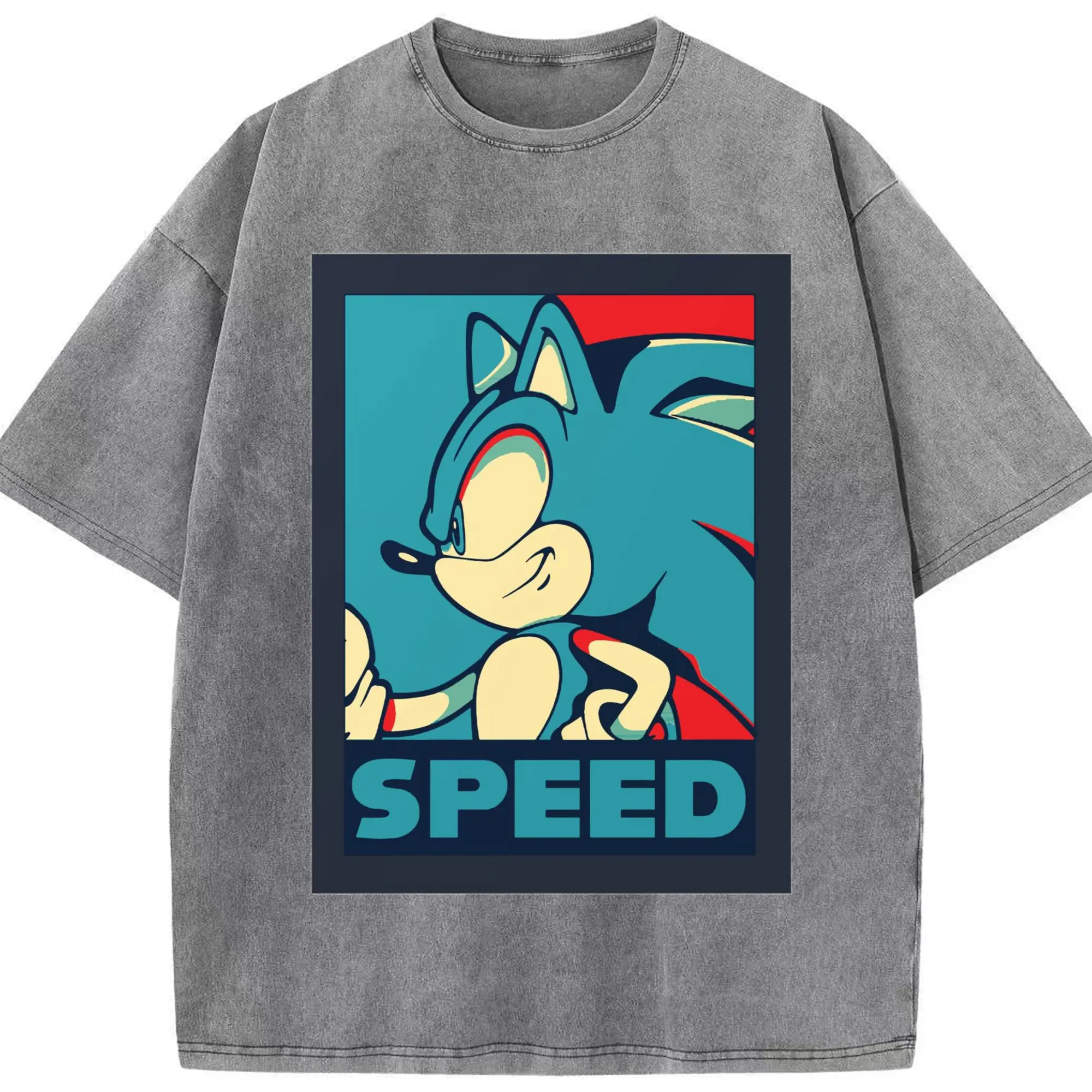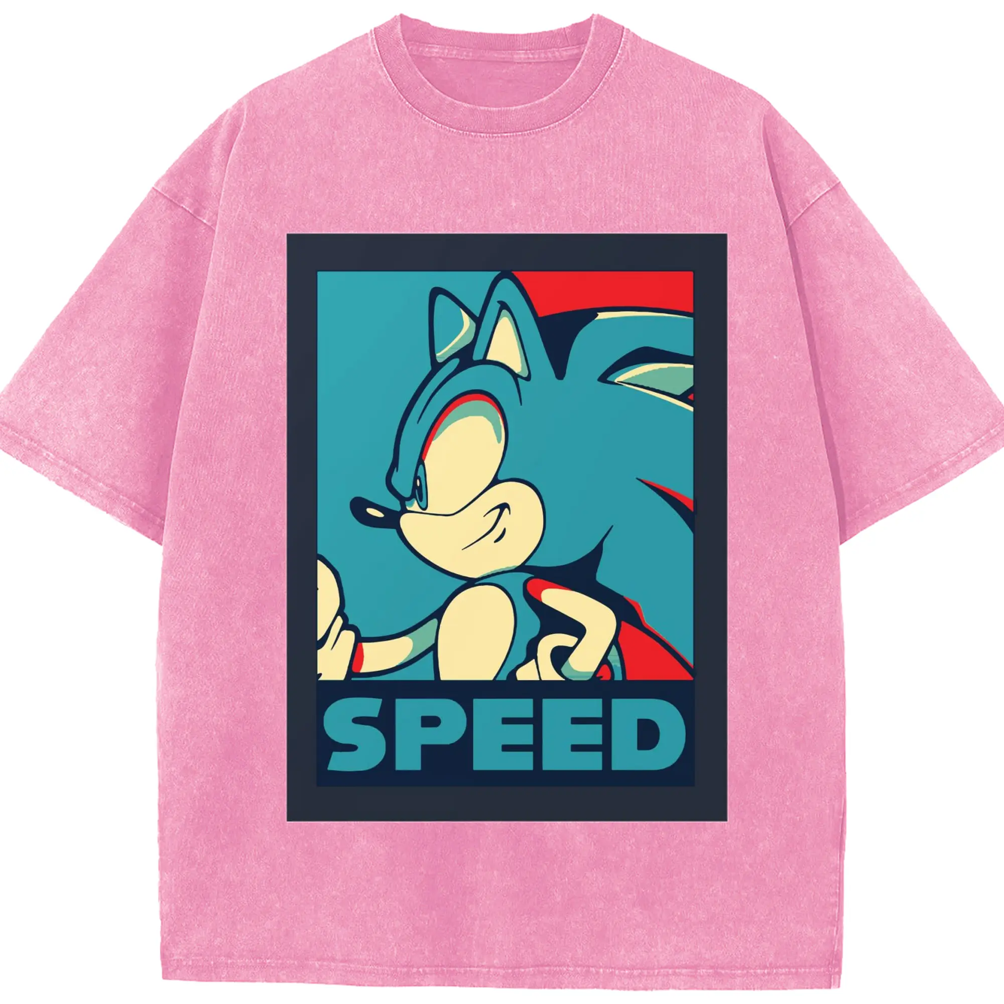 Super Sonic classic t-shirt - Washed Vintage Look 230g Cotton Oversized T-Shirt With Front Heat Transfer Print – Soft, Lightweight, Stylish Fit – Comfortable Casual Wear For Sports & Everyday Use