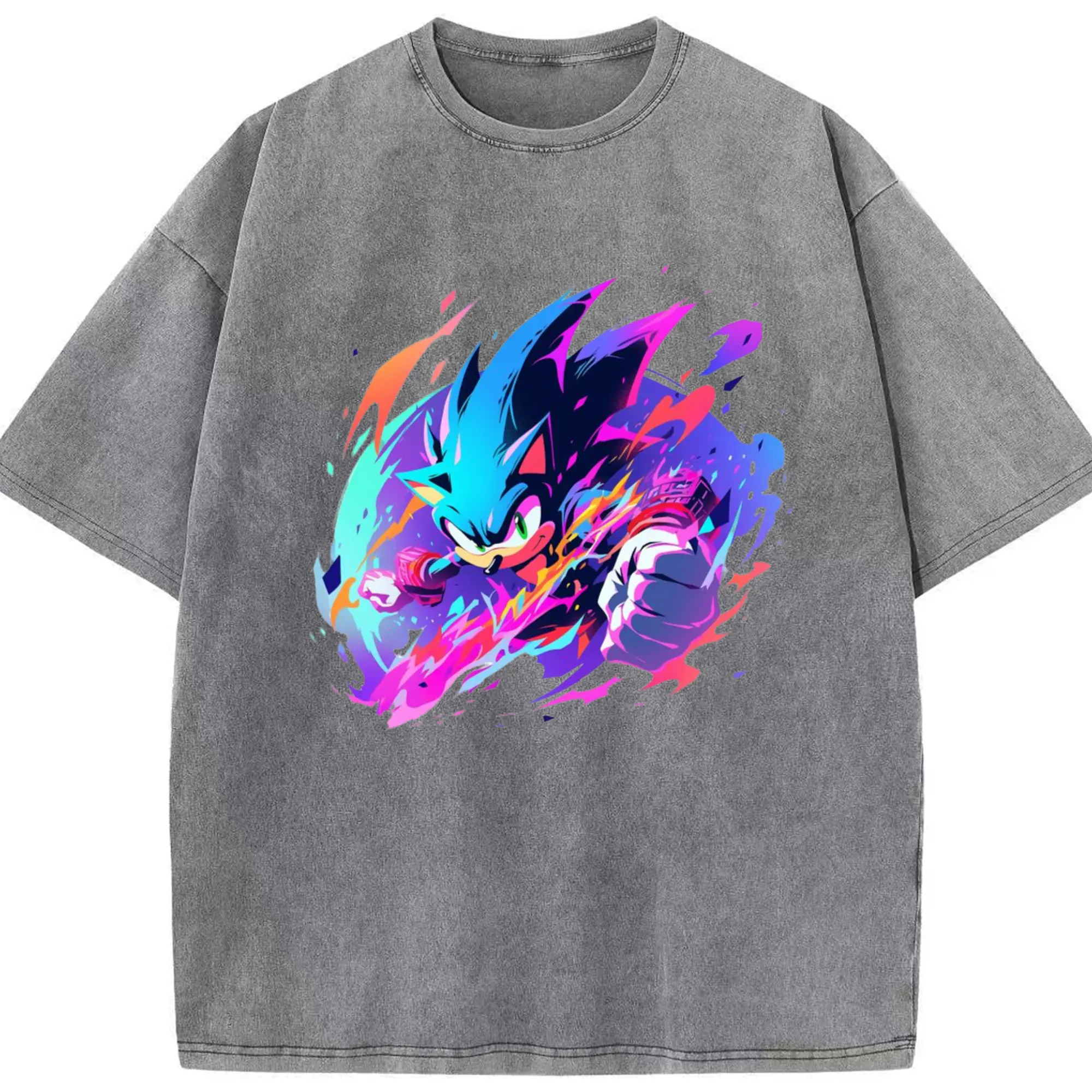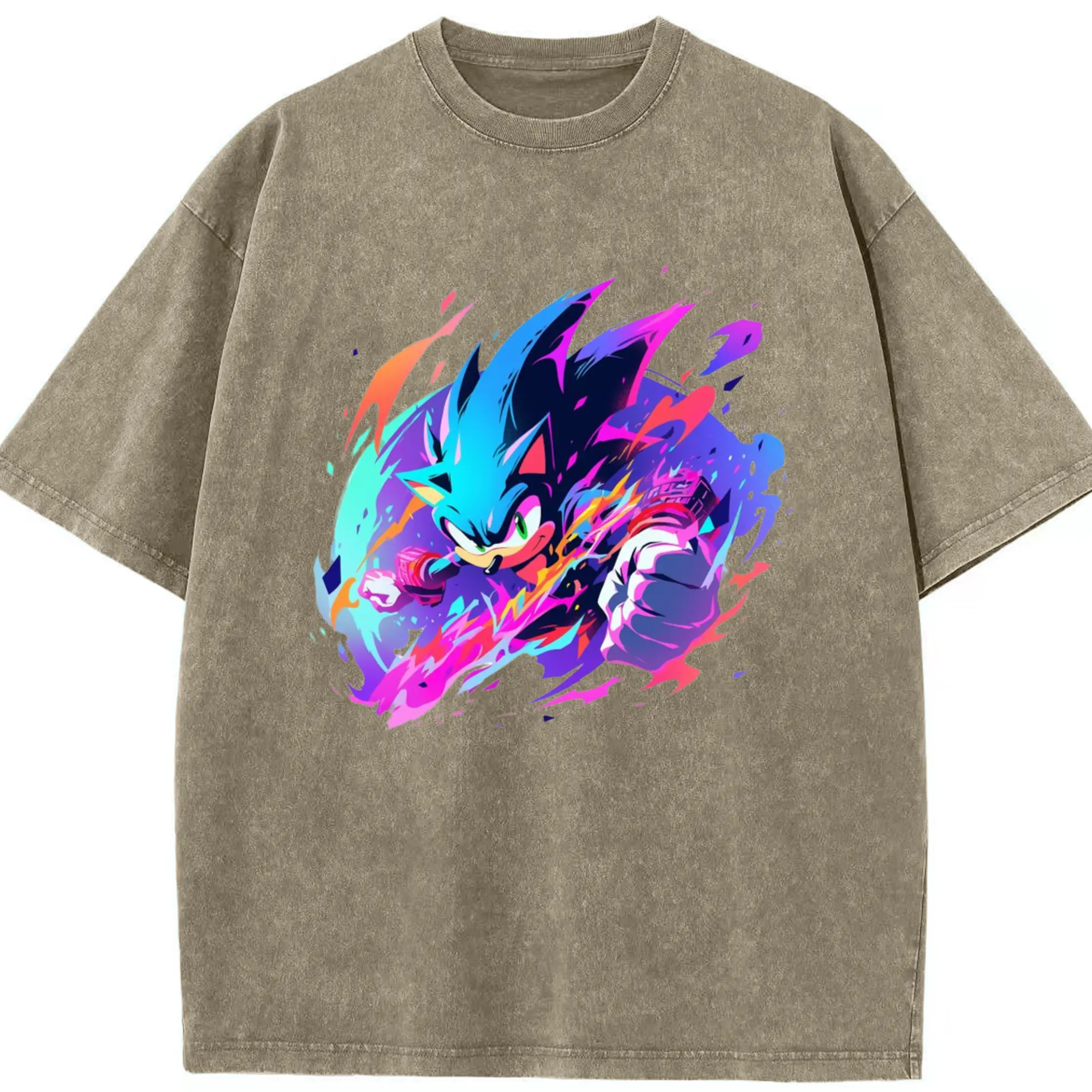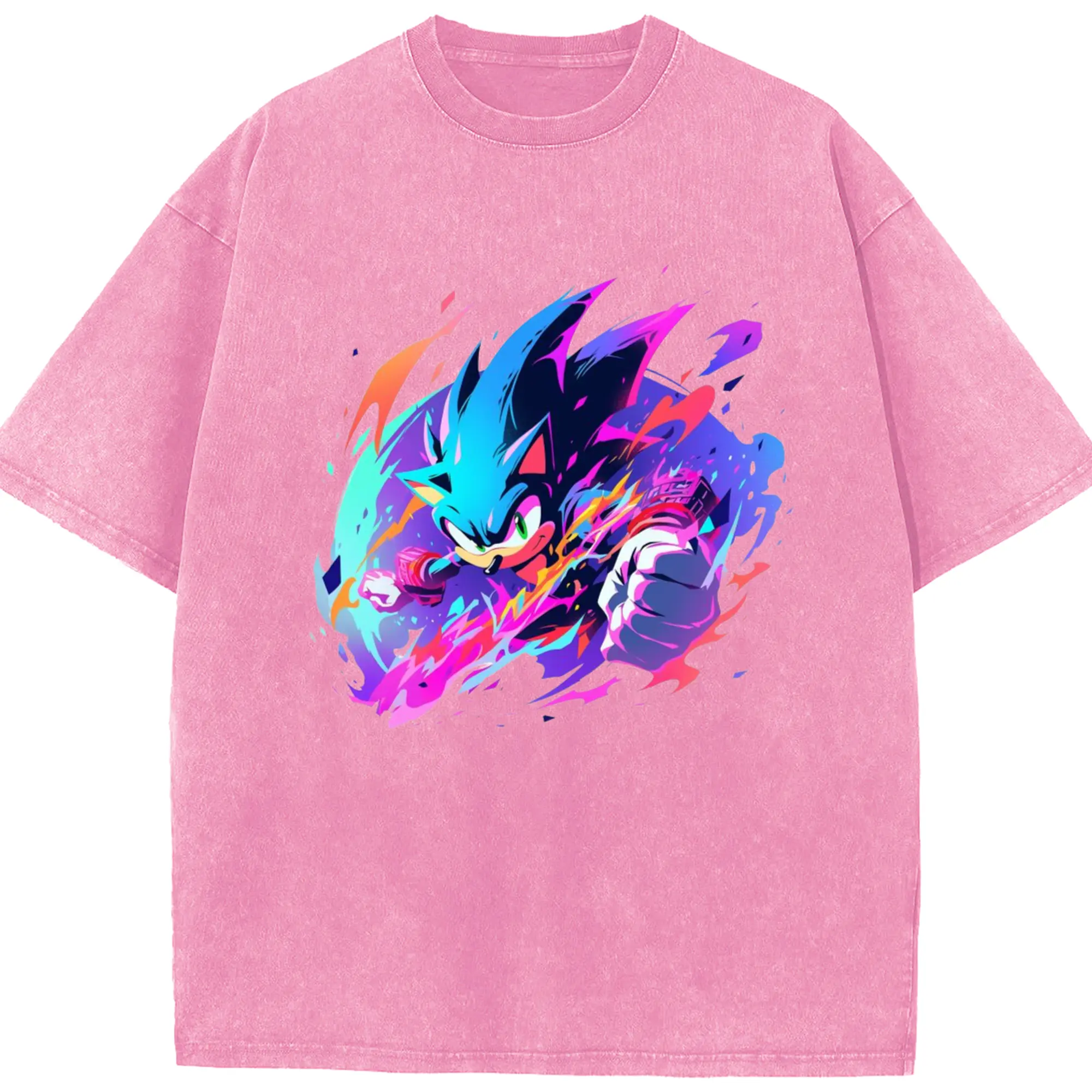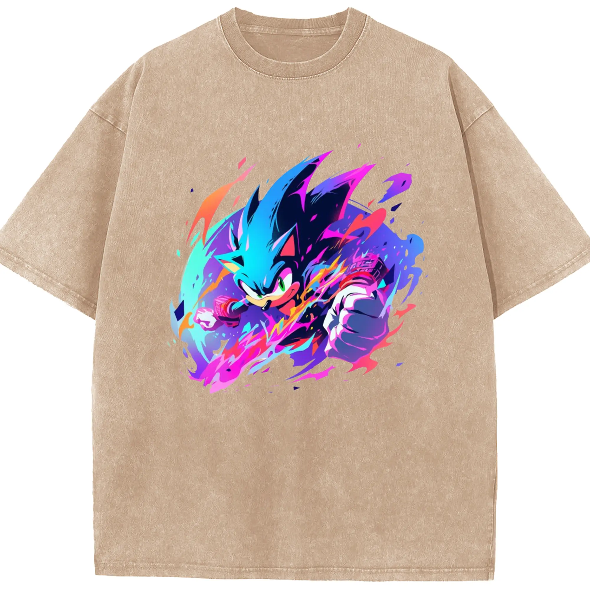 Super Sonic printed tee - Washed Vintage Look 230g Cotton Oversized T-Shirt With Front Heat Transfer Print – Soft, Lightweight, Stylish Fit – Comfortable Casual Wear For Sports & Everyday Use