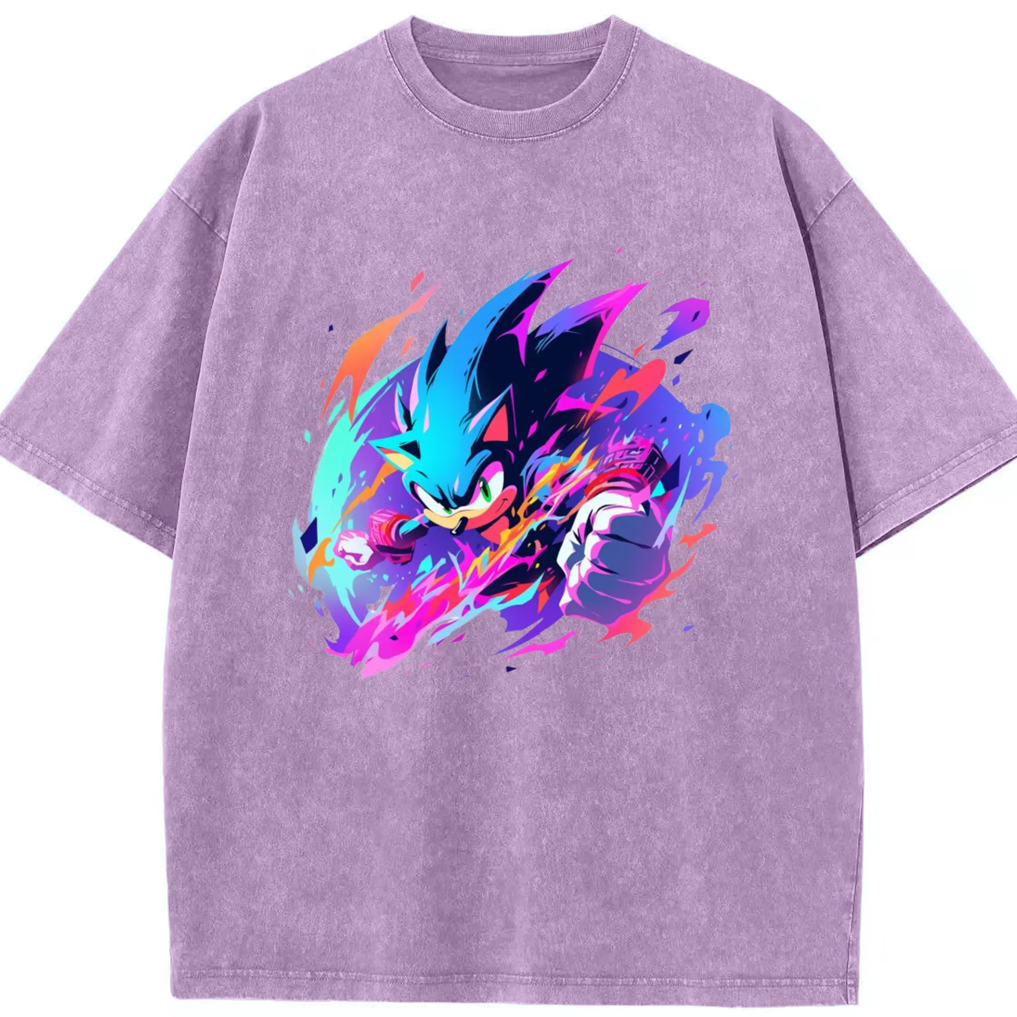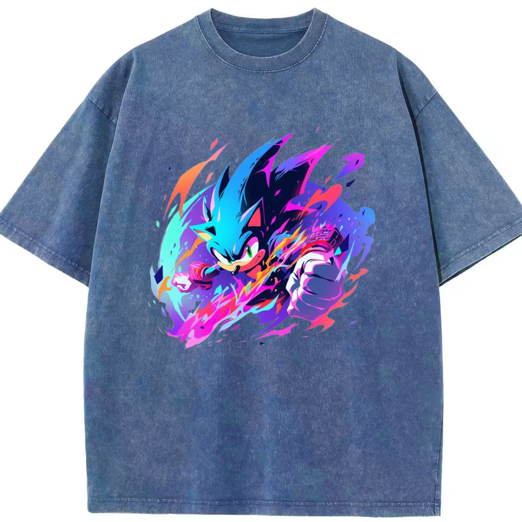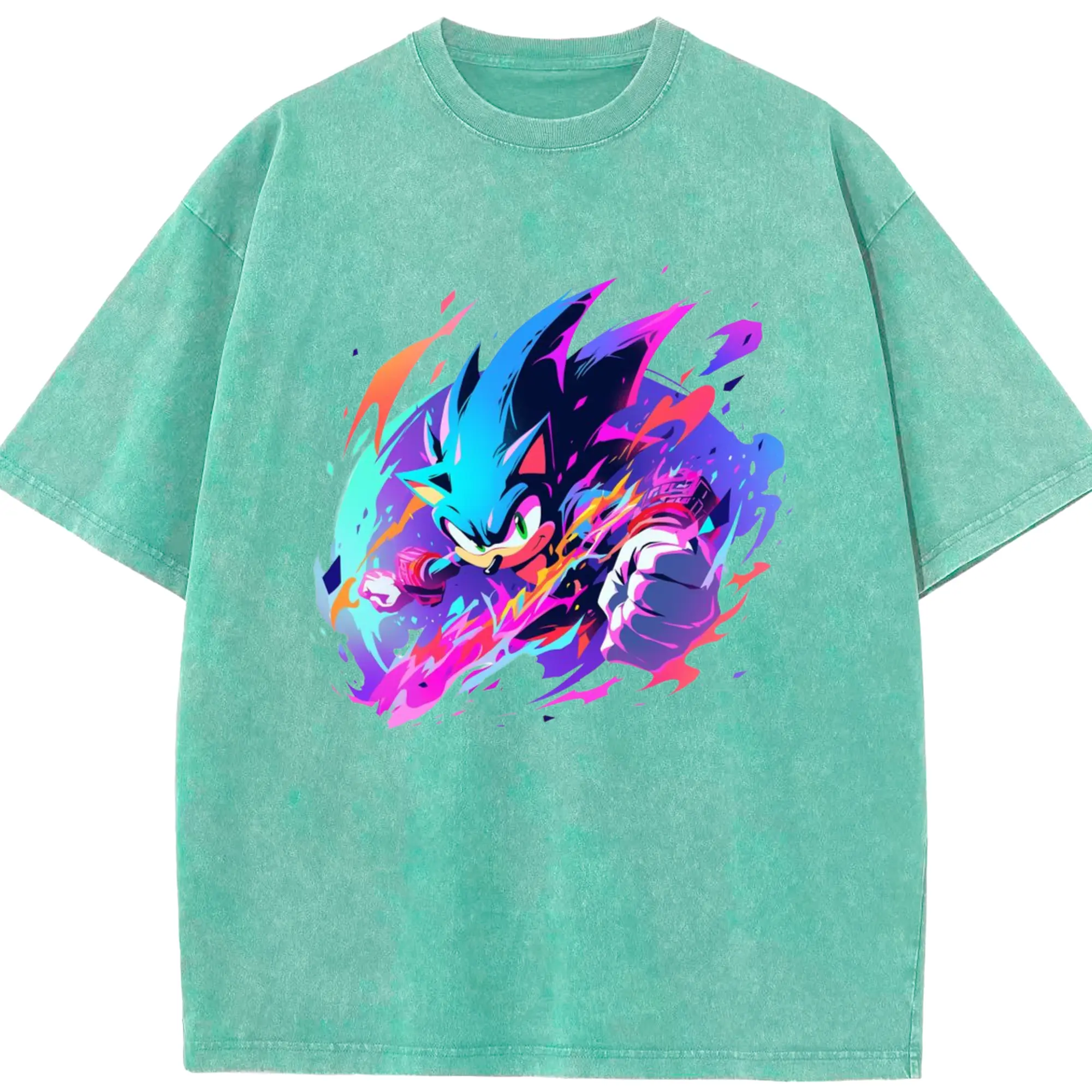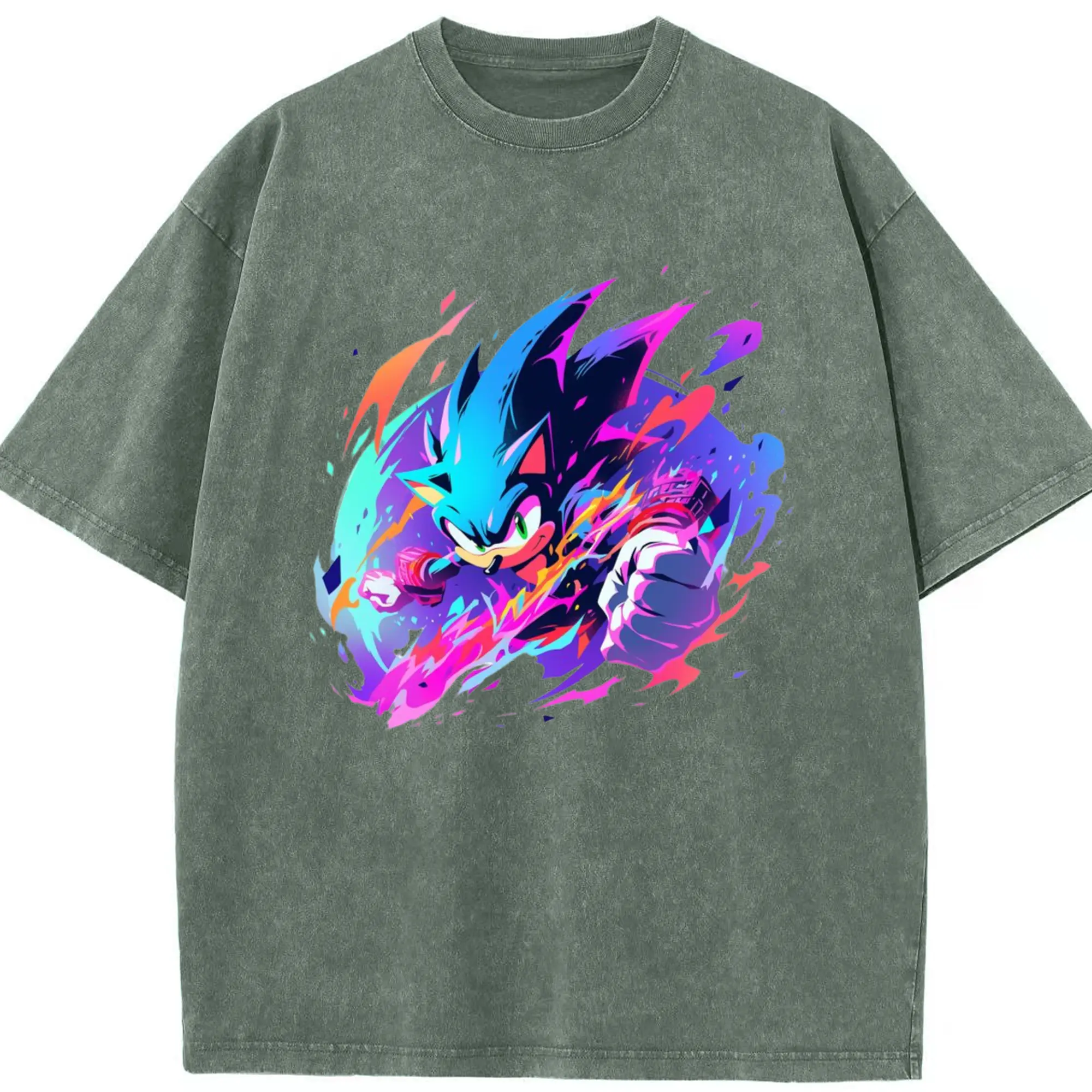 Super Sonic printed tee - Washed Vintage Look 230g Cotton Oversized T-Shirt With Front Heat Transfer Print – Soft, Lightweight, Stylish Fit – Comfortable Casual Wear For Sports & Everyday Use