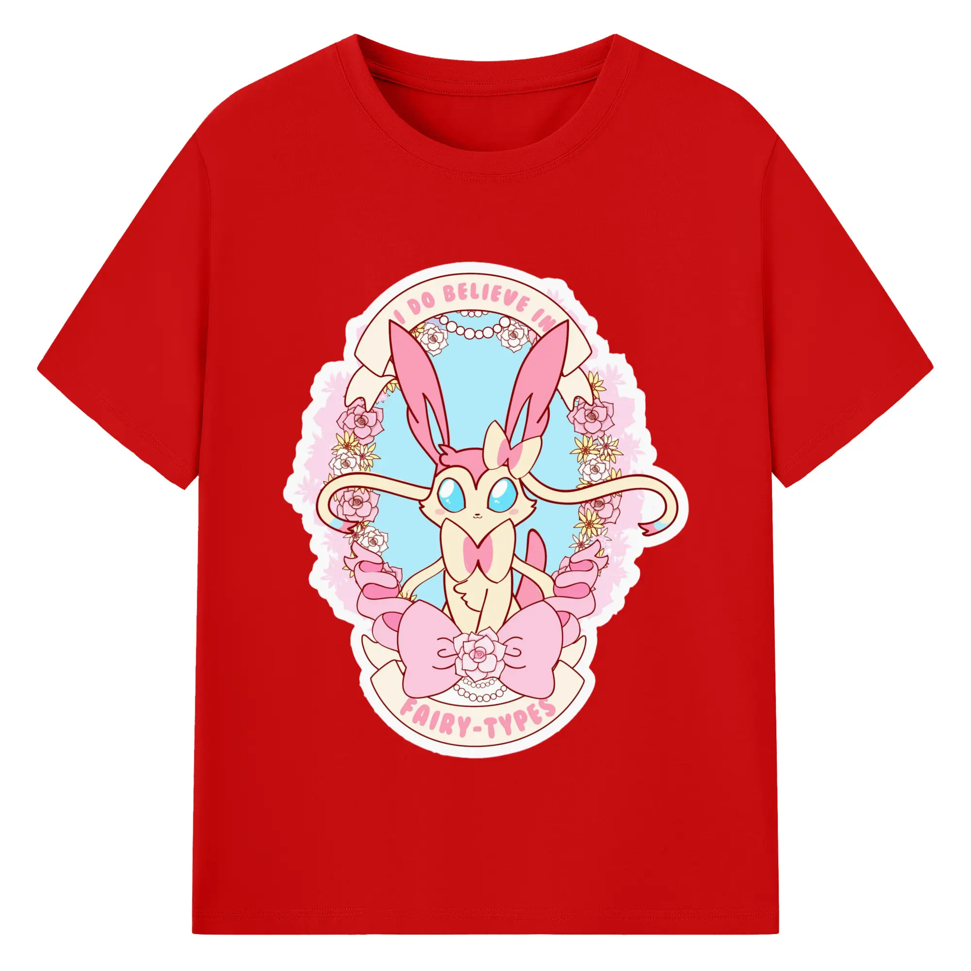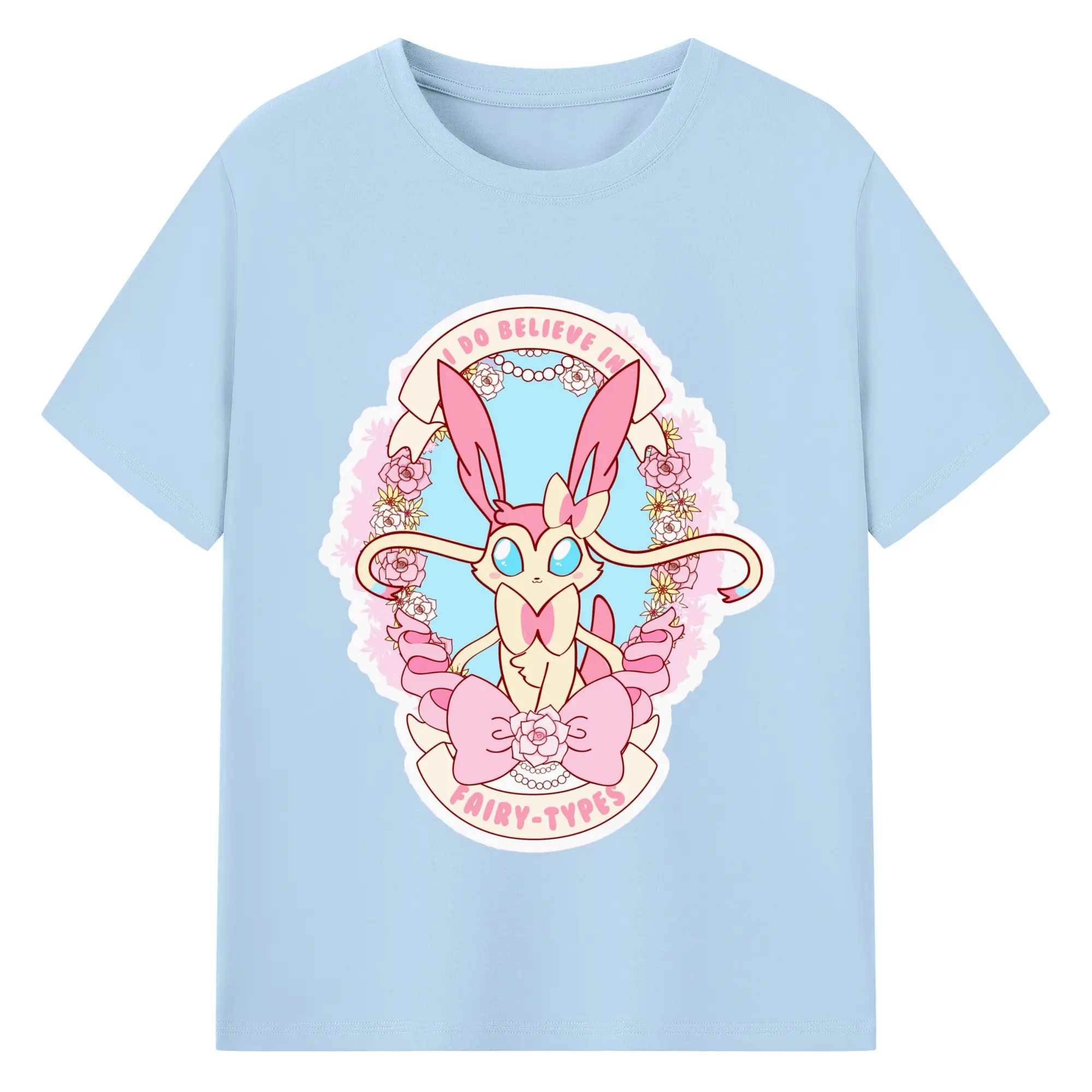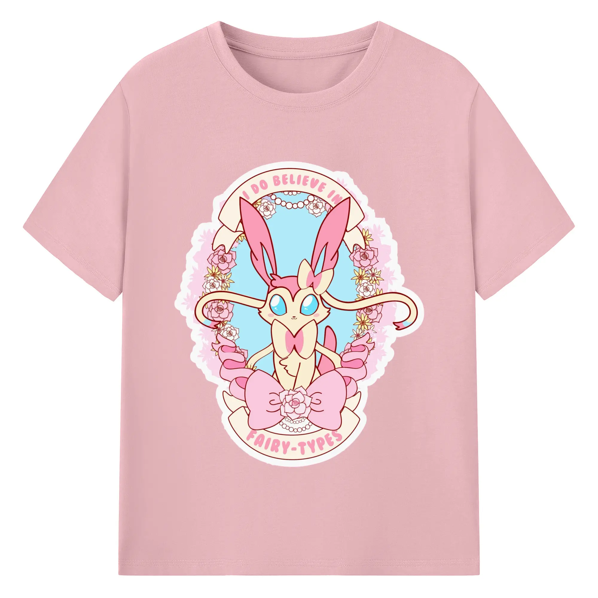 Sylveon girls icon shirt​ - 180g Cotton T-Shirt With Front Heat Transfer Print – Soft, Lightweight, Fitted Design – Comfortable Casual Wear For Sports & Everyday Use