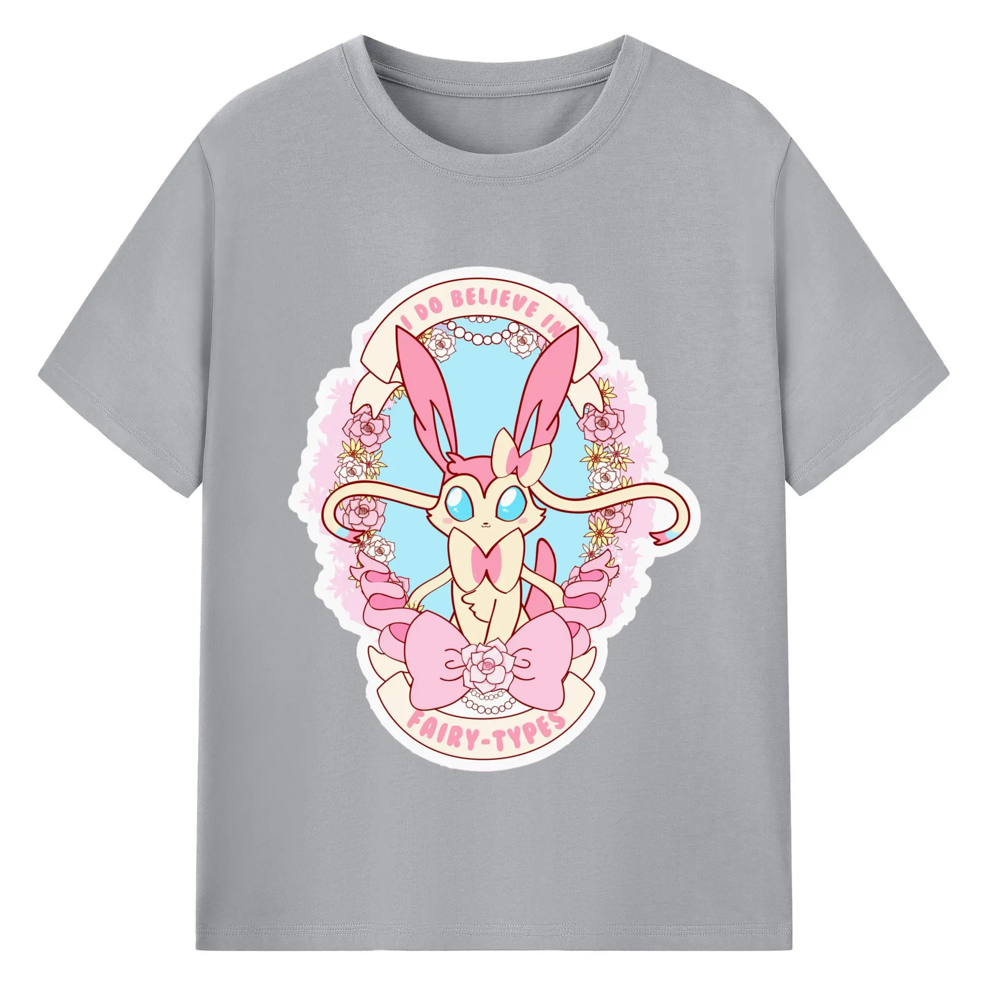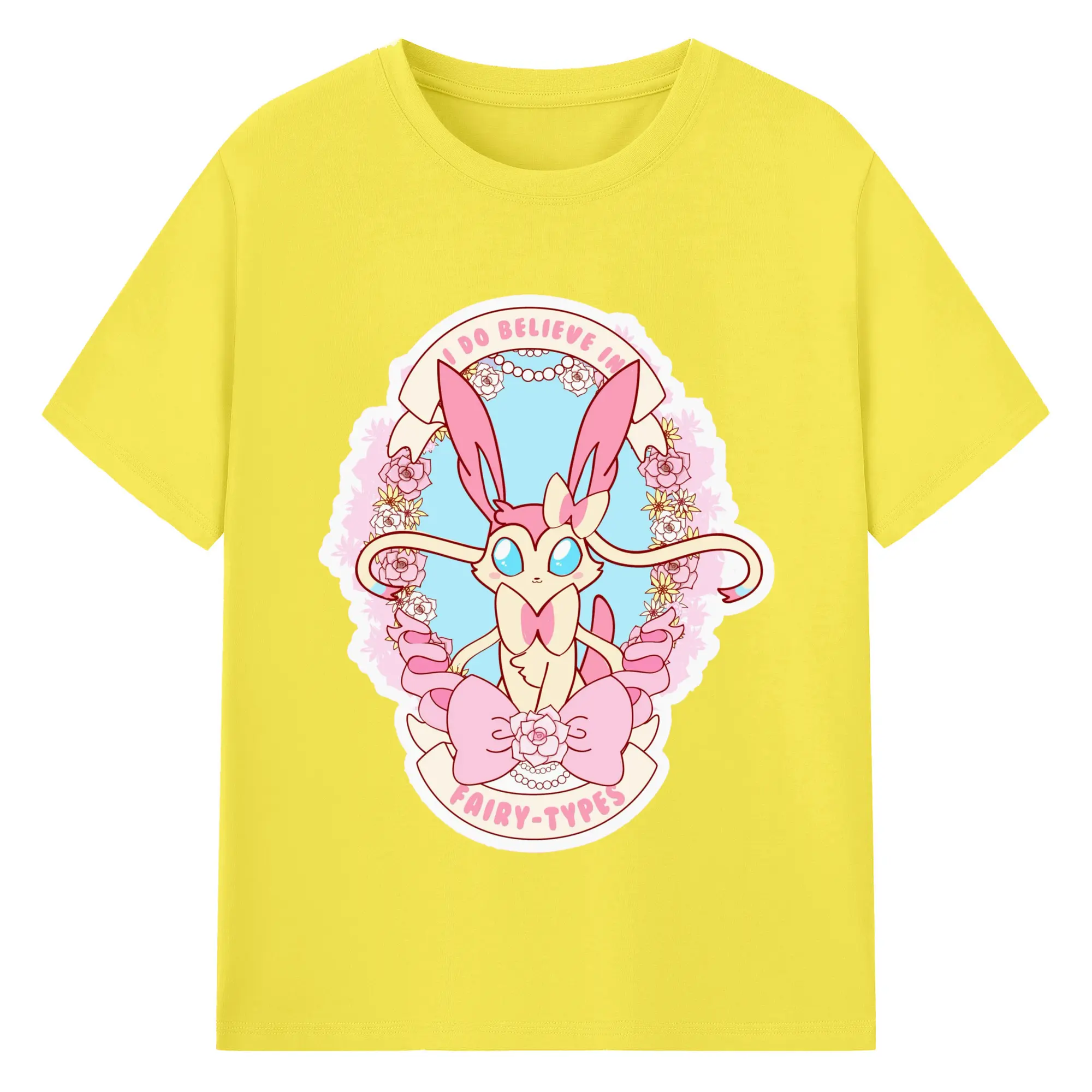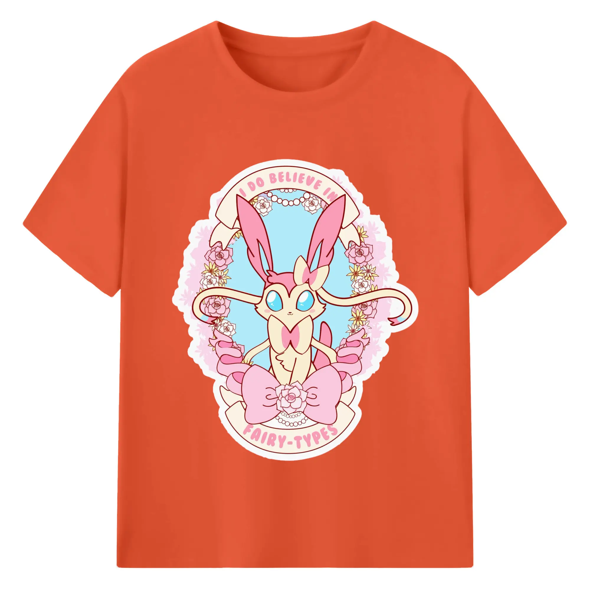 Sylveon girls icon shirt​ - 180g Cotton T-Shirt With Front Heat Transfer Print – Soft, Lightweight, Fitted Design – Comfortable Casual Wear For Sports & Everyday Use