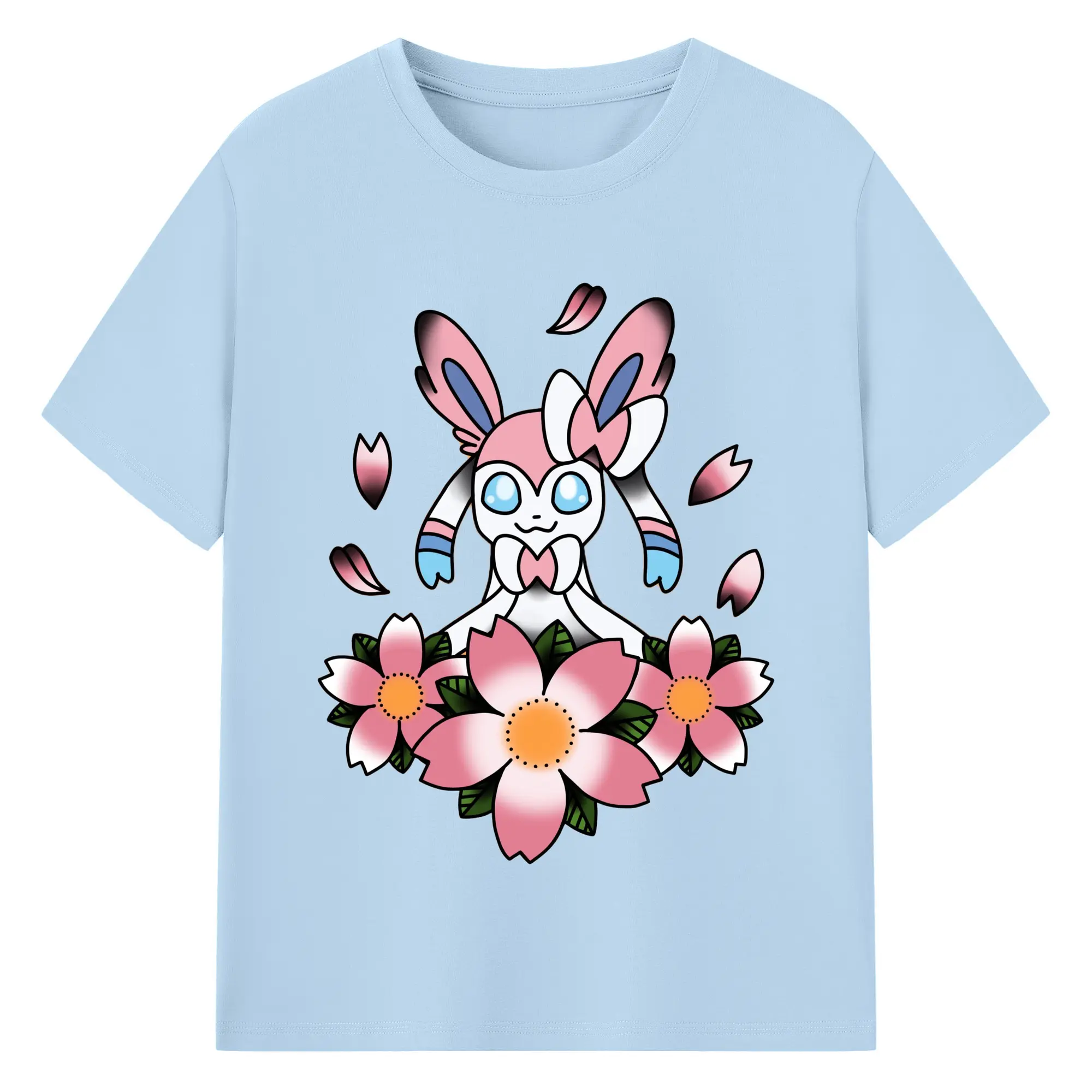 Sylveon girls shirt​ - 180g Cotton T-Shirt With Front Heat Transfer Print – Soft, Lightweight, Fitted Design – Comfortable Casual Wear For Sports & Everyday Use
