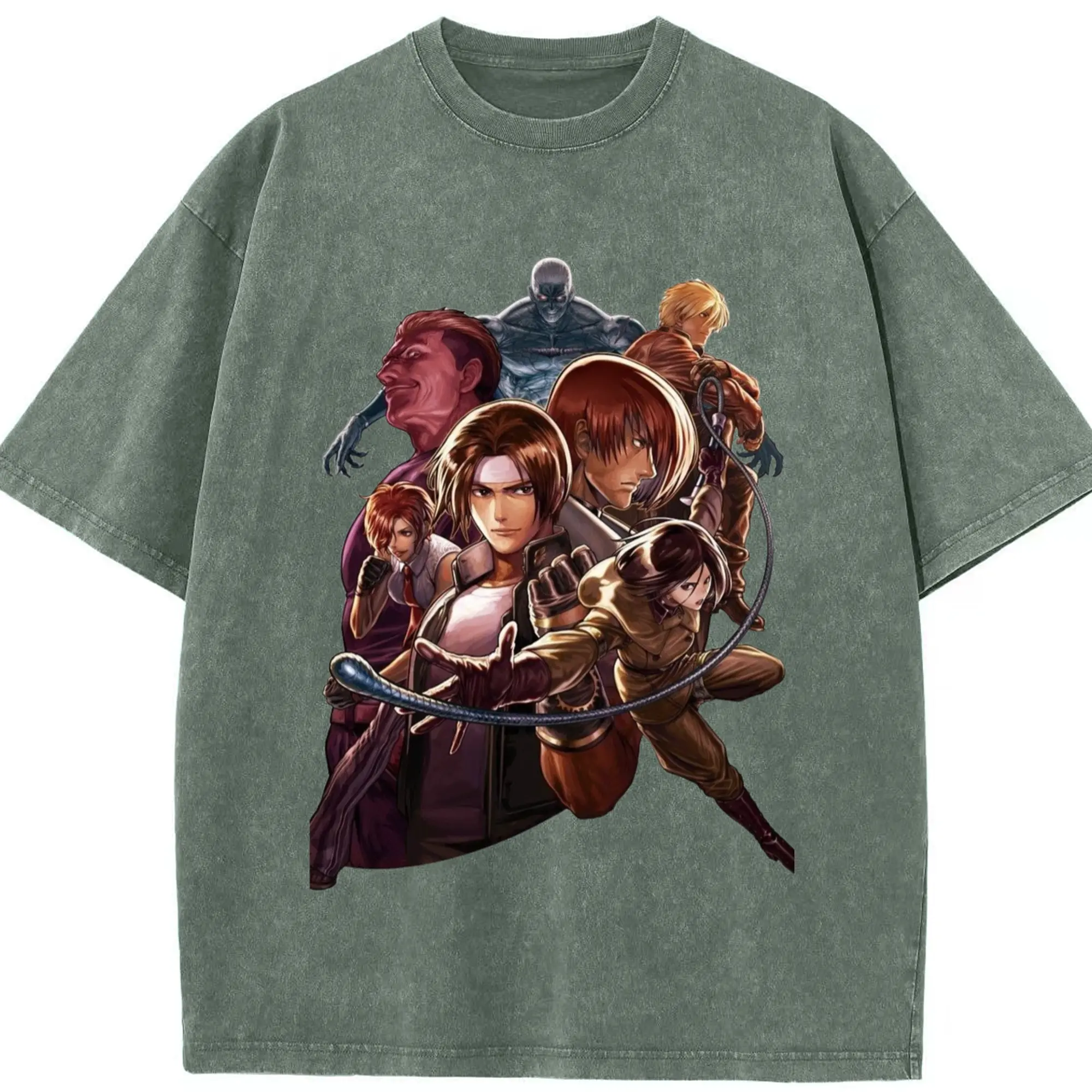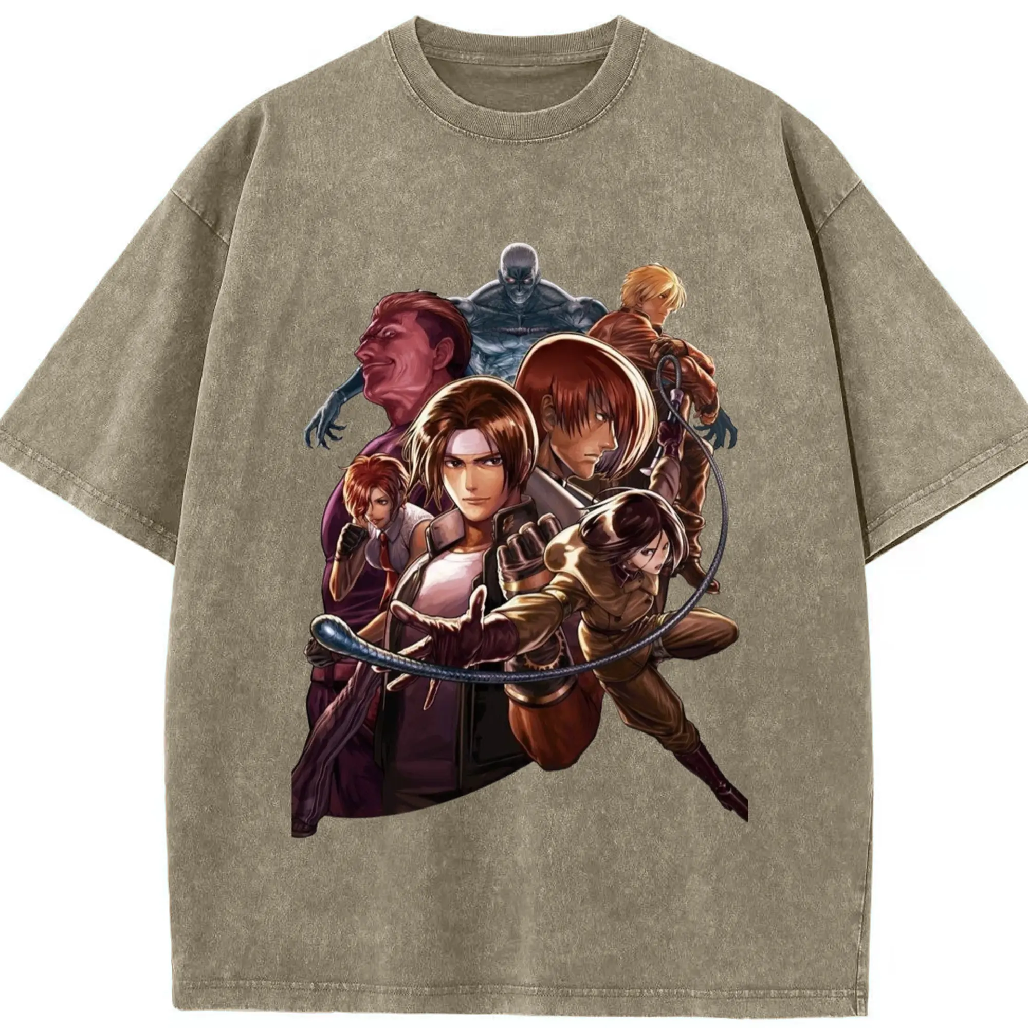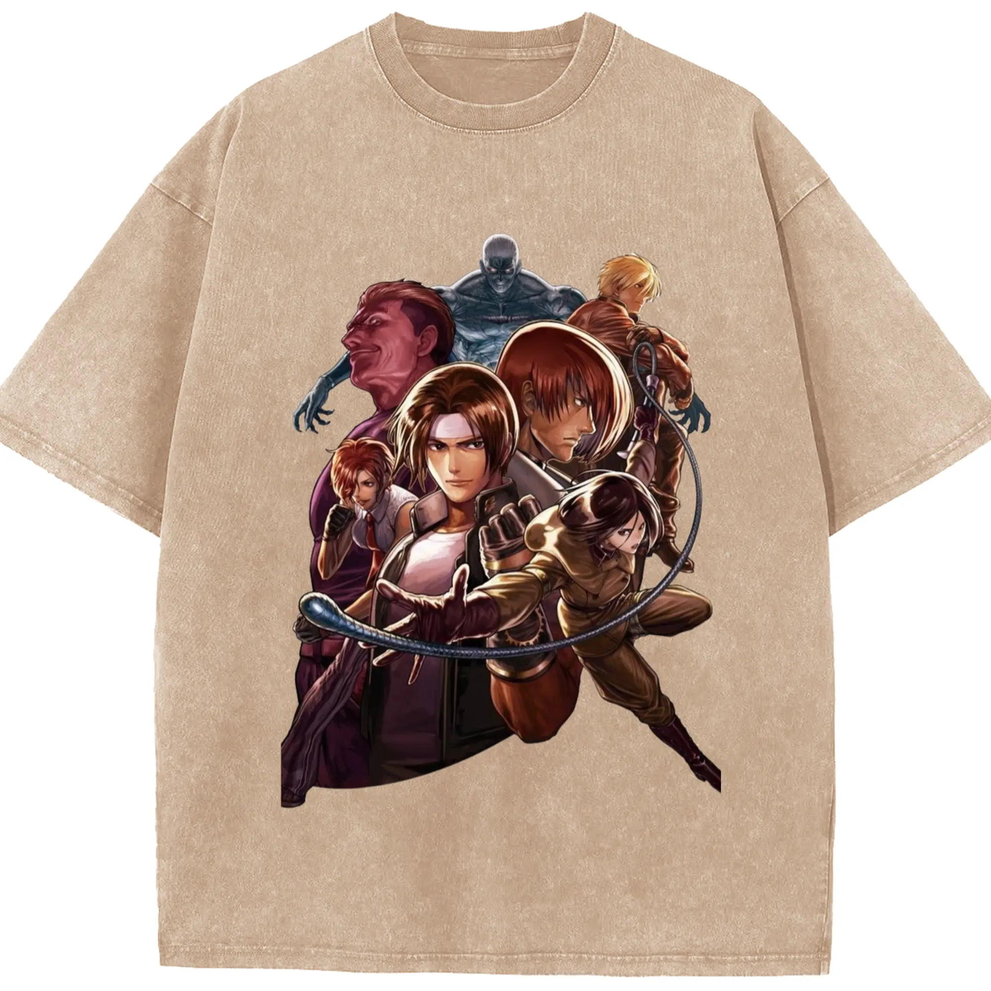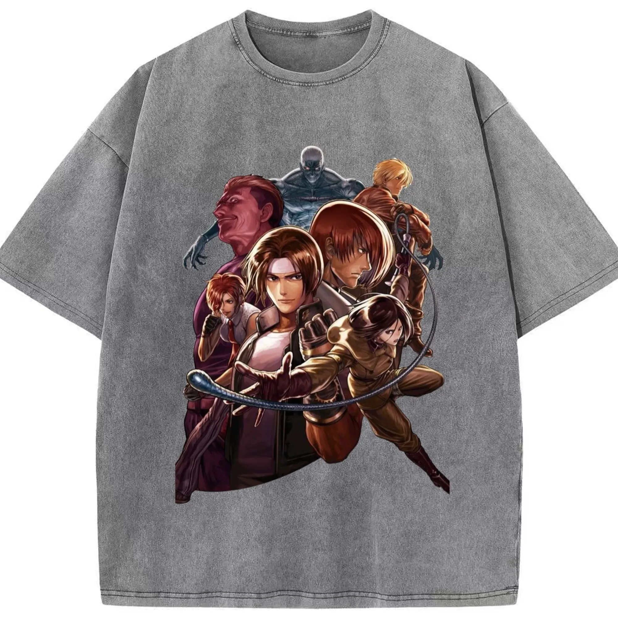 The king of fighters collage tee - Washed Vintage Look 230g Cotton Oversized T-Shirt With Front Heat Transfer Print – Soft, Lightweight, Stylish Fit – Comfortable Casual Wear For Sports & Everyday Use