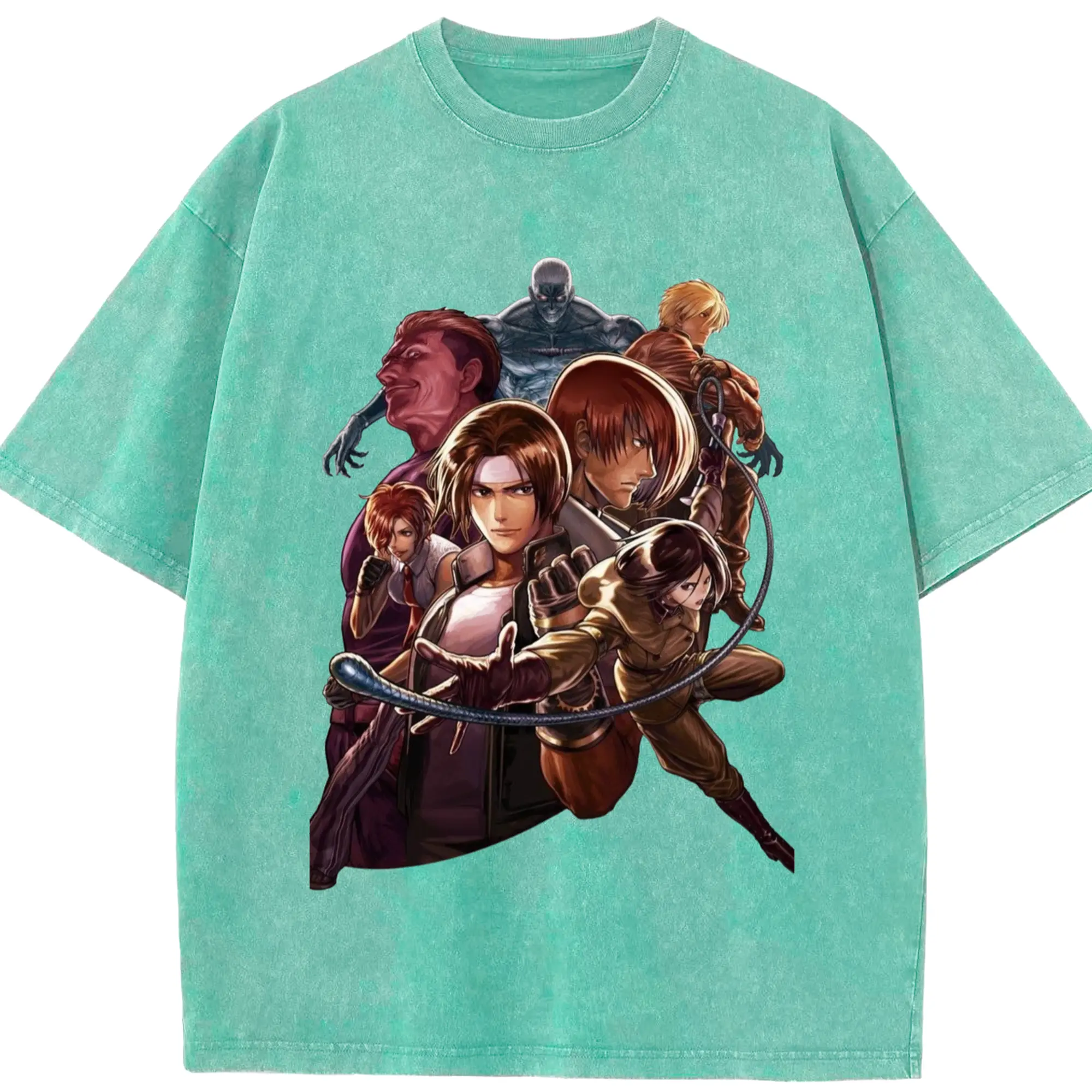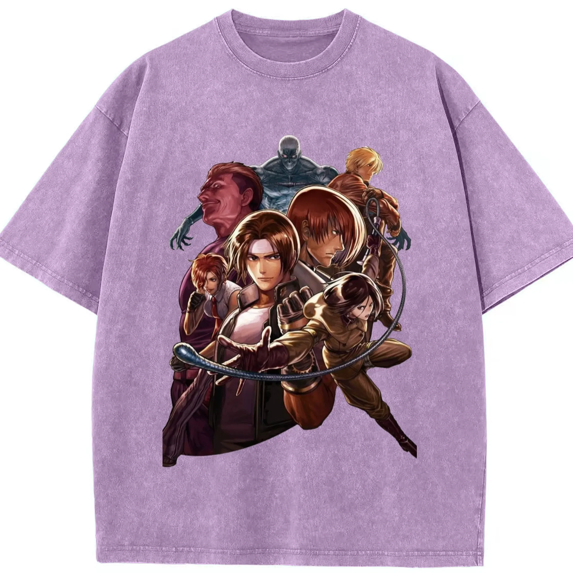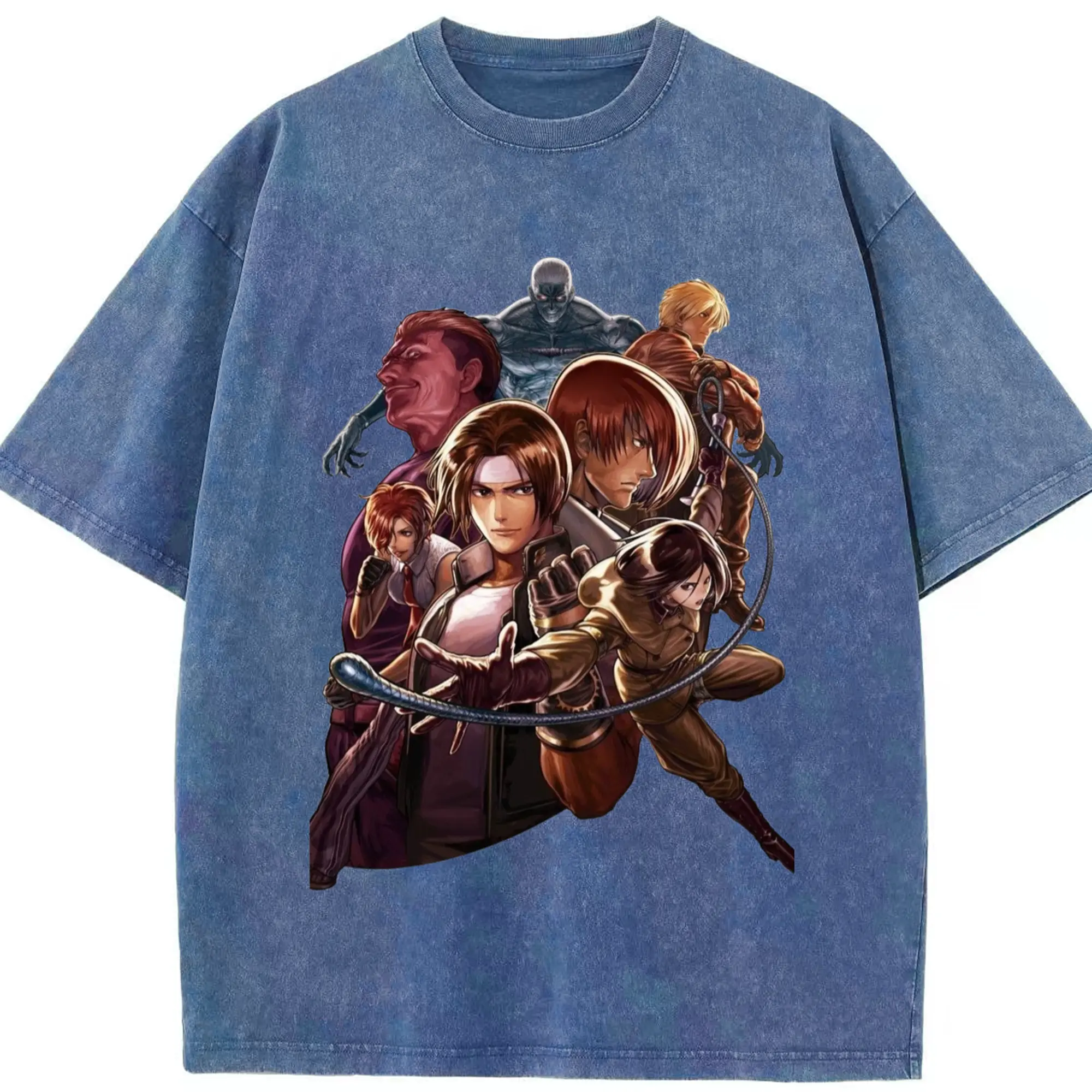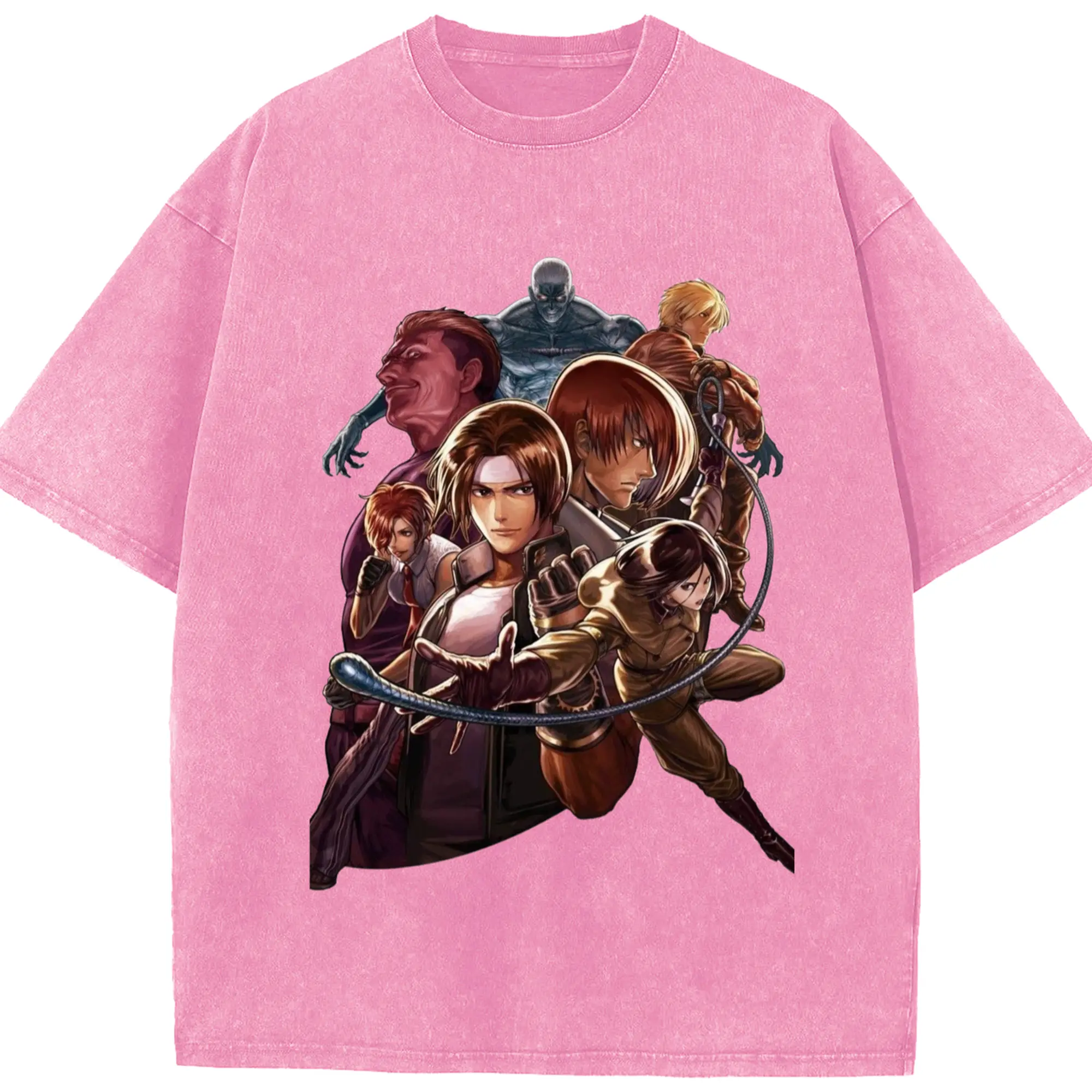 The king of fighters collage tee - Washed Vintage Look 230g Cotton Oversized T-Shirt With Front Heat Transfer Print – Soft, Lightweight, Stylish Fit – Comfortable Casual Wear For Sports & Everyday Use