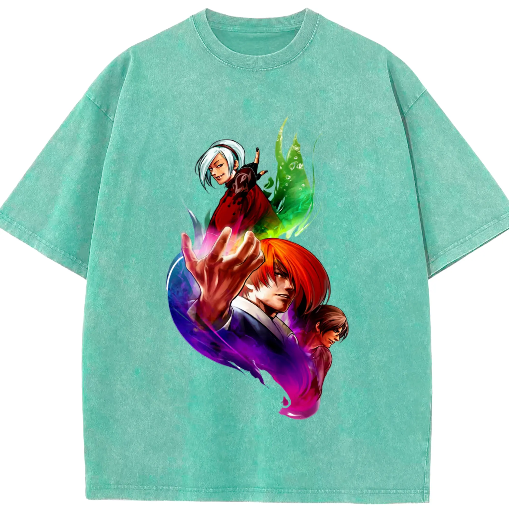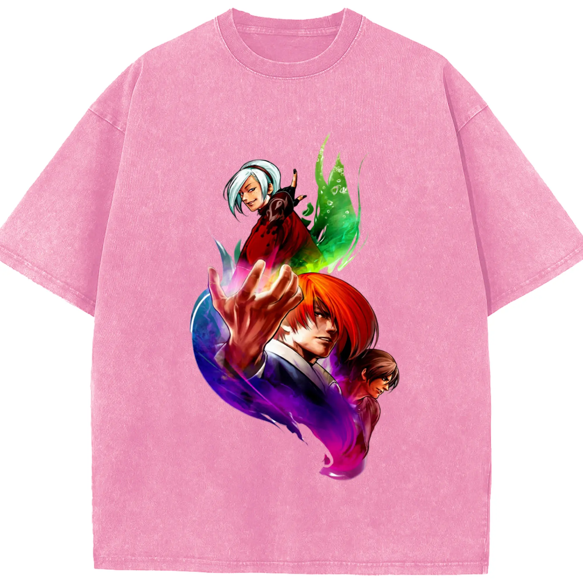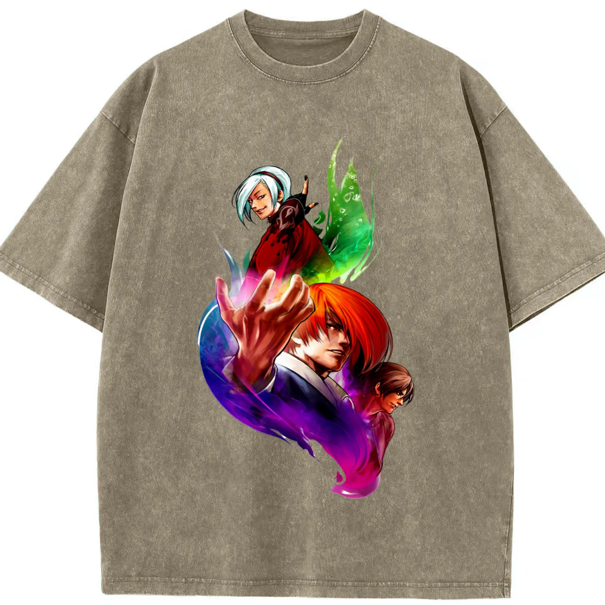 The king of fighters graphic shirt​ - Washed Vintage Look 230g Cotton Oversized T-Shirt With Front Heat Transfer Print – Soft, Lightweight, Stylish Fit – Comfortable Casual Wear For Sports & Everyday Use