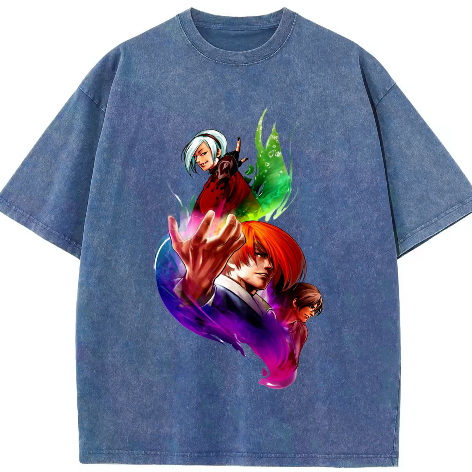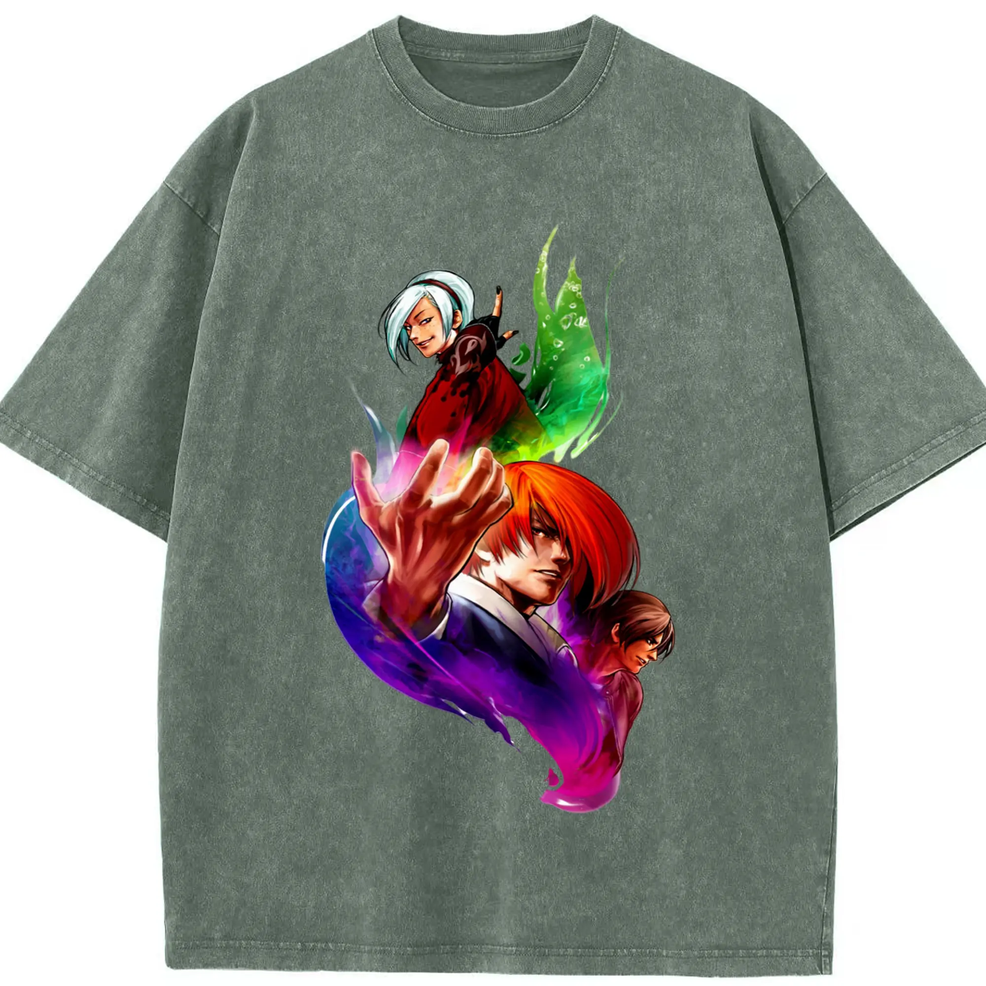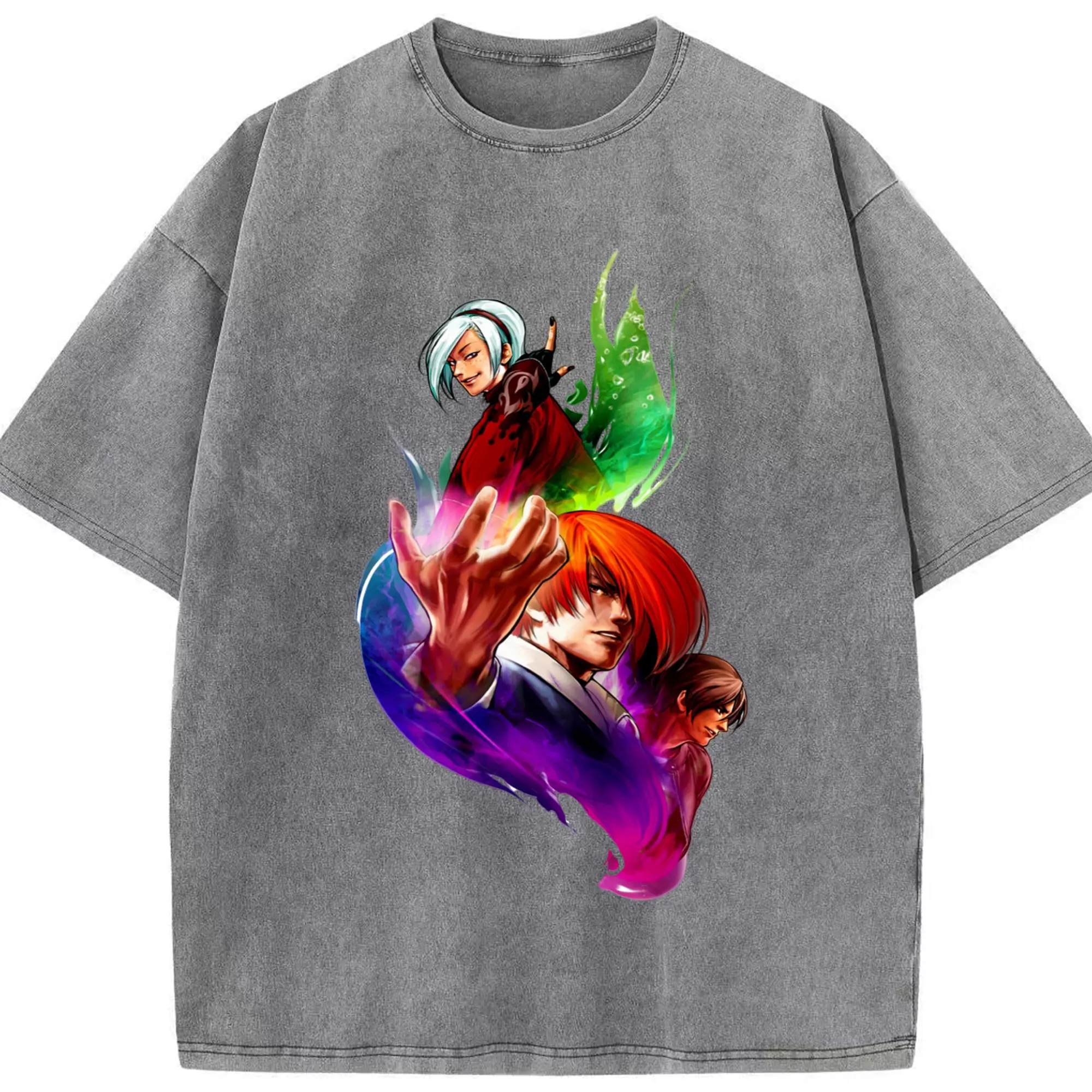 The king of fighters graphic shirt​ - Washed Vintage Look 230g Cotton Oversized T-Shirt With Front Heat Transfer Print – Soft, Lightweight, Stylish Fit – Comfortable Casual Wear For Sports & Everyday Use