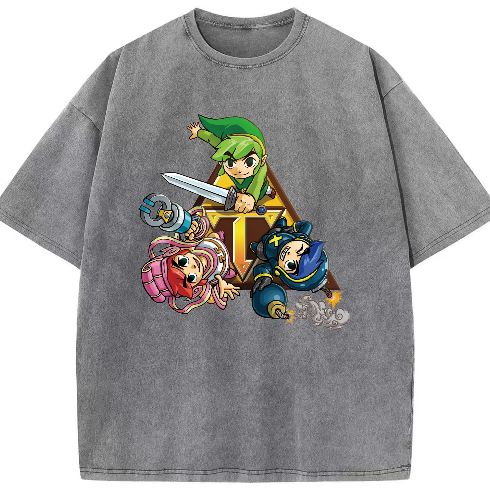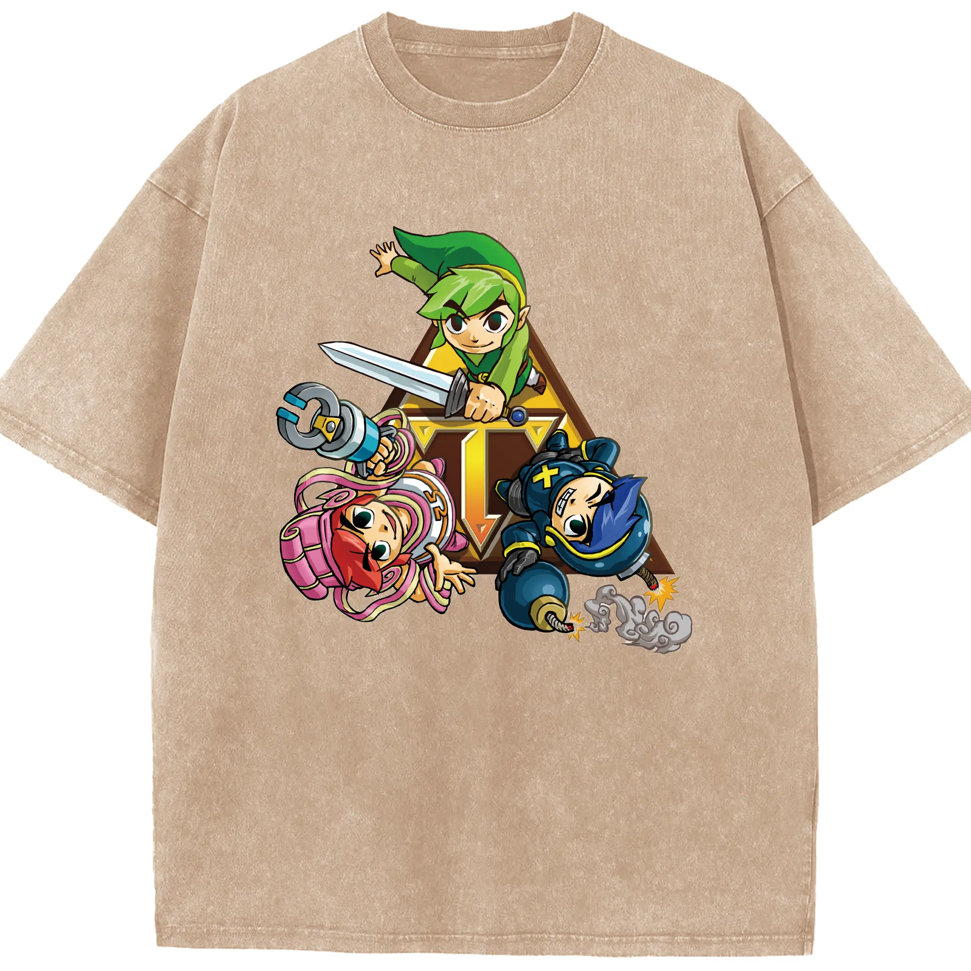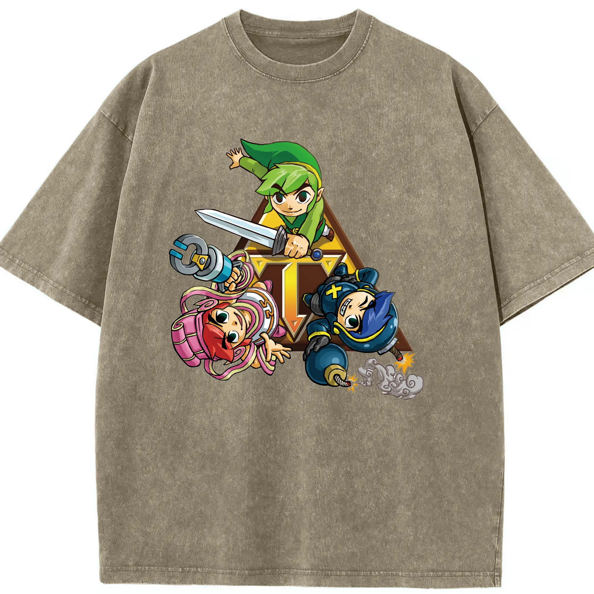 The Legend of Zelda Link and friends shirt - Washed Vintage Look 230g Cotton Oversized T-Shirt With Front Heat Transfer Print – Soft, Lightweight, Stylish Fit – Comfortable Casual Wear For Sports & Everyday Use