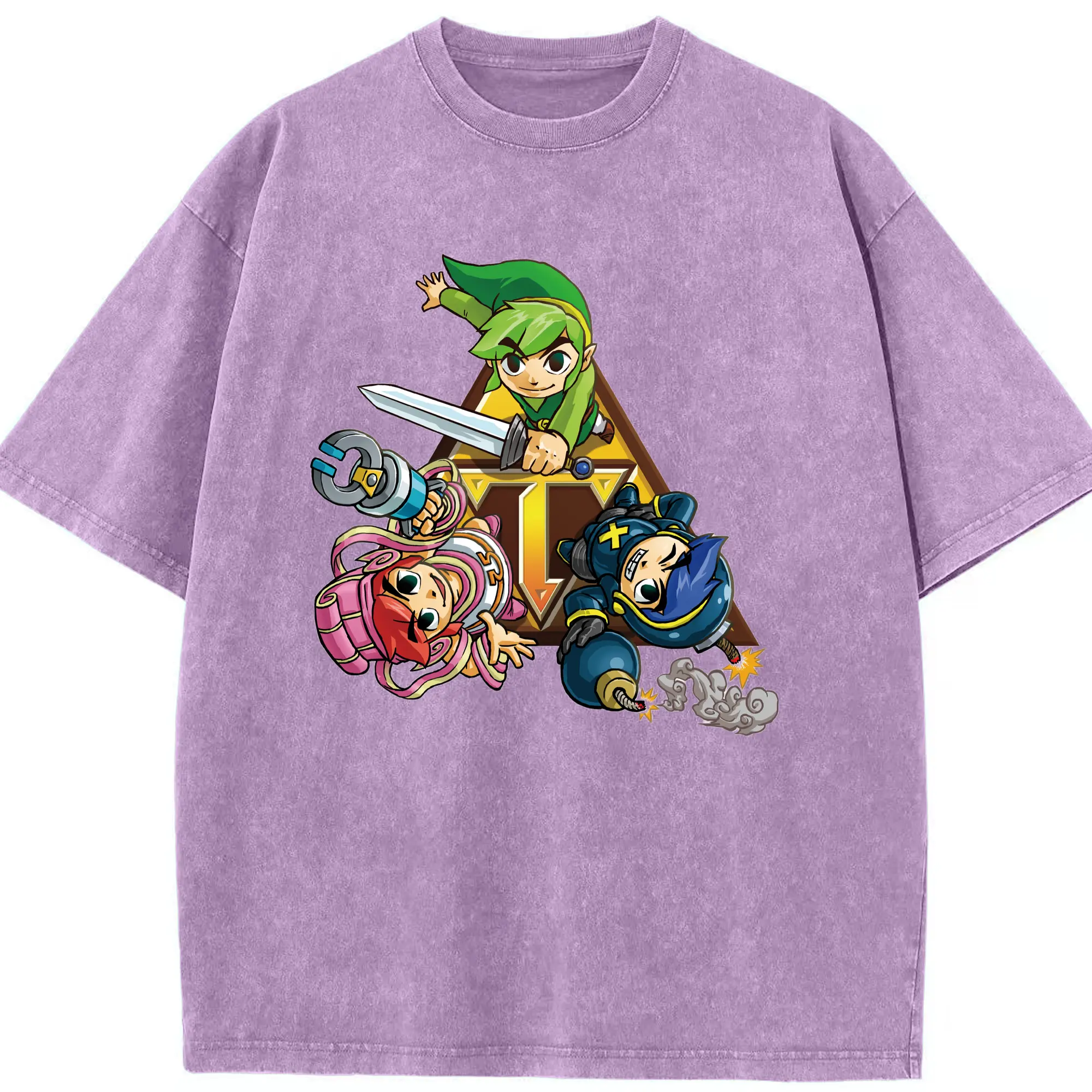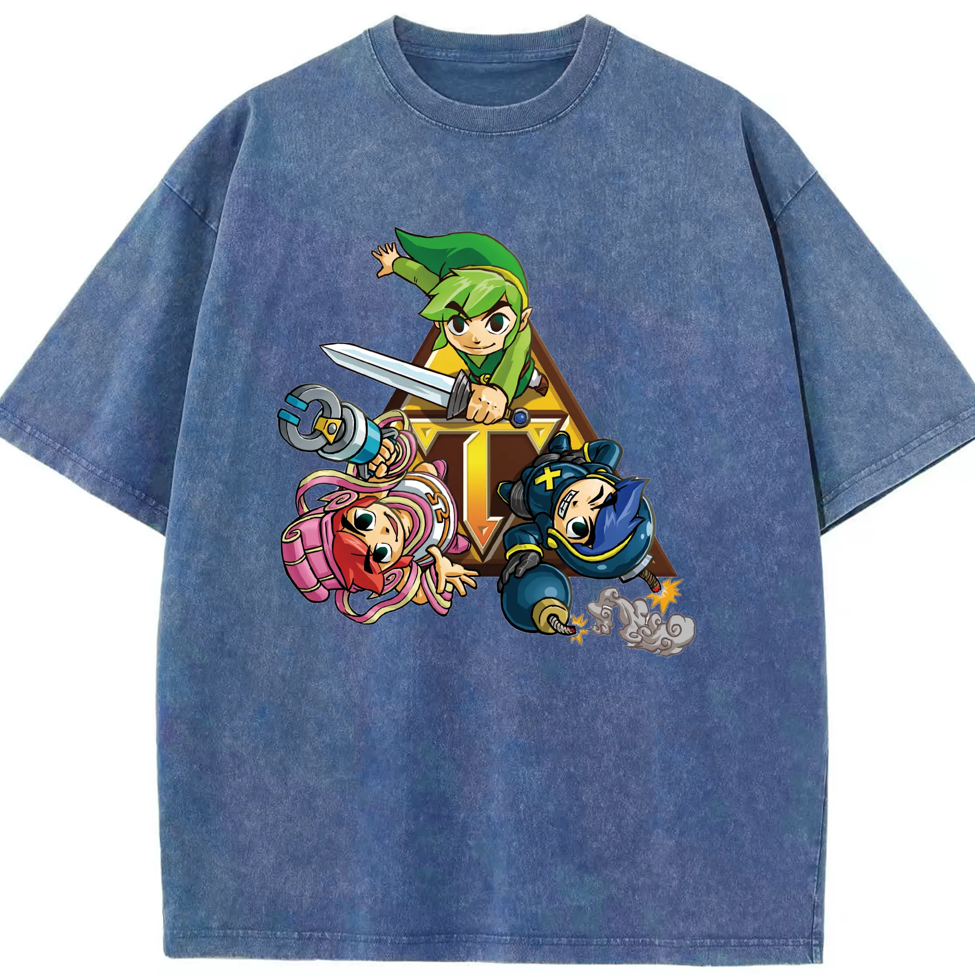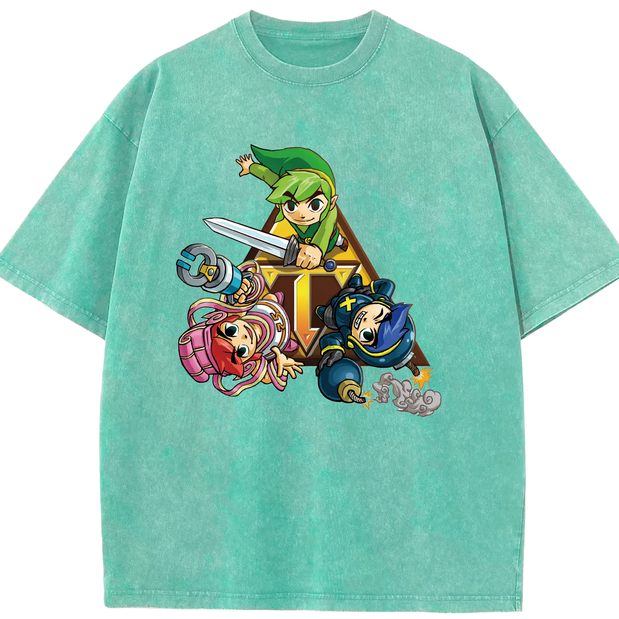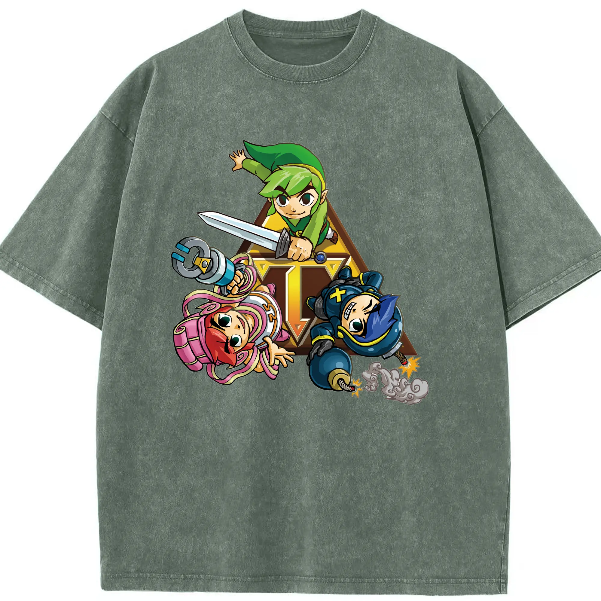 The Legend of Zelda Link and friends shirt - Washed Vintage Look 230g Cotton Oversized T-Shirt With Front Heat Transfer Print – Soft, Lightweight, Stylish Fit – Comfortable Casual Wear For Sports & Everyday Use