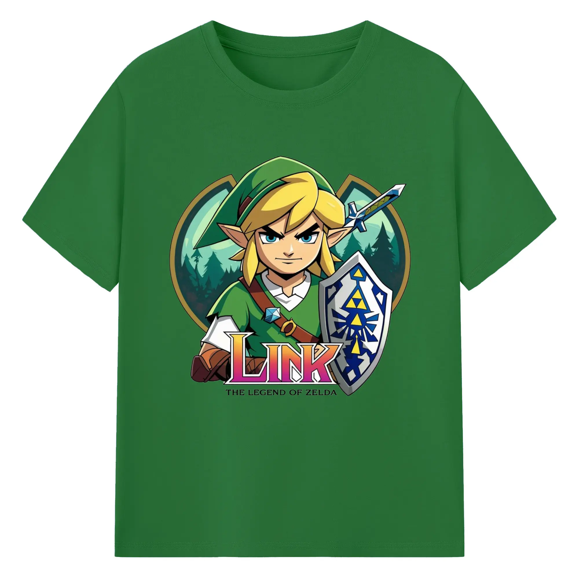 The Legend of Zelda Link cartoon shirt - 180g Cotton T-Shirt With Front Heat Transfer Print – Soft, Lightweight, Fitted Design – Comfortable Casual Wear For Sports & Everyday Use