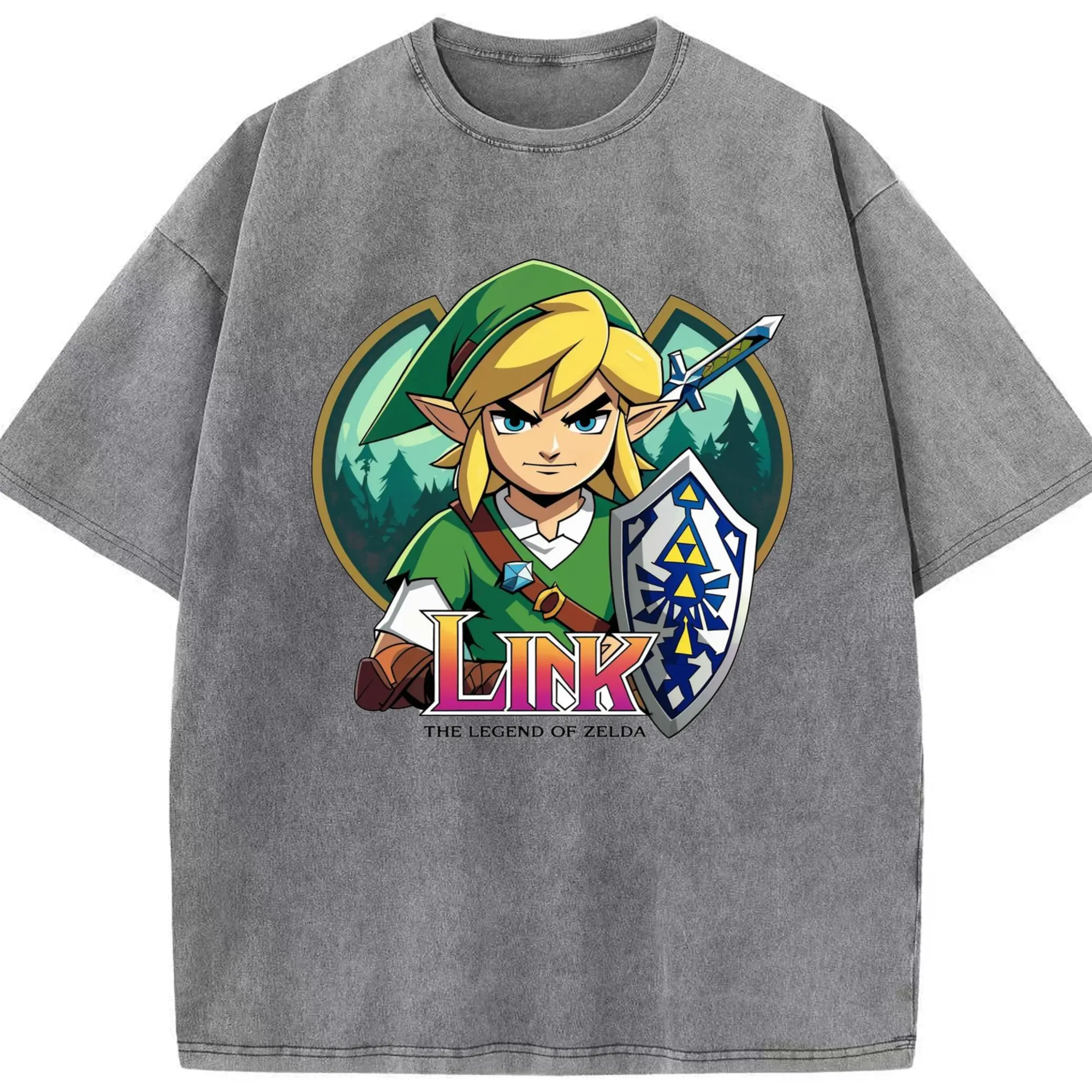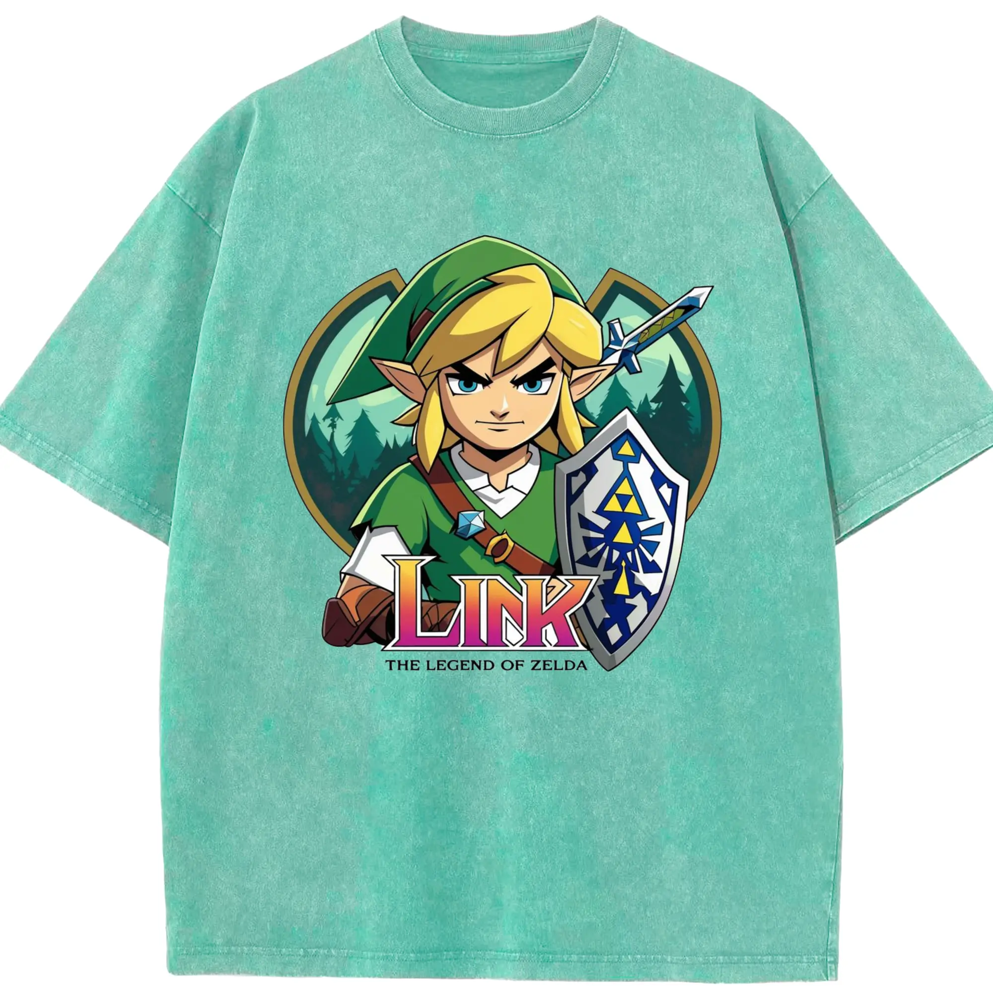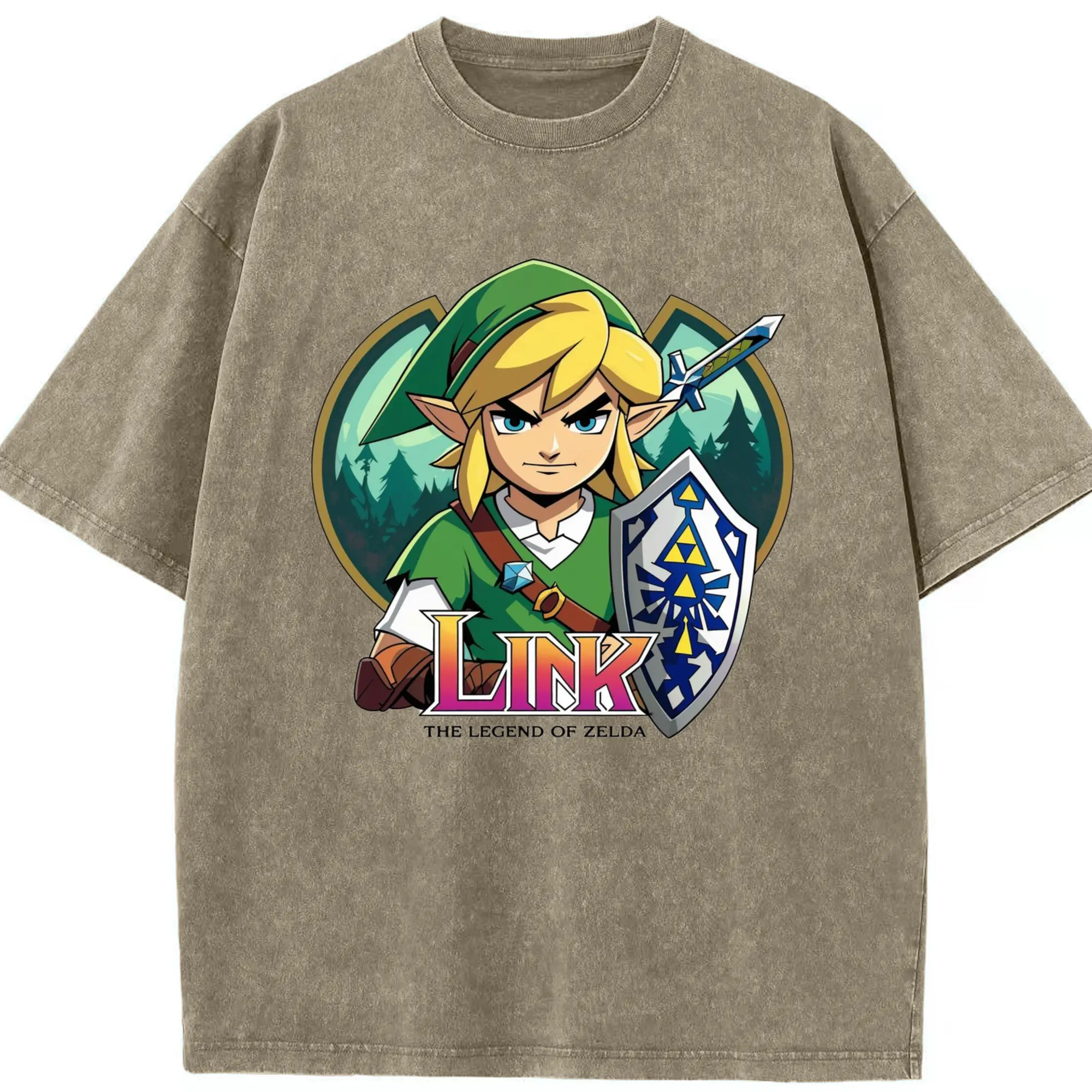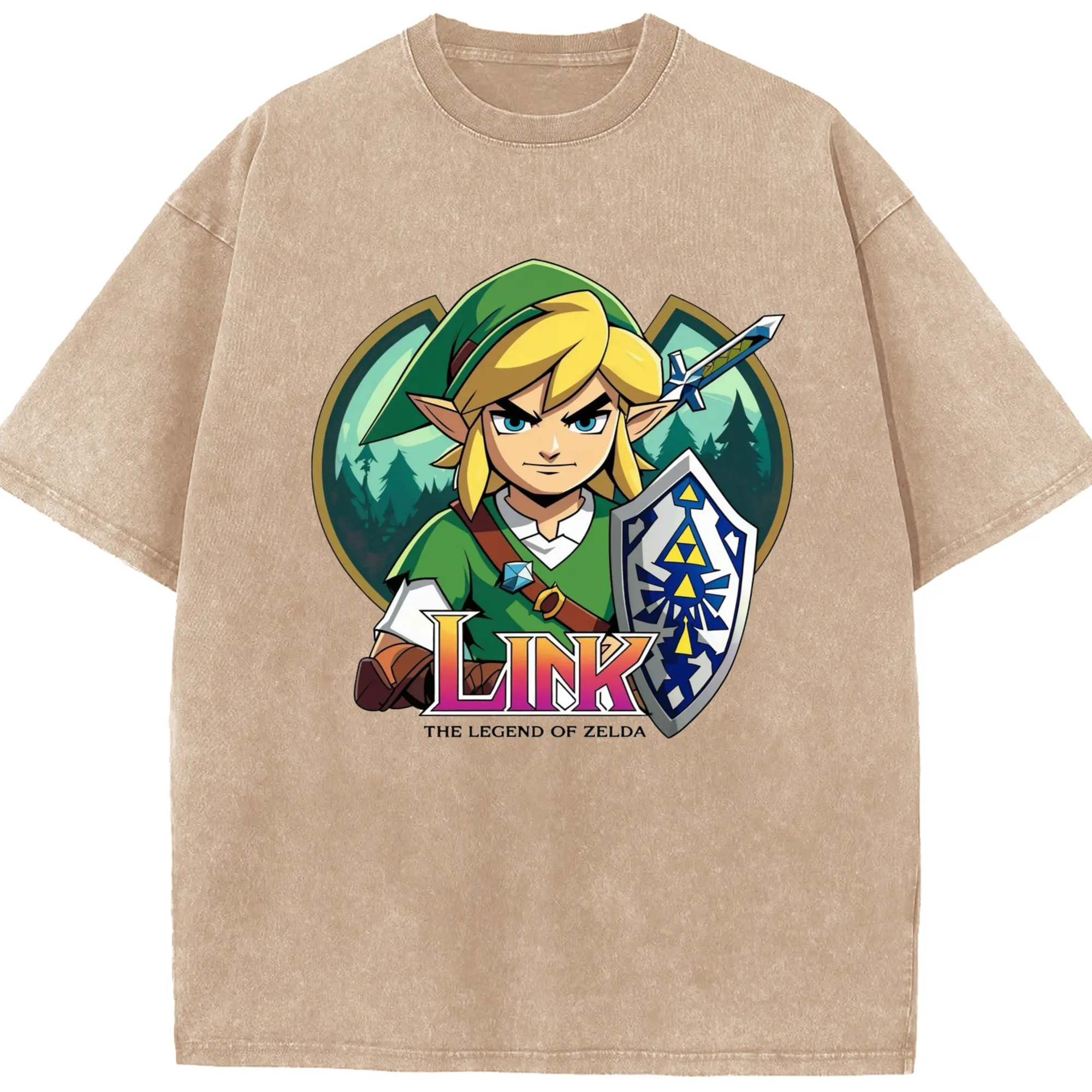 The Legend of Zelda Link cartoon shirt - Washed Vintage Look 230g Cotton Oversized T-Shirt With Front Heat Transfer Print – Soft, Lightweight, Stylish Fit – Comfortable Casual Wear For Sports & Everyday Use
