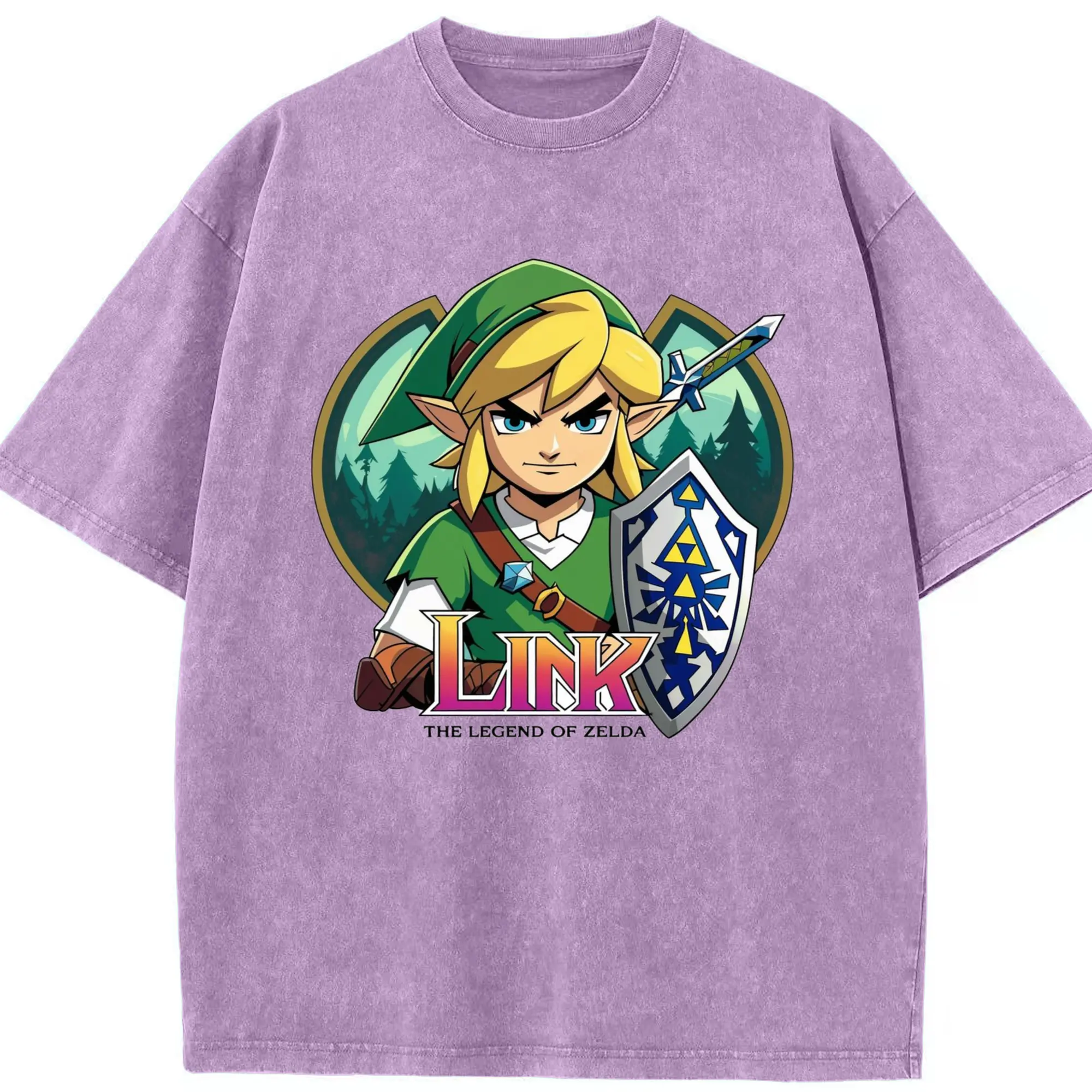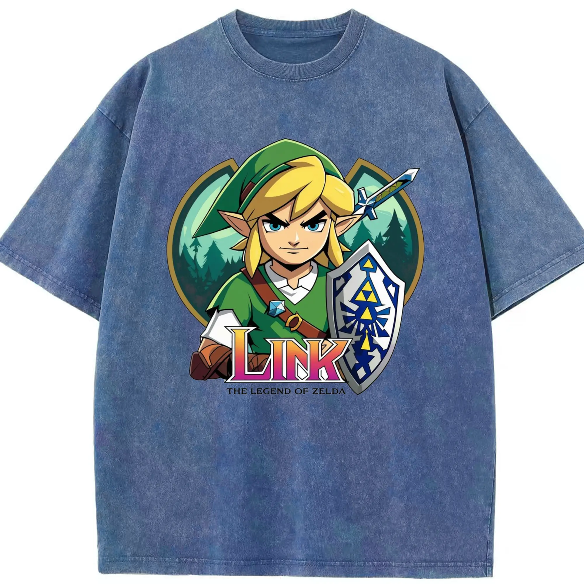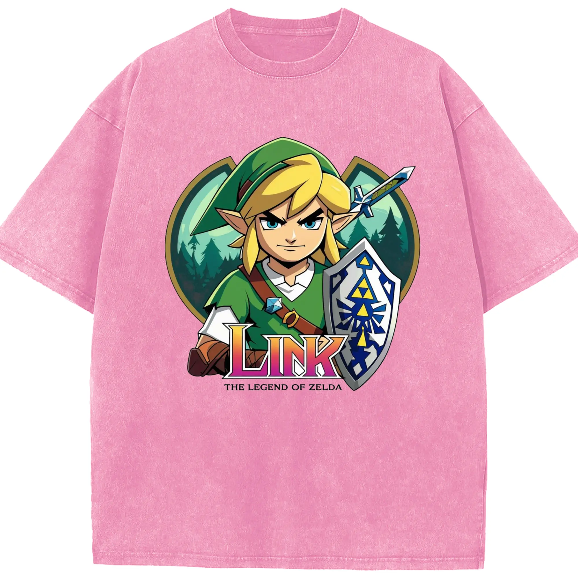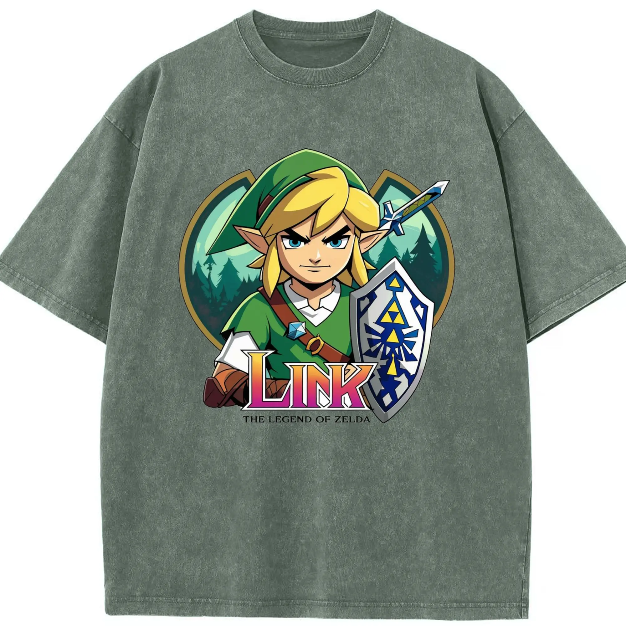 The Legend of Zelda Link cartoon shirt - Washed Vintage Look 230g Cotton Oversized T-Shirt With Front Heat Transfer Print – Soft, Lightweight, Stylish Fit – Comfortable Casual Wear For Sports & Everyday Use