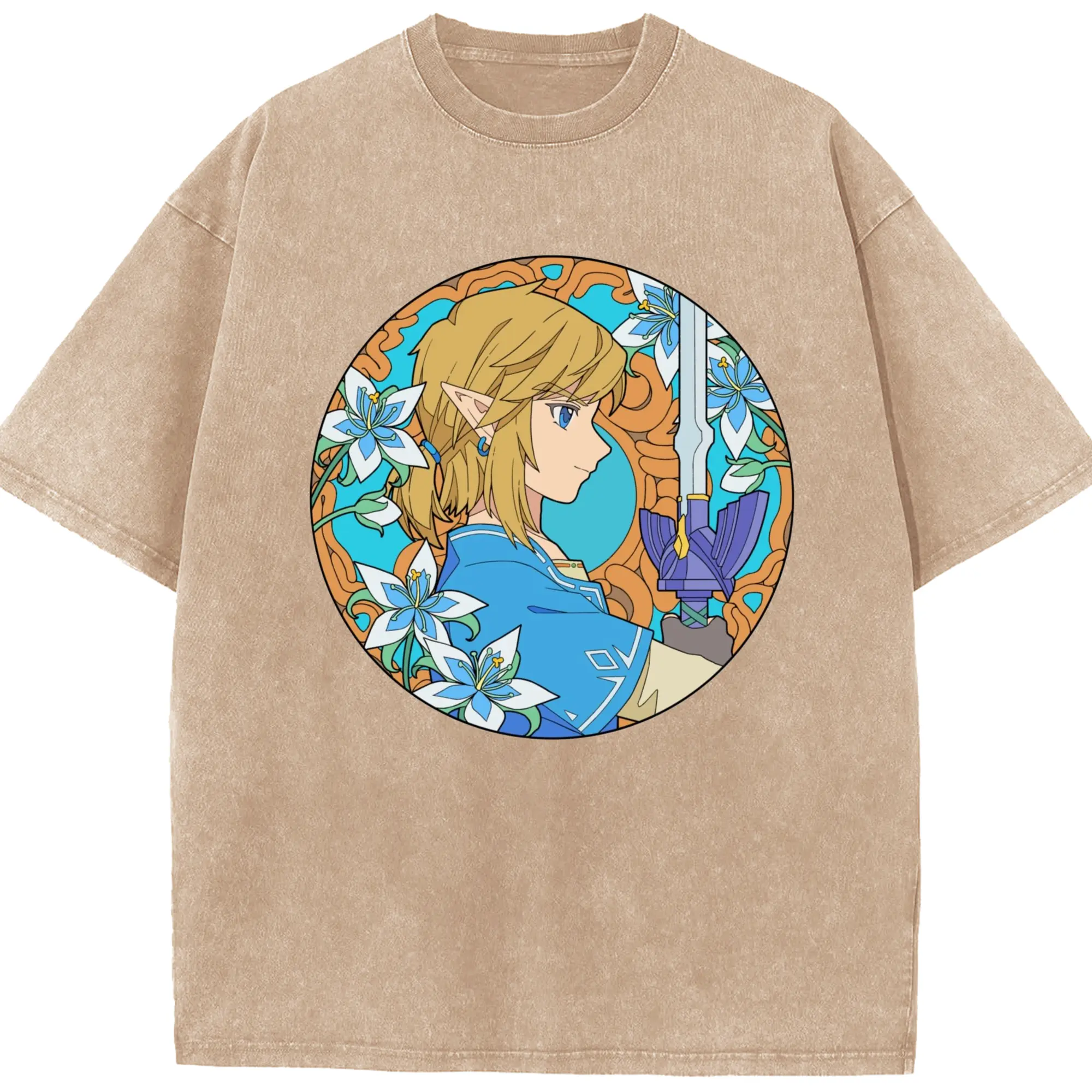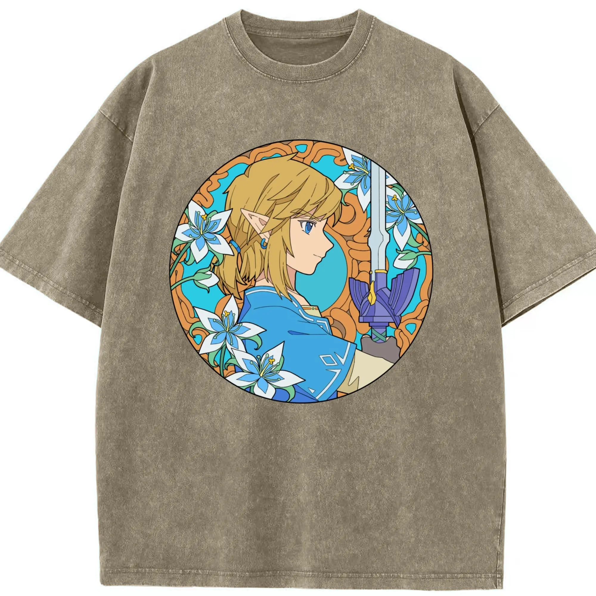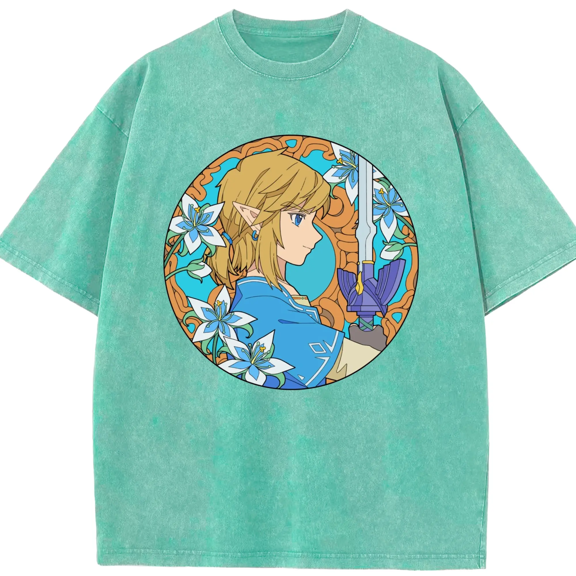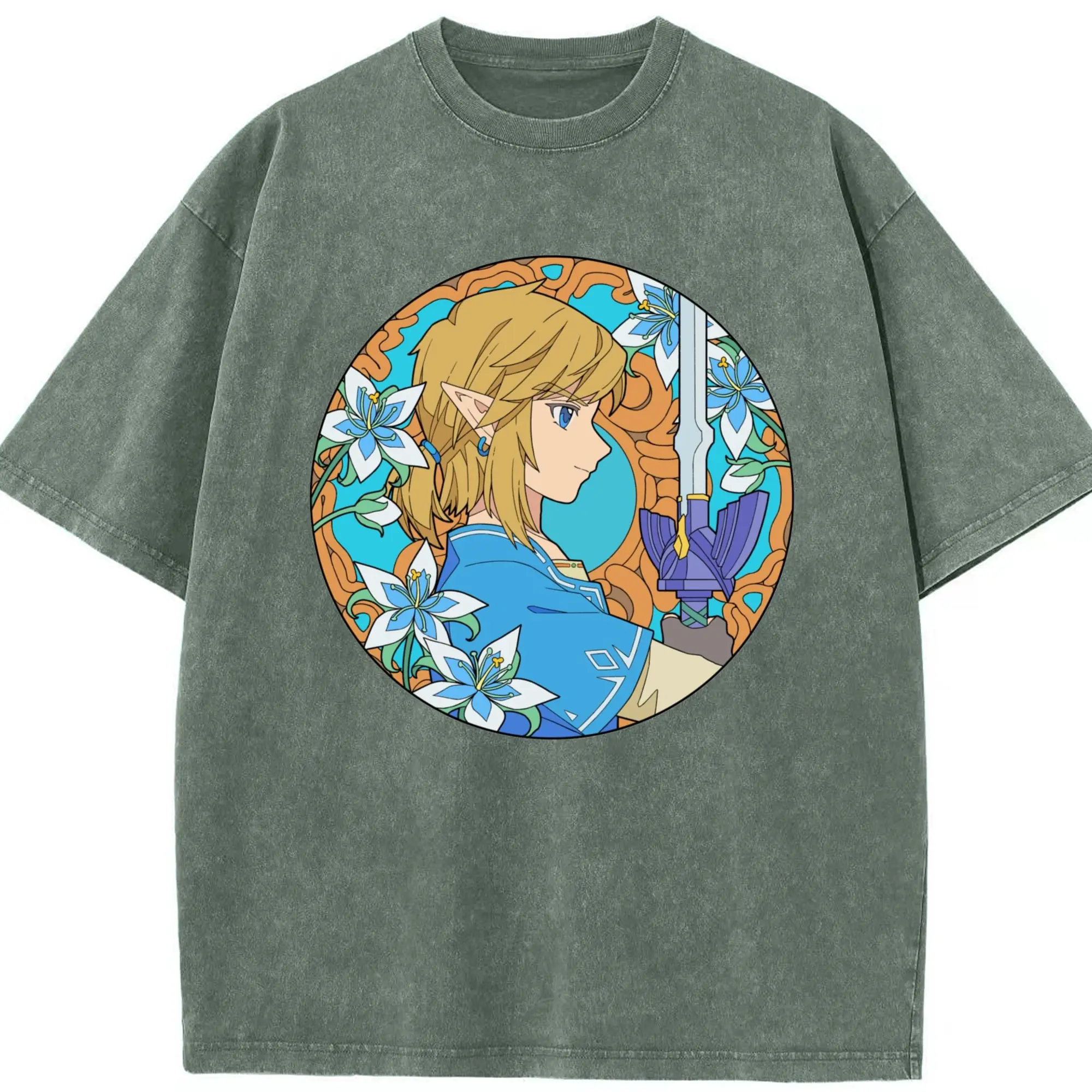 The Legend of Zelda Link painting icon shirt - Washed Vintage Look 230g Cotton Oversized T-Shirt With Front Heat Transfer Print – Soft, Lightweight, Stylish Fit – Comfortable Casual Wear For Sports & Everyday Use