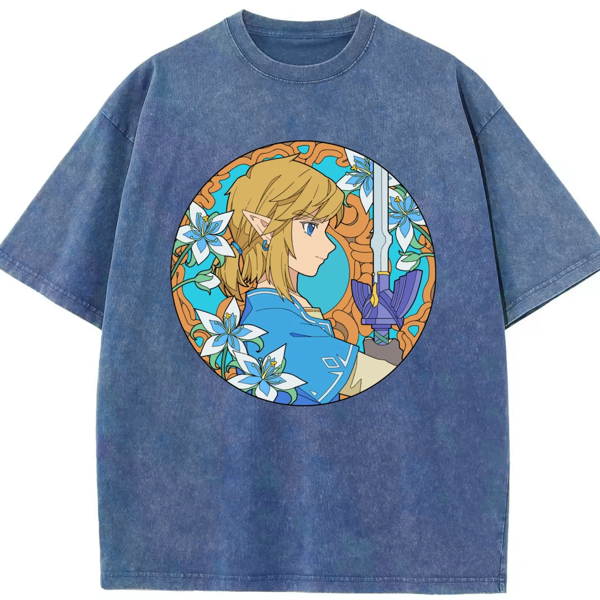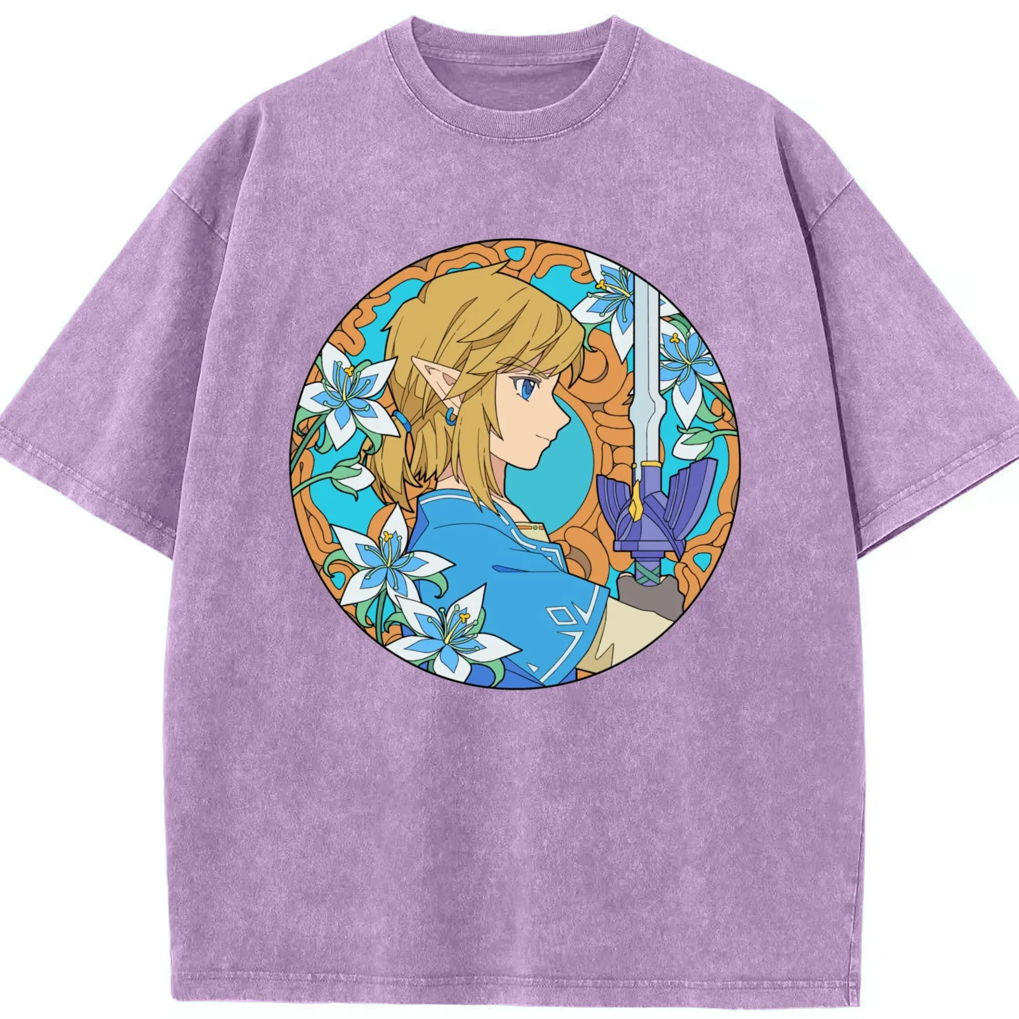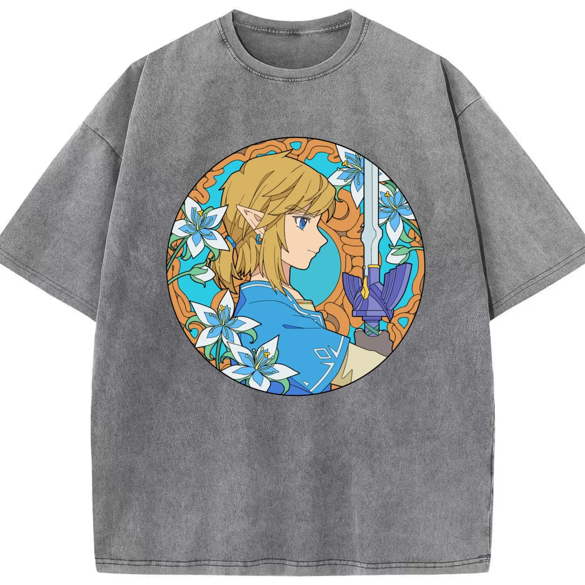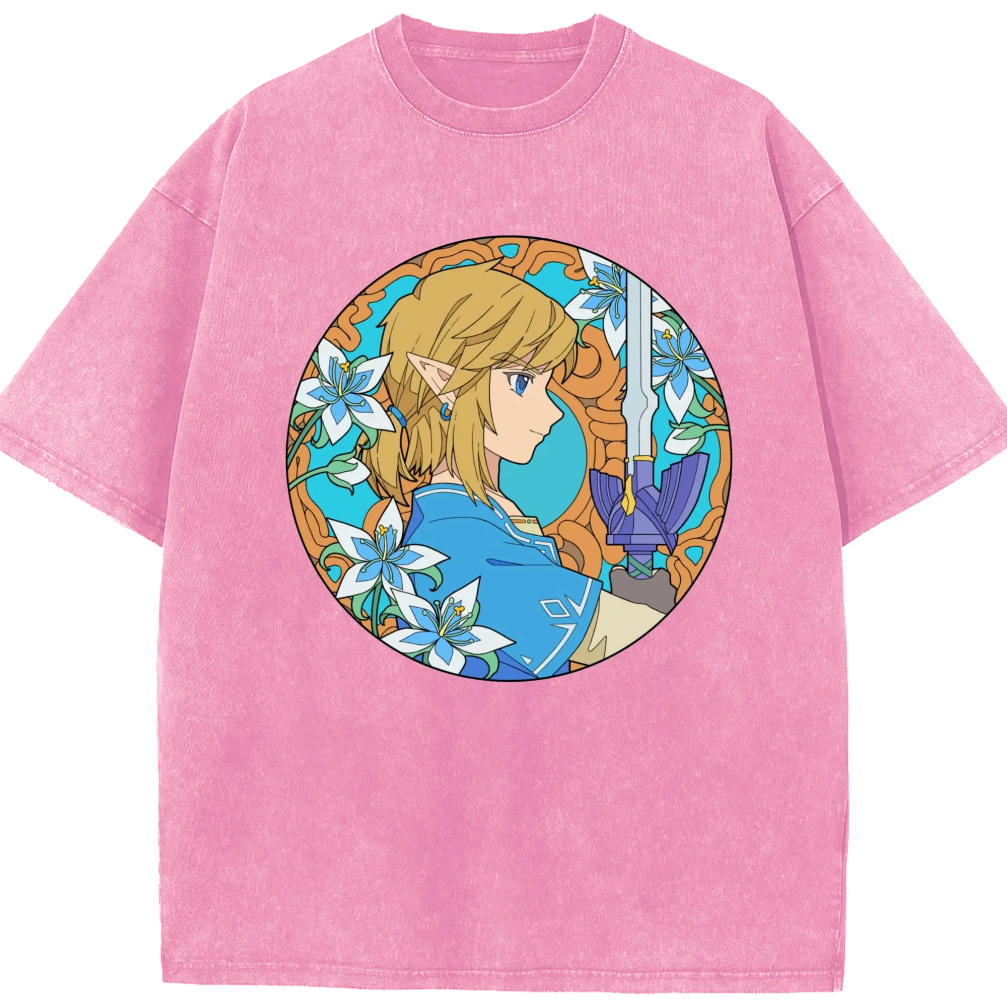 The Legend of Zelda Link painting icon shirt - Washed Vintage Look 230g Cotton Oversized T-Shirt With Front Heat Transfer Print – Soft, Lightweight, Stylish Fit – Comfortable Casual Wear For Sports & Everyday Use