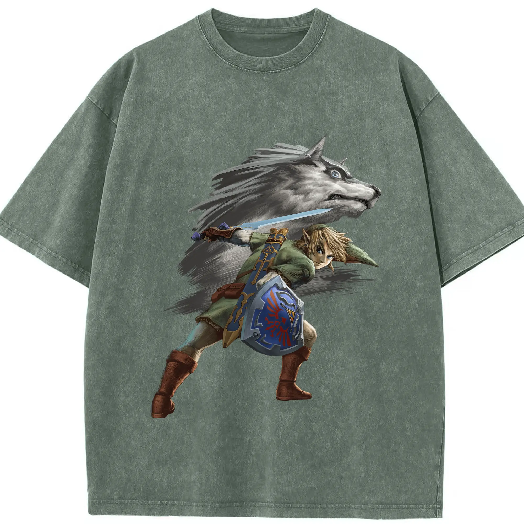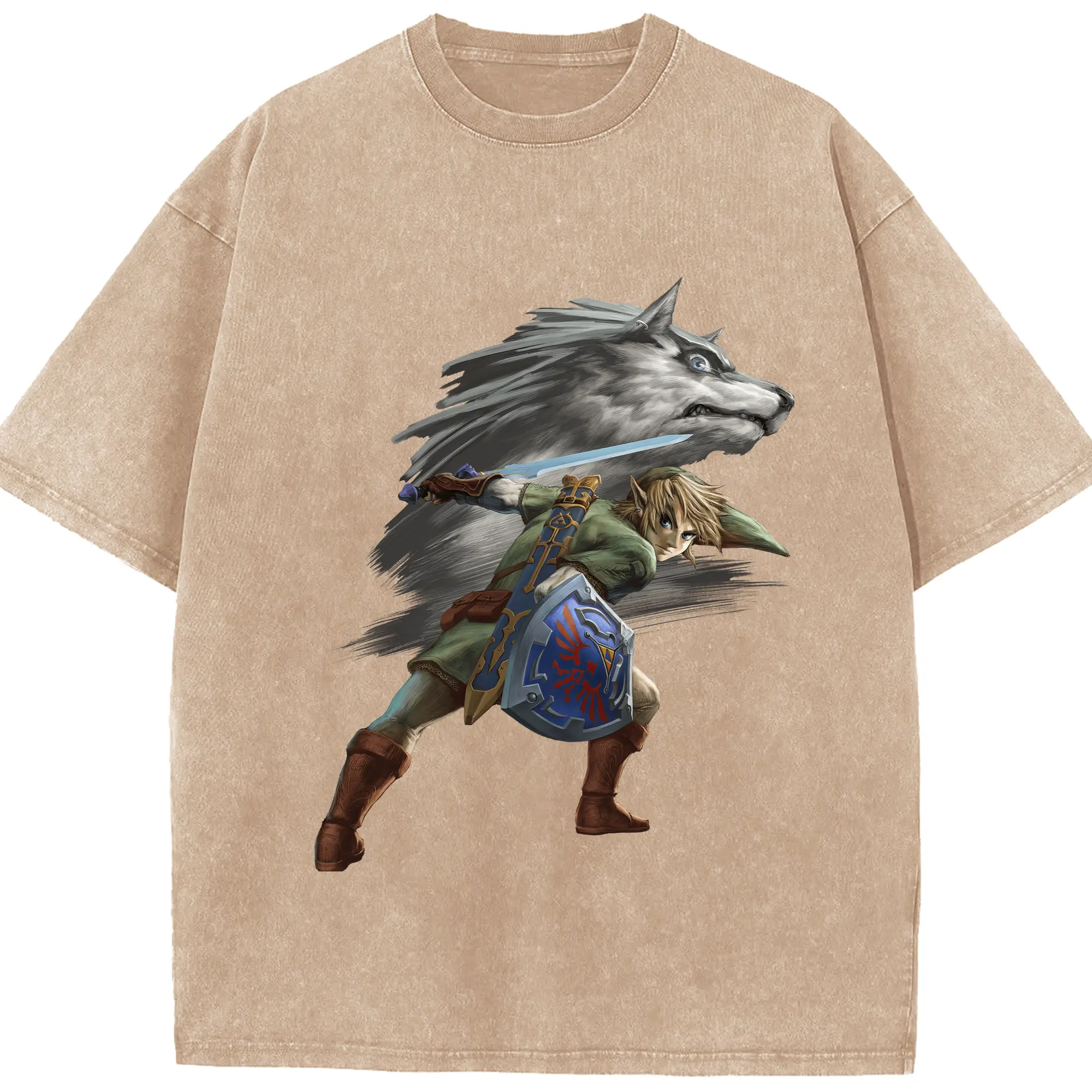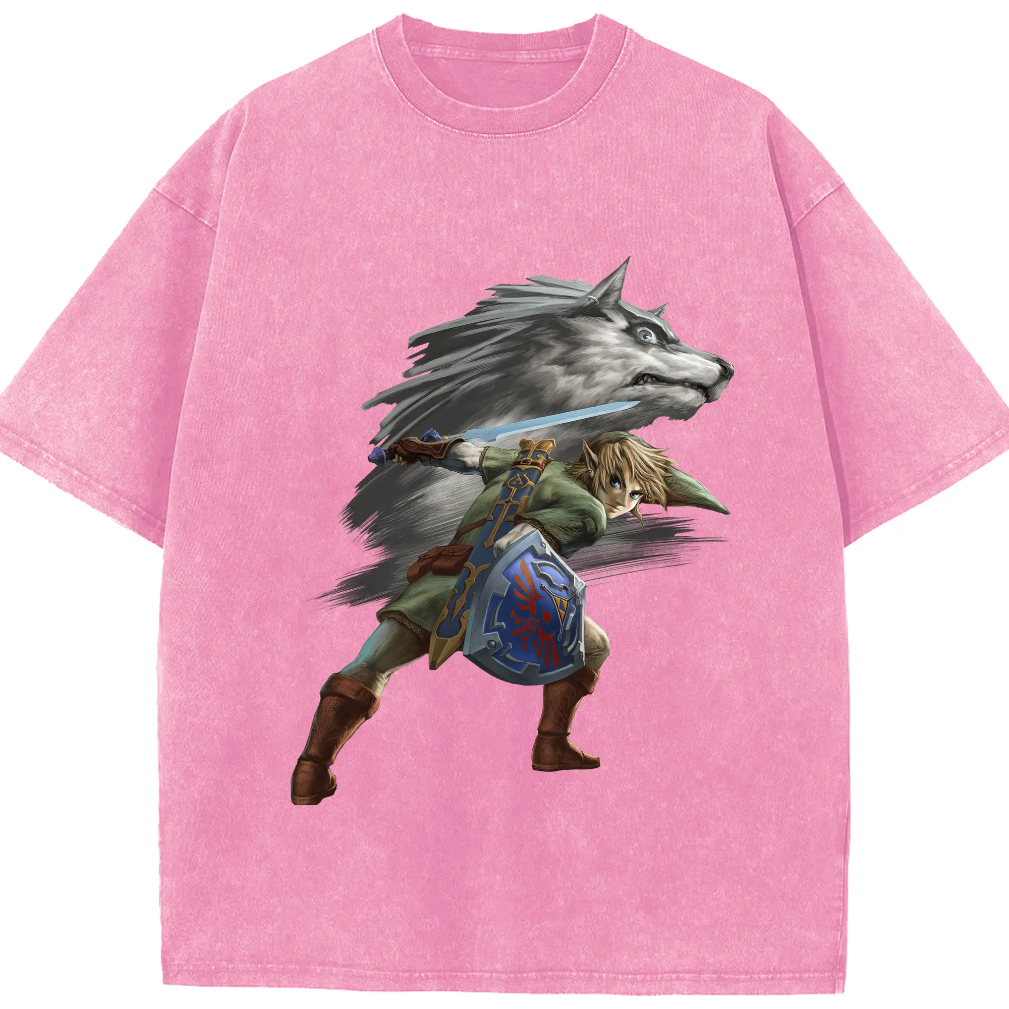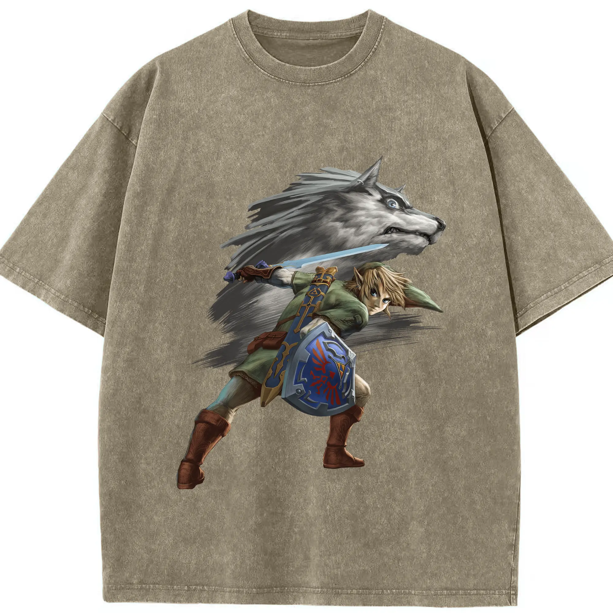 The Legend of Zelda Link painting t-shirt - Washed Vintage Look 230g Cotton Oversized T-Shirt With Front Heat Transfer Print – Soft, Lightweight, Stylish Fit – Comfortable Casual Wear For Sports & Everyday Use