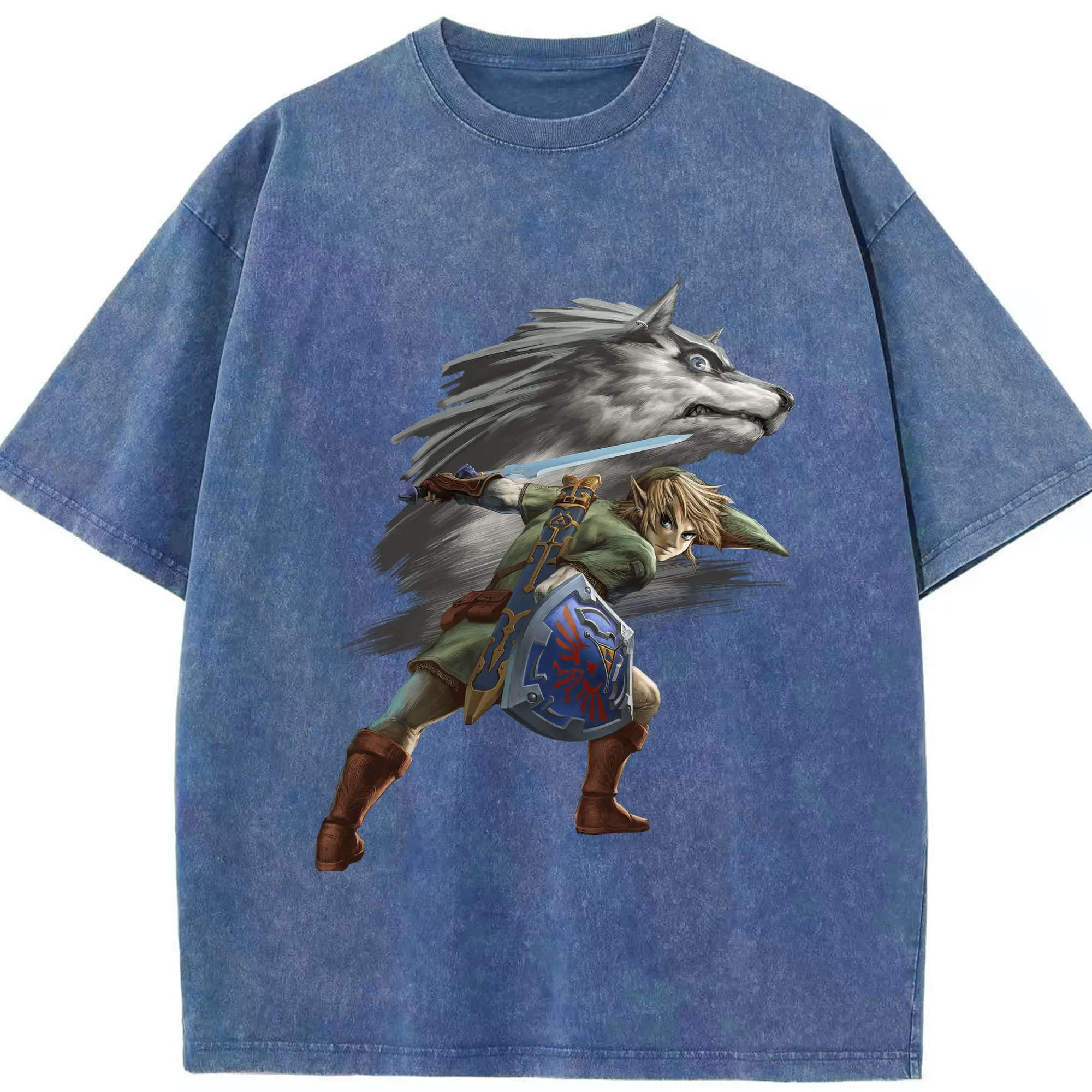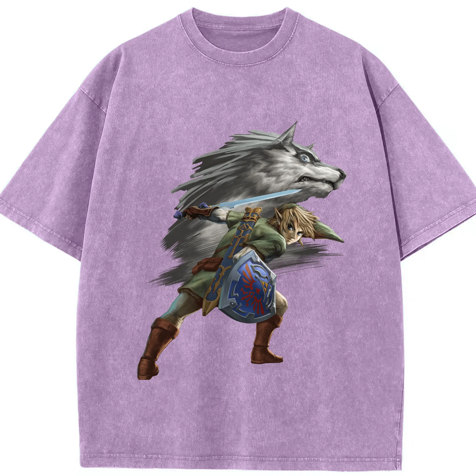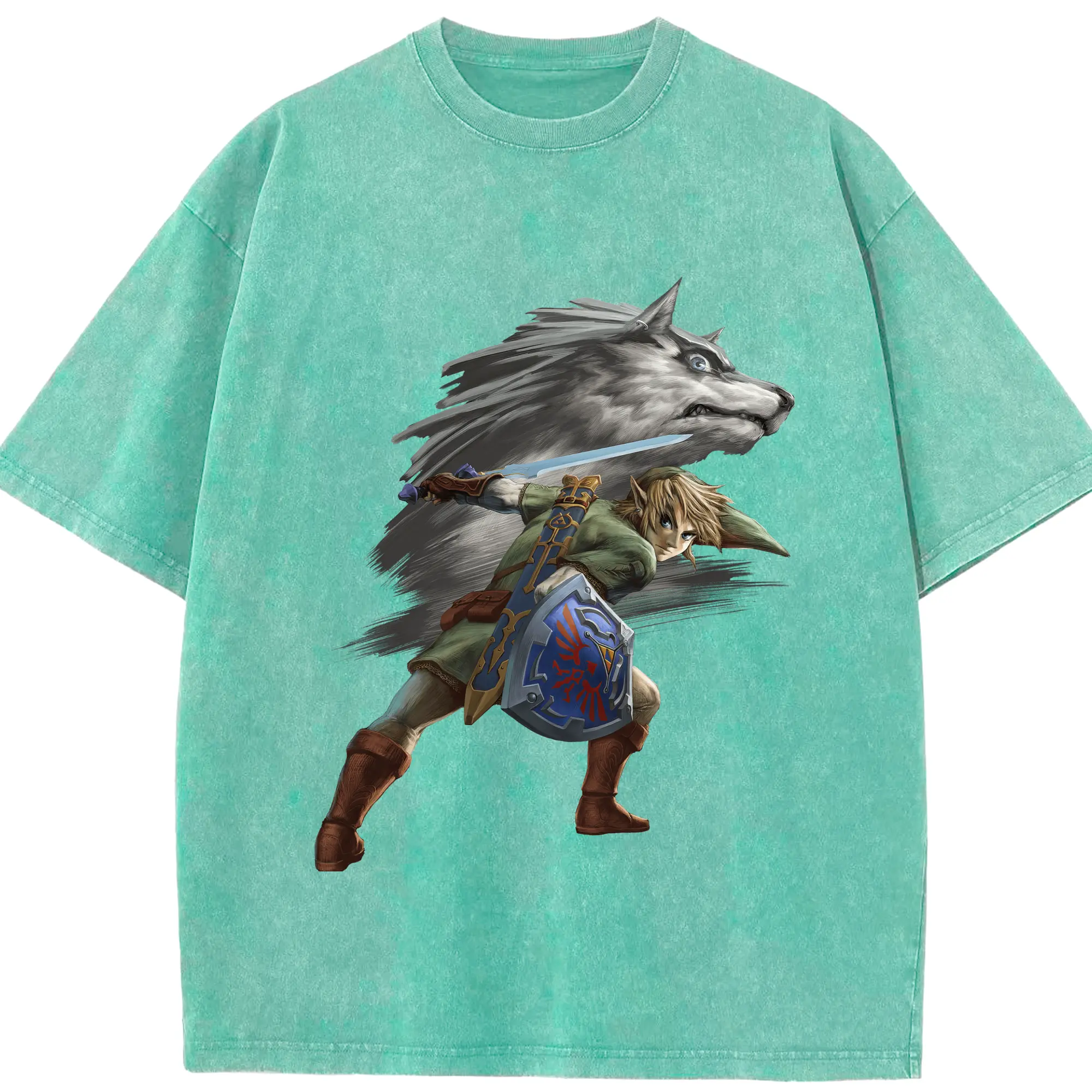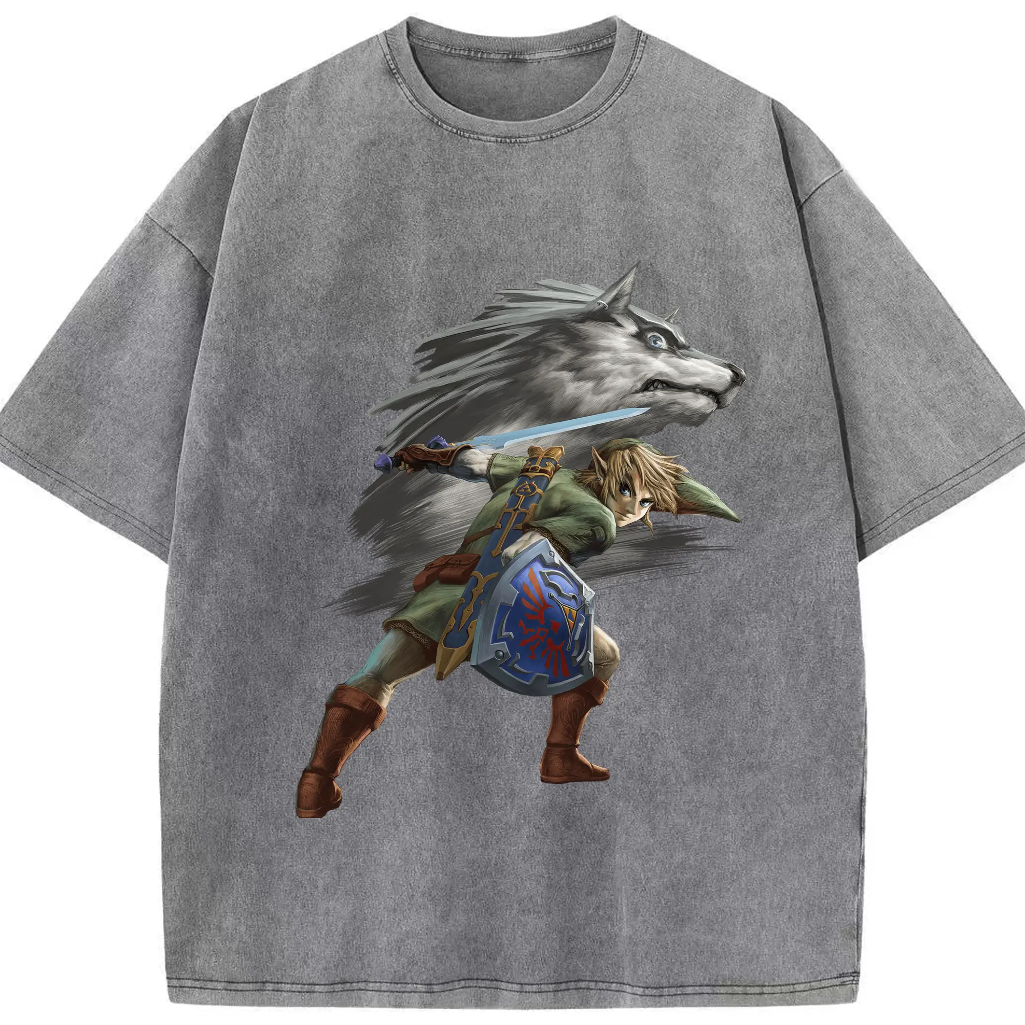 The Legend of Zelda Link painting t-shirt - Washed Vintage Look 230g Cotton Oversized T-Shirt With Front Heat Transfer Print – Soft, Lightweight, Stylish Fit – Comfortable Casual Wear For Sports & Everyday Use