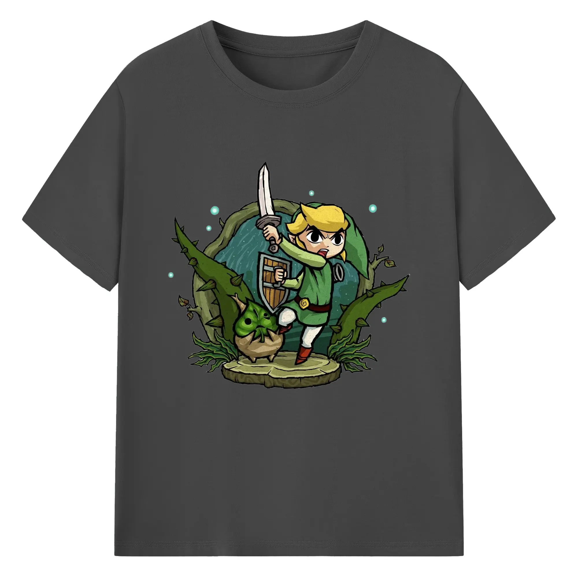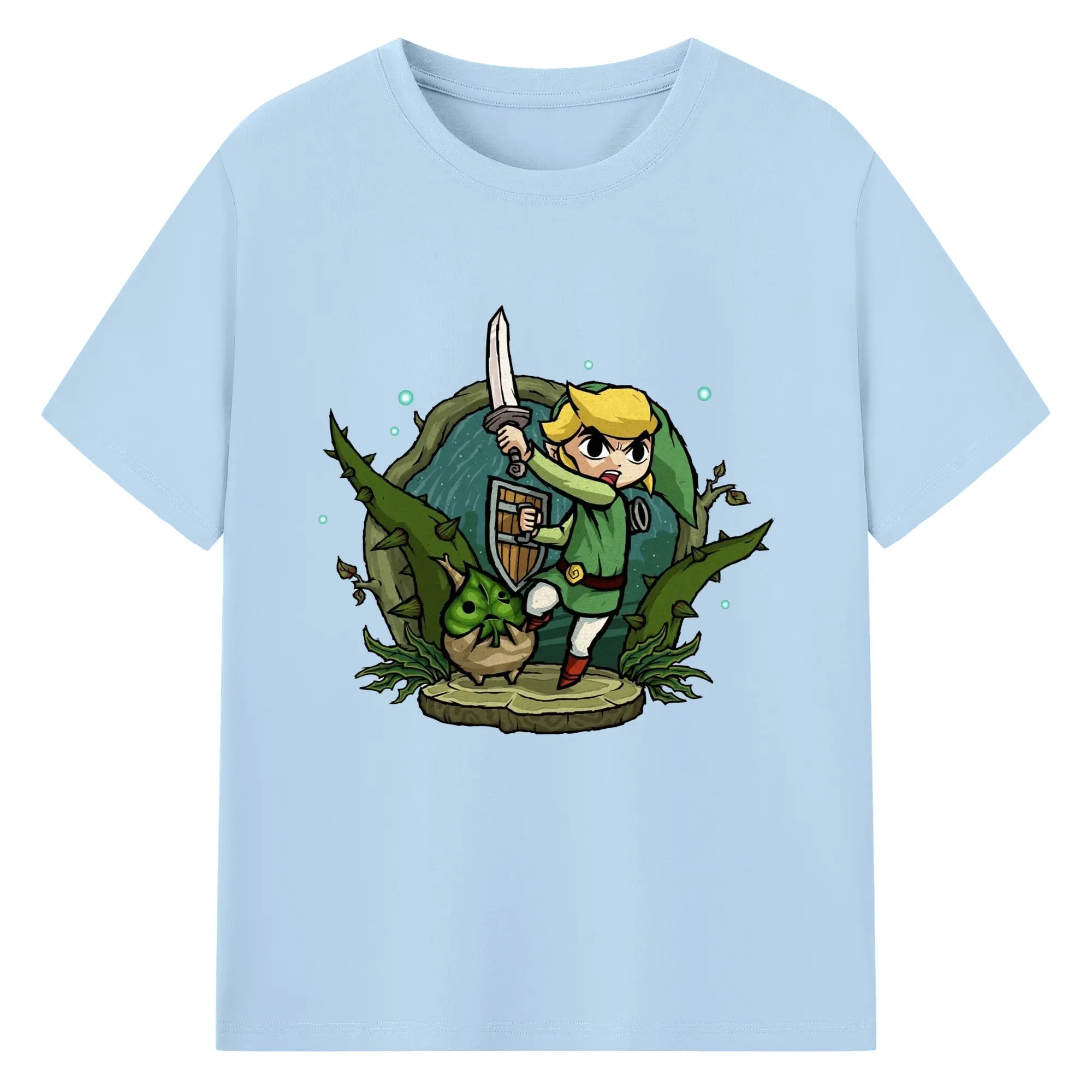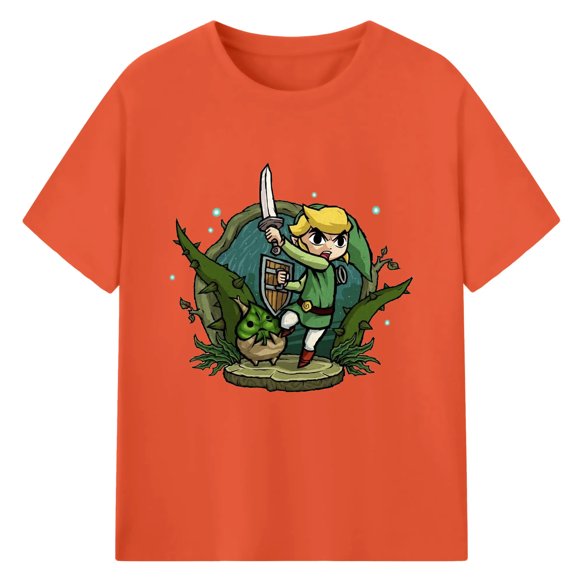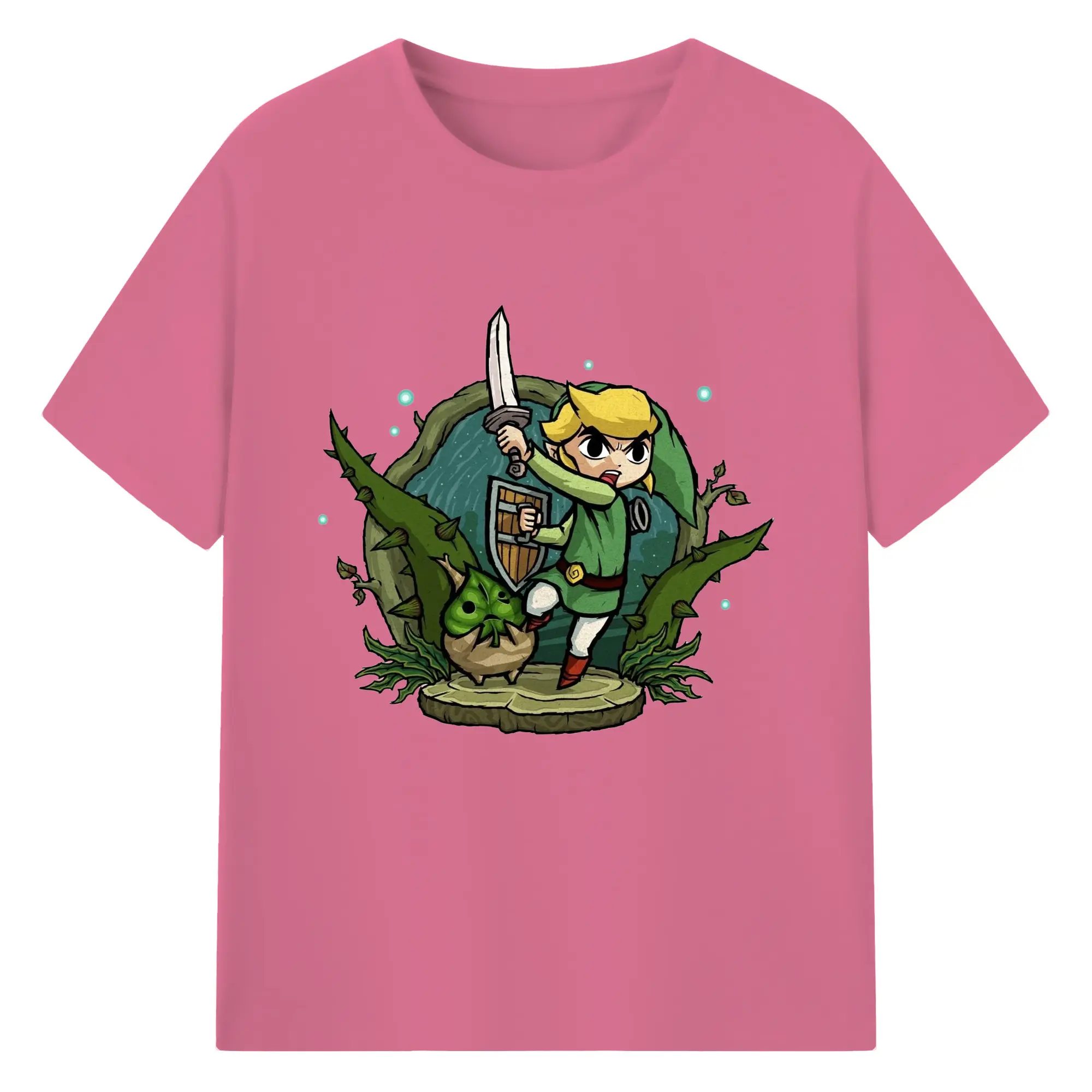 The Legend of Zelda Link retro painting shirt - 180g Cotton T-Shirt With Front Heat Transfer Print – Soft, Lightweight, Fitted Design – Comfortable Casual Wear For Sports & Everyday Use