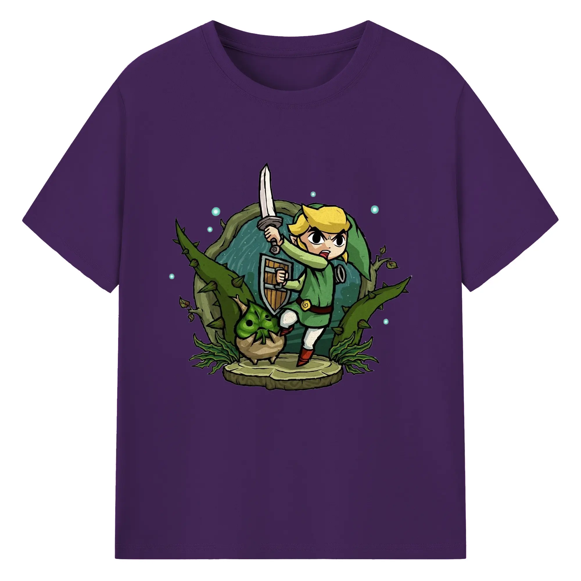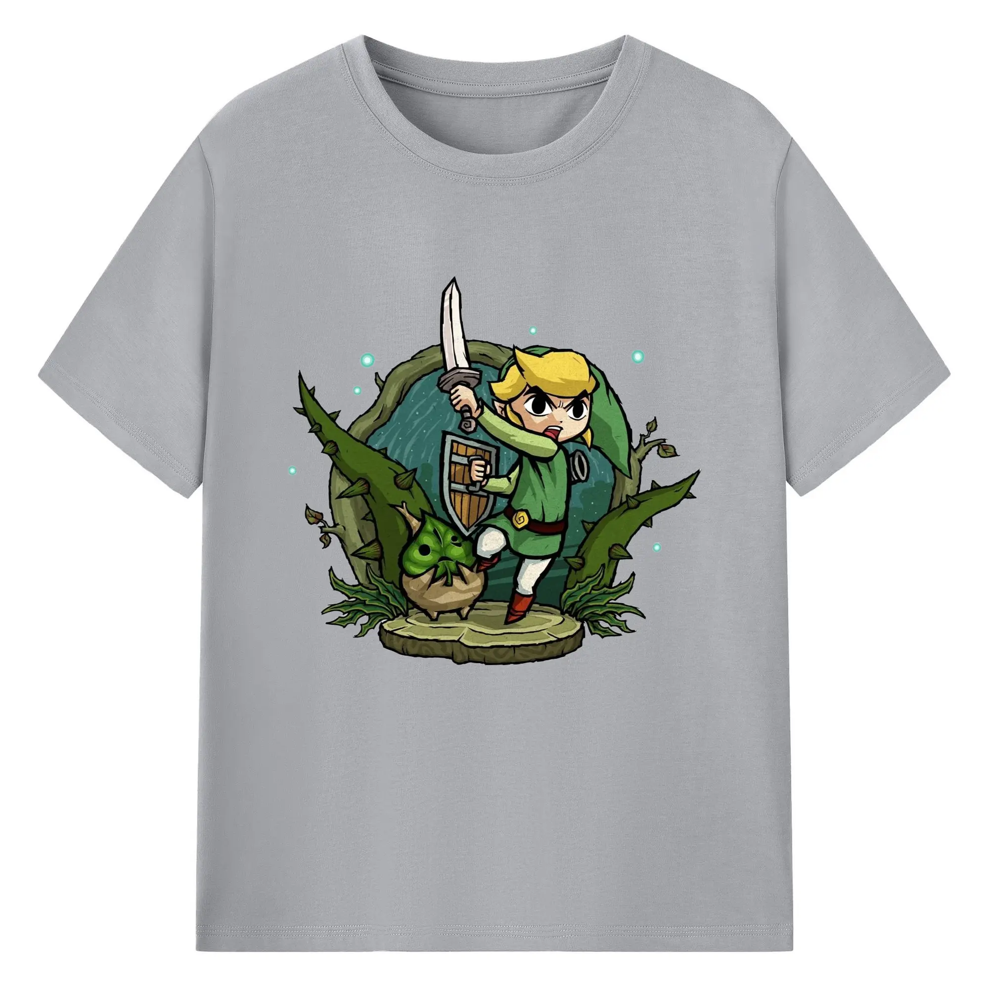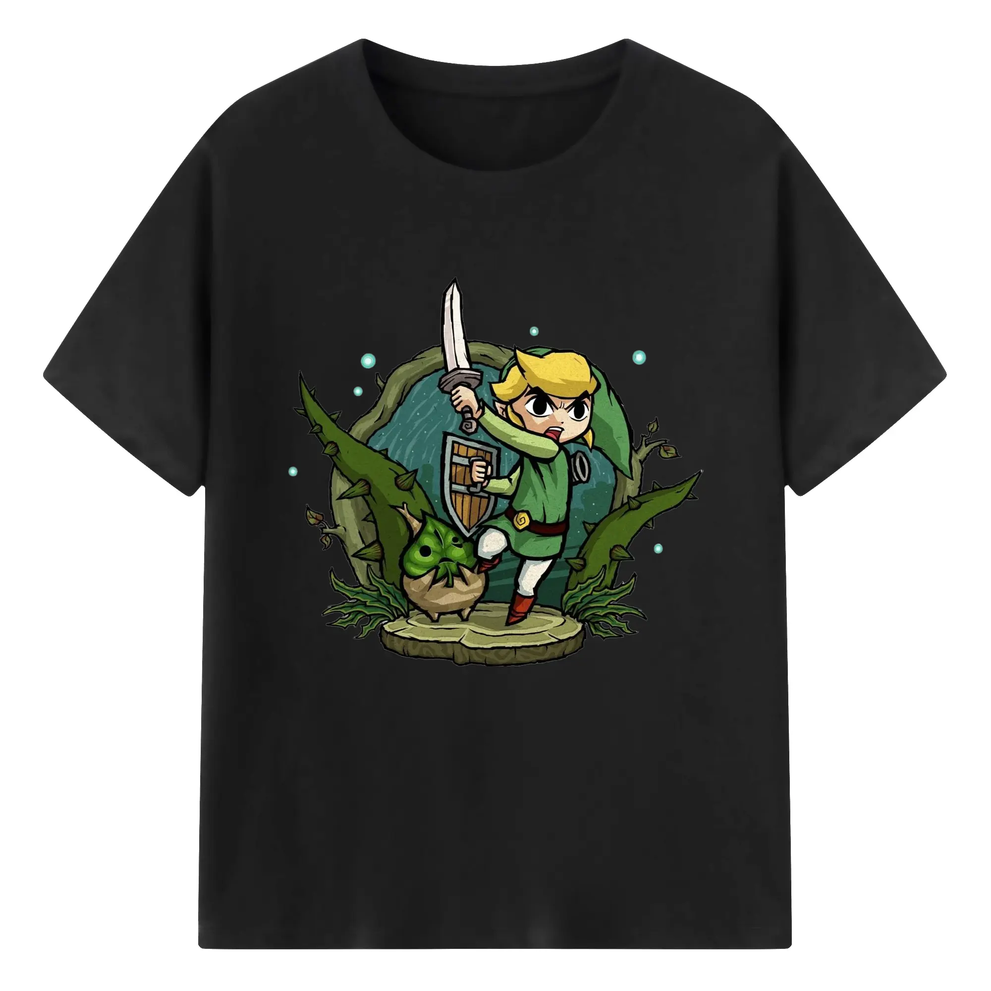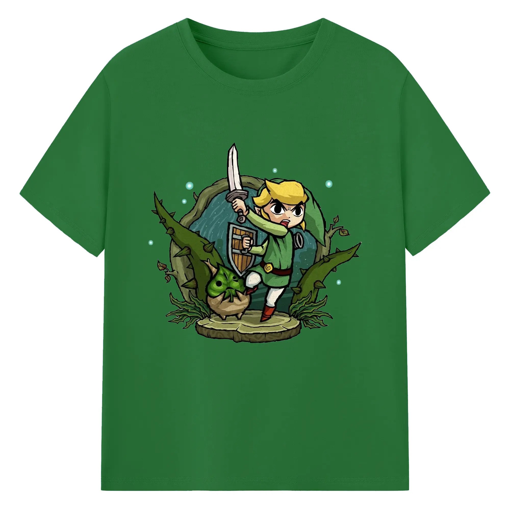 The Legend of Zelda Link retro painting shirt - 180g Cotton T-Shirt With Front Heat Transfer Print – Soft, Lightweight, Fitted Design – Comfortable Casual Wear For Sports & Everyday Use