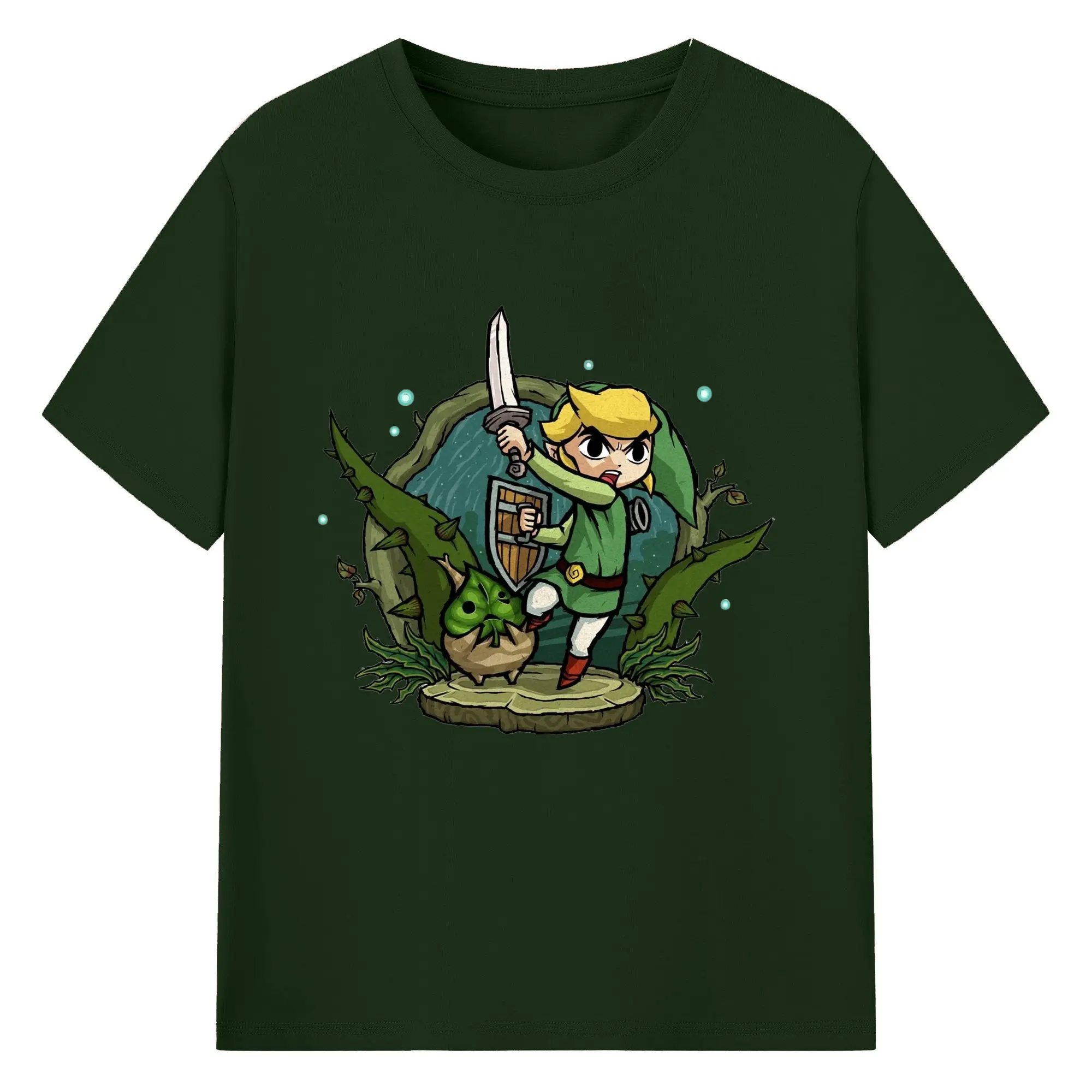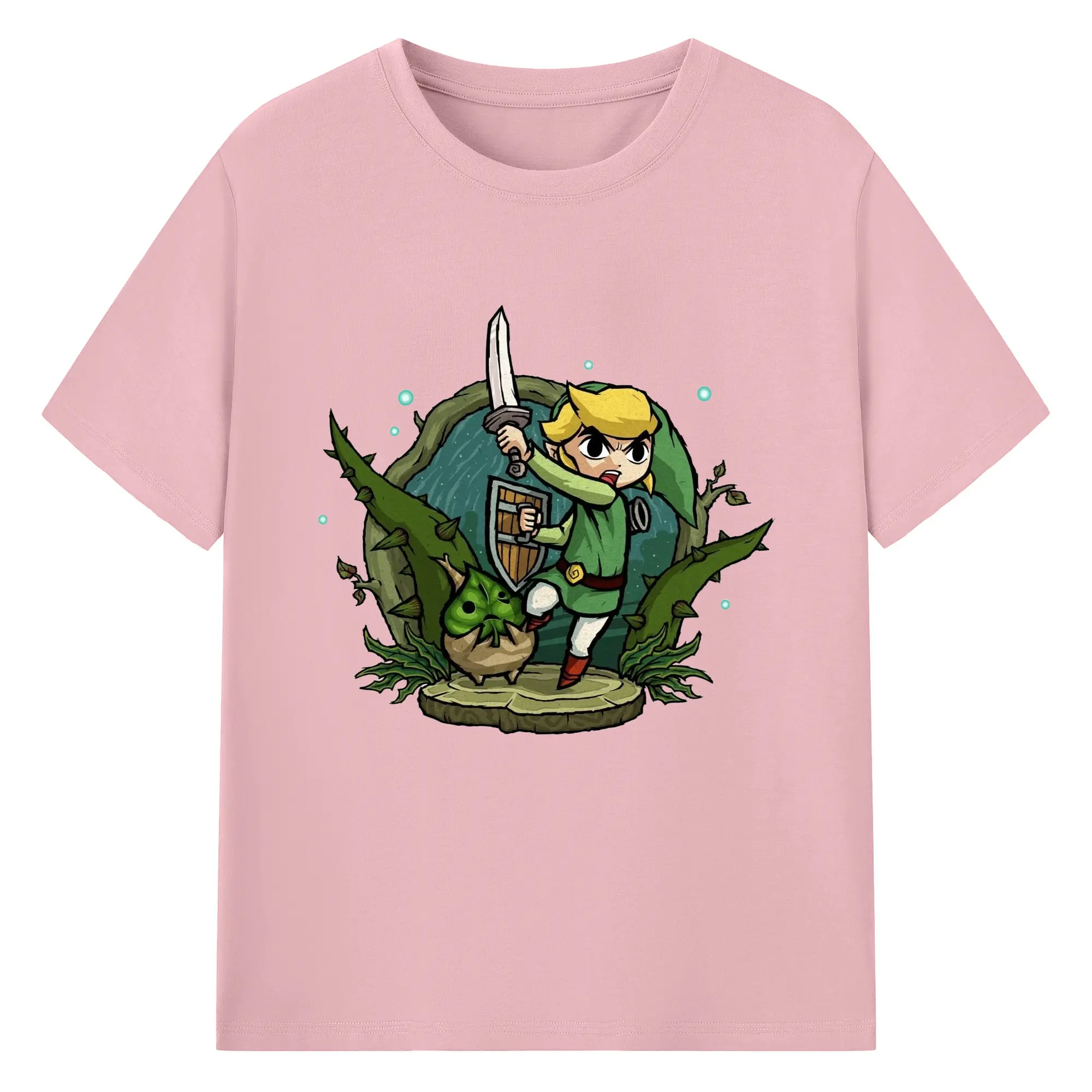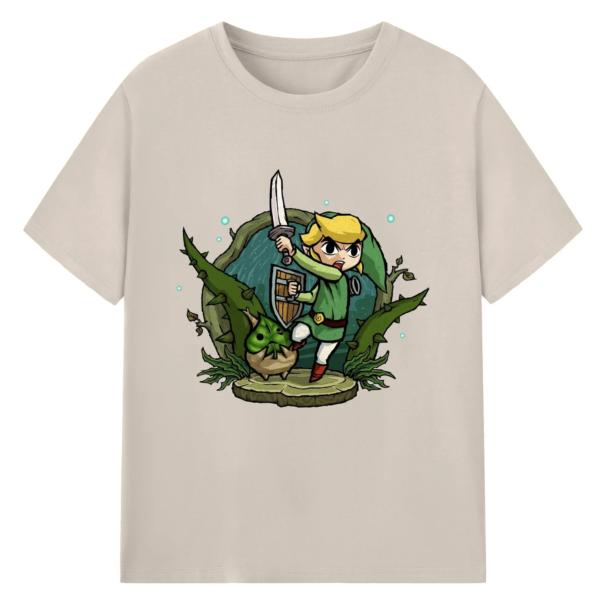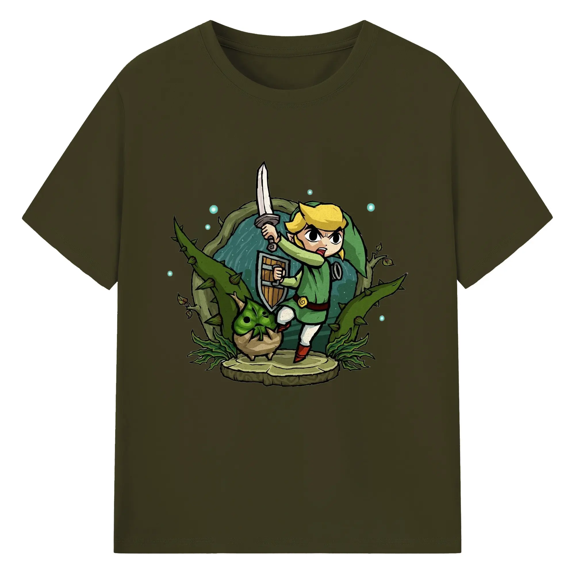 The Legend of Zelda Link retro painting shirt - 180g Cotton T-Shirt With Front Heat Transfer Print – Soft, Lightweight, Fitted Design – Comfortable Casual Wear For Sports & Everyday Use