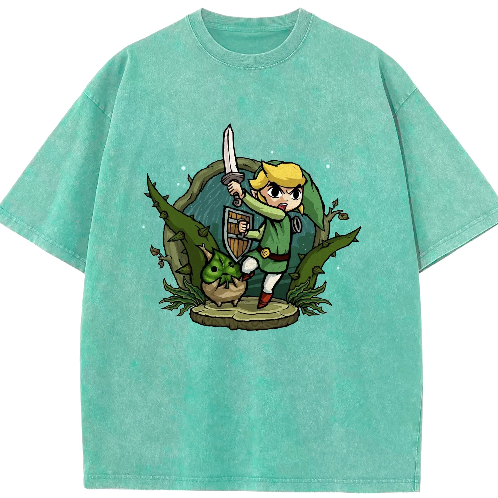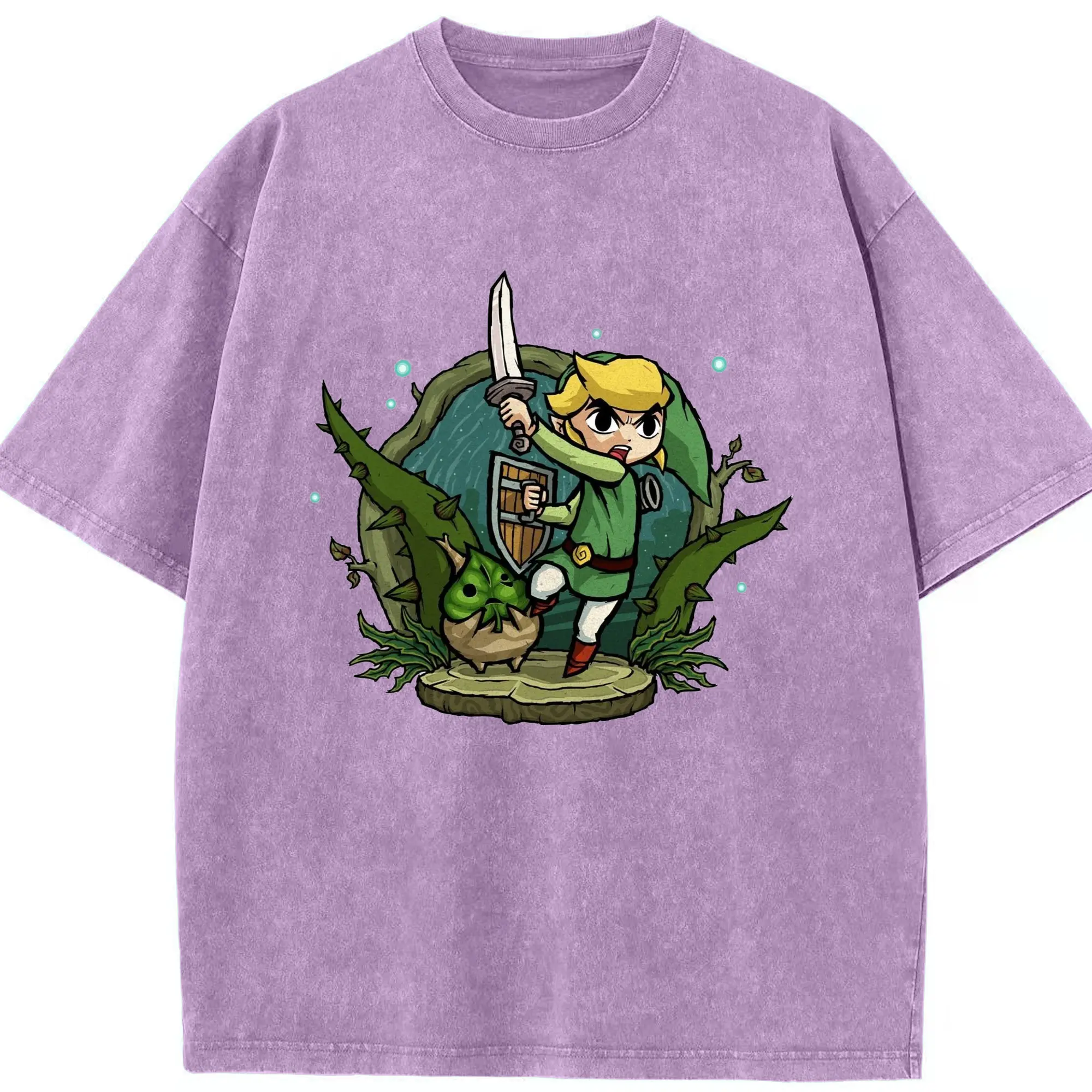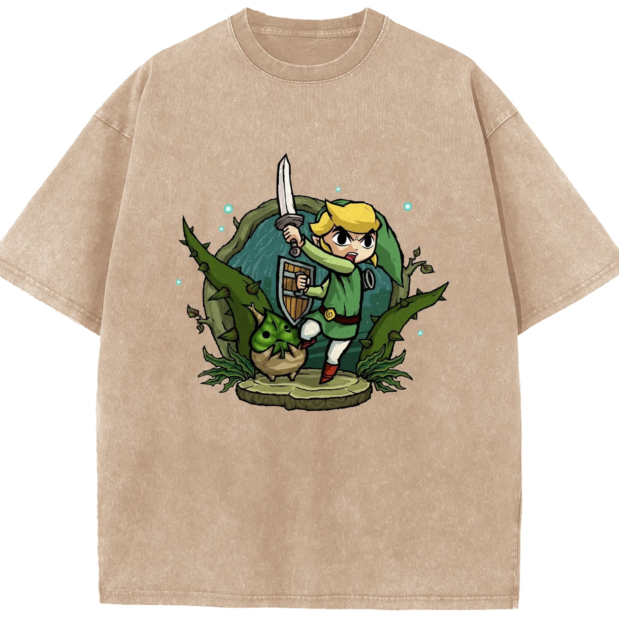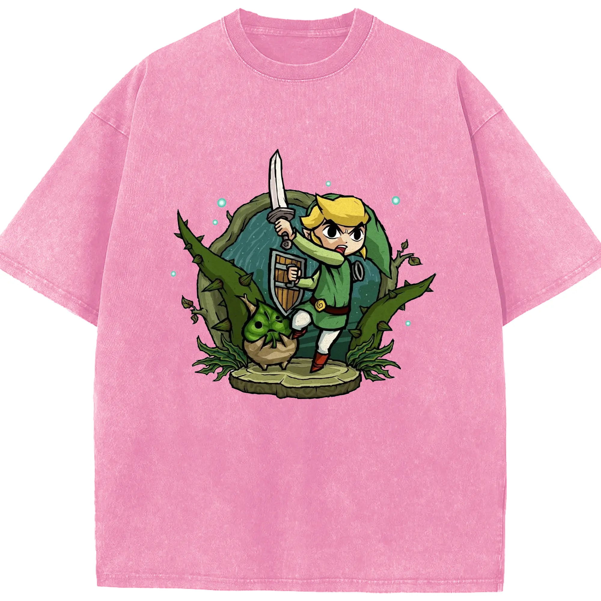 The Legend of Zelda Link retro painting shirt - Washed Vintage Look 230g Cotton Oversized T-Shirt With Front Heat Transfer Print – Soft, Lightweight, Stylish Fit – Comfortable Casual Wear For Sports & Everyday Use