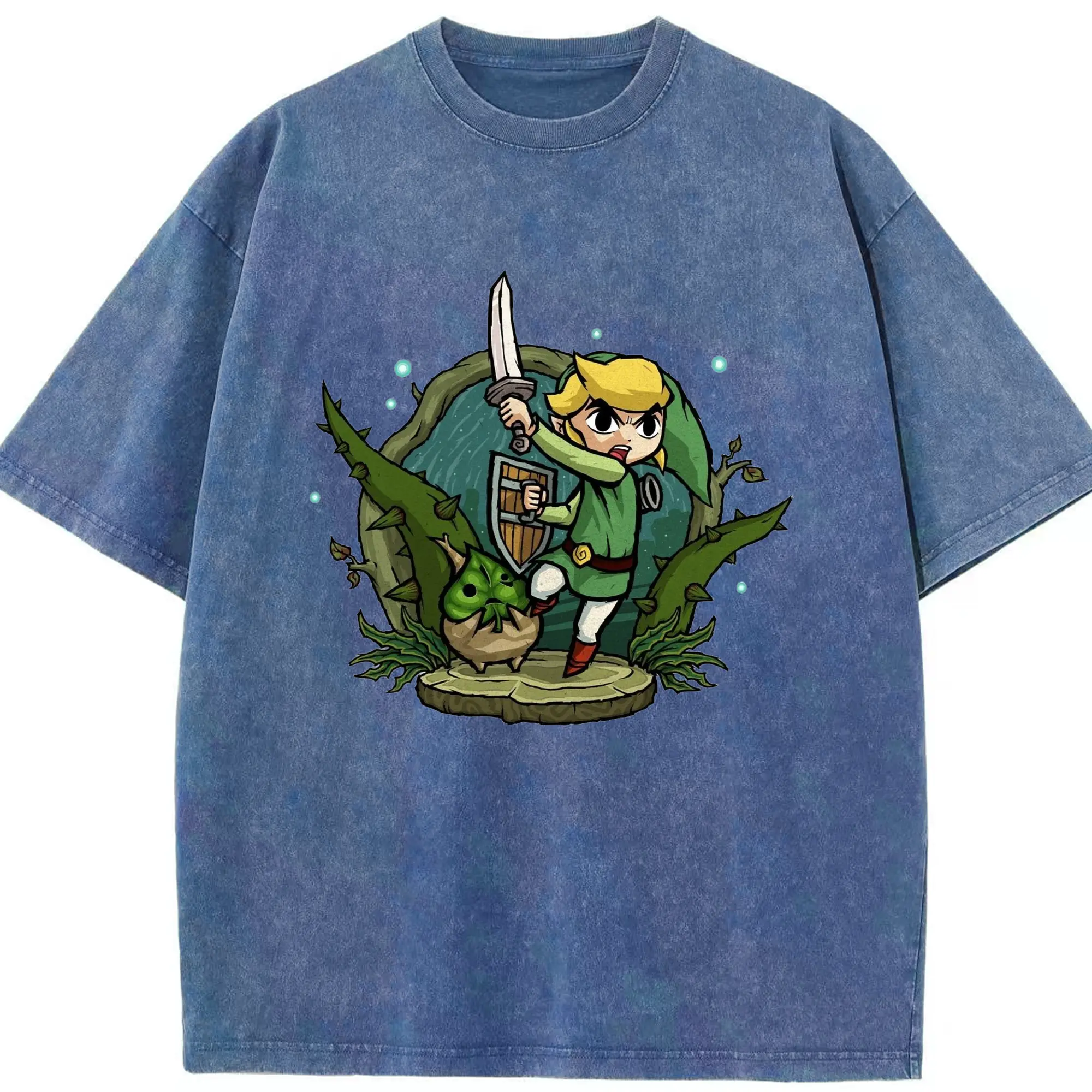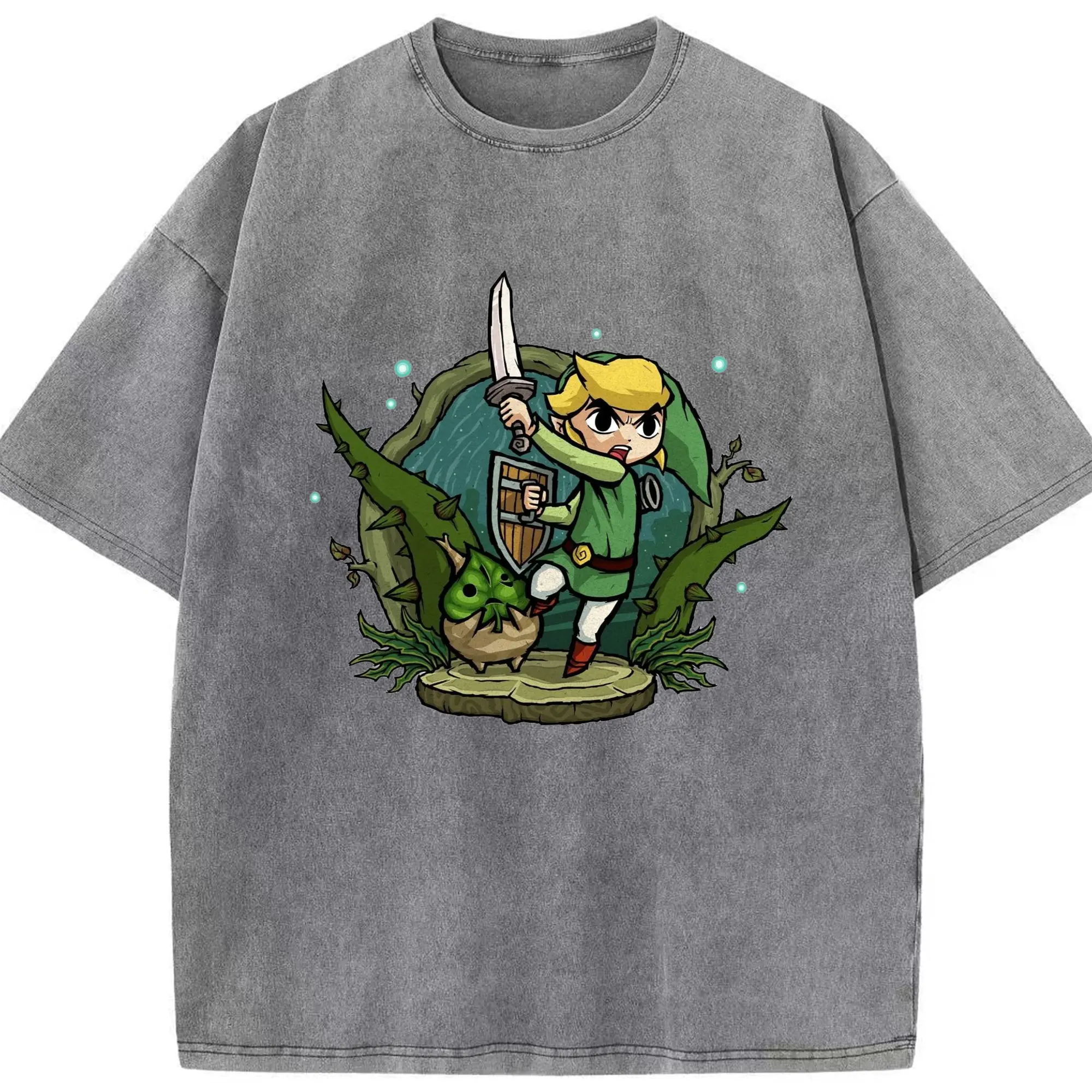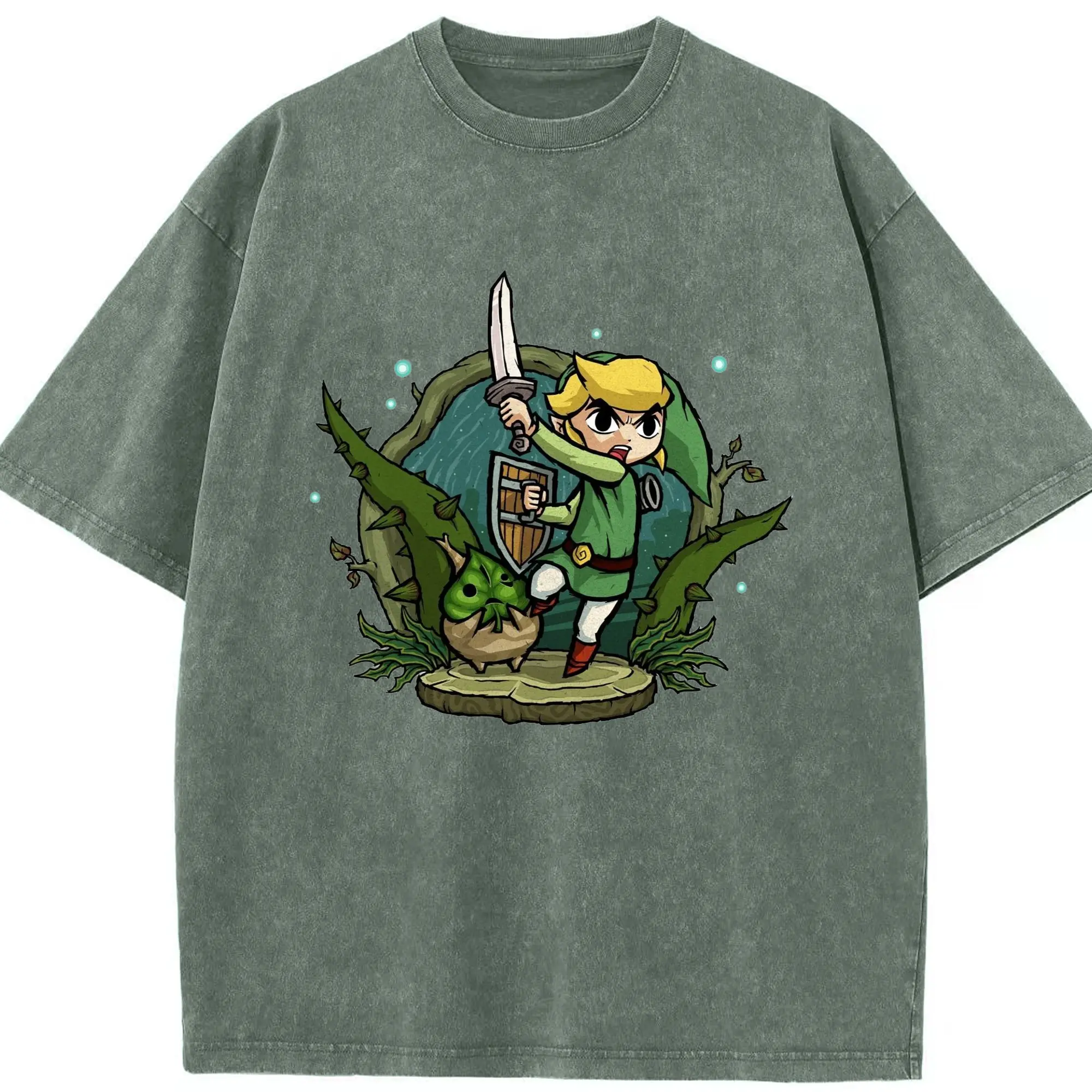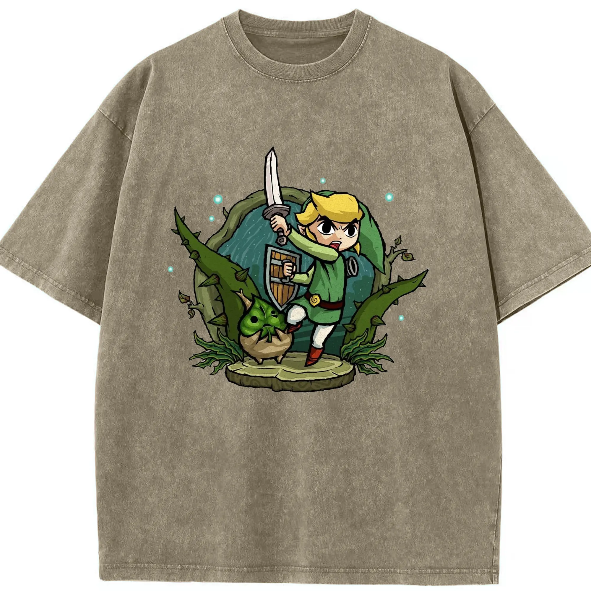 The Legend of Zelda Link retro painting shirt - Washed Vintage Look 230g Cotton Oversized T-Shirt With Front Heat Transfer Print – Soft, Lightweight, Stylish Fit – Comfortable Casual Wear For Sports & Everyday Use