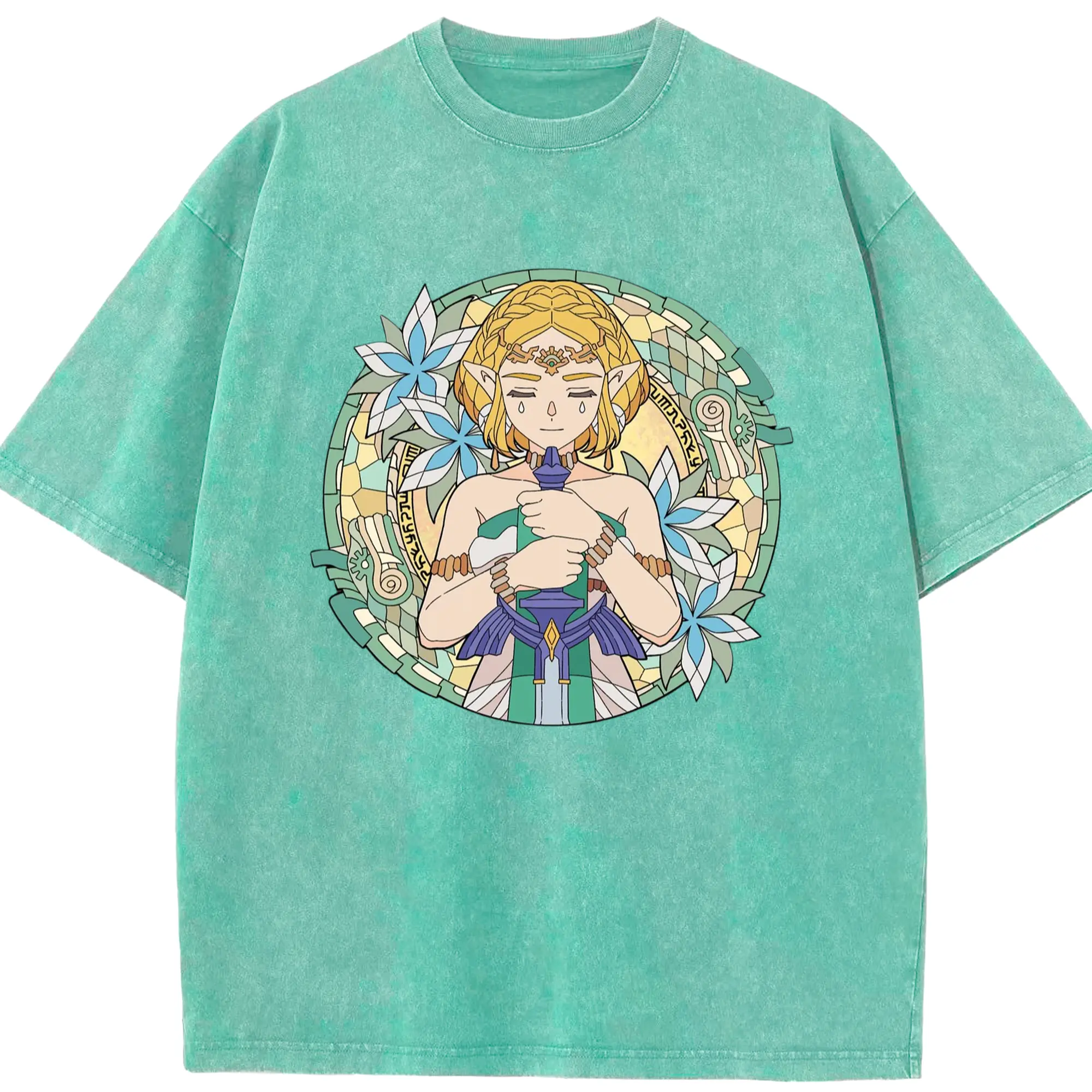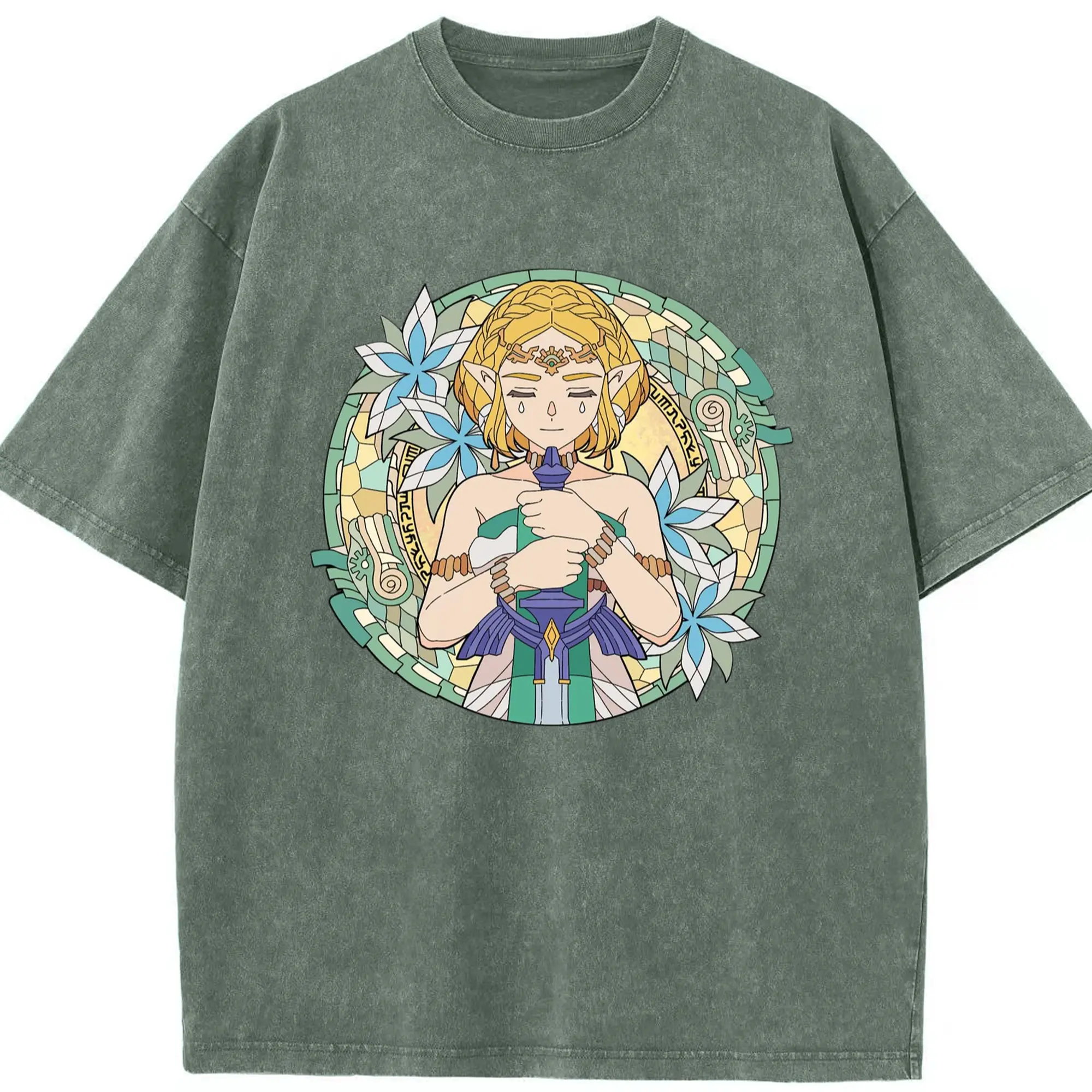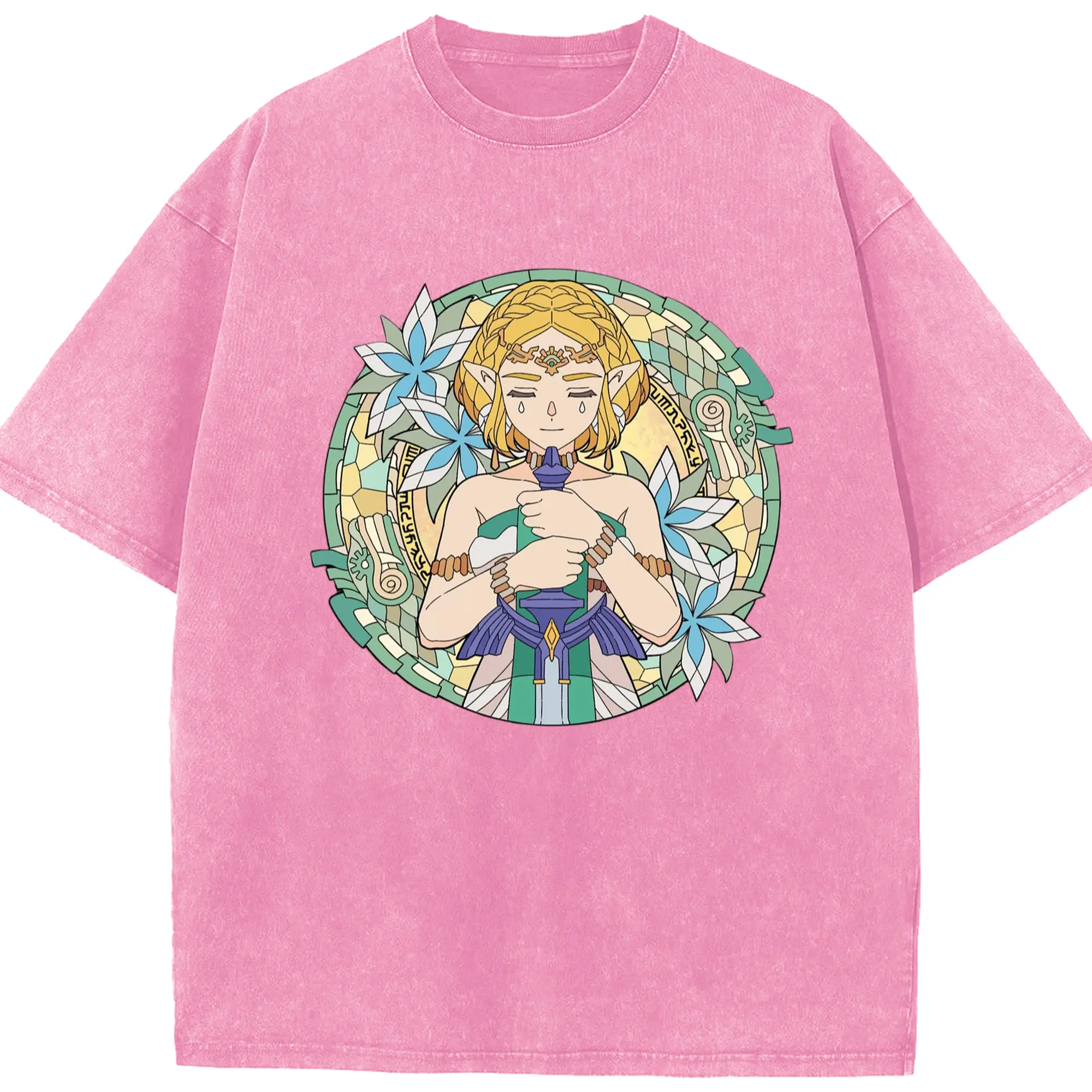 The legend of zelda Princess Zelda art shirt​ - Washed Vintage Look 230g Cotton Oversized T-Shirt With Front Heat Transfer Print – Soft, Lightweight, Stylish Fit – Comfortable Casual Wear For Sports & Everyday Use