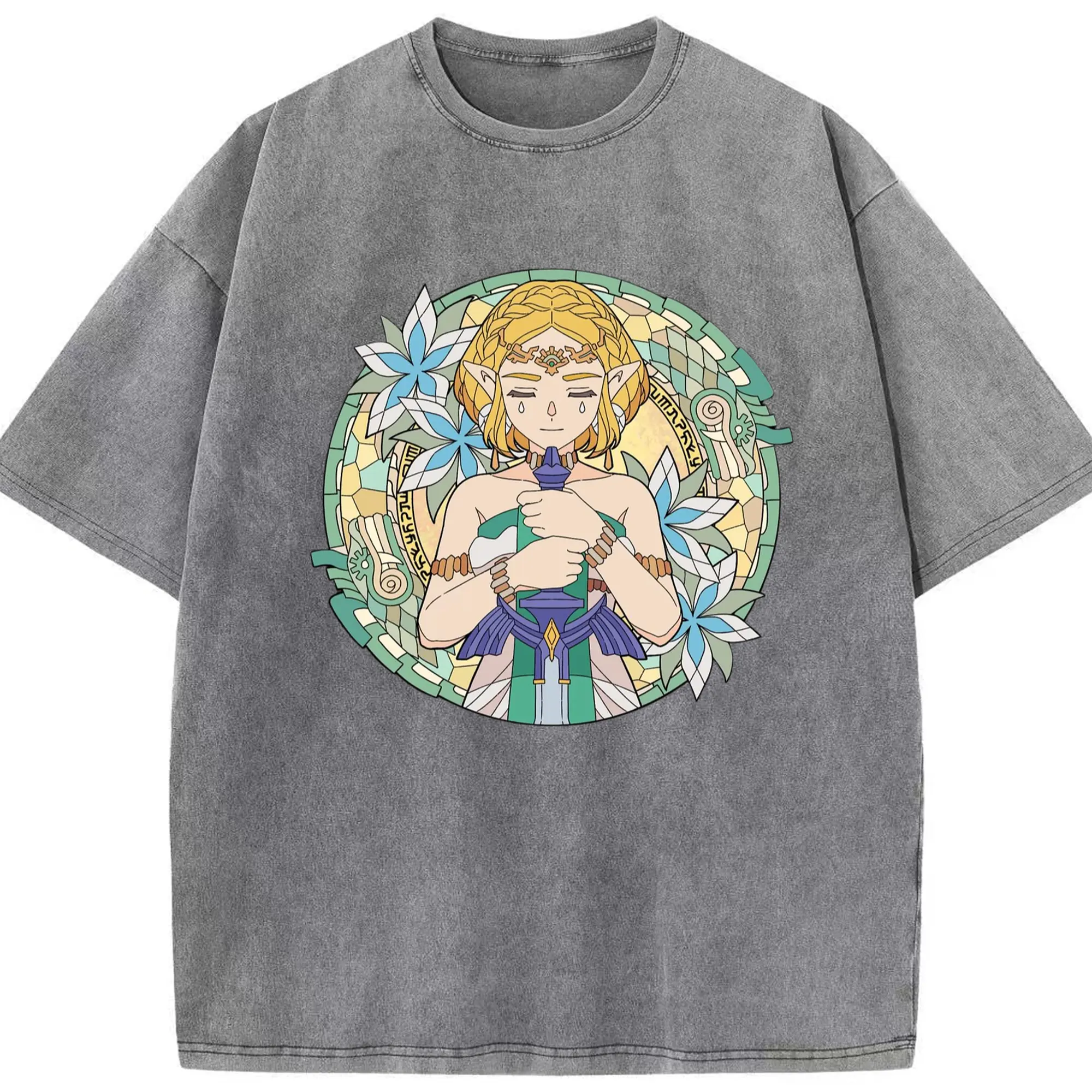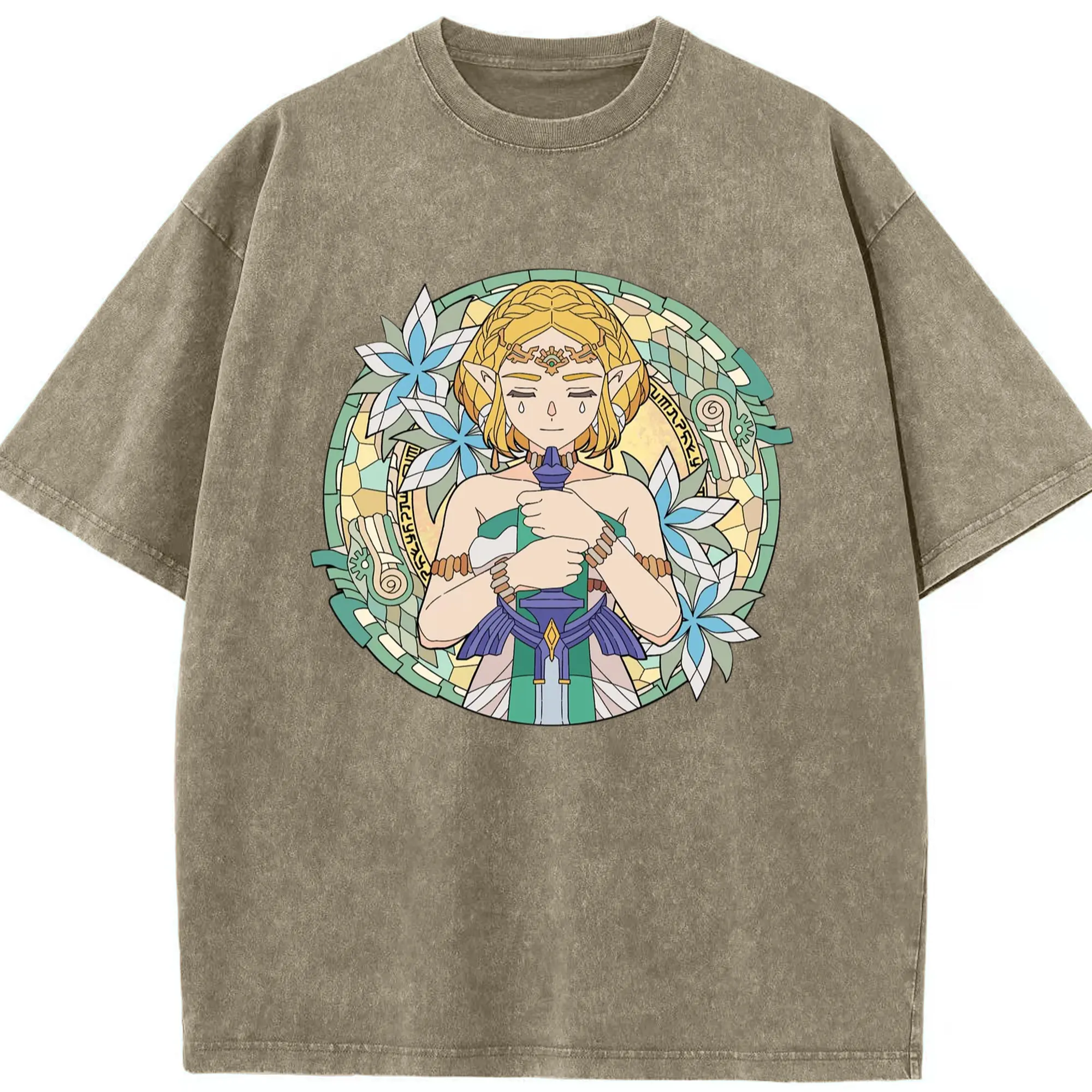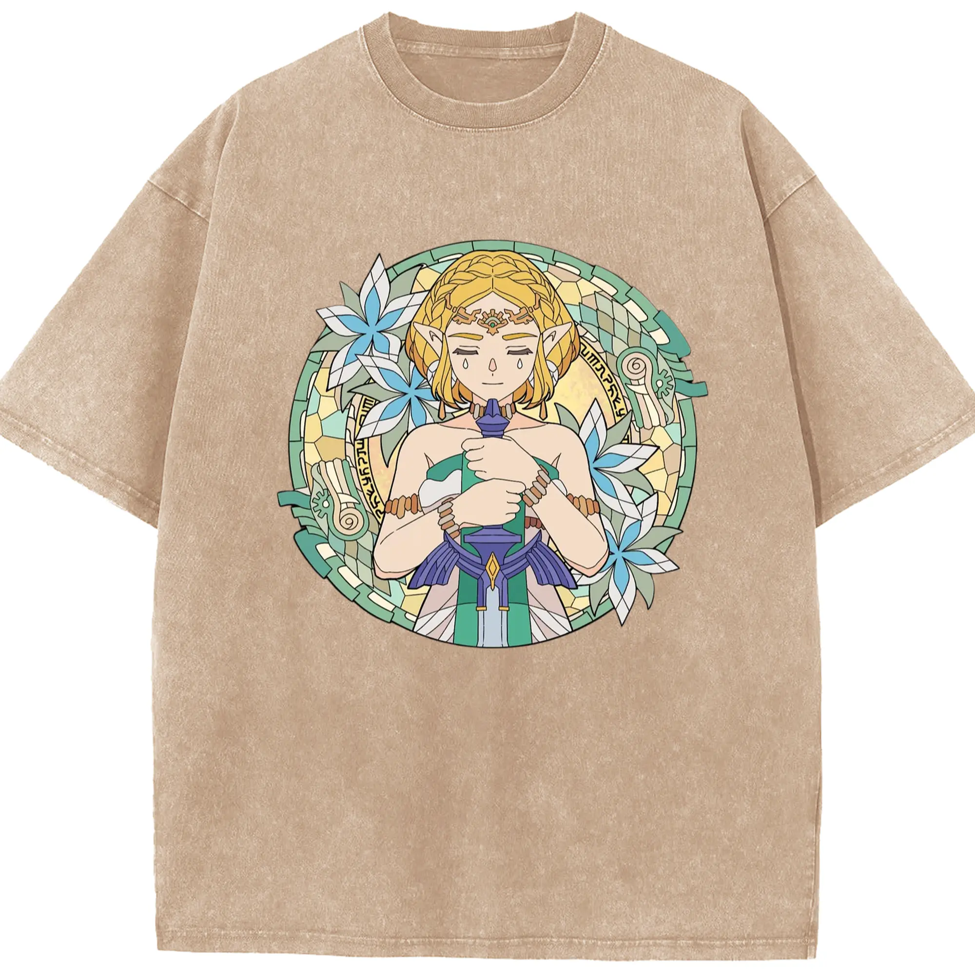 The legend of zelda Princess Zelda art shirt​ - Washed Vintage Look 230g Cotton Oversized T-Shirt With Front Heat Transfer Print – Soft, Lightweight, Stylish Fit – Comfortable Casual Wear For Sports & Everyday Use