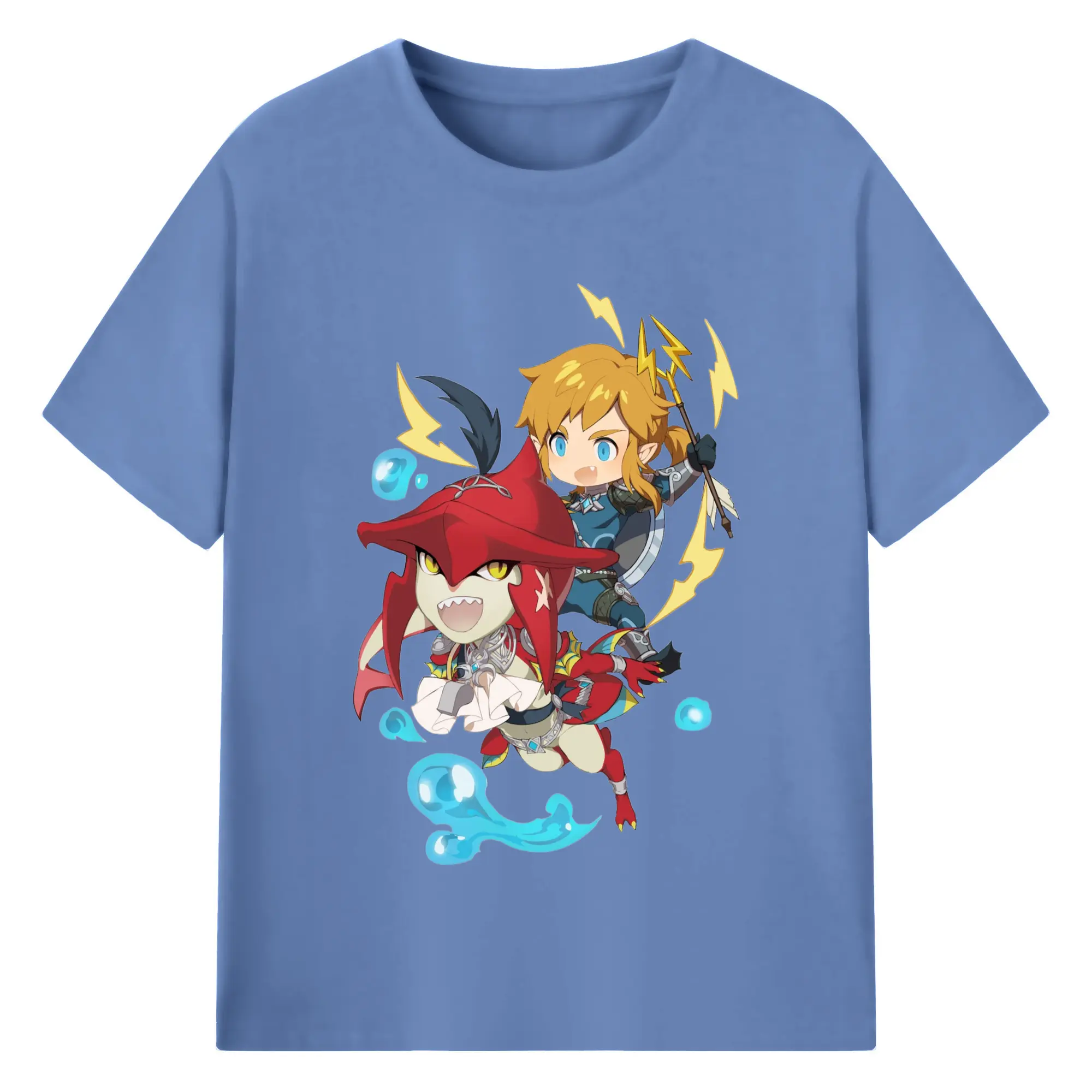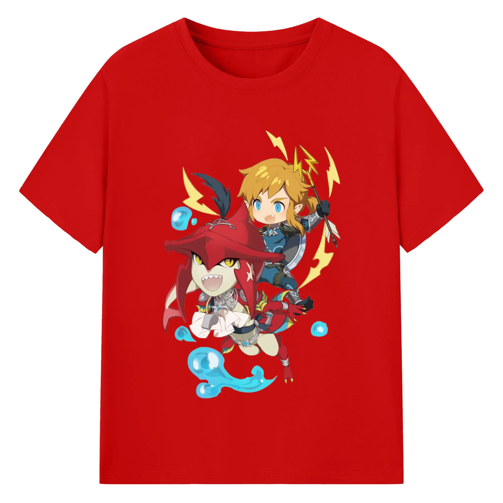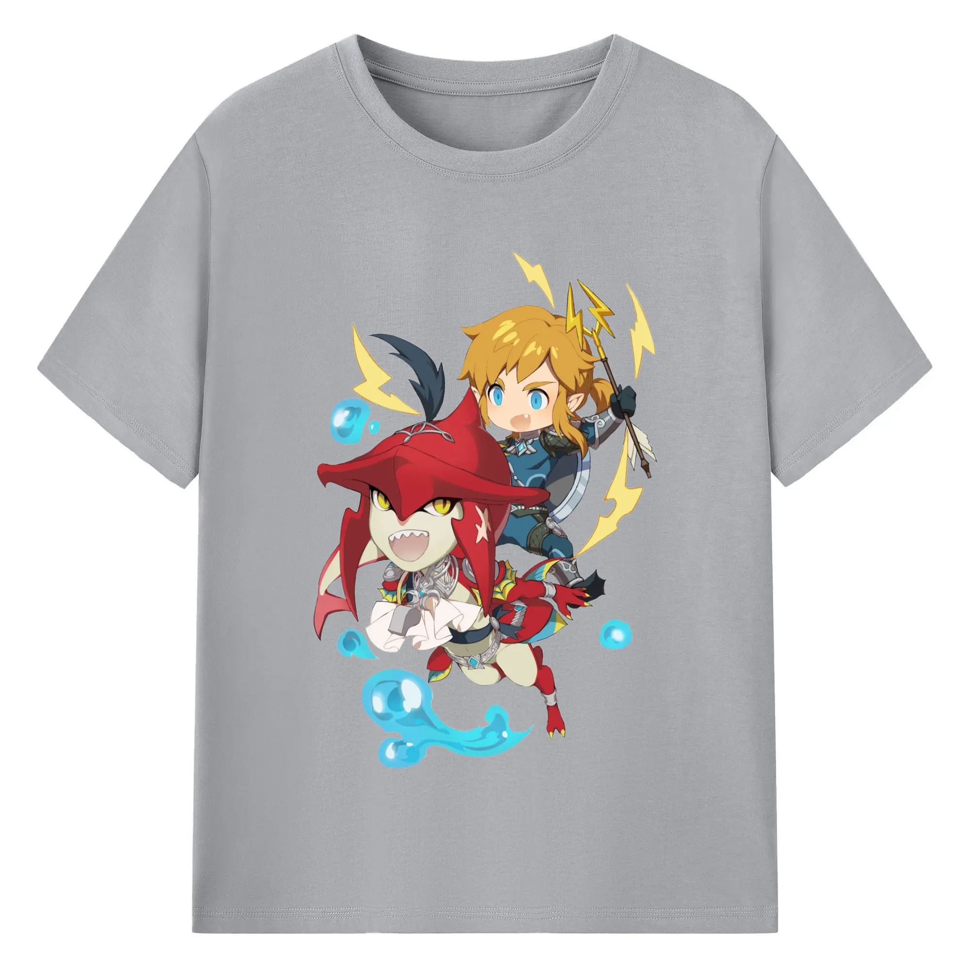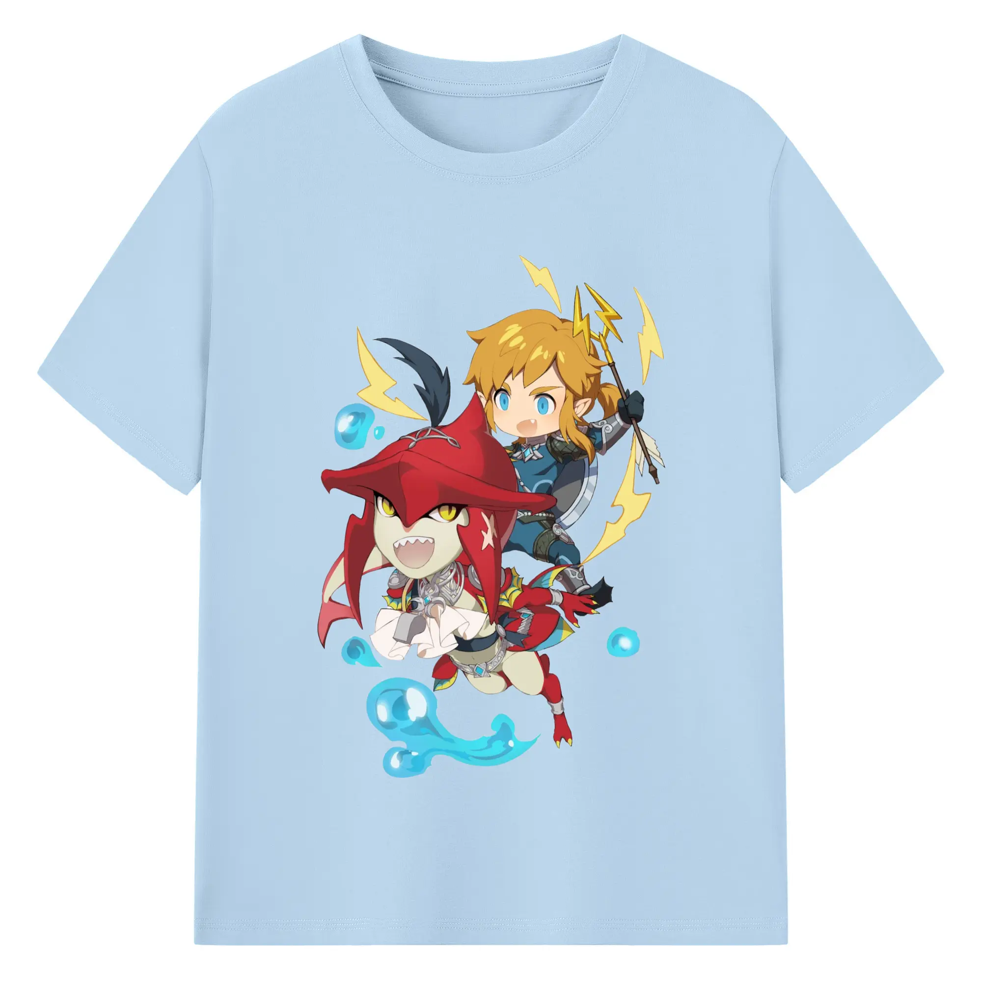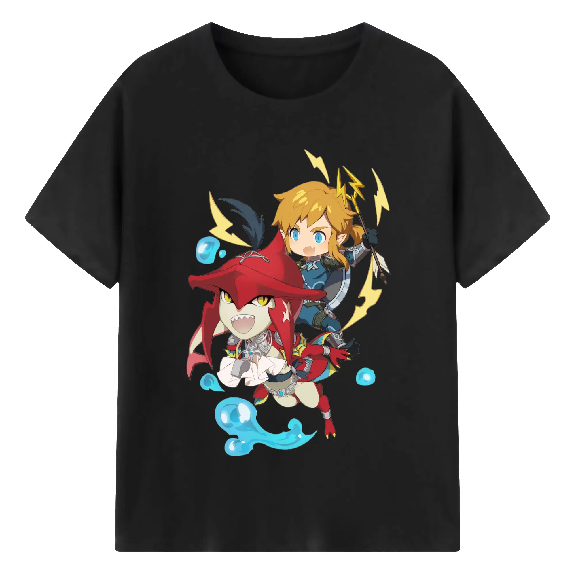 The legend of zelda Sidon and link t-shirt - 180g Cotton T-Shirt With Front Heat Transfer Print – Soft, Lightweight, Fitted Design – Comfortable Casual Wear For Sports & Everyday Use