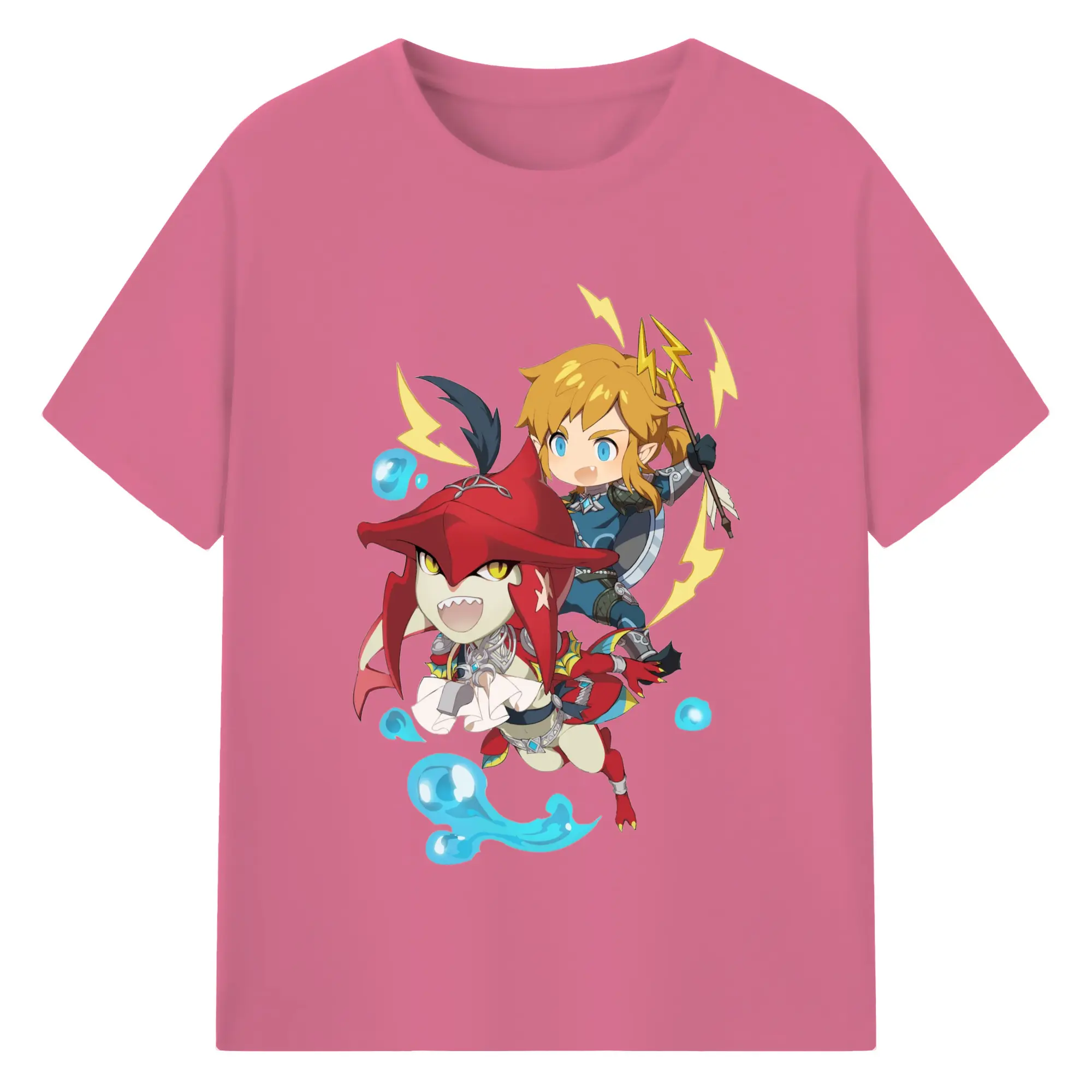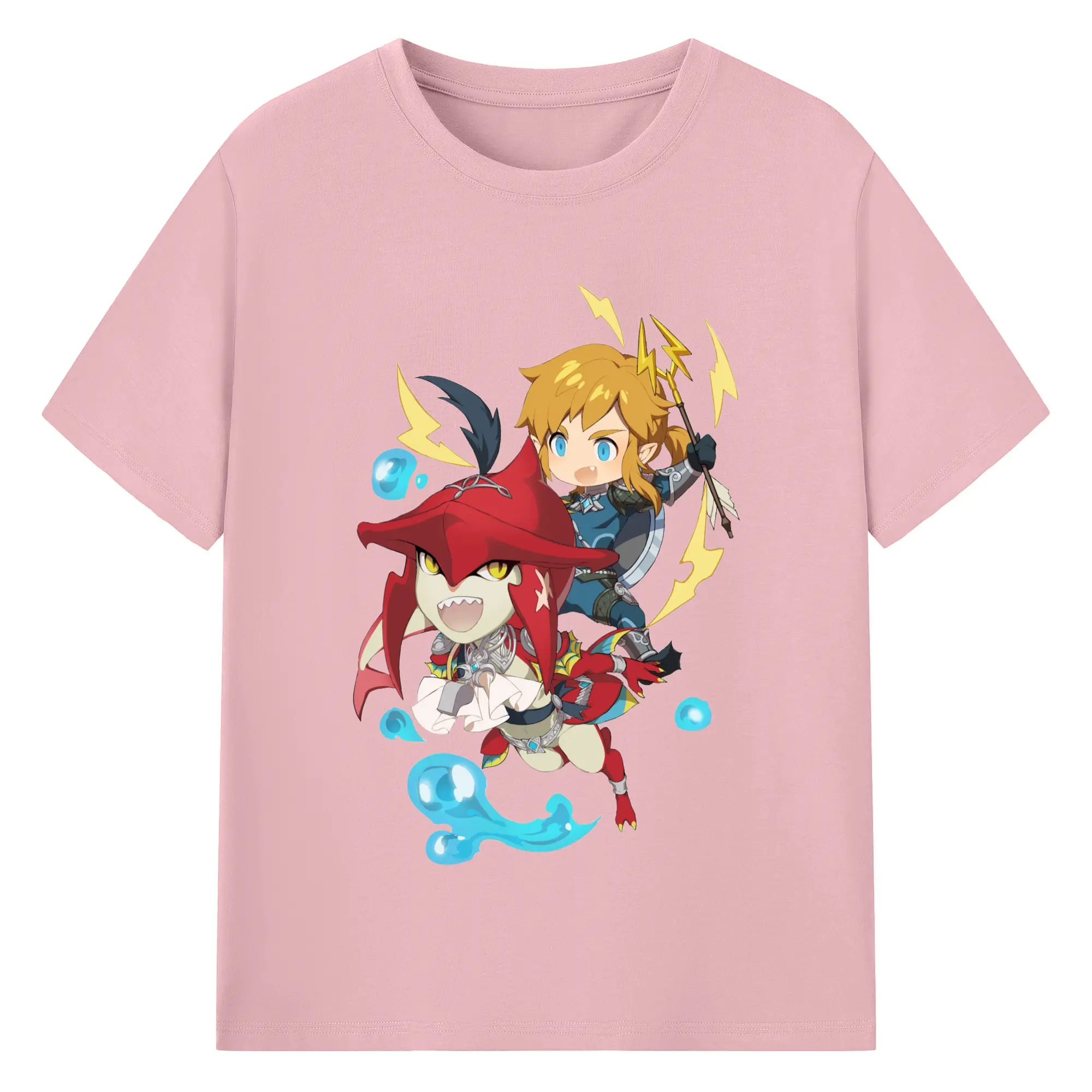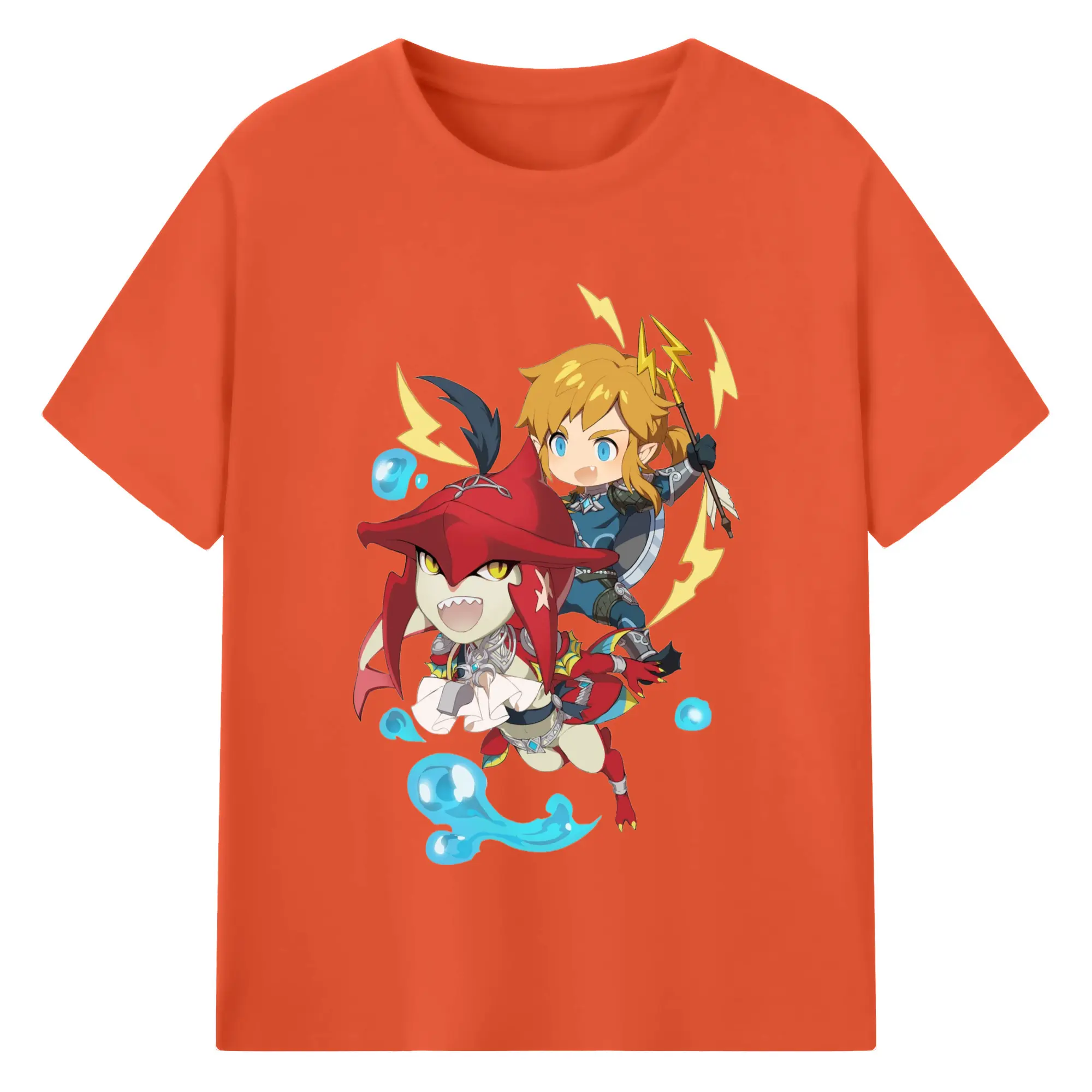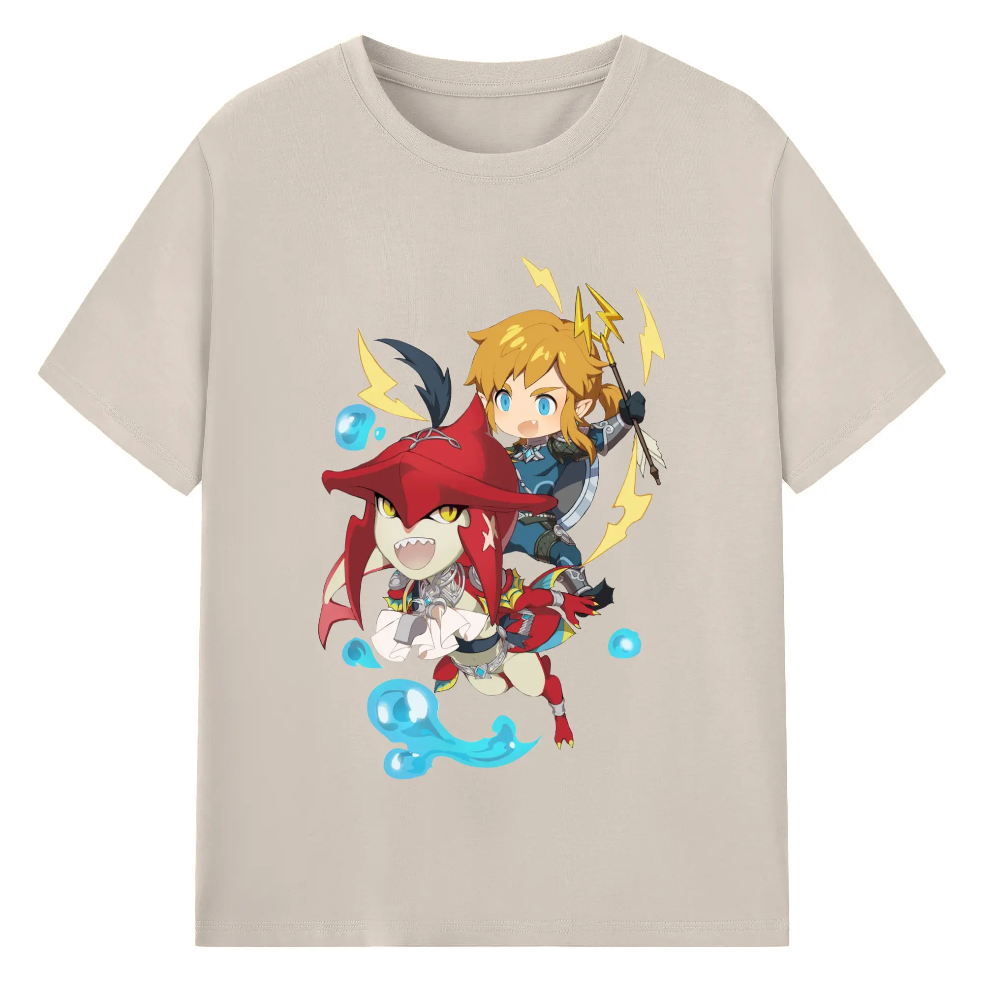 The legend of zelda Sidon and link t-shirt - 180g Cotton T-Shirt With Front Heat Transfer Print – Soft, Lightweight, Fitted Design – Comfortable Casual Wear For Sports & Everyday Use