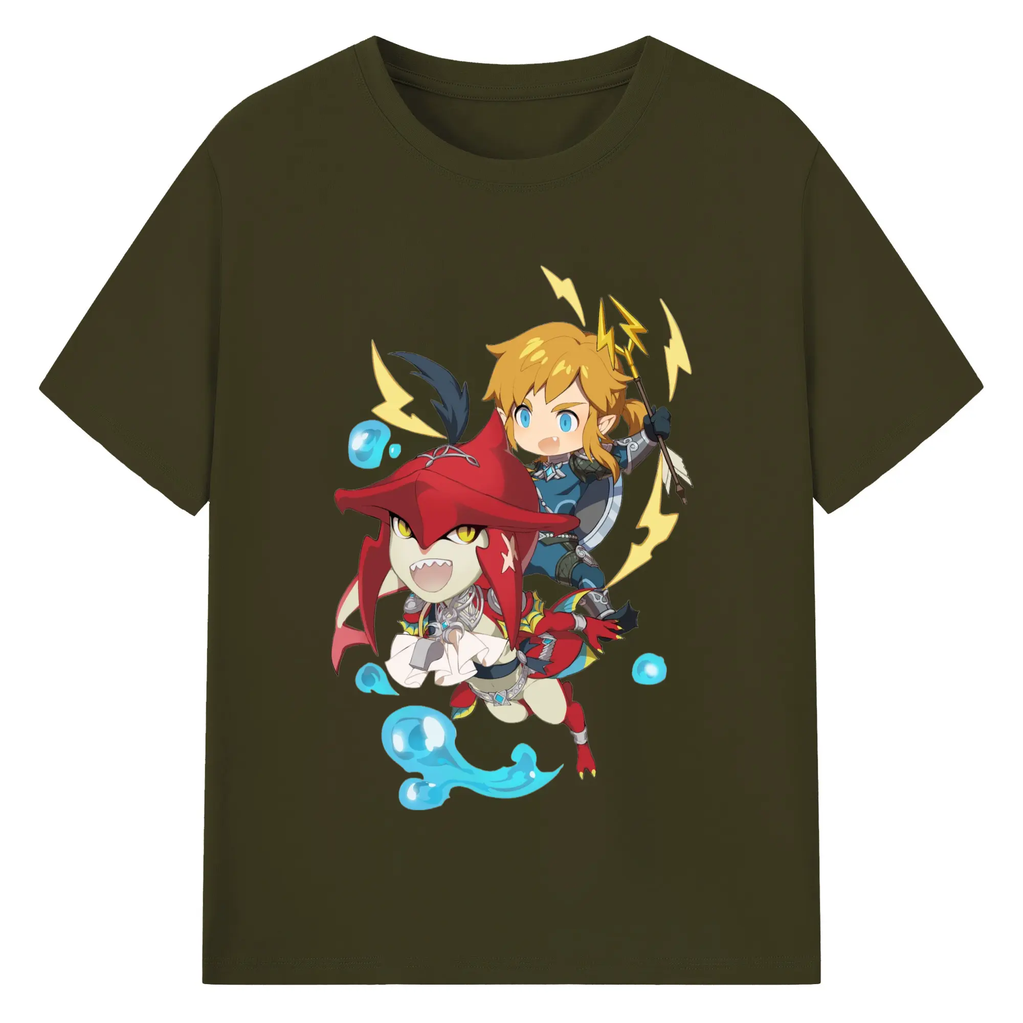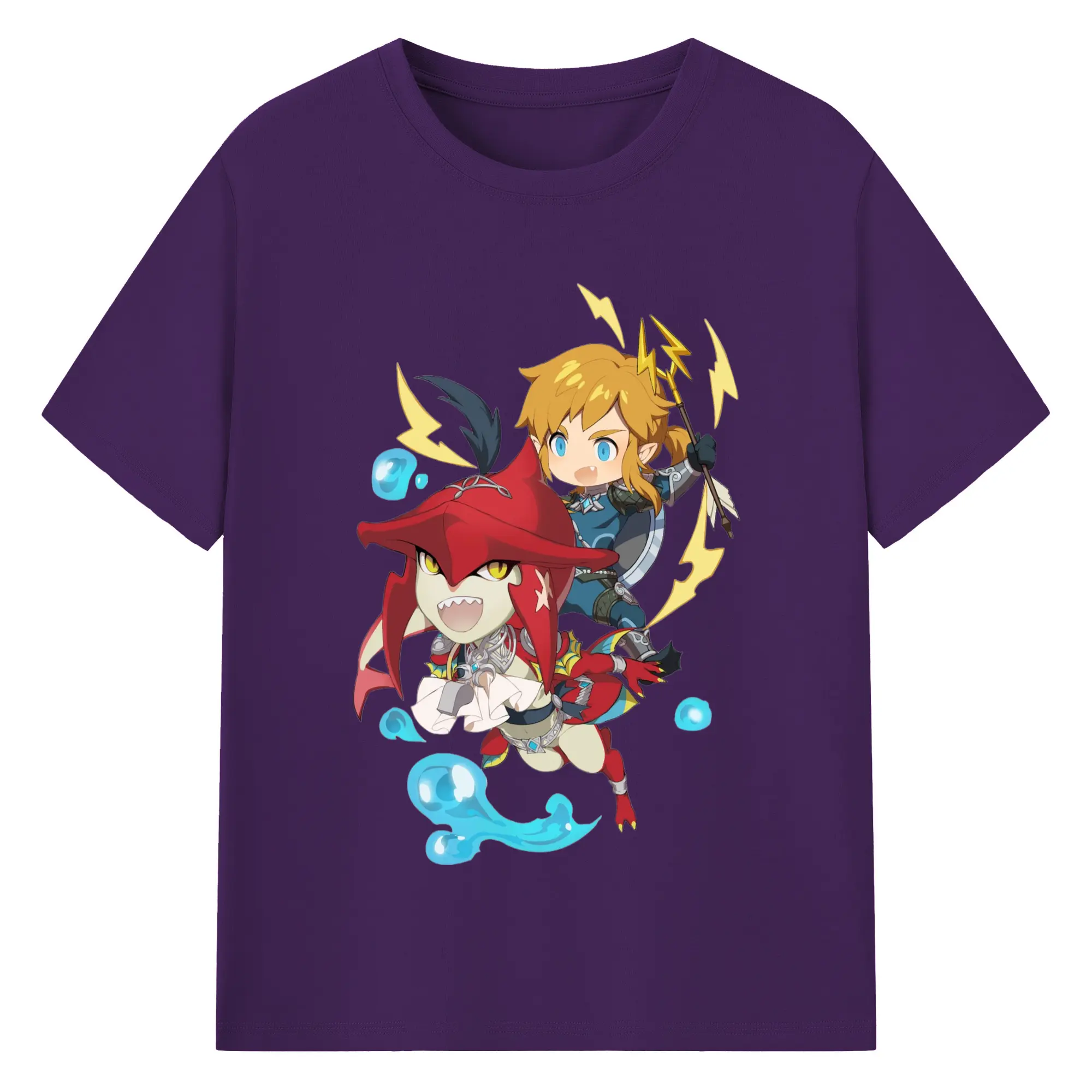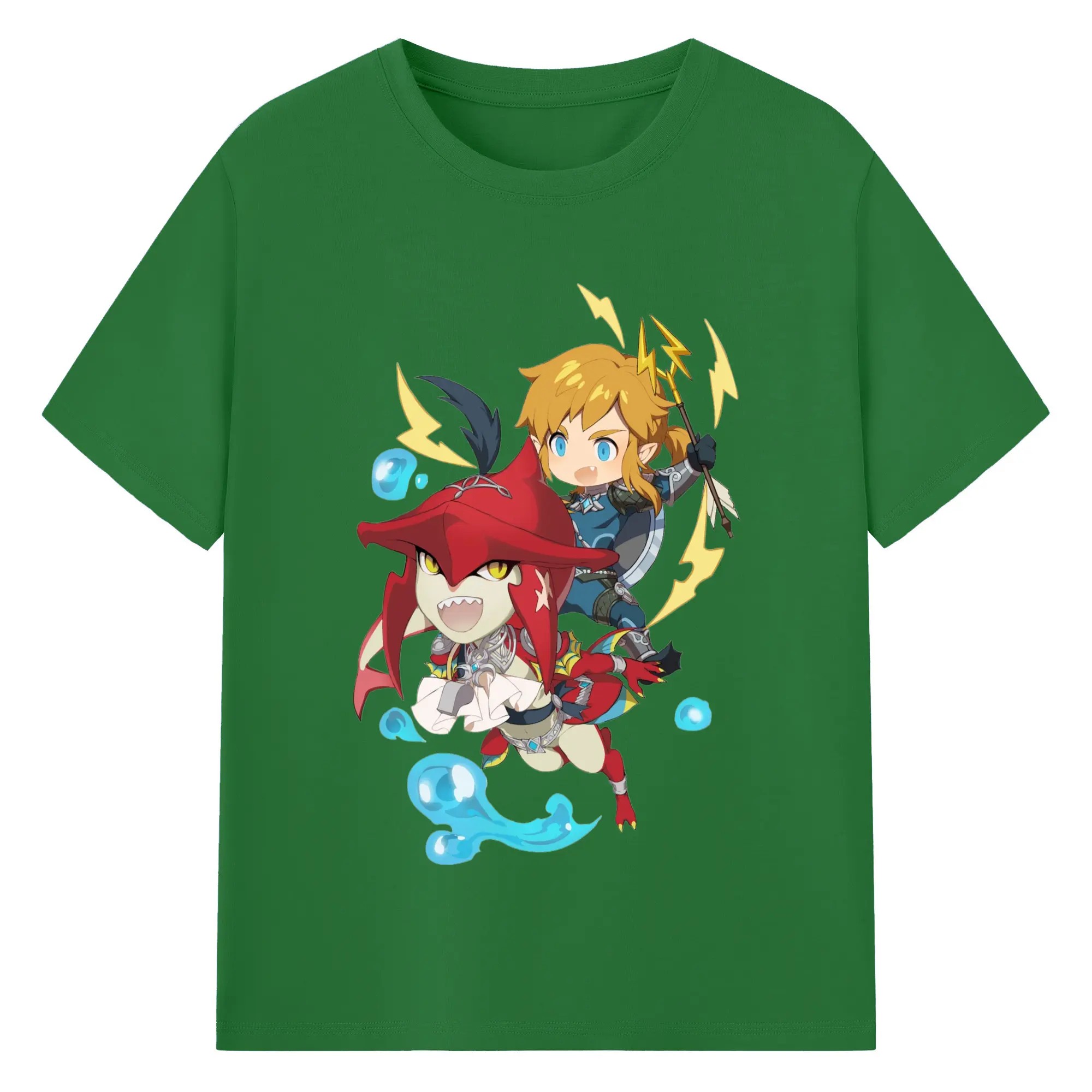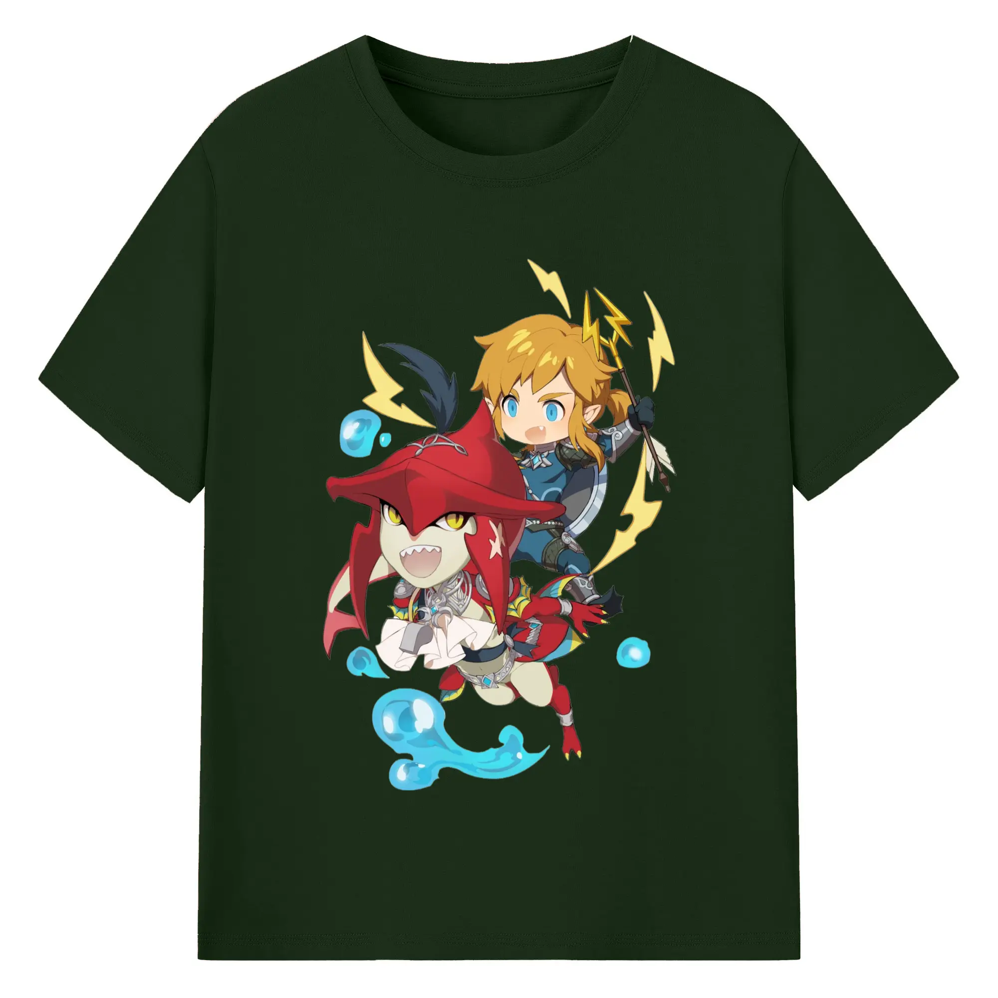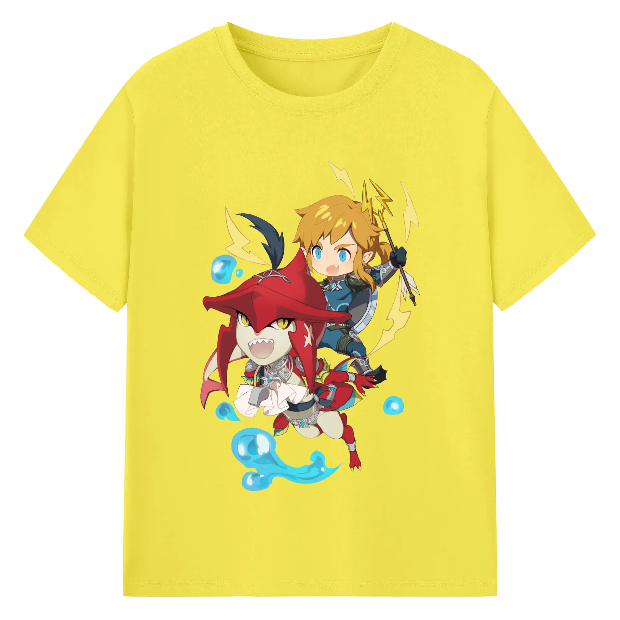 The legend of zelda Sidon and link t-shirt - 180g Cotton T-Shirt With Front Heat Transfer Print – Soft, Lightweight, Fitted Design – Comfortable Casual Wear For Sports & Everyday Use