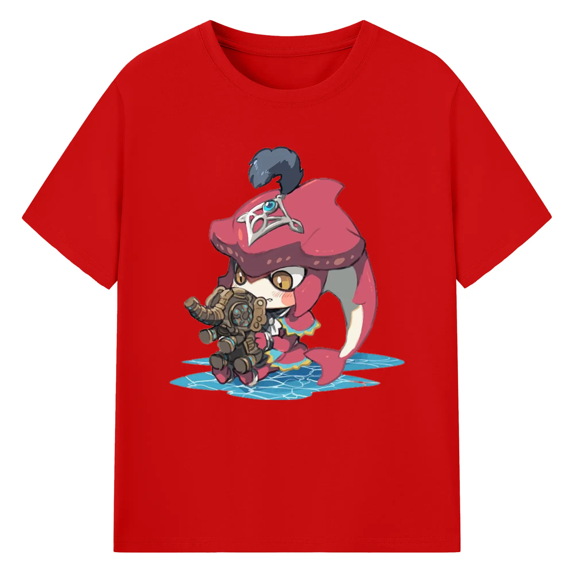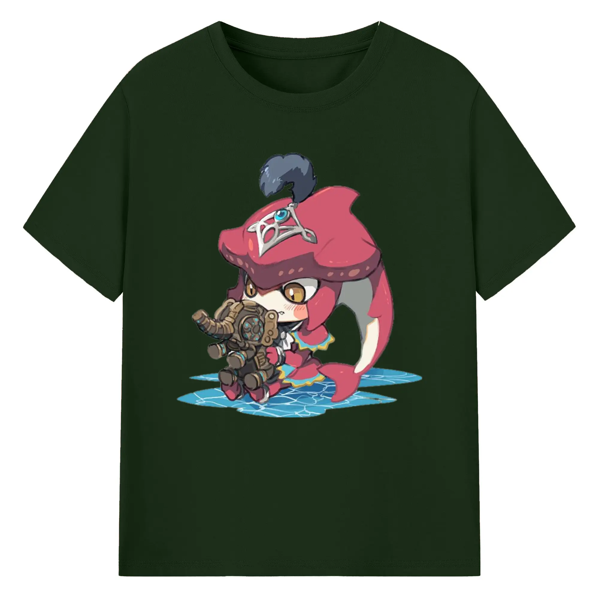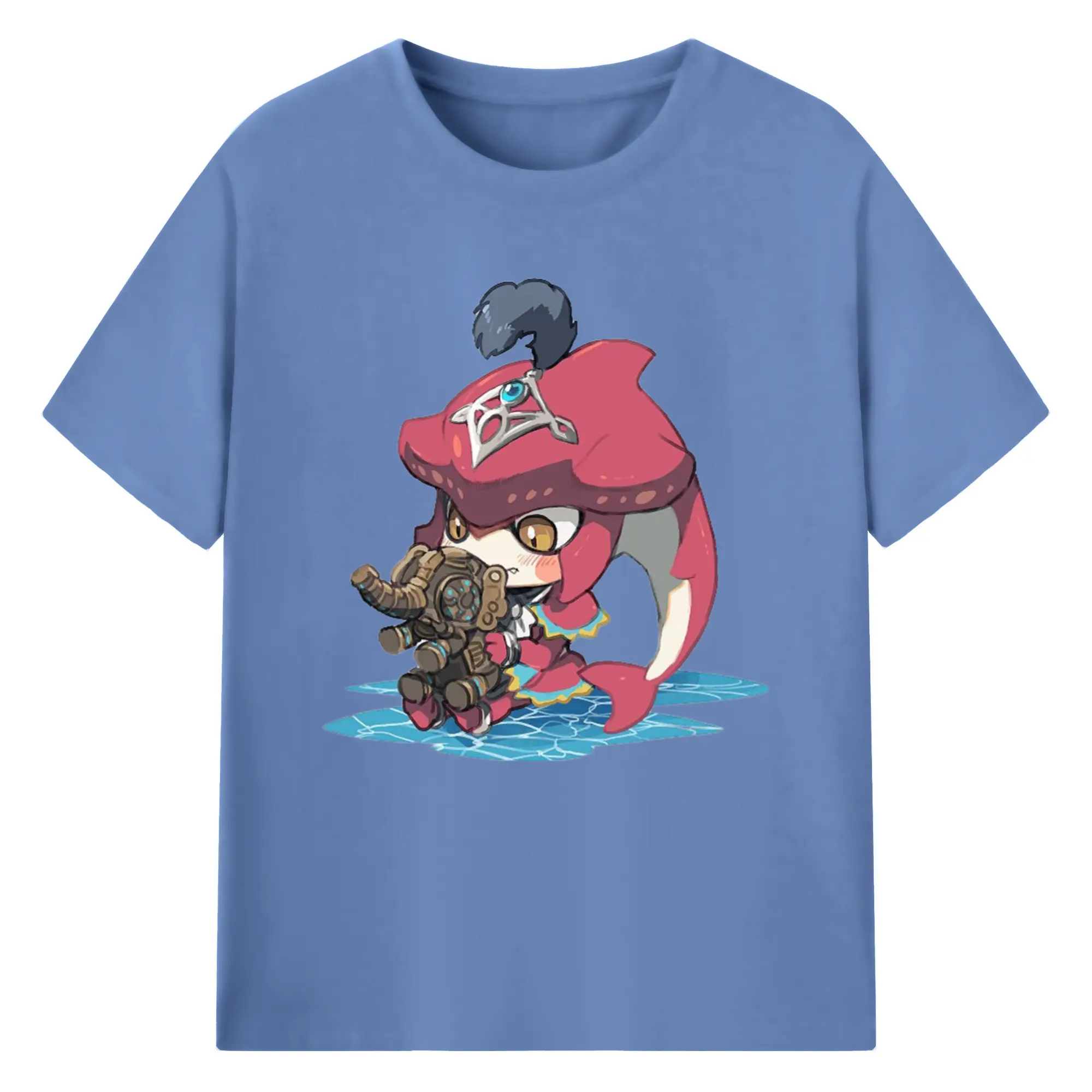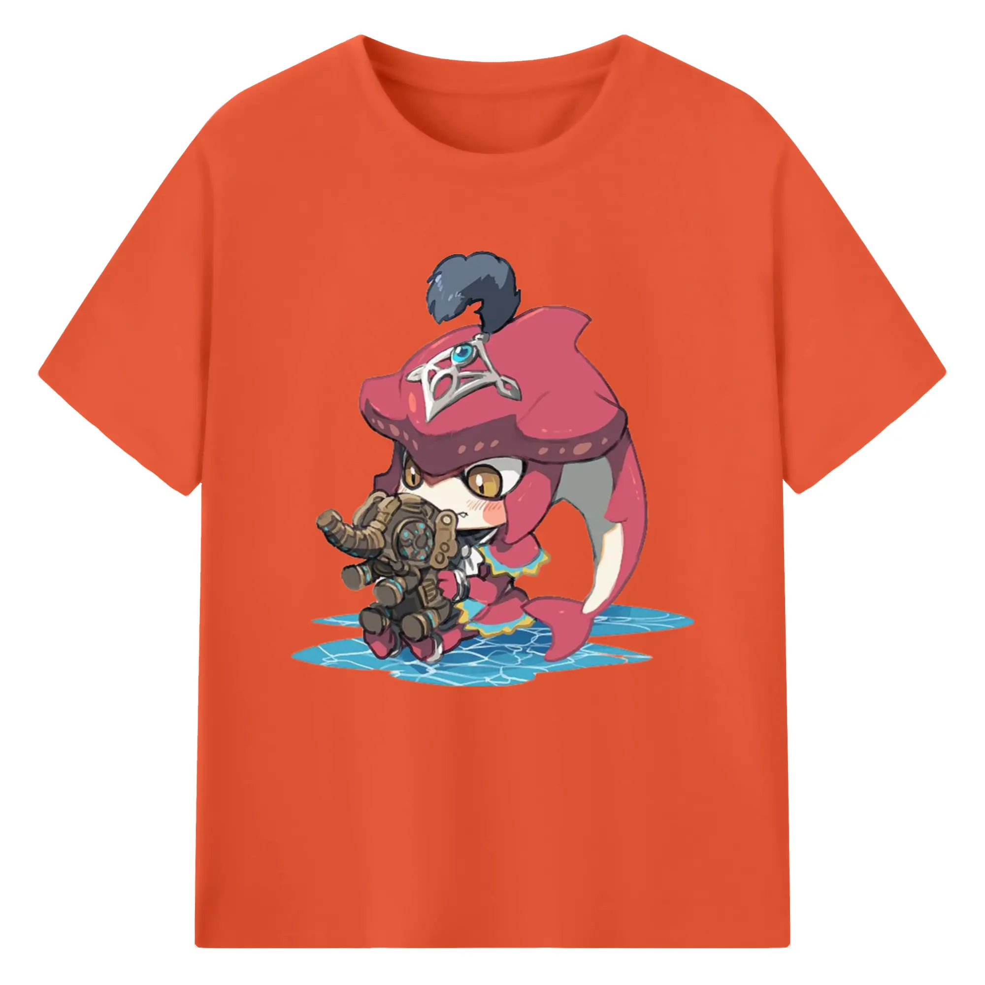 The legend of zelda Sidon cartoon graphic tee - 180g Cotton T-Shirt With Front Heat Transfer Print – Soft, Lightweight, Fitted Design – Comfortable Casual Wear For Sports & Everyday Use
