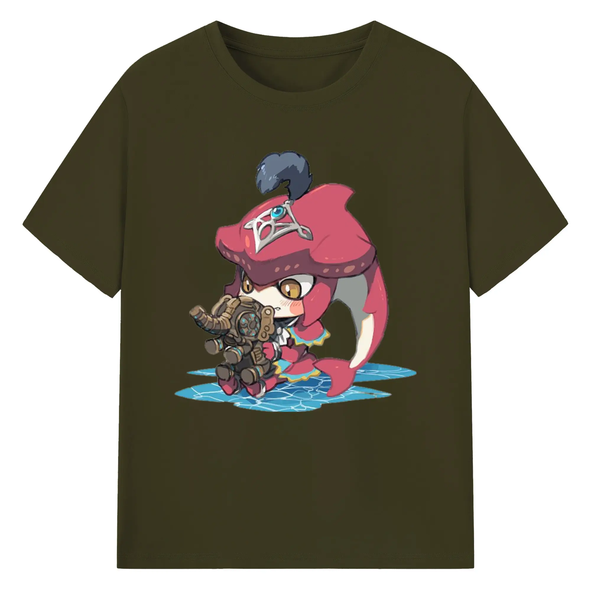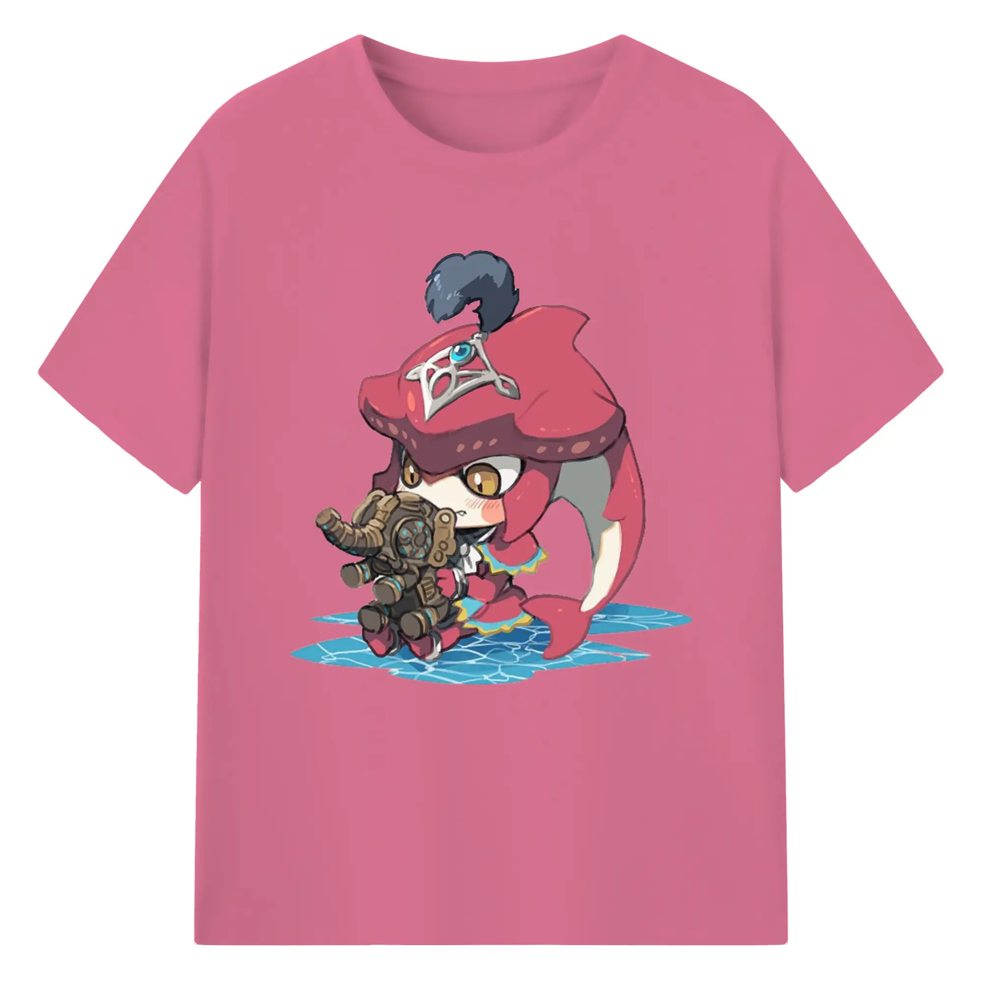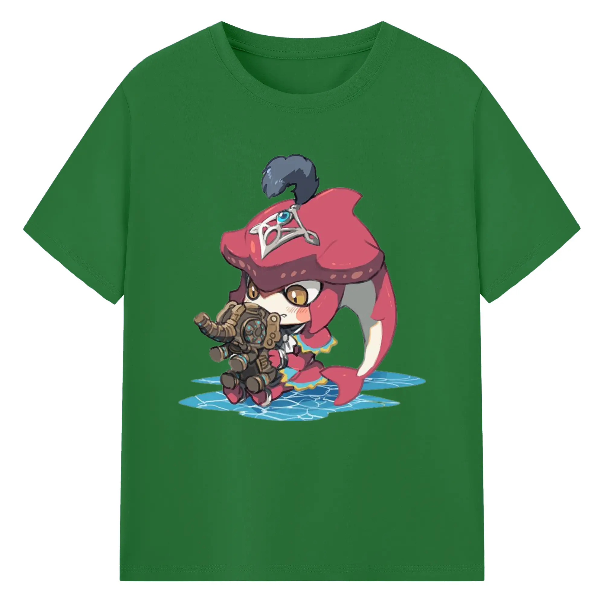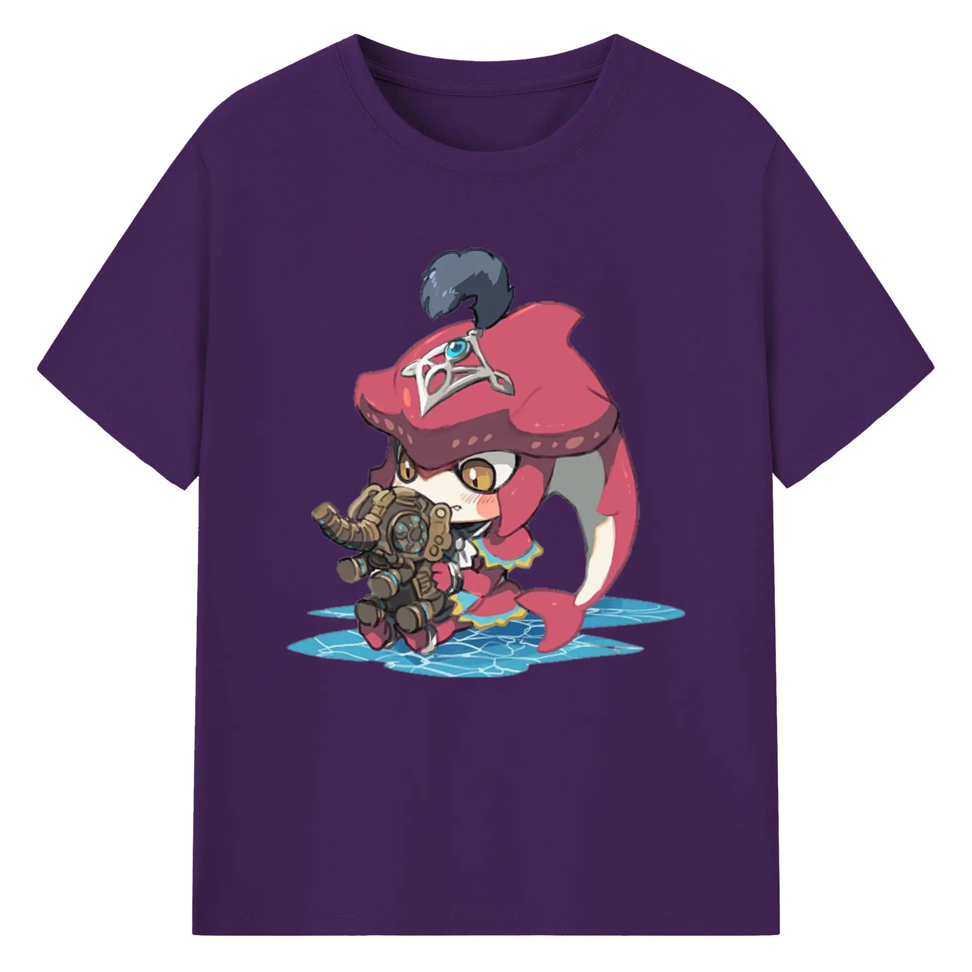 The legend of zelda Sidon cartoon graphic tee - 180g Cotton T-Shirt With Front Heat Transfer Print – Soft, Lightweight, Fitted Design – Comfortable Casual Wear For Sports & Everyday Use