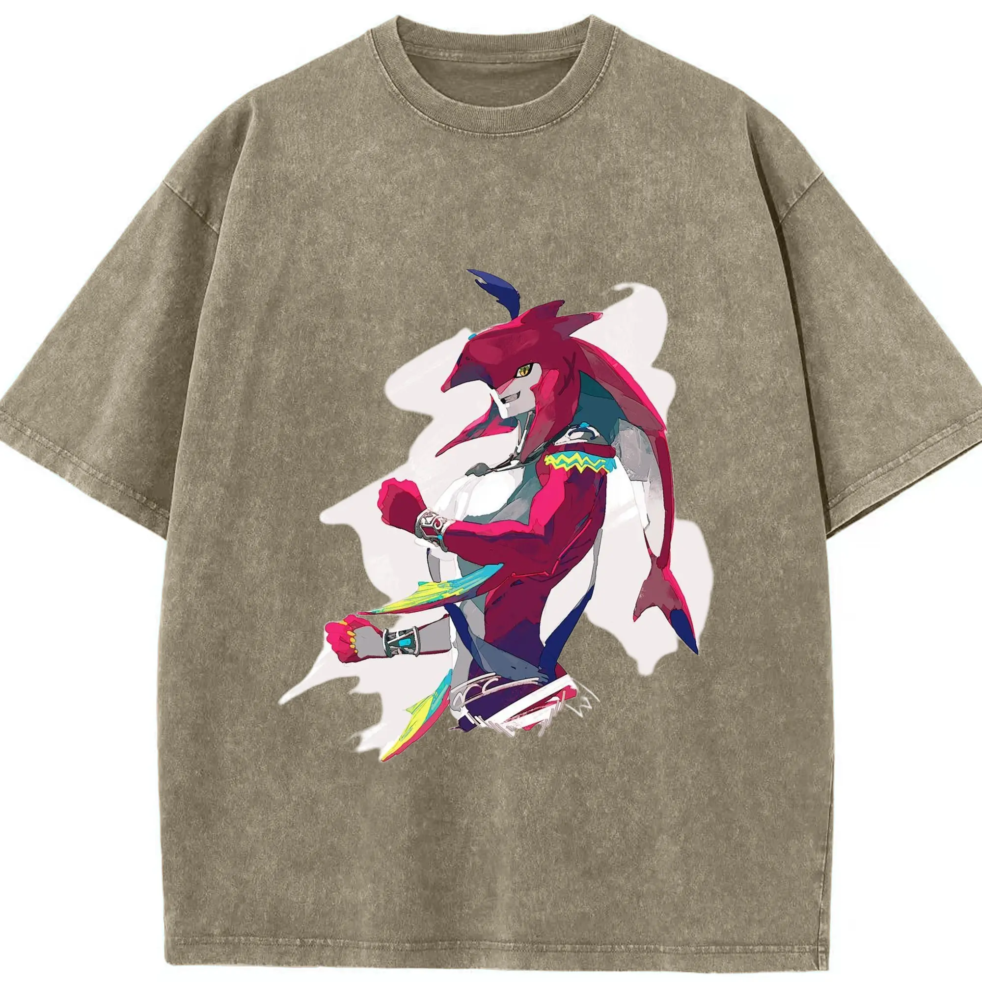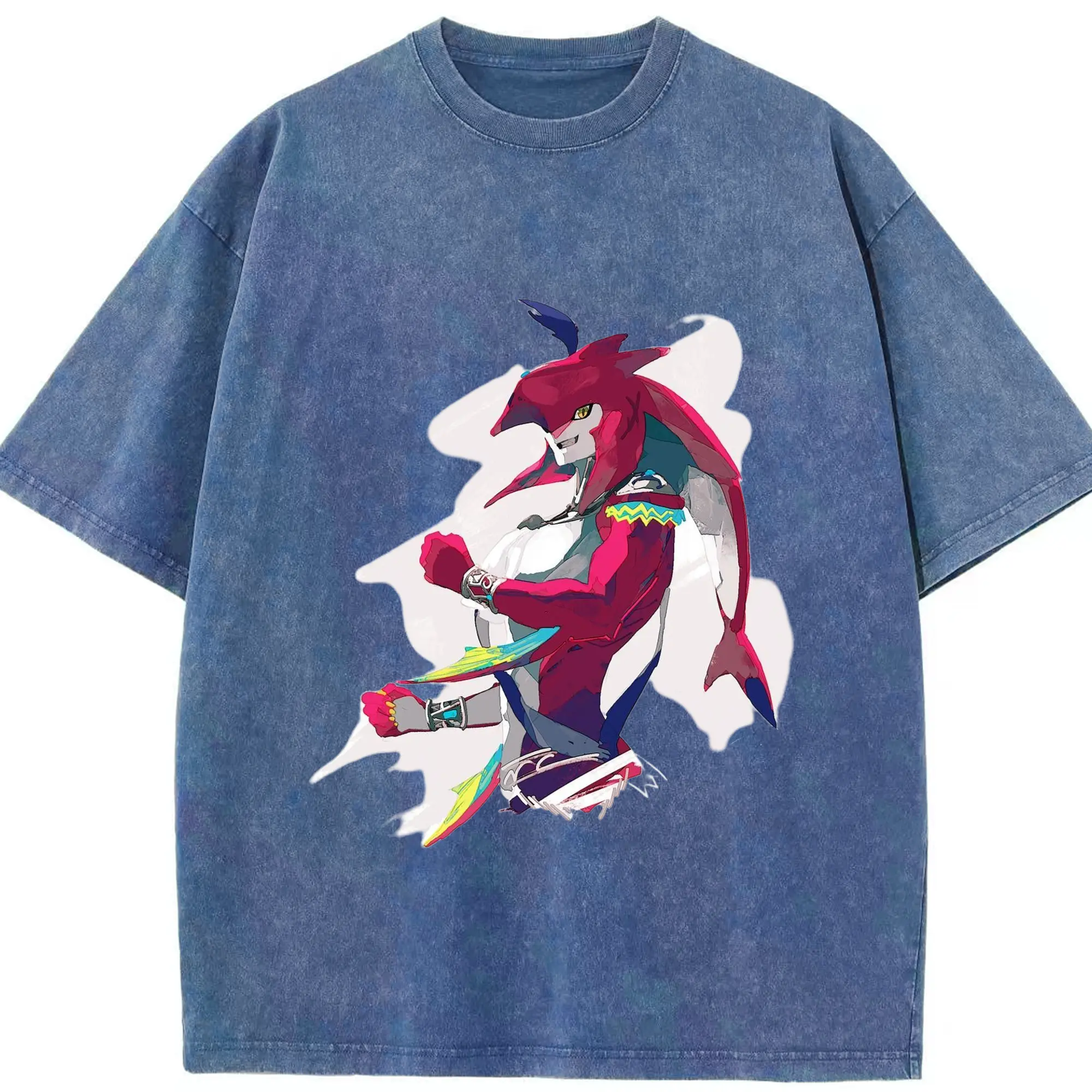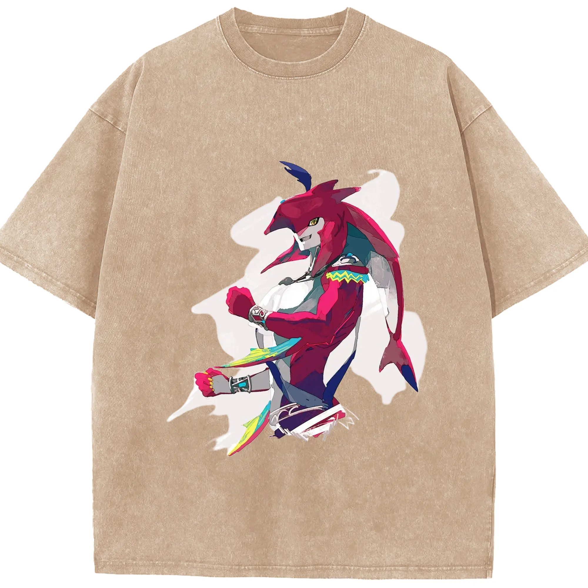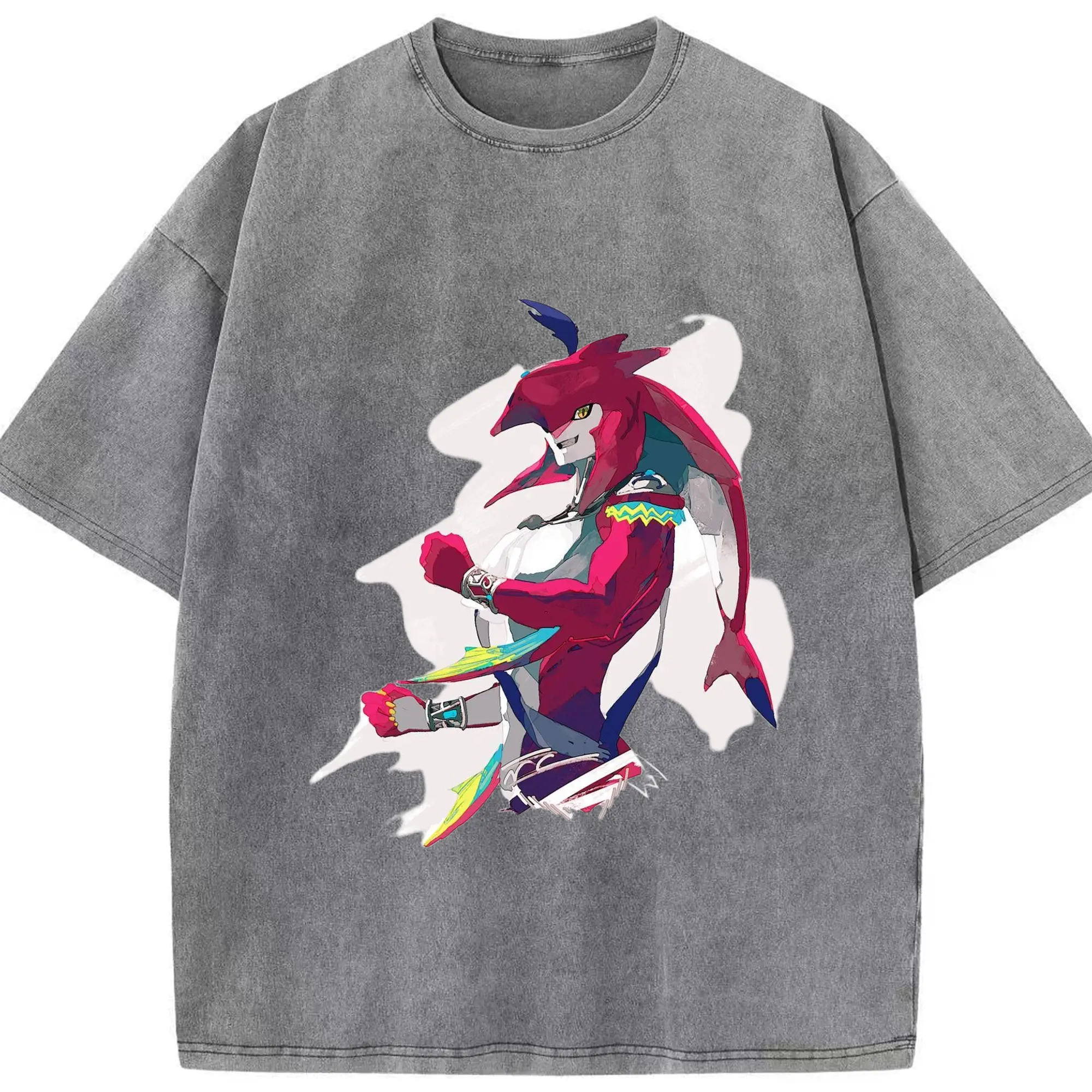 The legend of zelda Sidon t-shirt - Washed Vintage Look 230g Cotton Oversized T-Shirt With Front Heat Transfer Print – Soft, Lightweight, Stylish Fit – Comfortable Casual Wear For Sports & Everyday Use