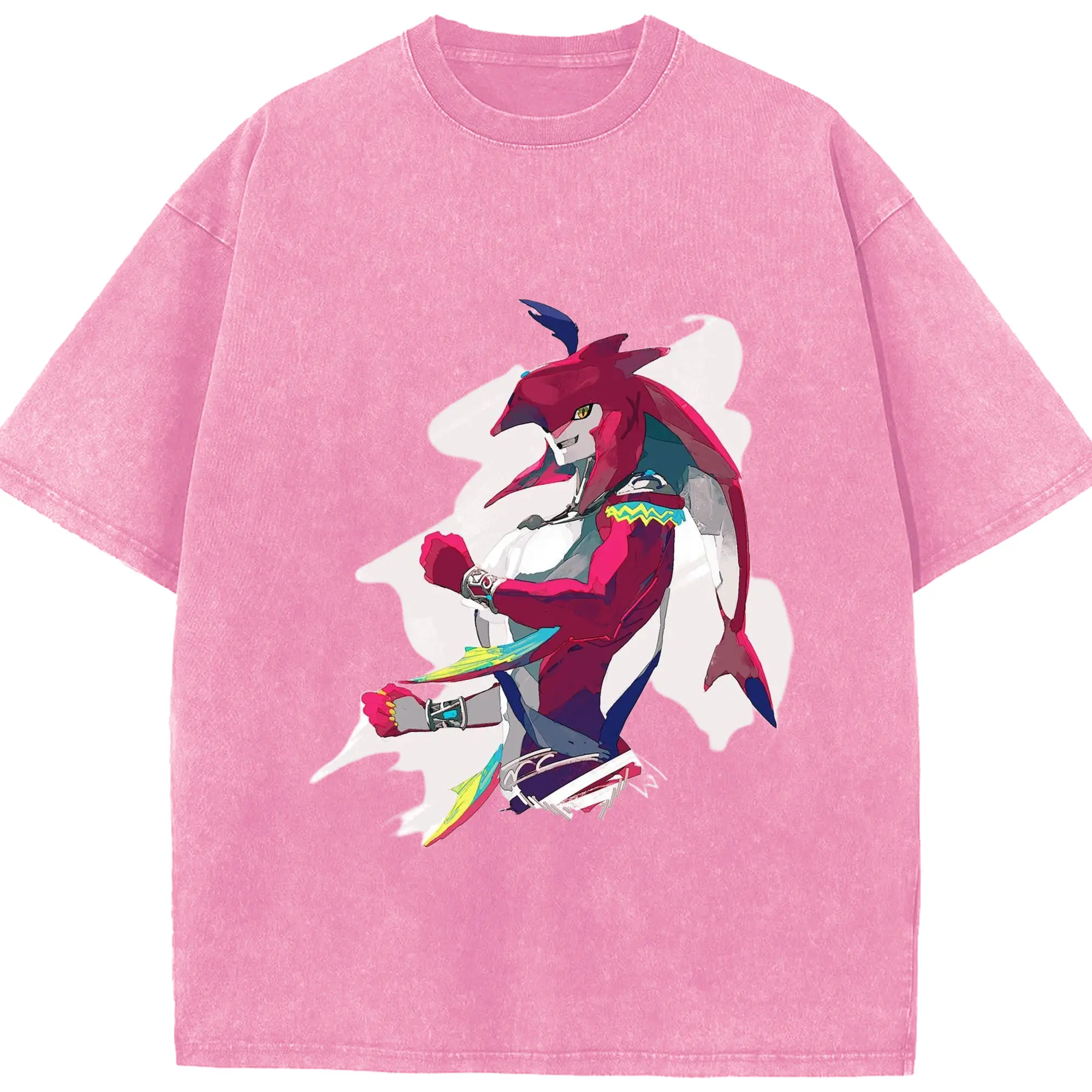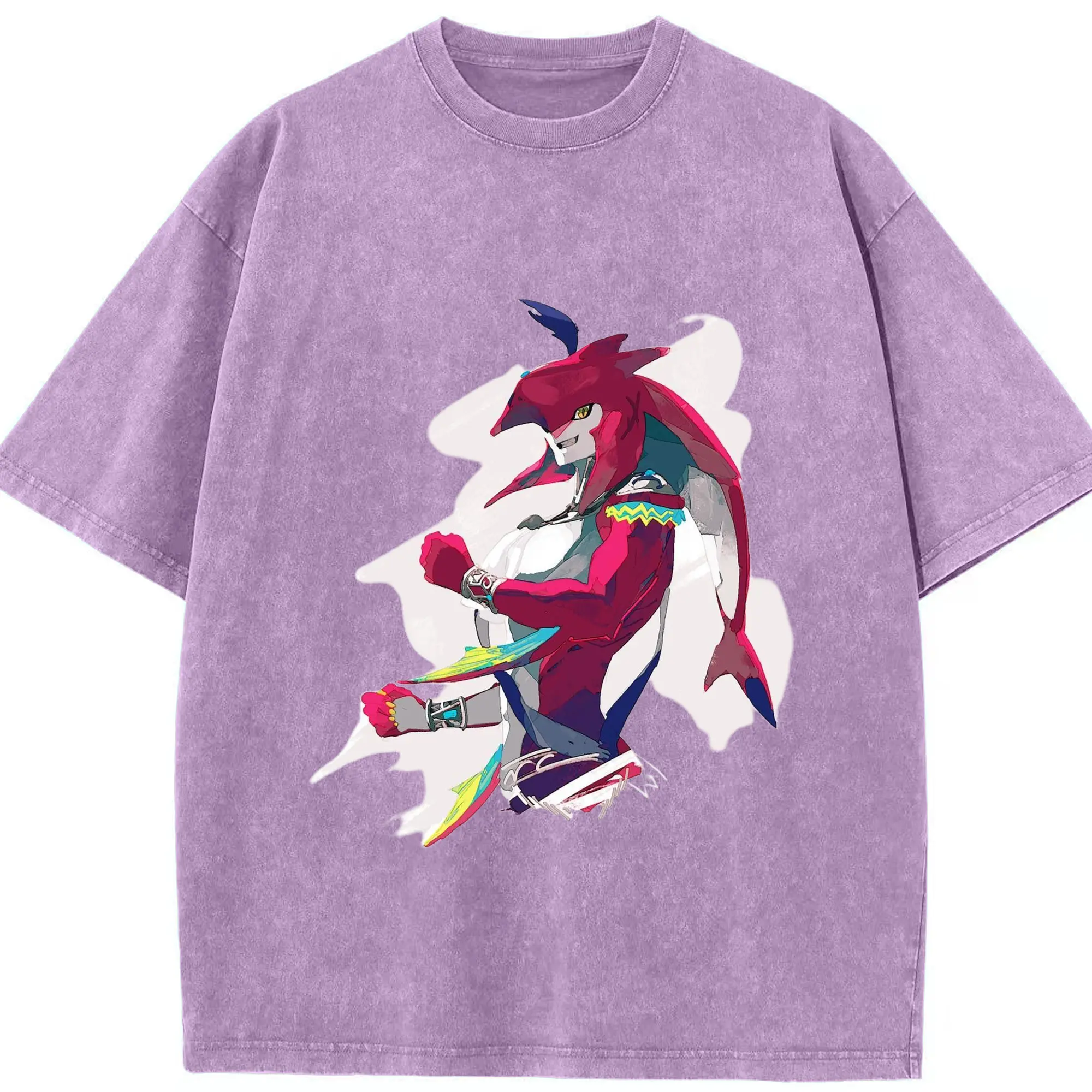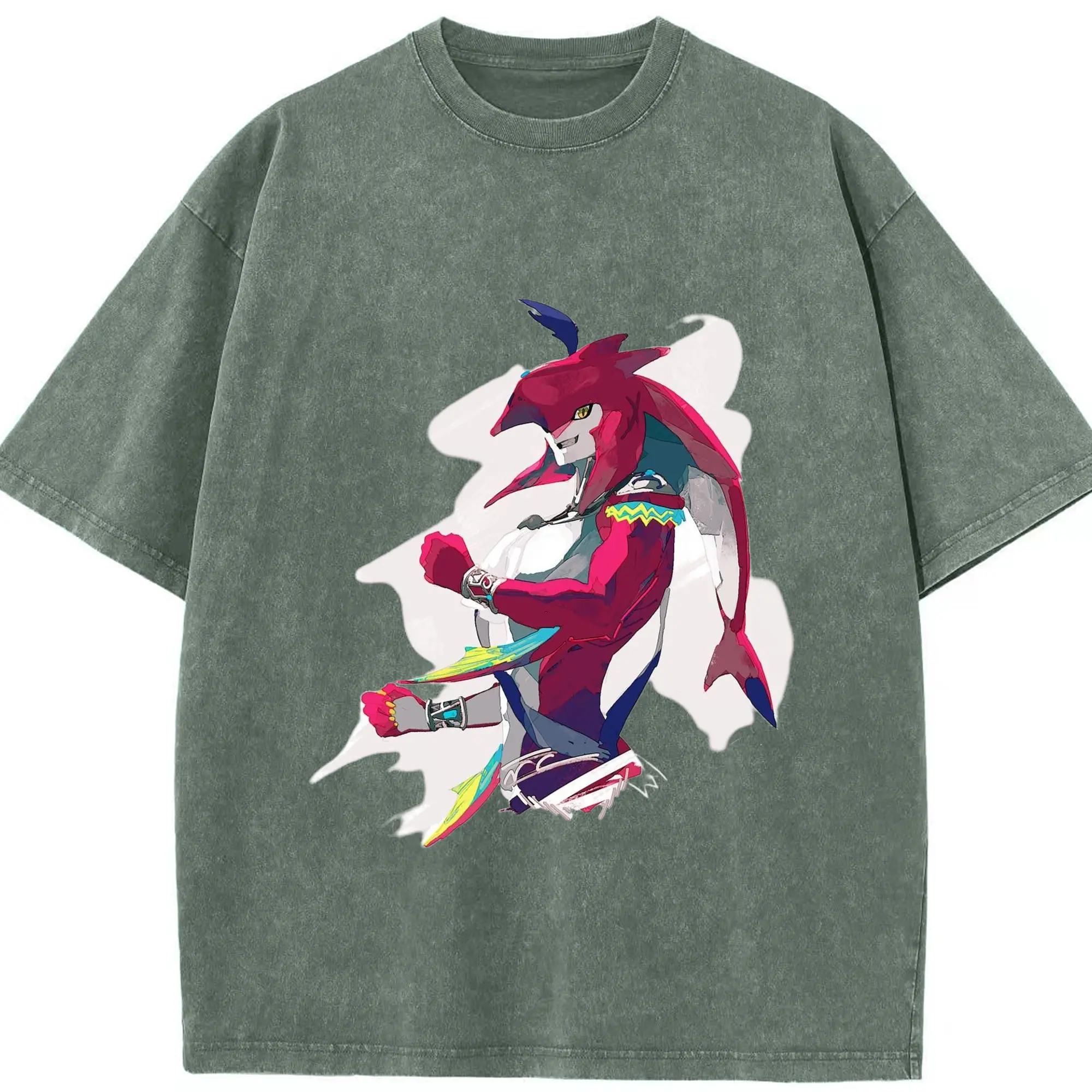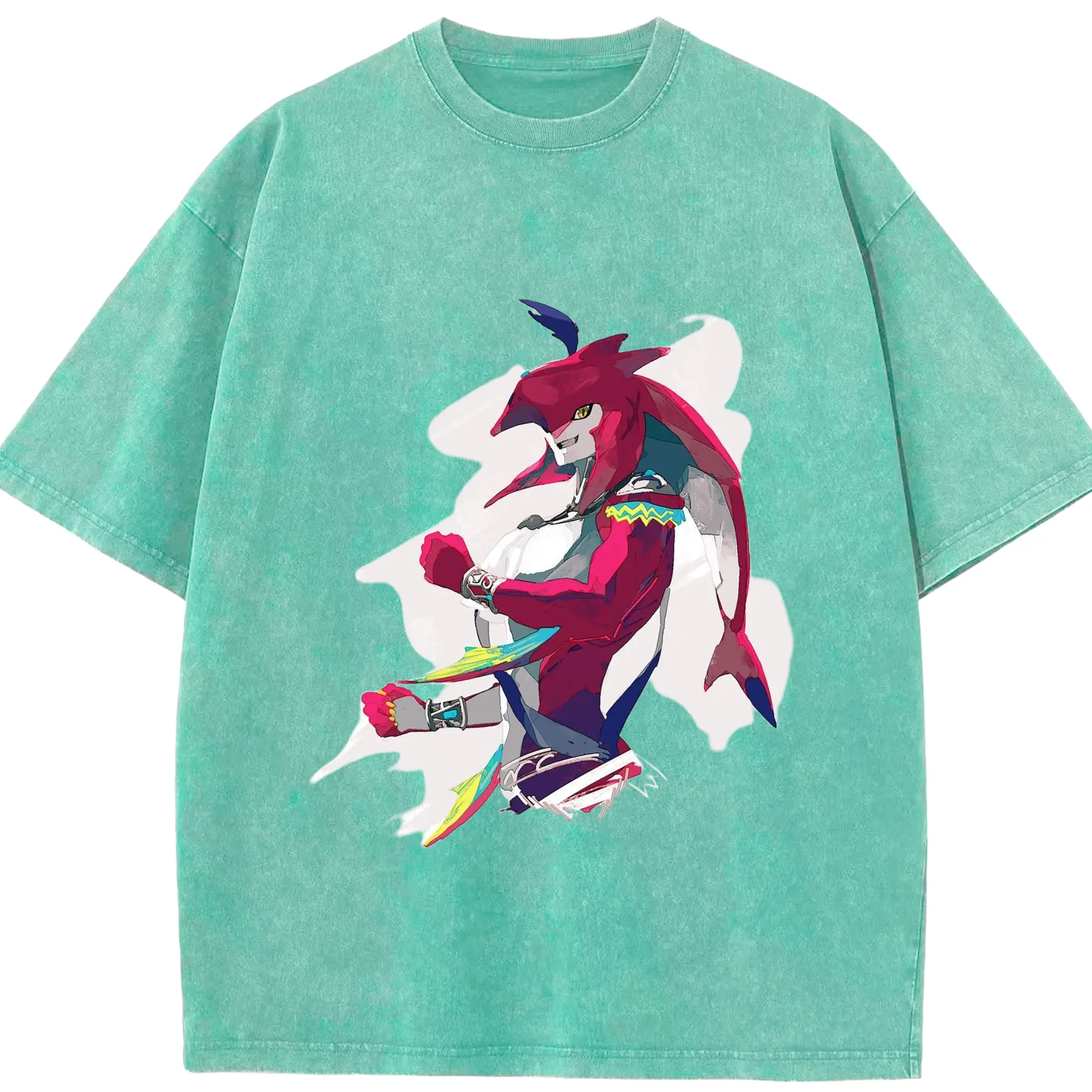 The legend of zelda Sidon t-shirt - Washed Vintage Look 230g Cotton Oversized T-Shirt With Front Heat Transfer Print – Soft, Lightweight, Stylish Fit – Comfortable Casual Wear For Sports & Everyday Use