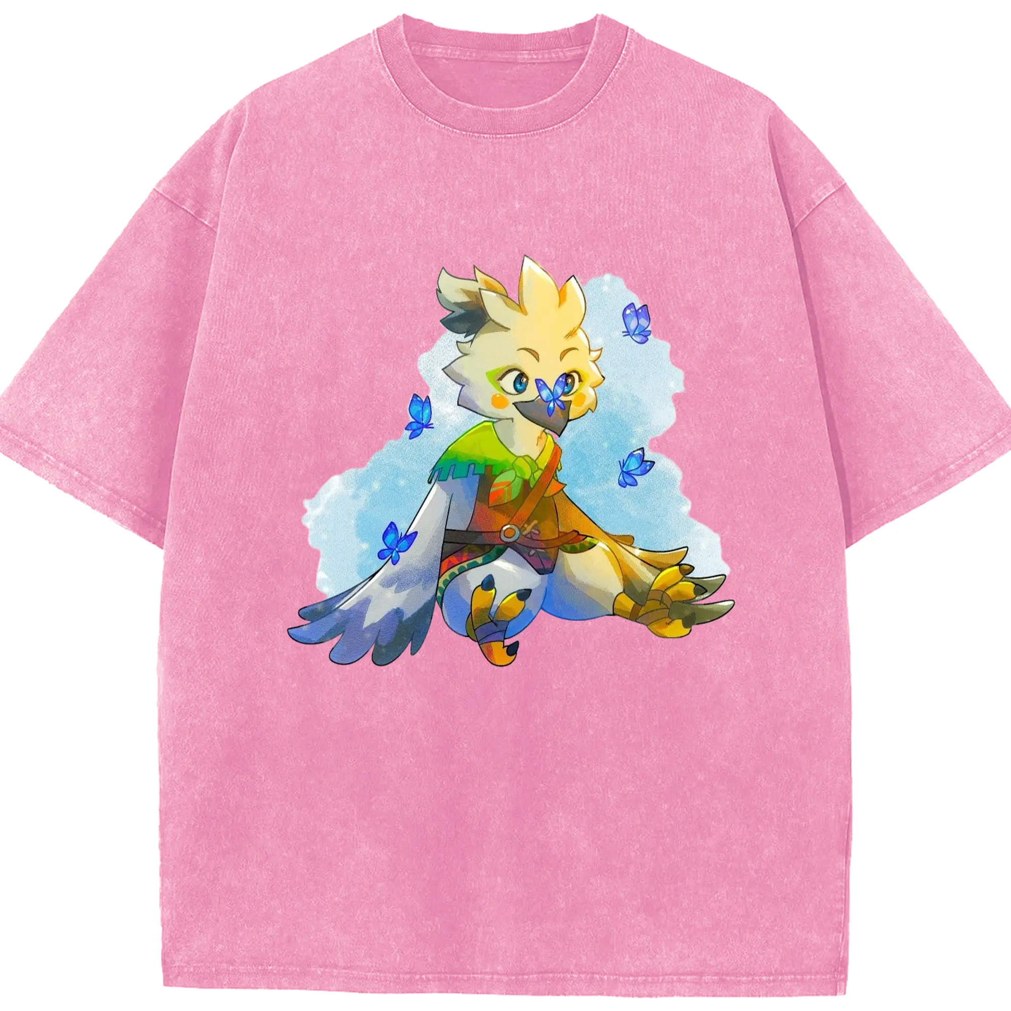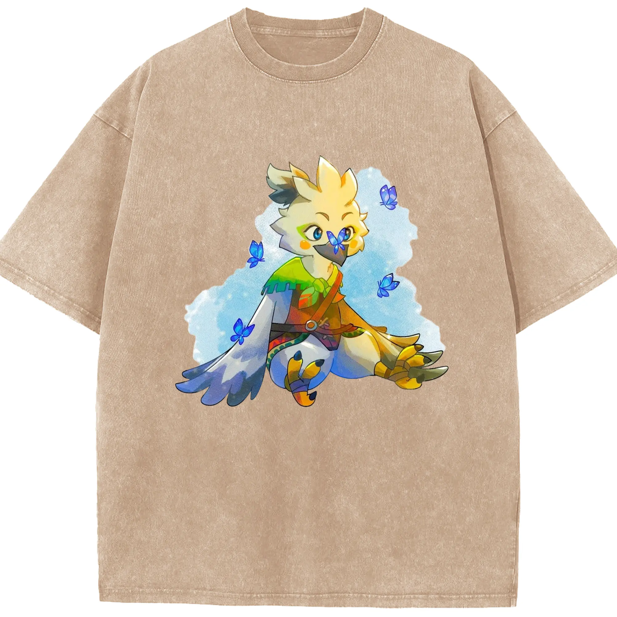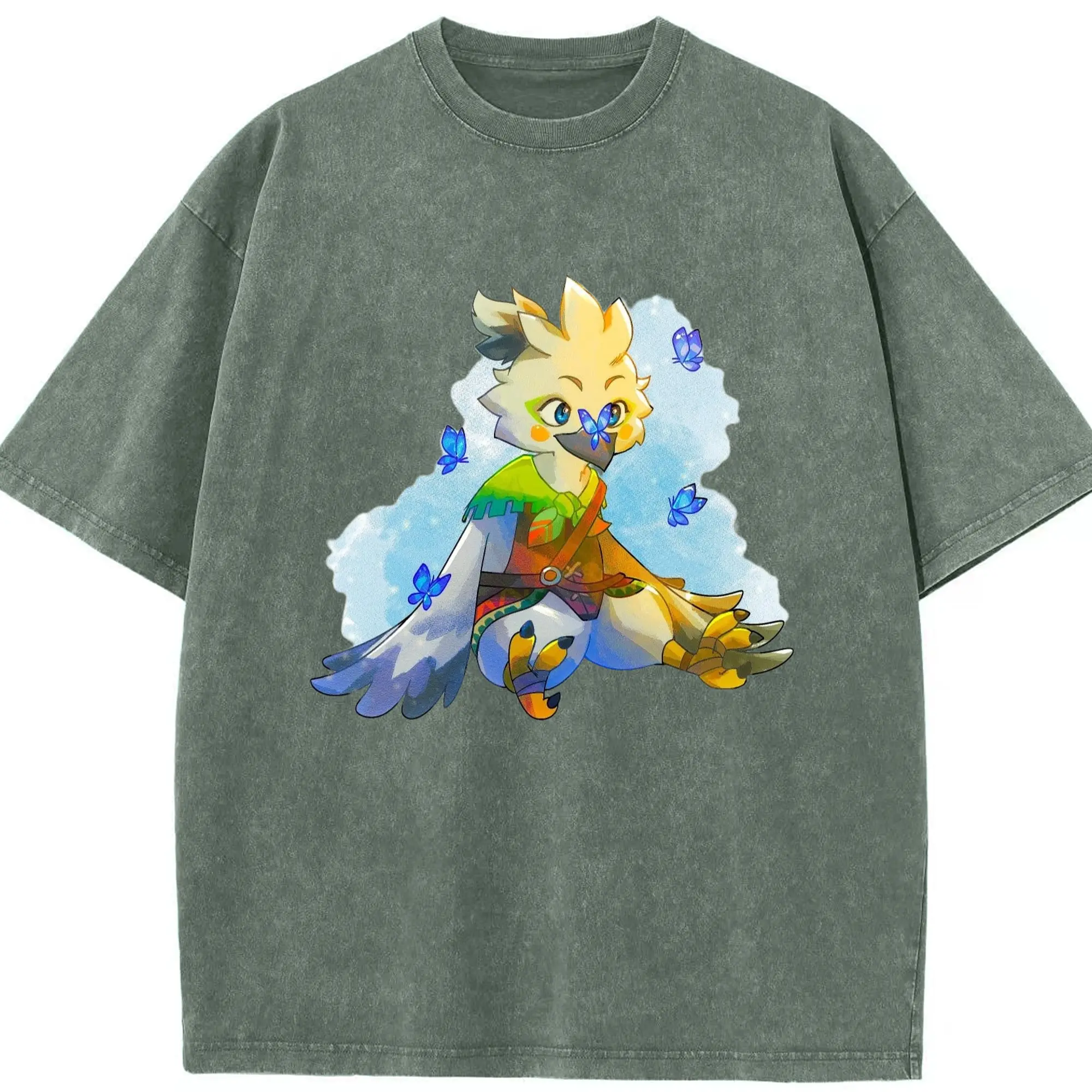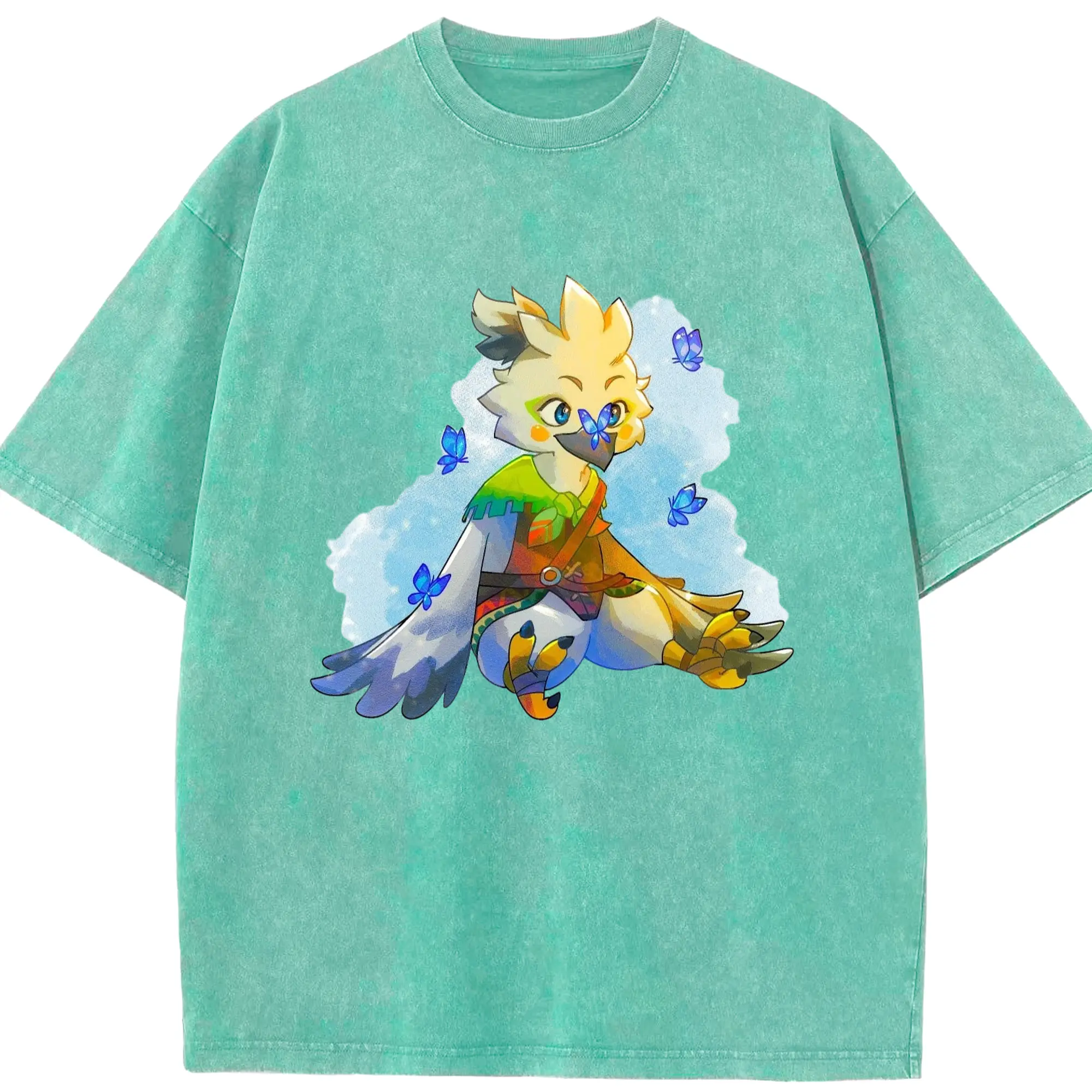 The legend of zelda Tulin graphic t-shirt - Washed Vintage Look 230g Cotton Oversized T-Shirt With Front Heat Transfer Print – Soft, Lightweight, Stylish Fit – Comfortable Casual Wear For Sports & Everyday Use